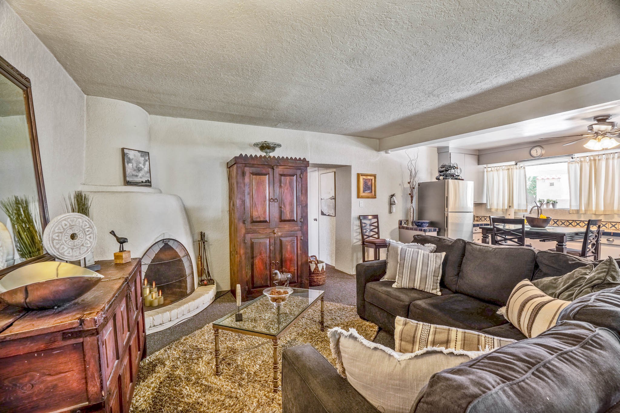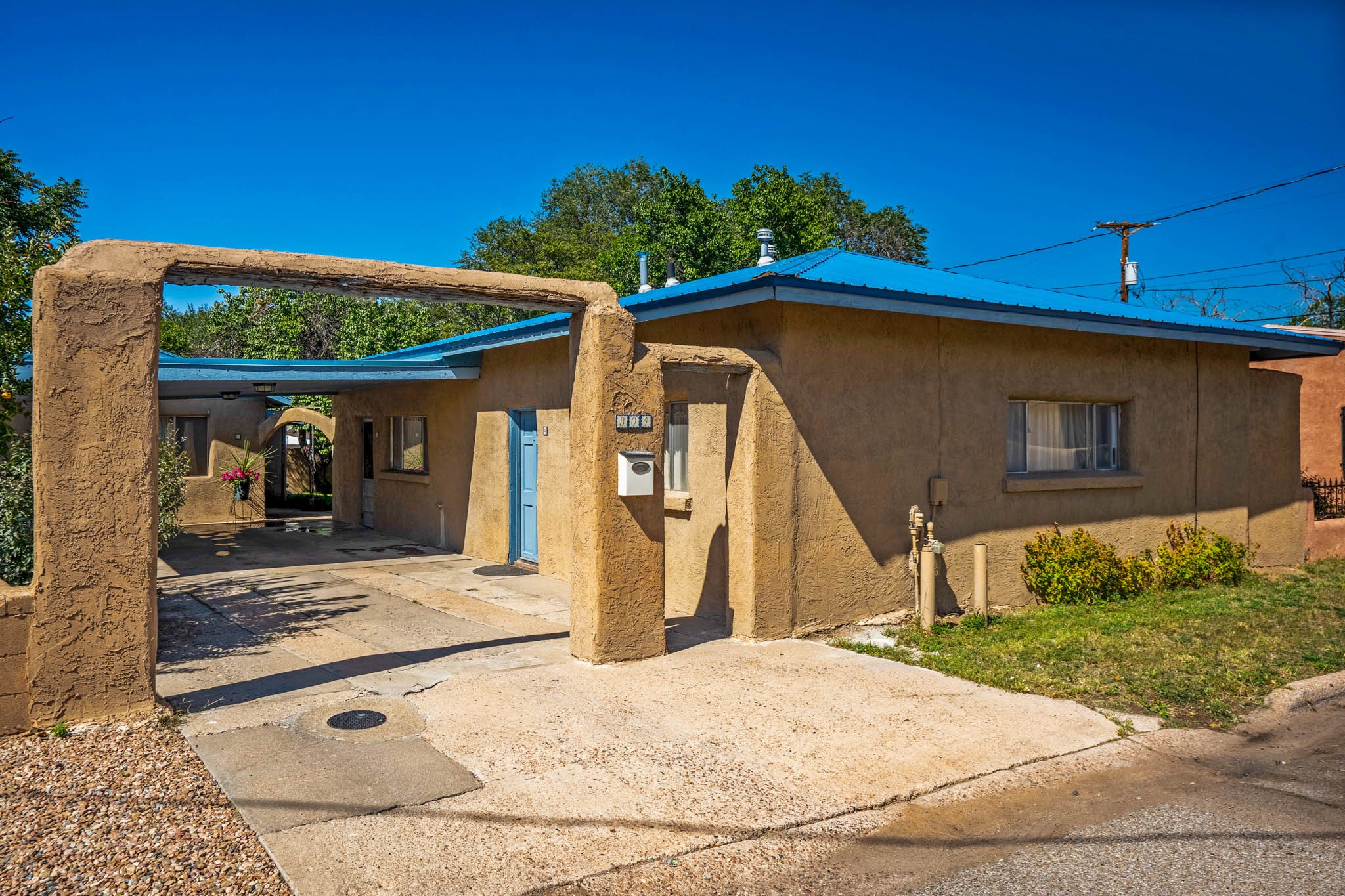Unique adobe triplex built in the 60's located within the historic Guadalupe District, walking distance to the Railyard and 1.4 miles to the Plaza. The lush backyard is enhanced with healthy apricot trees, lilac bushes, a covered patio and a brick fireplace. Units A & C are tenant occupied so 24 hour notice is required for showings.