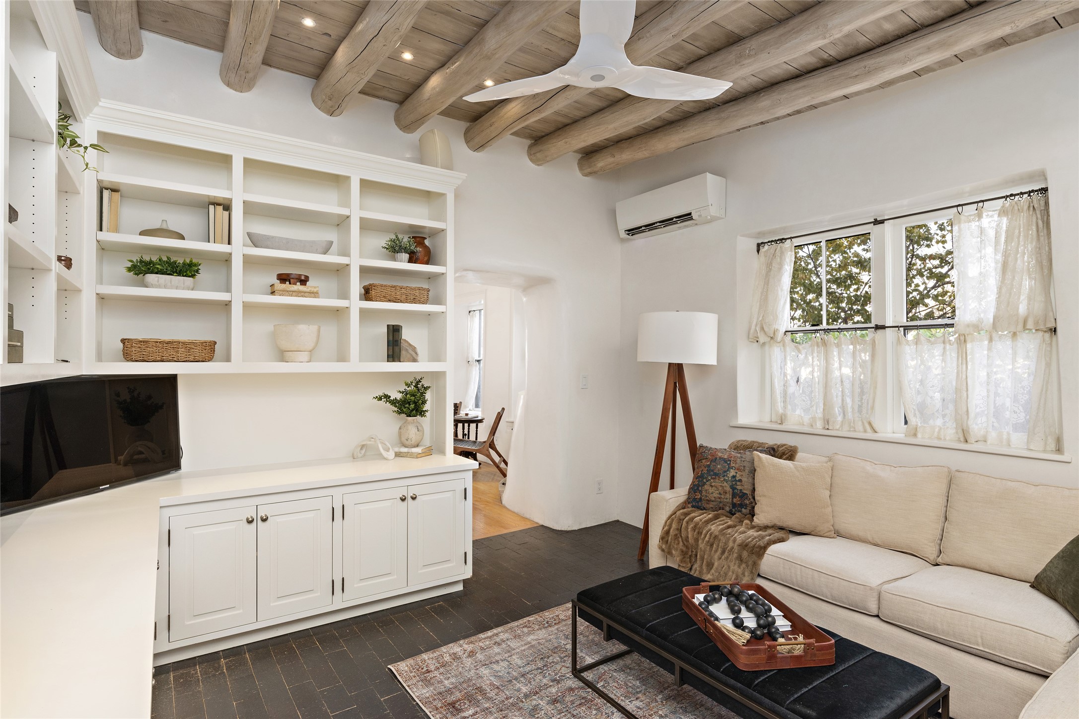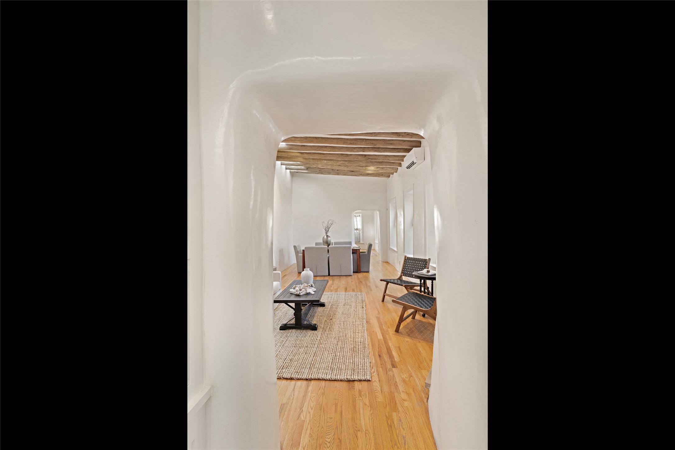 Located on one of the most coveted streets in the heart of Santa Fe's Eastside lies this exquisite property. On the corner of famed Canyon Road, this house dates back to 1836+/- and is thought to have once been the Governor's Mansion. Fully remodeled and updated with the finest of finishes to include Carrara marble bathrooms, custom Carrara kitchen countertops and shelving, wood and brick floors, white plaster walls, ductless ac, subzero appliances, custom skylight covers for art protection, beautifully landscaped courtyards, etc... The flexible floorplan featuring 2 kitchens allows for multiple ways to use the space. The current owners had plans to turn it into a single family home, however, it would make a fabulous live work space with a guest house on one side and a gallery or office on the other. The property is zoned RAC4. A rare opportunity to own and live/work in a stunning piece of history.
