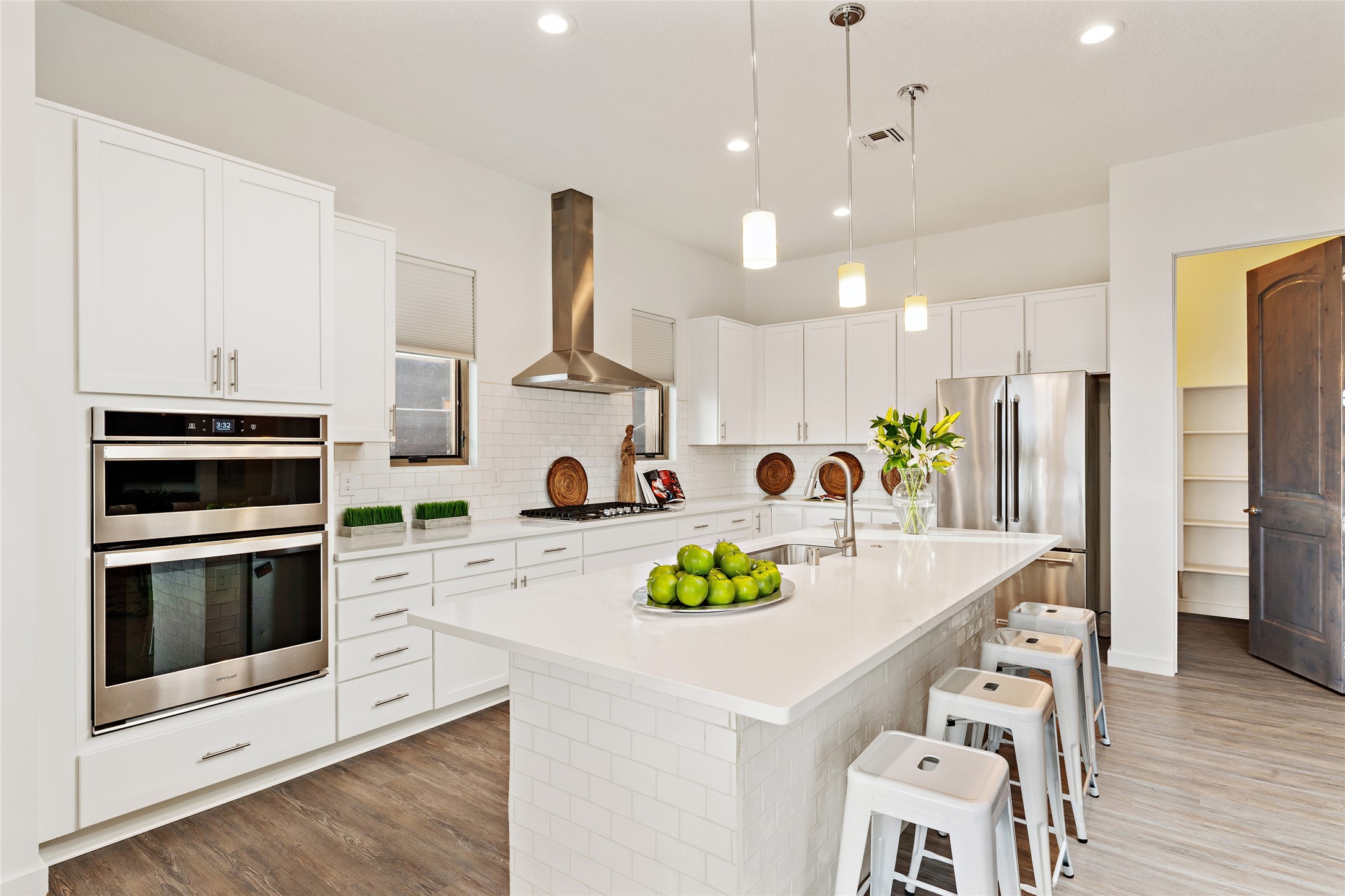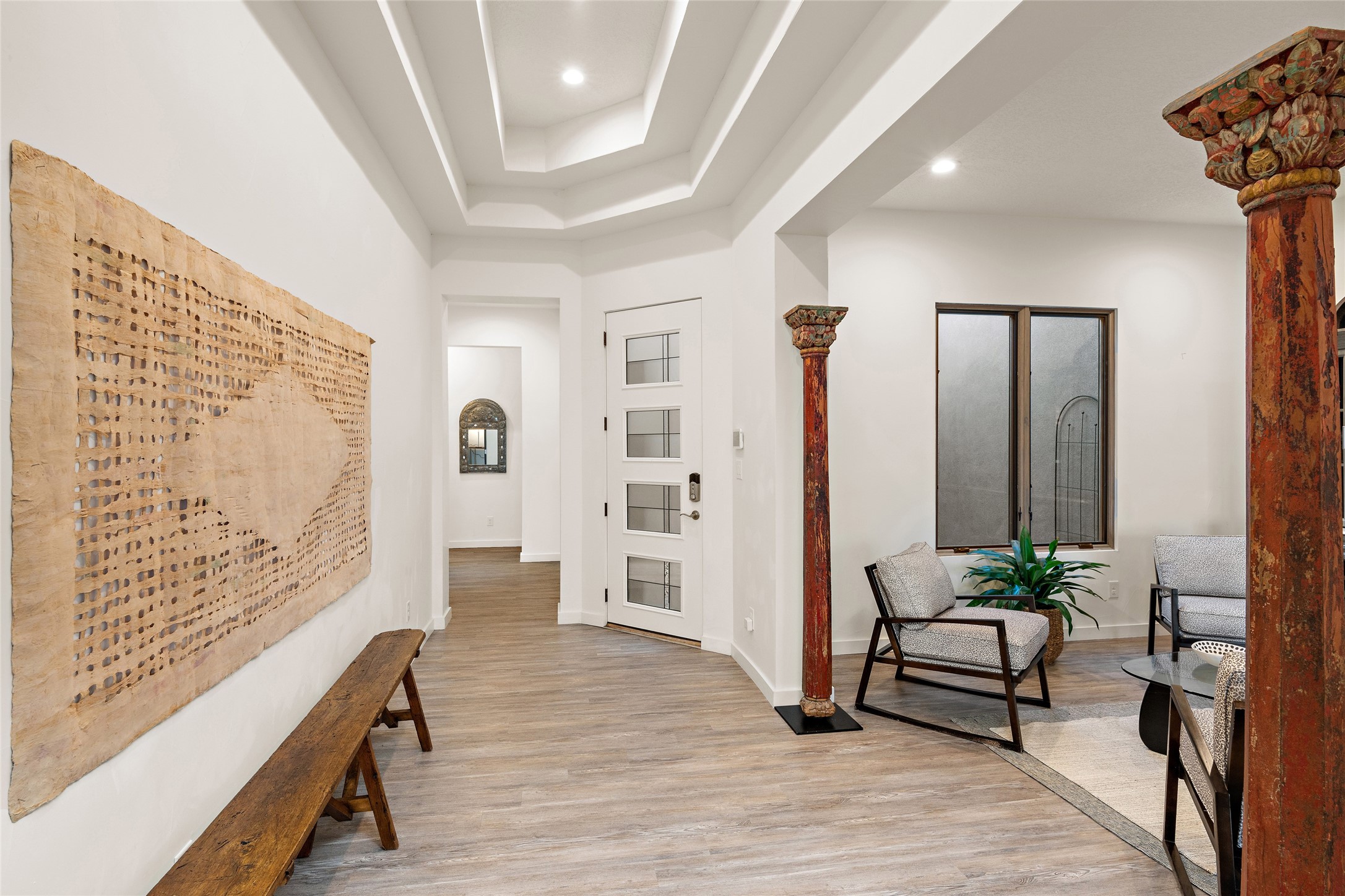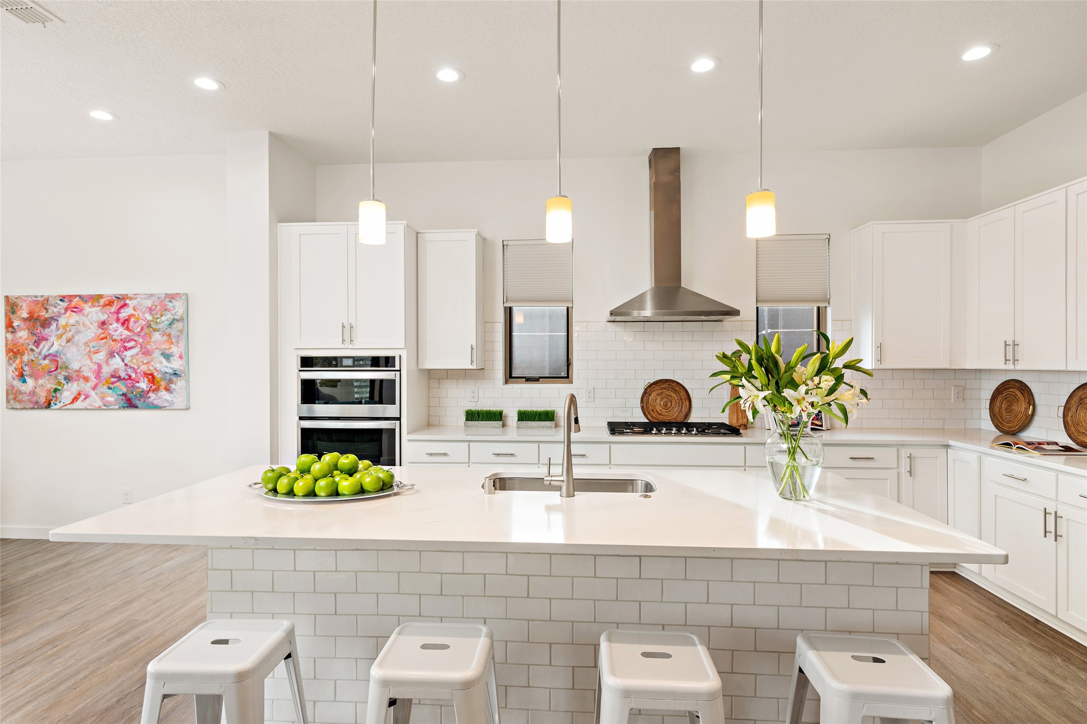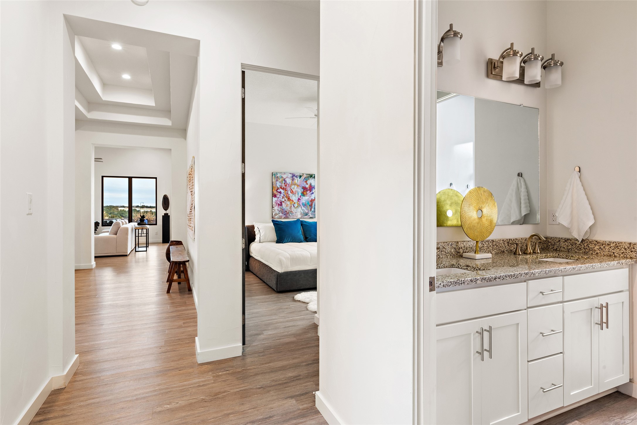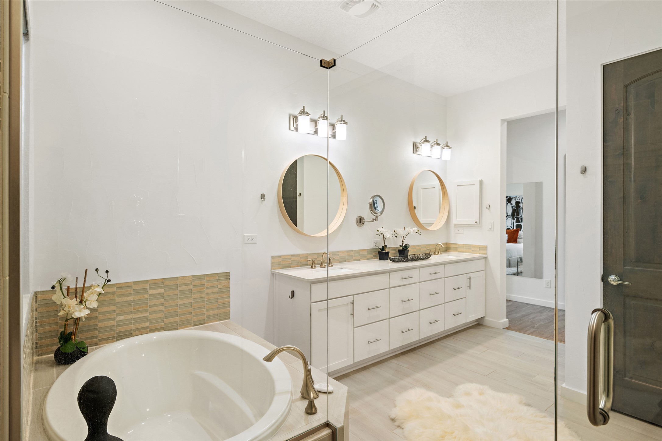 Floating on a ridge overlooking the Sunrise Golf Course in Las Campanas, this spacious, contemporary home captures beautiful views and sunsets, and has 4 bedrooms, 4 bathrooms and a 2-car garage. Enter through a gated breezeway and courtyard into a light-filled, open-concept great room with a gas fireplace, with stone surround, dining room, large, white kitchen that includes a big island, tons of cupboard space, walk-in pantry and cafe area. The luxurious portal spans the entire back of the home! Great for big parties! The beautiful owner's suite has large windows with motorized shades. The owner's bath also has motorized shades, with dual vanities, soaking tub, separate shower and a walk-in closet. Added features include luxury vinyl flooring throughout, ceiling fans, beautiful landscaping with drip irrigation, and a tranquil fountain in the front courtyard. HOA fees include maintenance of gated and paved roads, and common areas, 24-hour roaming security, and 24-hour EMTs on site. Membership to the Club at Las Campanas is optional and subject to approval. Amenities include swimming, both indoor and out, tennis, pickle ball, fitness facility, equestrian, fine dining, and two Jack Niclaus Signature golf courses.