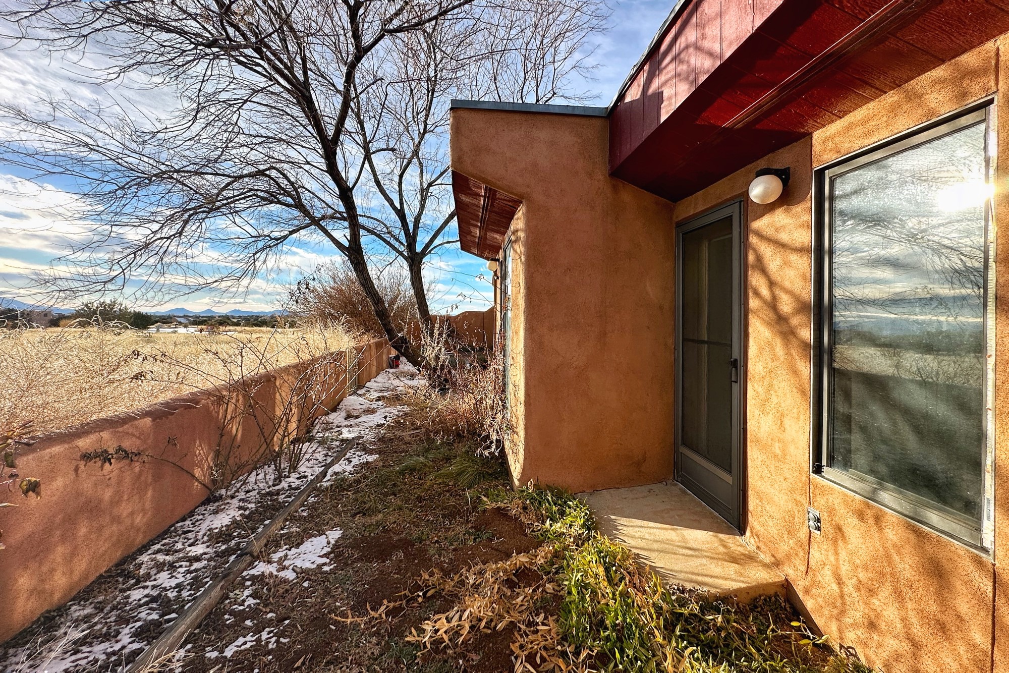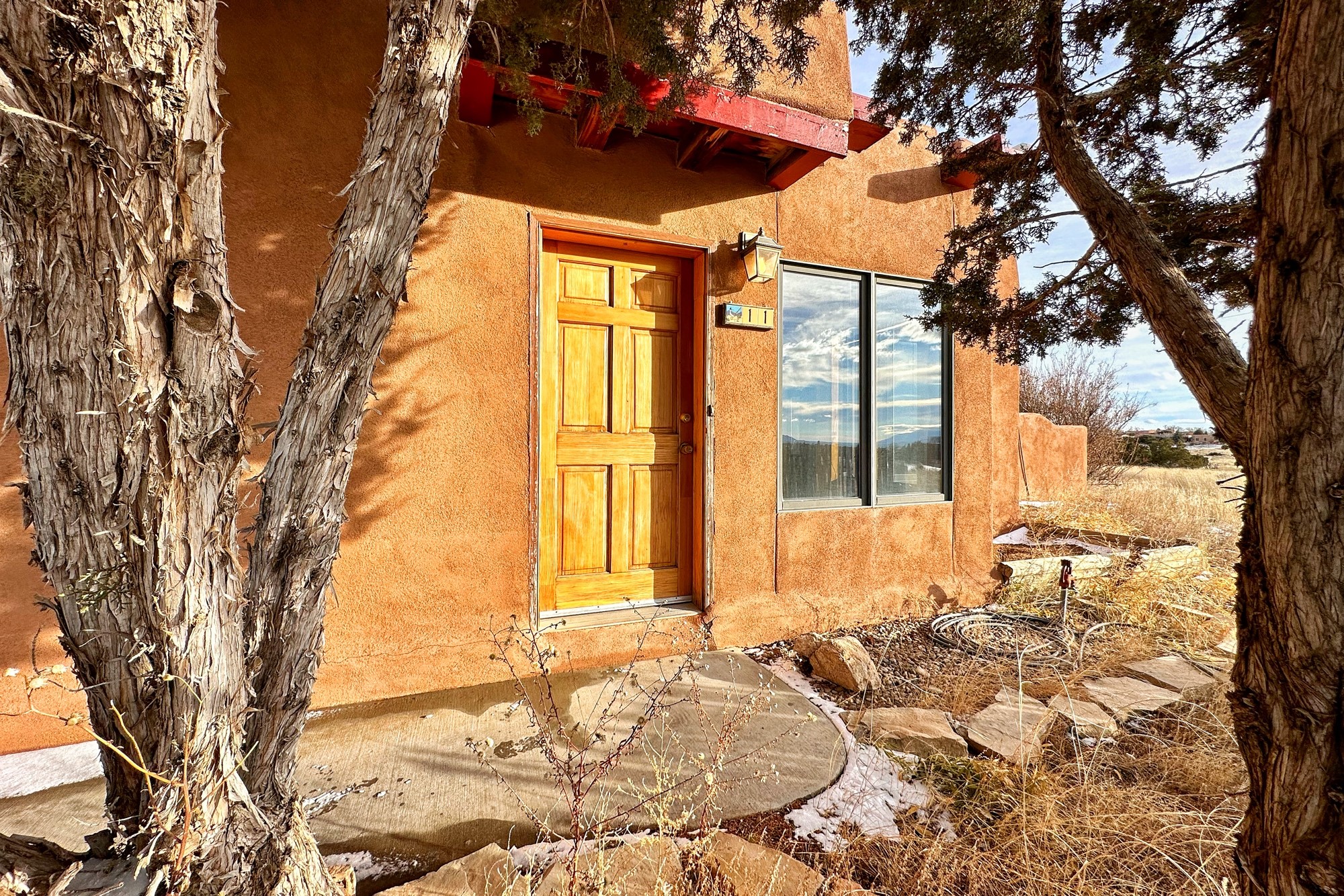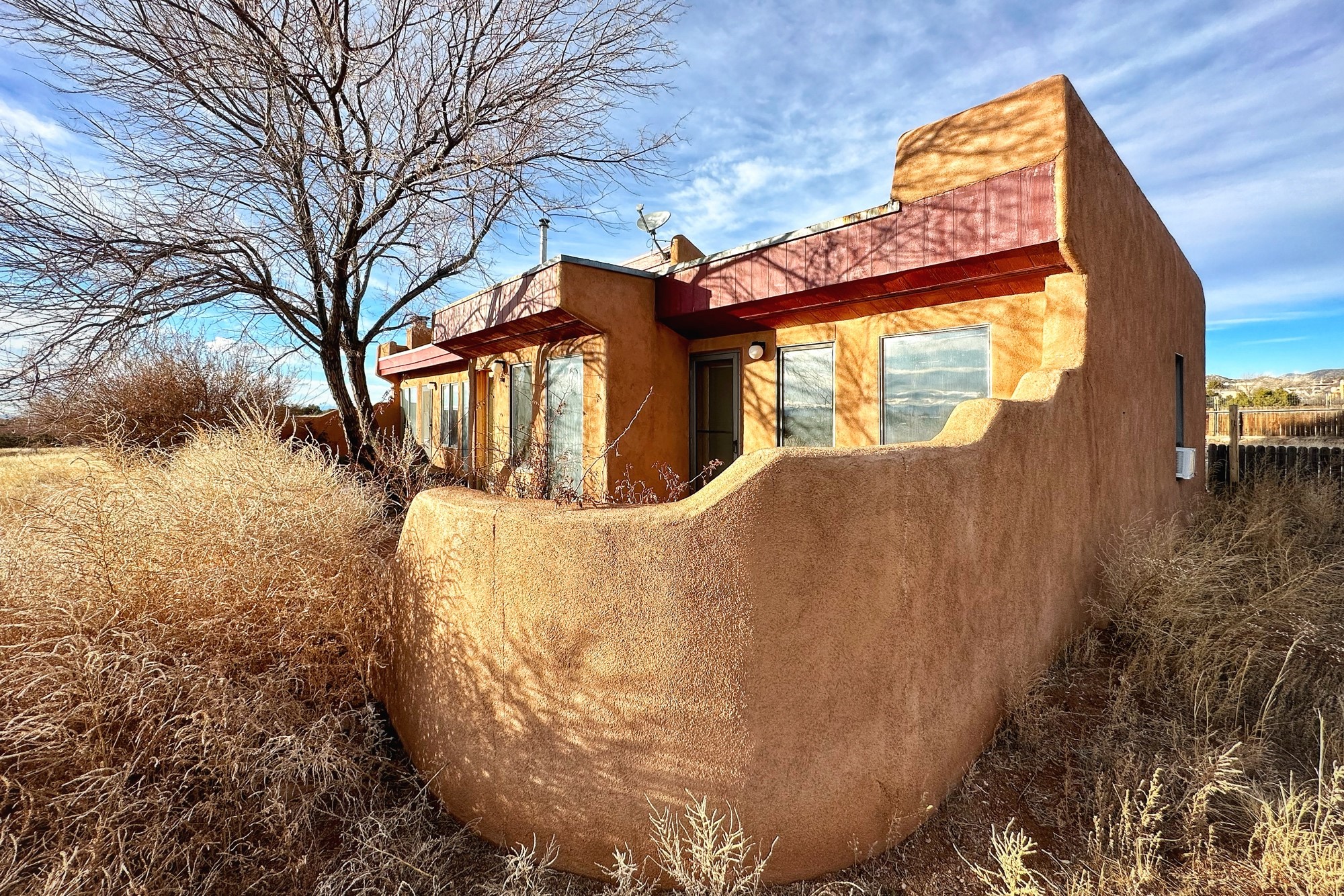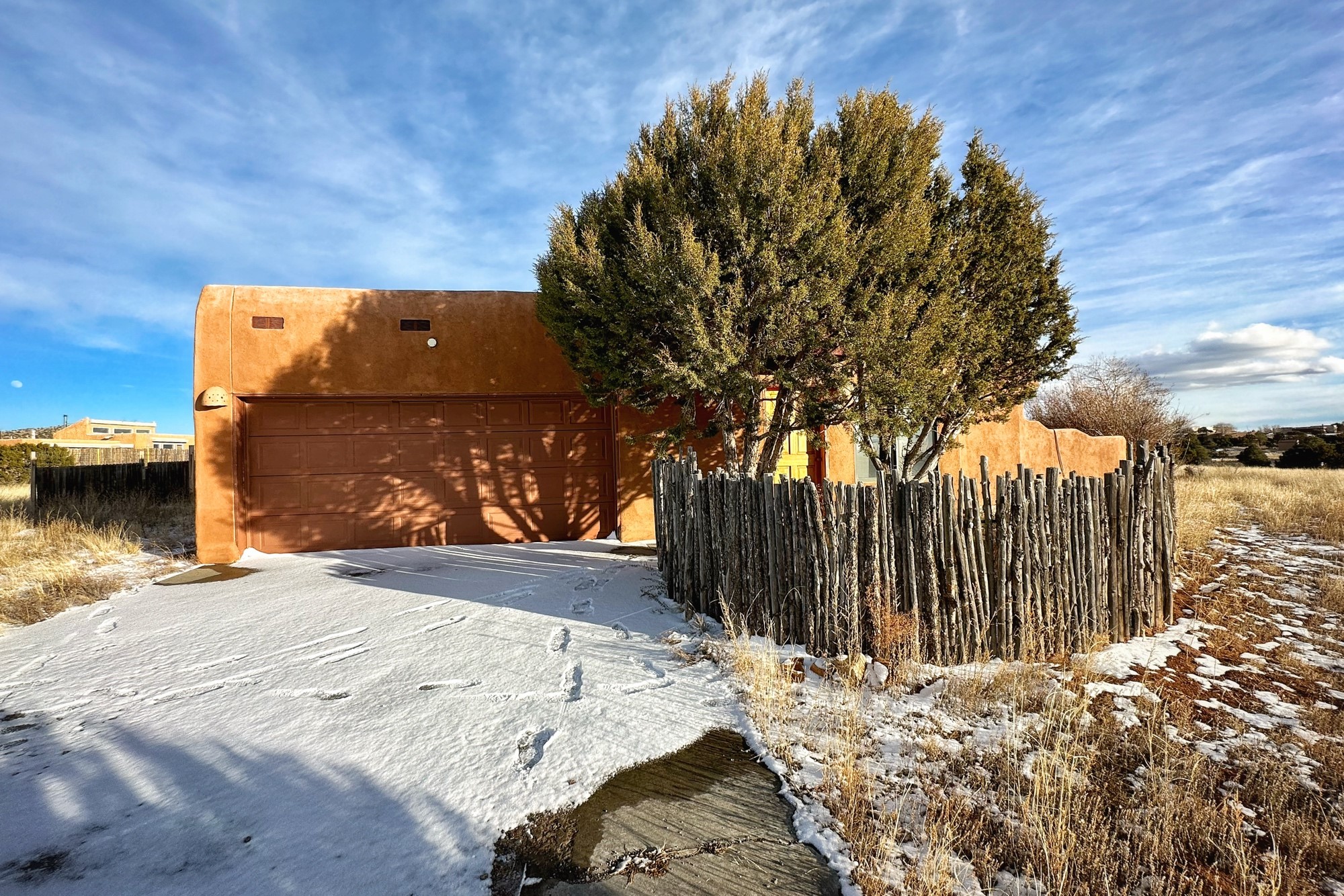 Adorable and charming 3 bed/2 bath home in the community of Eldorado. This apx 1,500 SF home is a partial adobe with wood beamed ceilings, tile floors, kiva fireplace, nice big picture windows, new carpet, tall ceilings, and lots of Santa Fe charm on a spacious 1.5 acre lot. Eldorado offers walking trails and wide open space for star gazing, a Community Pool, Library, K-8 school, a senior center, and a business center. Only 20 minutes to the center of Santa Fe.