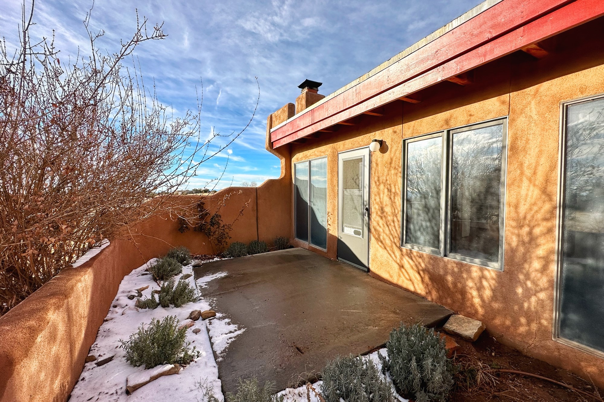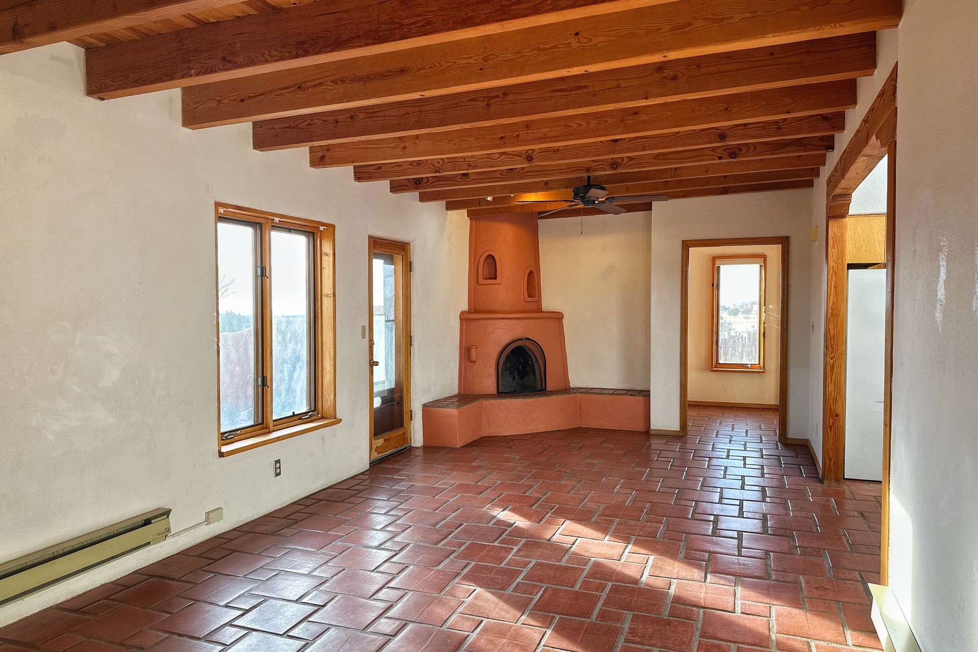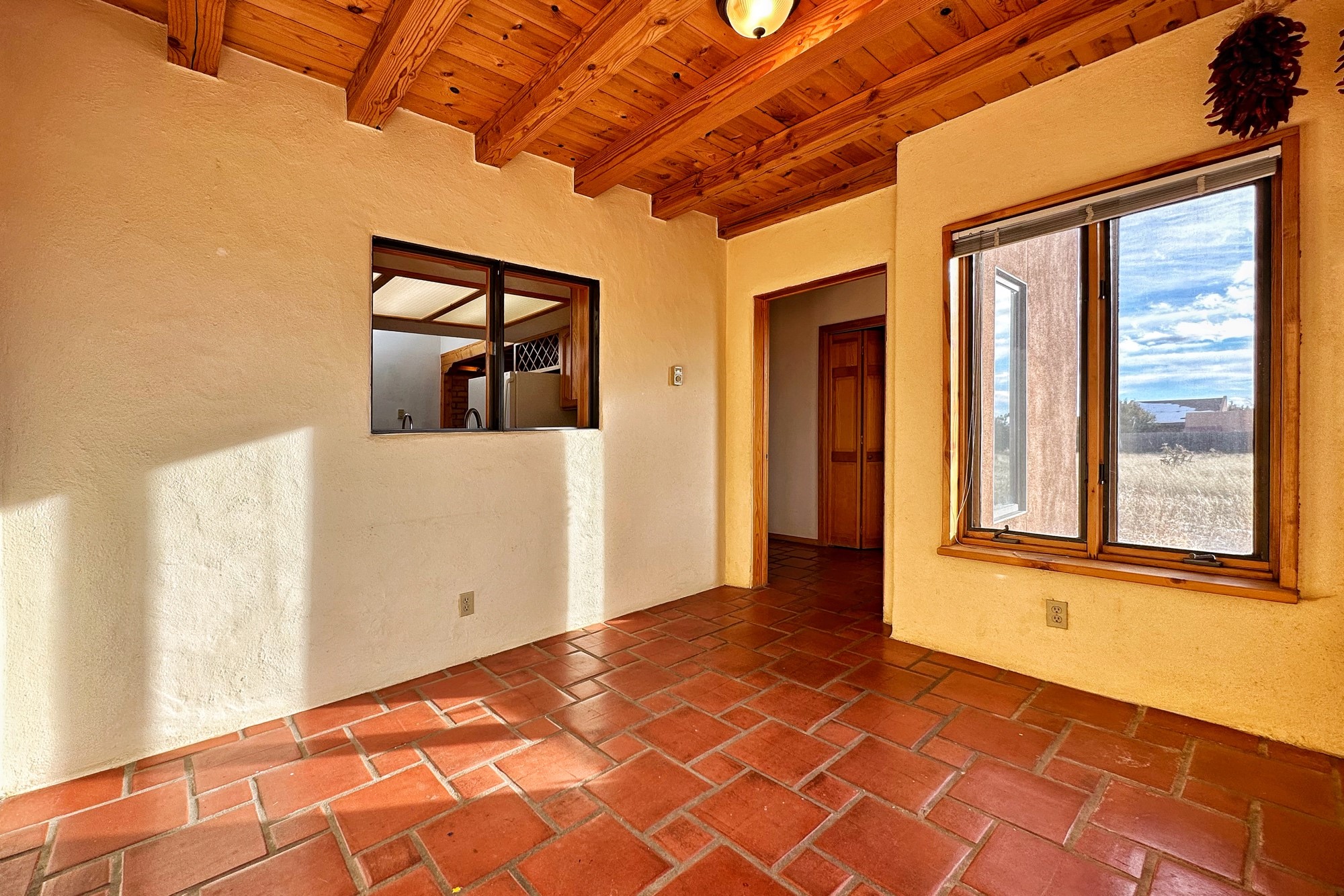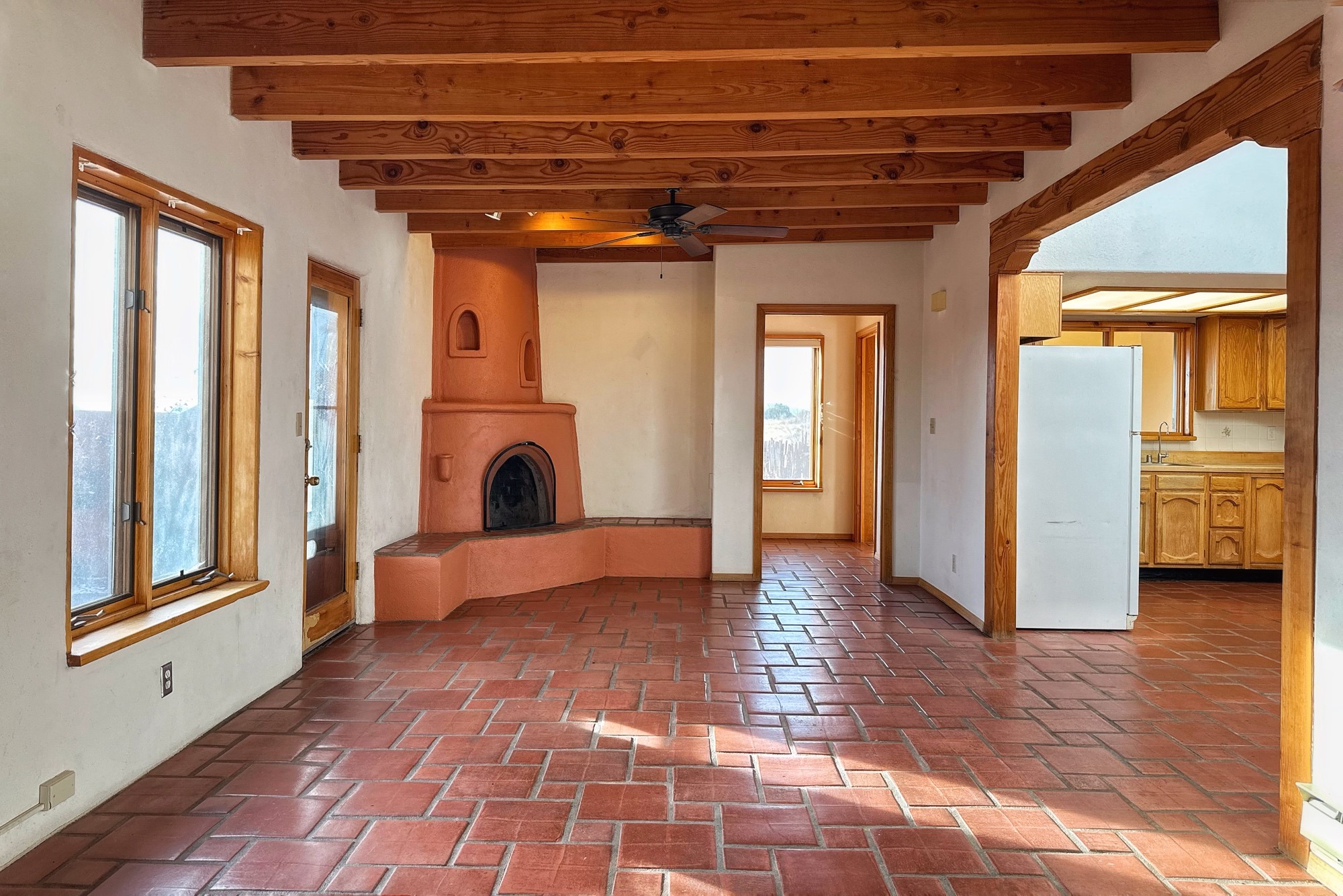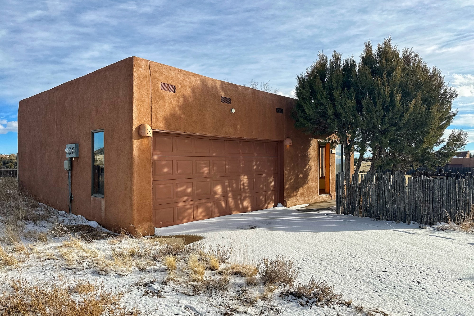 Adorable and charming 3 bed/2 bath home in the community of Eldorado. This apx 1,500 SF home is a partial adobe with wood beamed ceilings, tile floors, kiva fireplace, nice big picture windows, new carpet, tall ceilings, and lots of Santa Fe charm on a spacious 1.5 acre lot. Eldorado offers walking trails and wide open space for star gazing, a Community Pool, Library, K-8 school, a senior center, and a business center. Only 20 minutes to the center of Santa Fe.