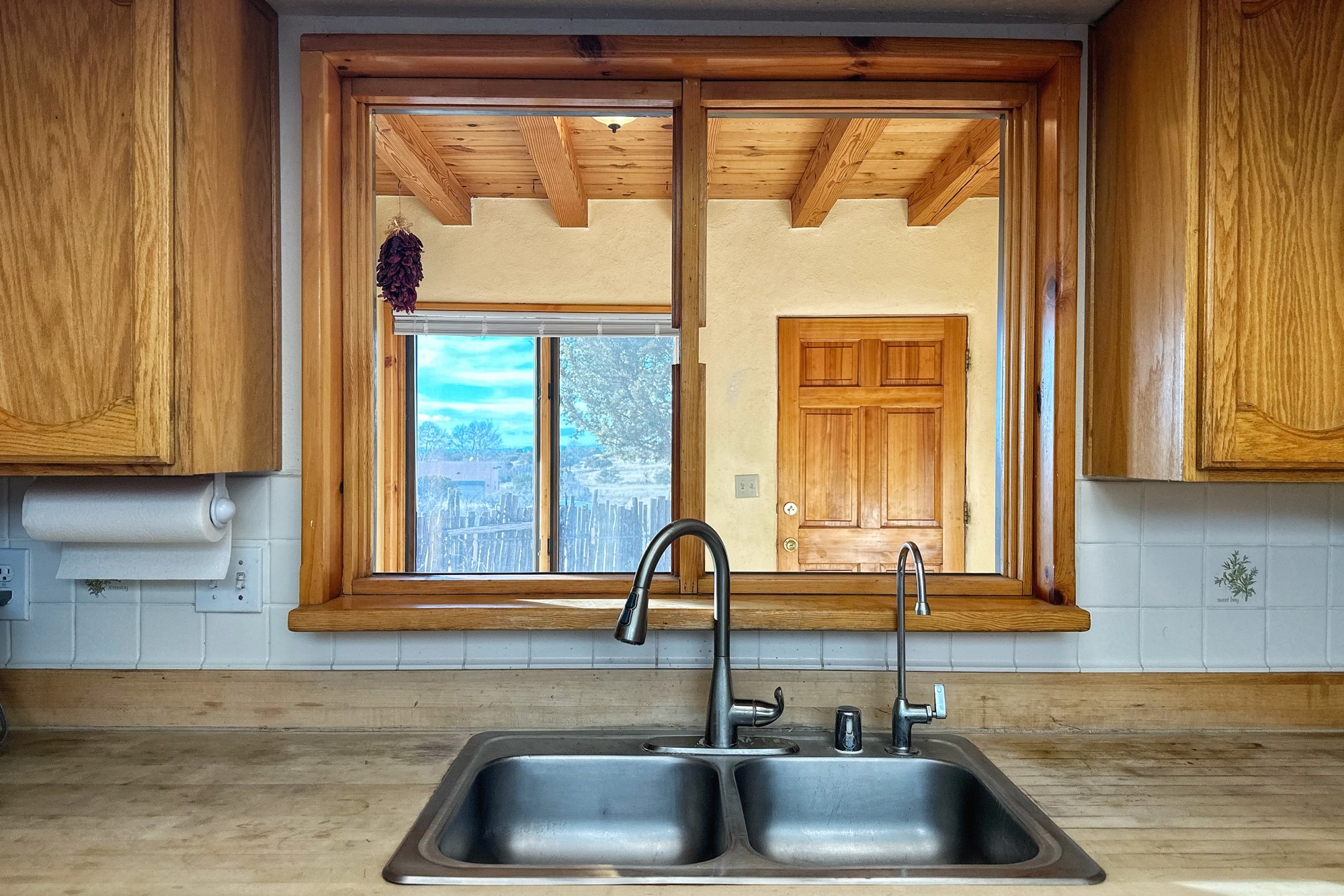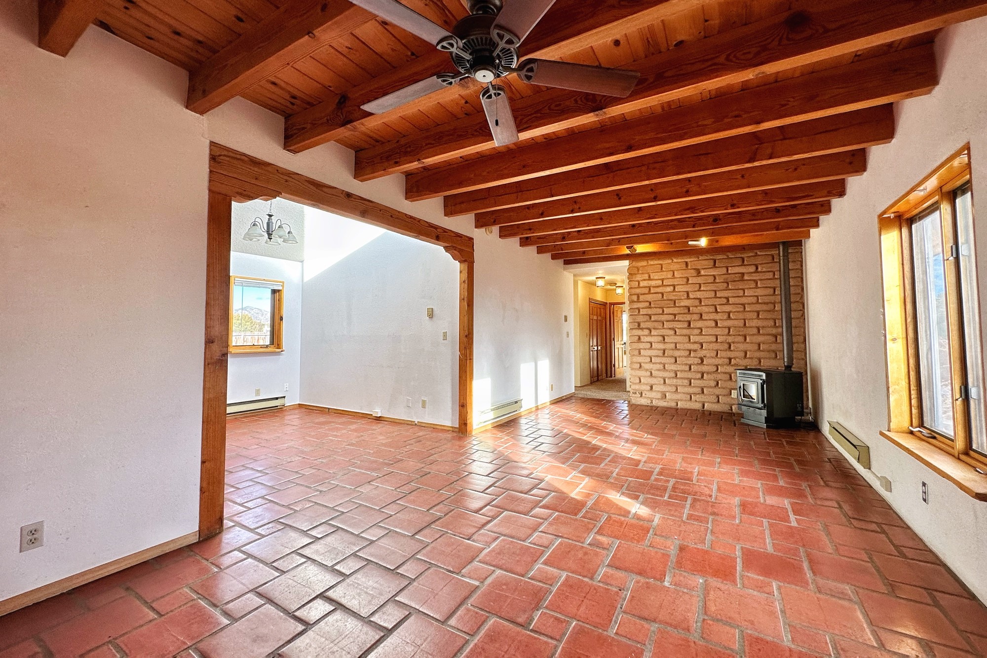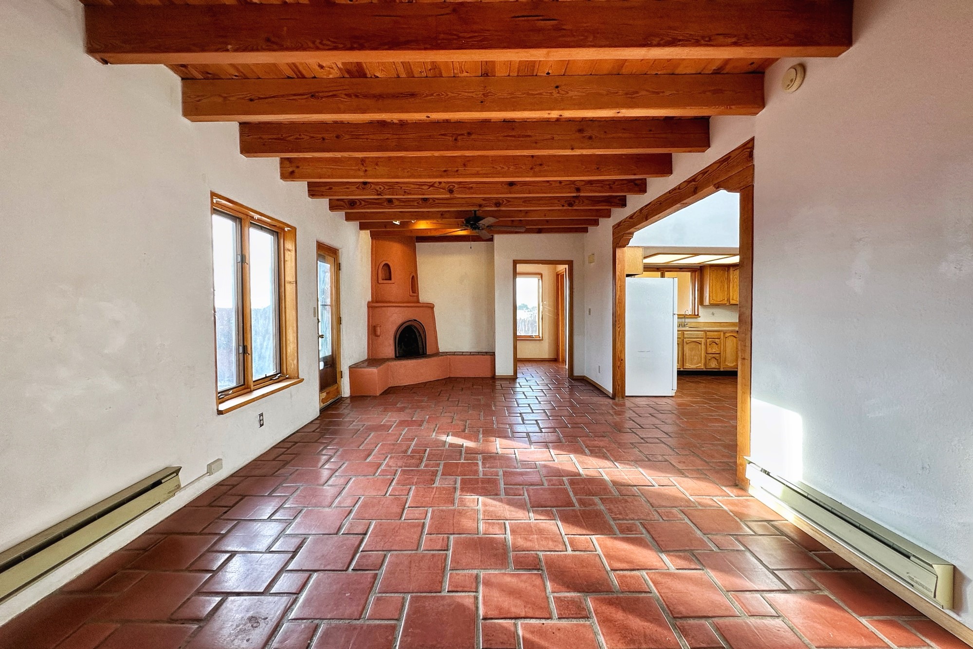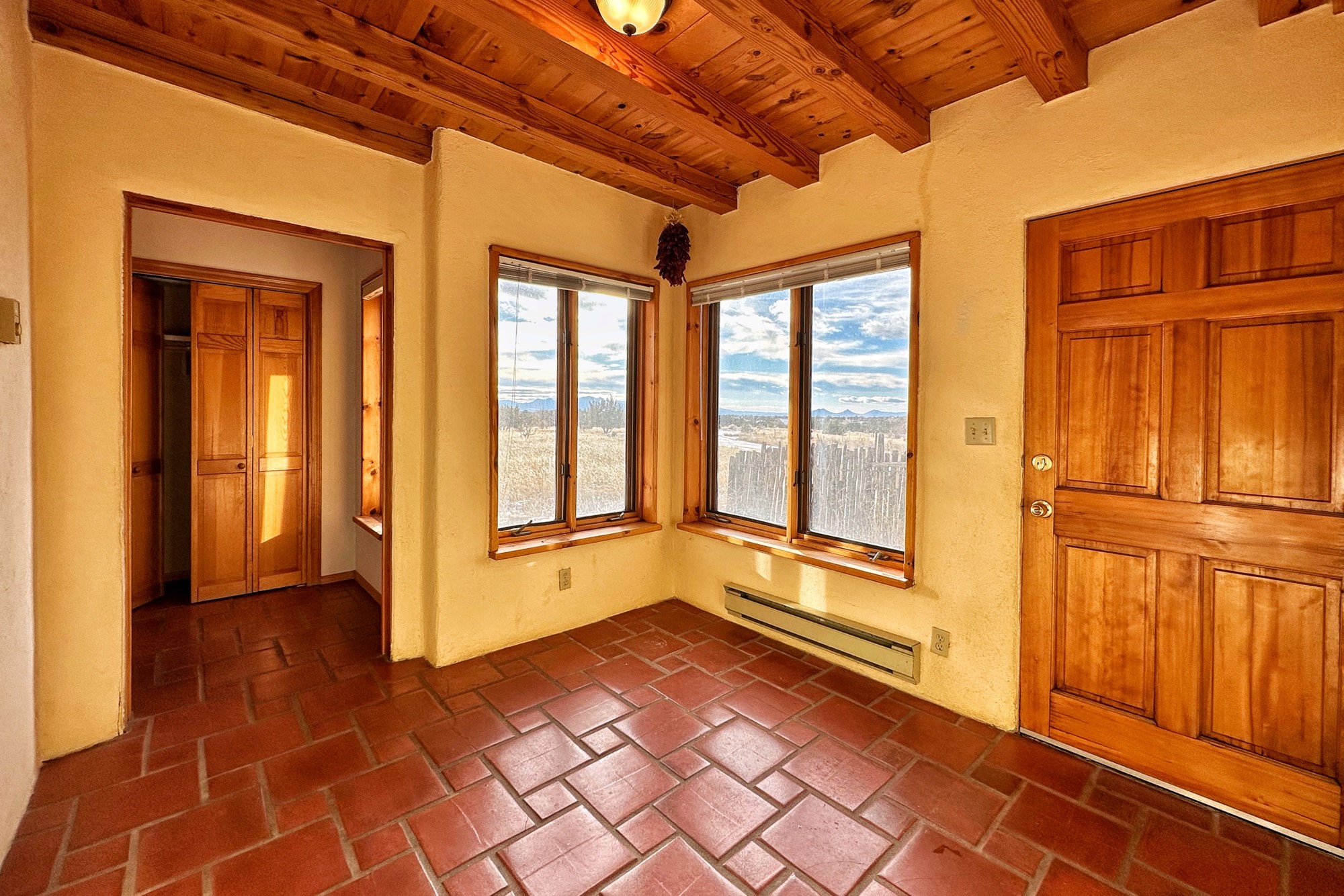 Adorable and charming 3 bed/2 bath home in the community of Eldorado. This apx 1,500 SF home is a partial adobe with wood beamed ceilings, tile floors, kiva fireplace, nice big picture windows, new carpet, tall ceilings, and lots of Santa Fe charm on a spacious 1.5 acre lot. Eldorado offers walking trails and wide open space for star gazing, a Community Pool, Library, K-8 school, a senior center, and a business center. Only 20 minutes to the center of Santa Fe.