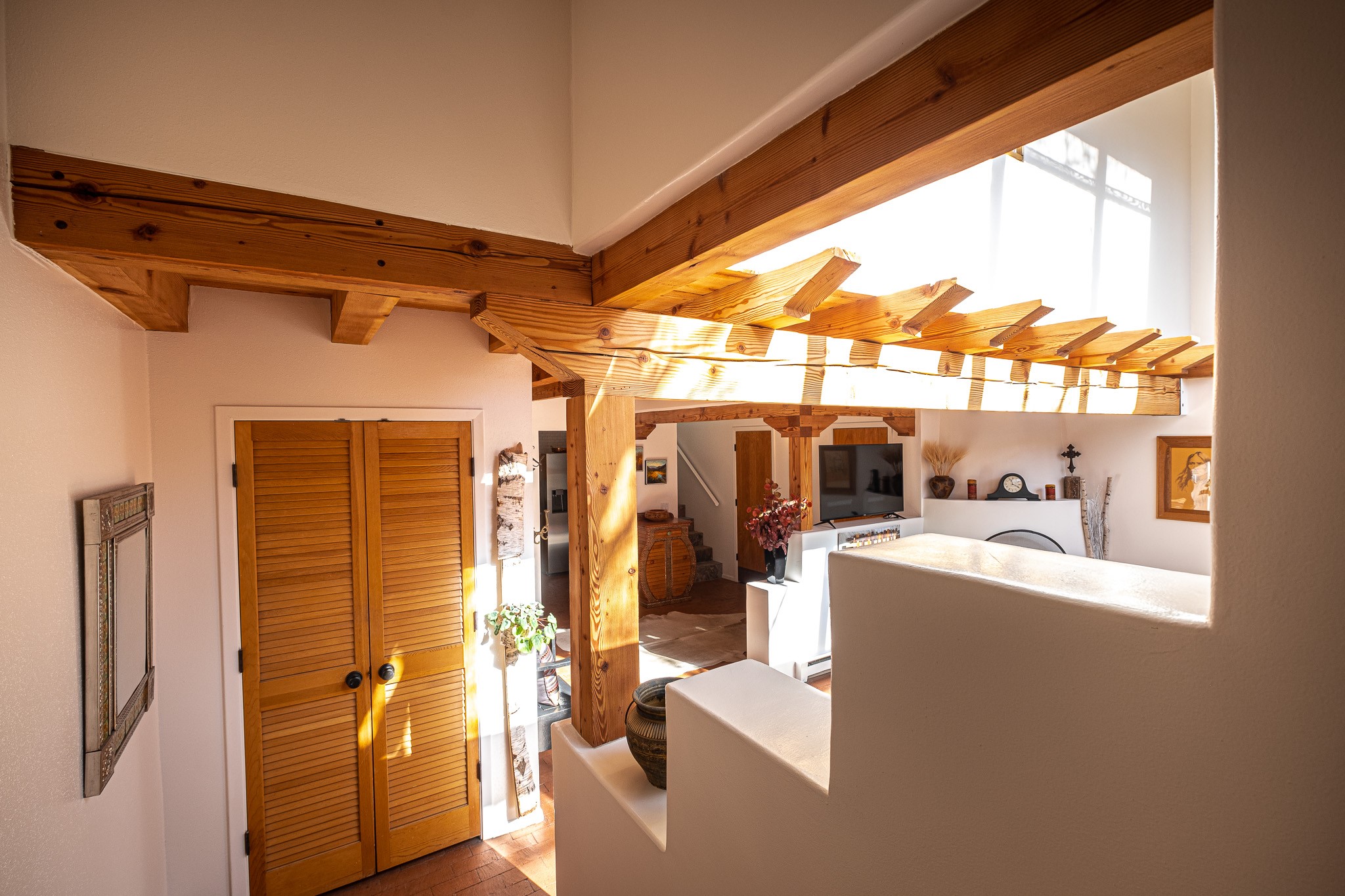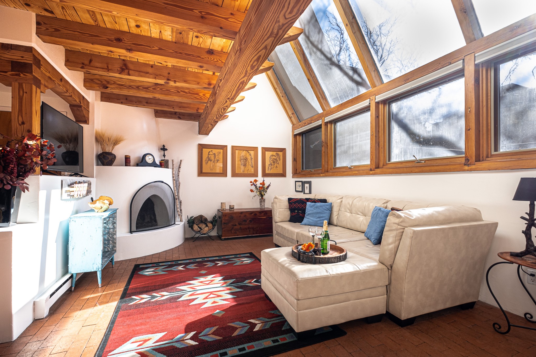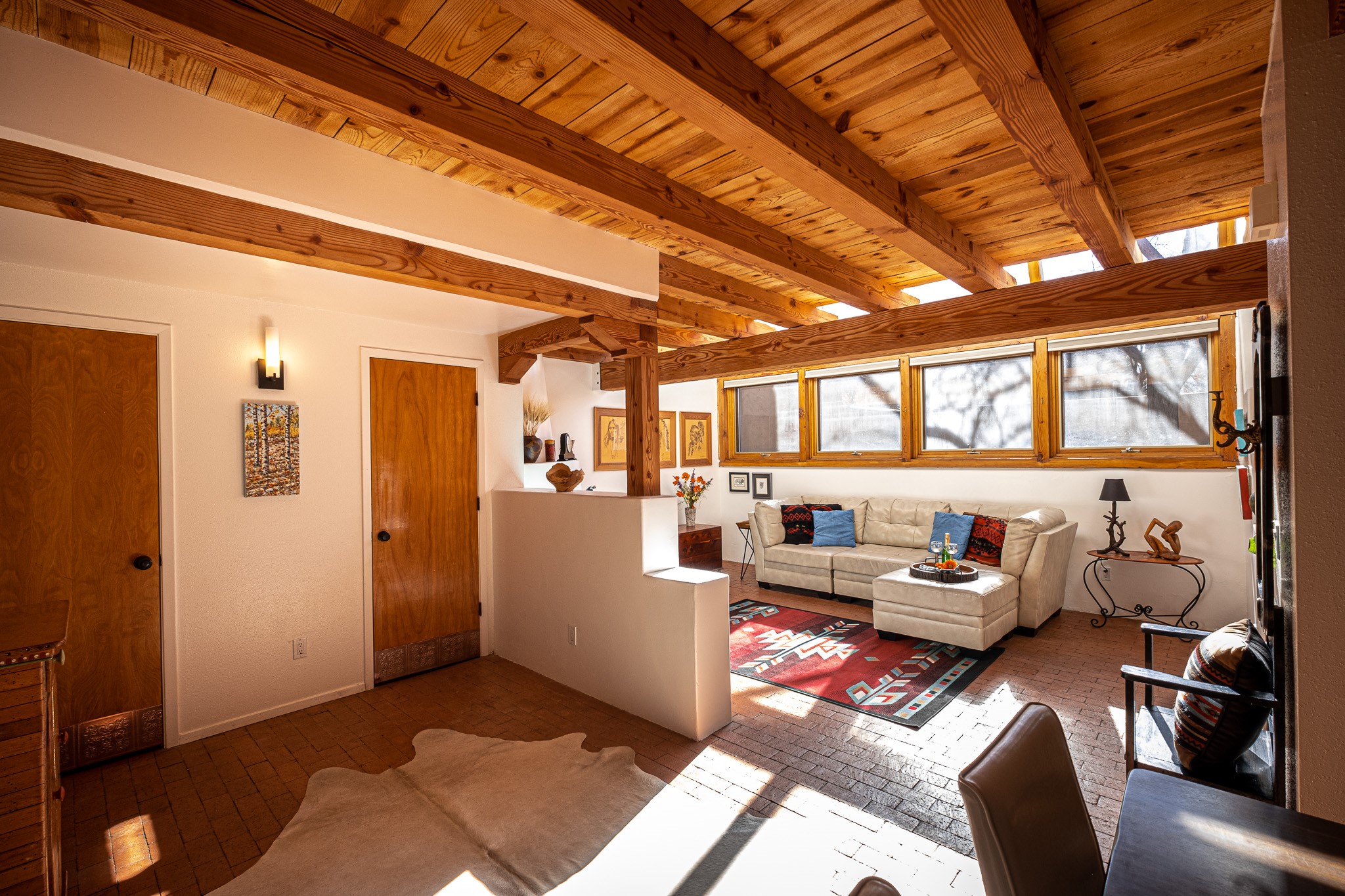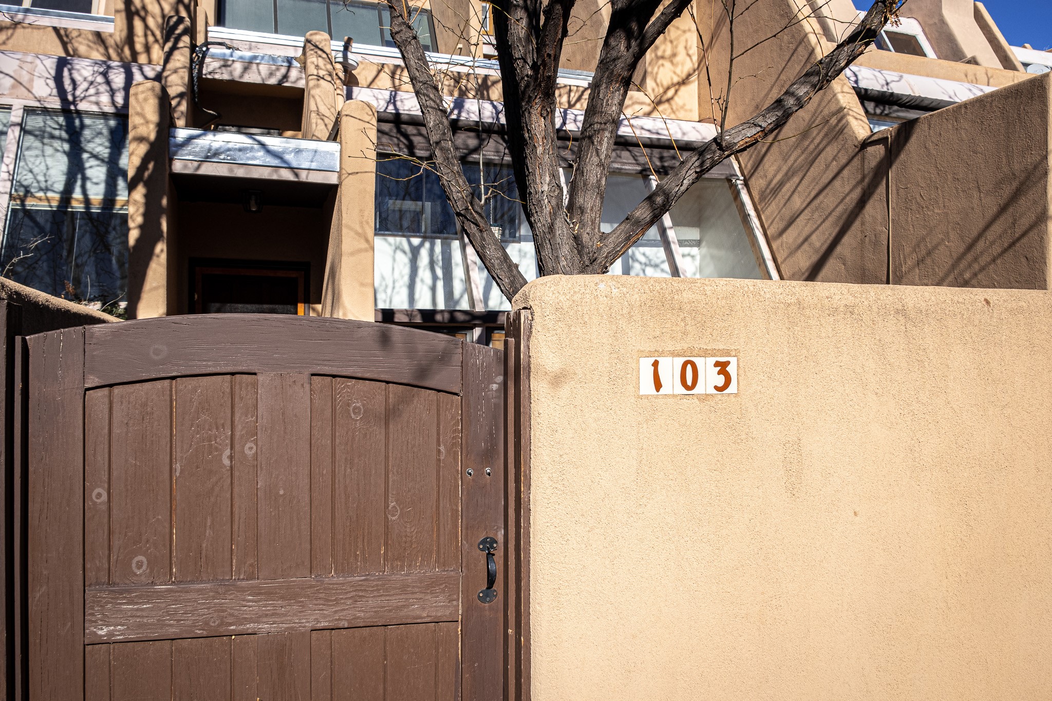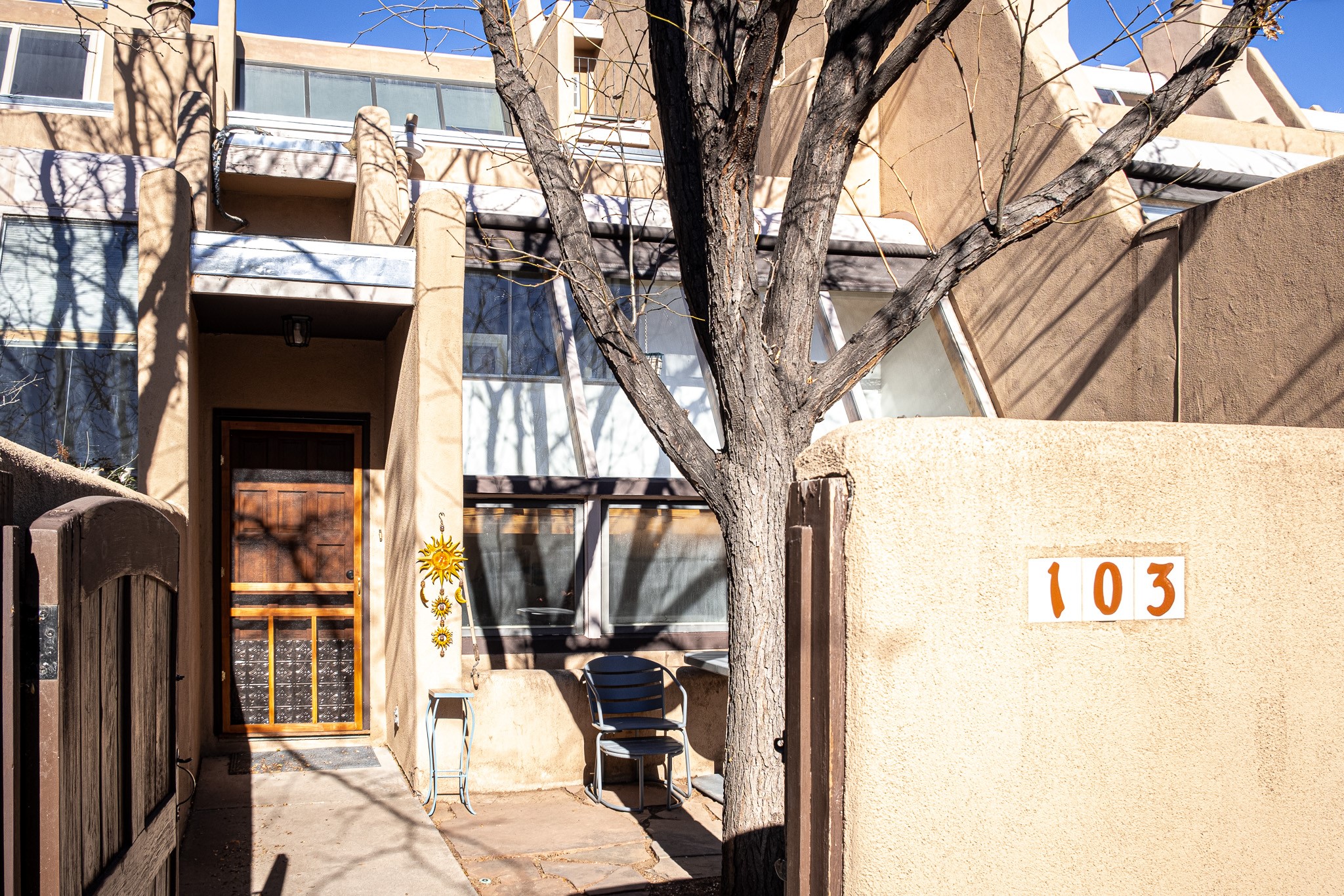 OPEN HOUSE ON SATURDAY- APRIL 1 AND SUNDAY- APRIL 2 FROM 1PM TO 4PM. SEE YOU THERE!This La Remuda condo is a hidden treasure, right in the heart of town!This unique property is located in a quiet, secluded area just 5 minutes from the plaza and 5 minutes from the interstate. You have a front patio area, large enough for entertaining. It is shaded in the summer by mature trees and there is plenty of parking for guests. Large, passive solar atrium windows bring in lots of bright sun light from the lower level of the condo to the upper level. You have a covered parking area and spacious storage at the back entrance of the condo. This is rare for Santa Fe. You enter the condo from the back door to a split level entrance where you may proceed upstairs to the bedrooms or downstairs to the living area. The tile on the stairs is newly installed as is the wood flooring upstairs. This home has been freshly painted throughout the lower living area and all vigas re-stained. The lower flooring is brick throughout the living, dining, powder room and kitchen area. High ceilings, beams and a kiva enhance the lower level for a very charming and inviting area. As it is below ground level, the lower level stays naturally cool in the summer. The upper level has an energy efficient mini split air conditioner in the master bedroom, which keeps the room as cool as you desire. come see for yourself and be sure to watch the video online as well. Home has a new roof as of NOV 2022..