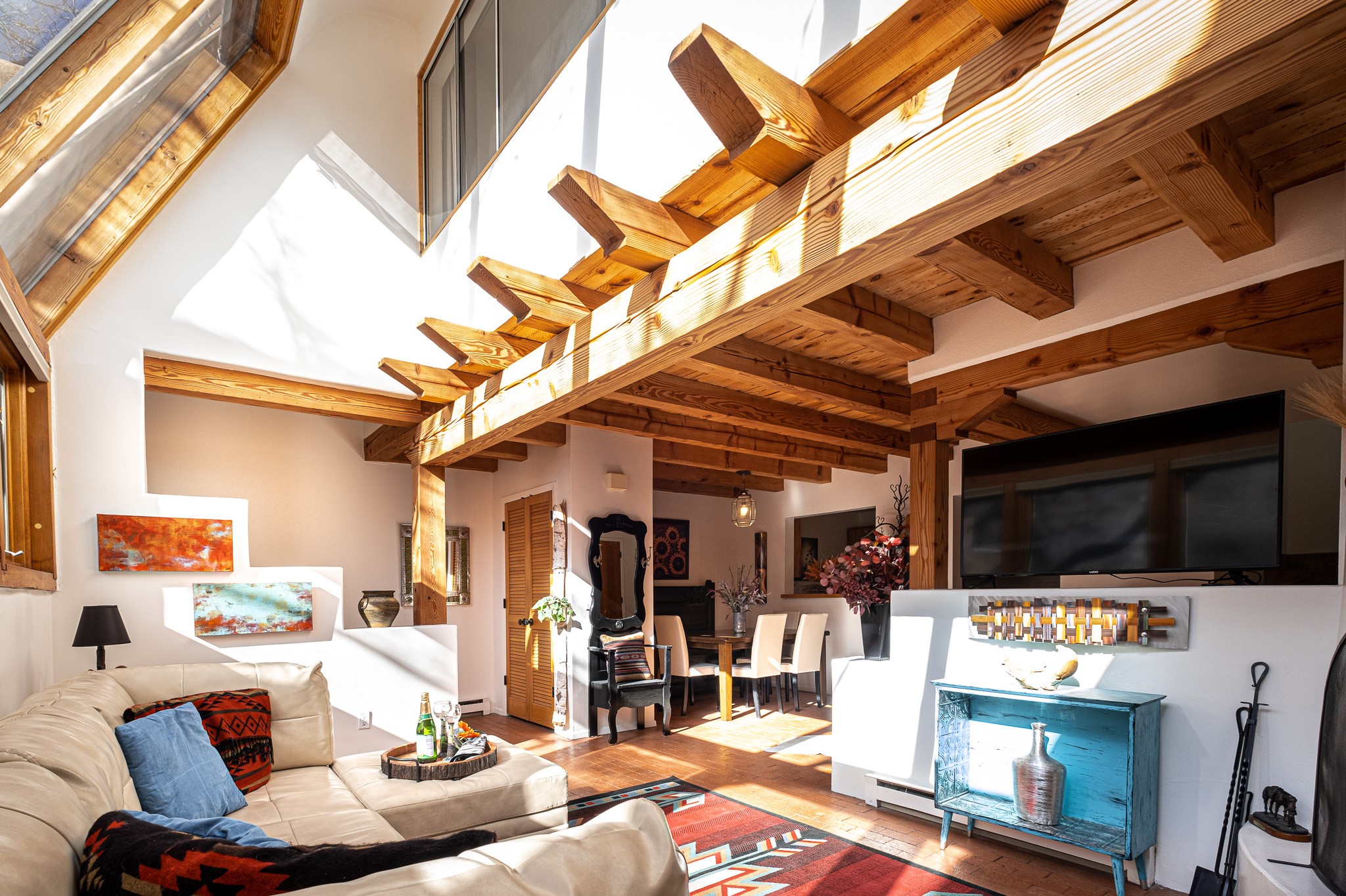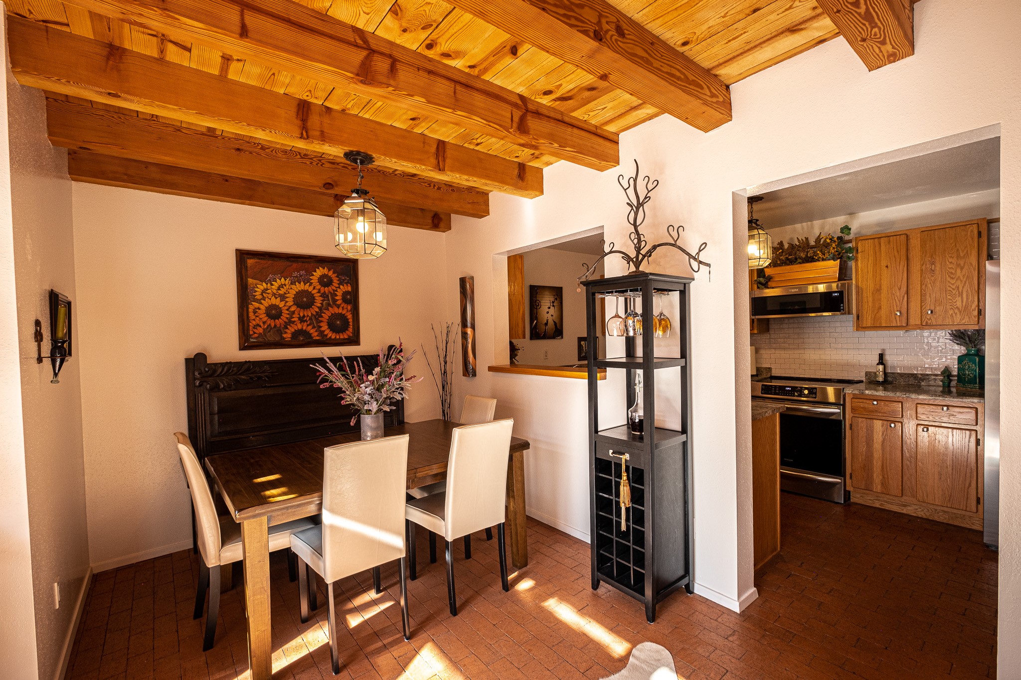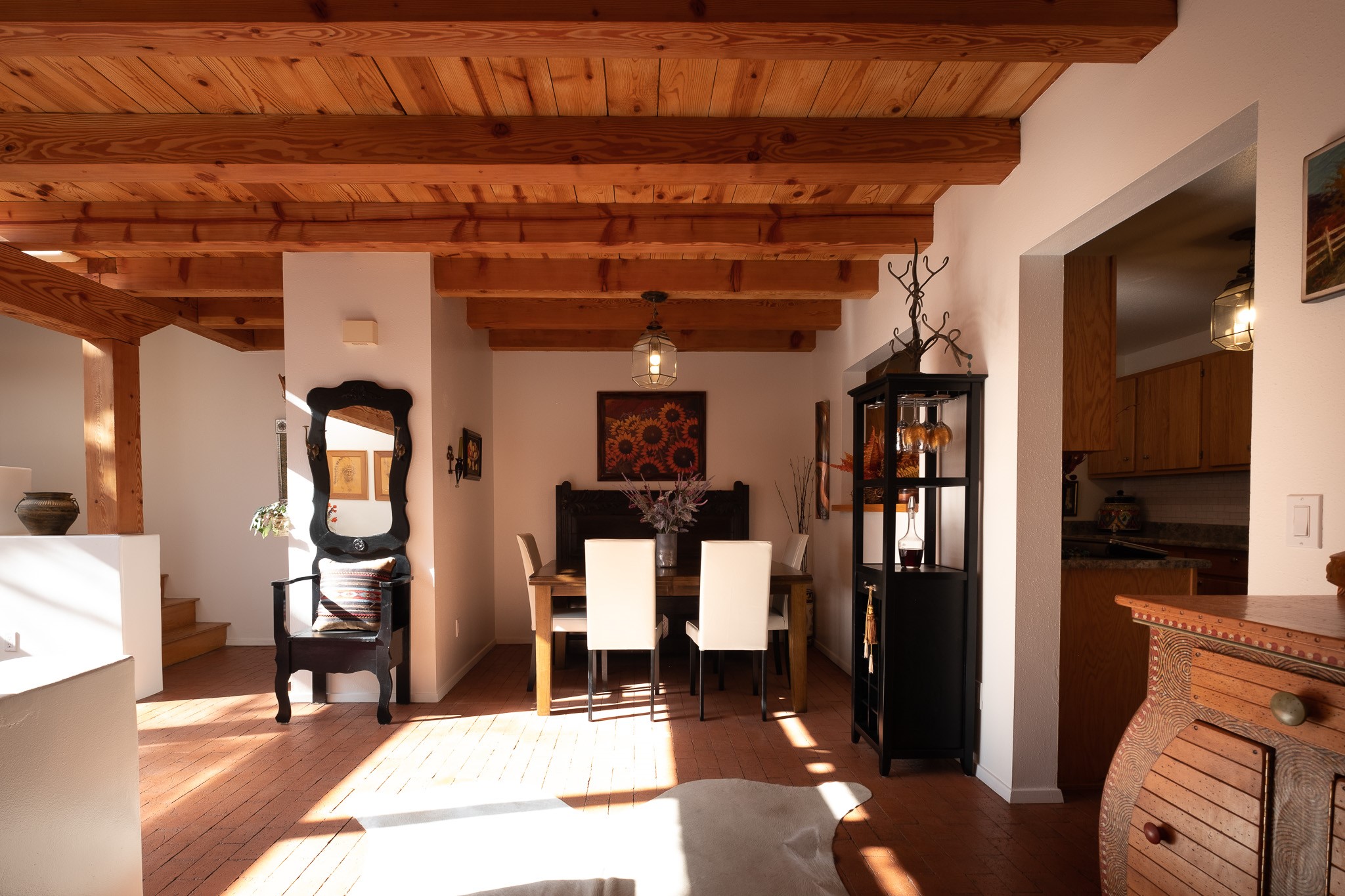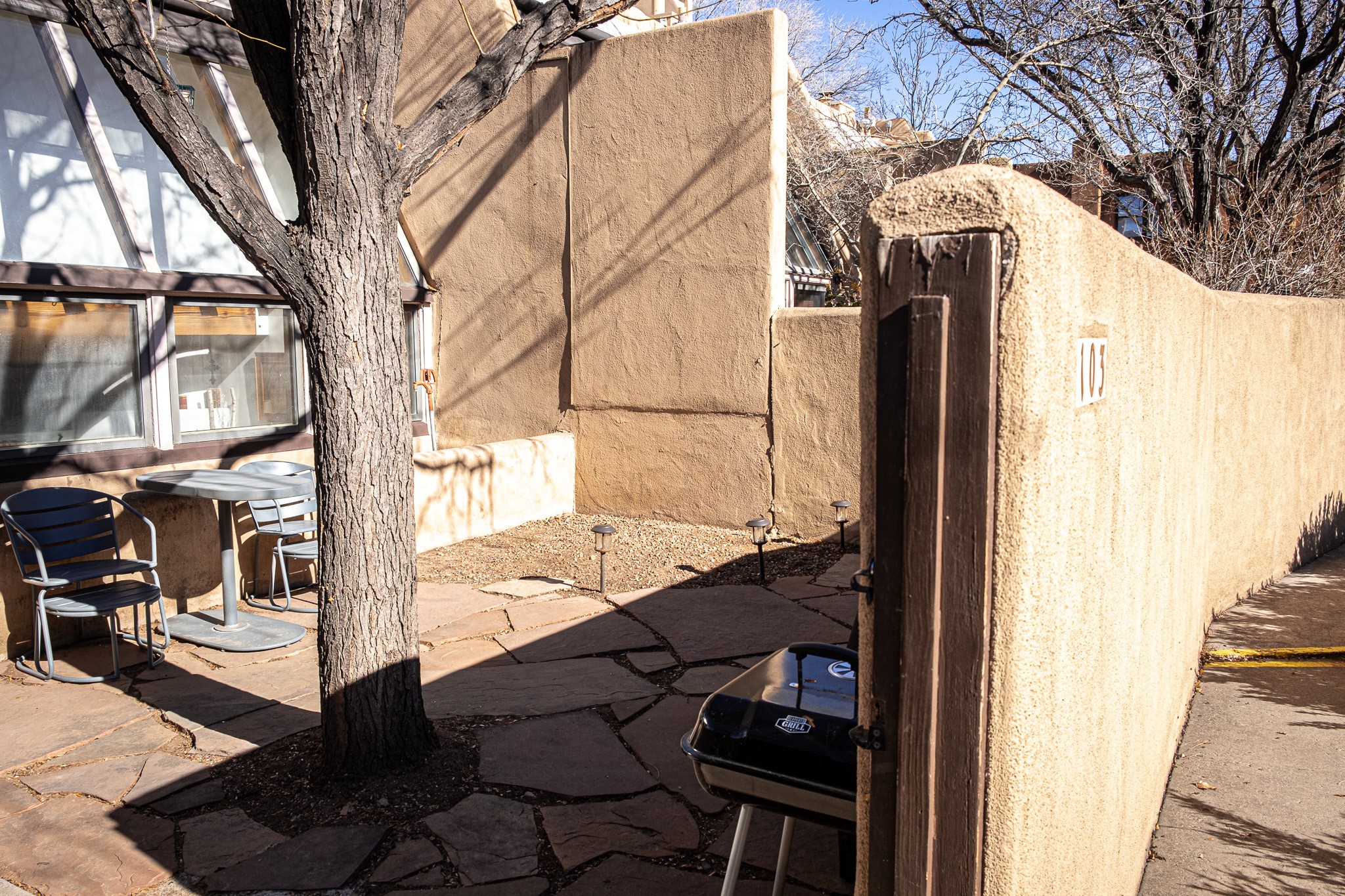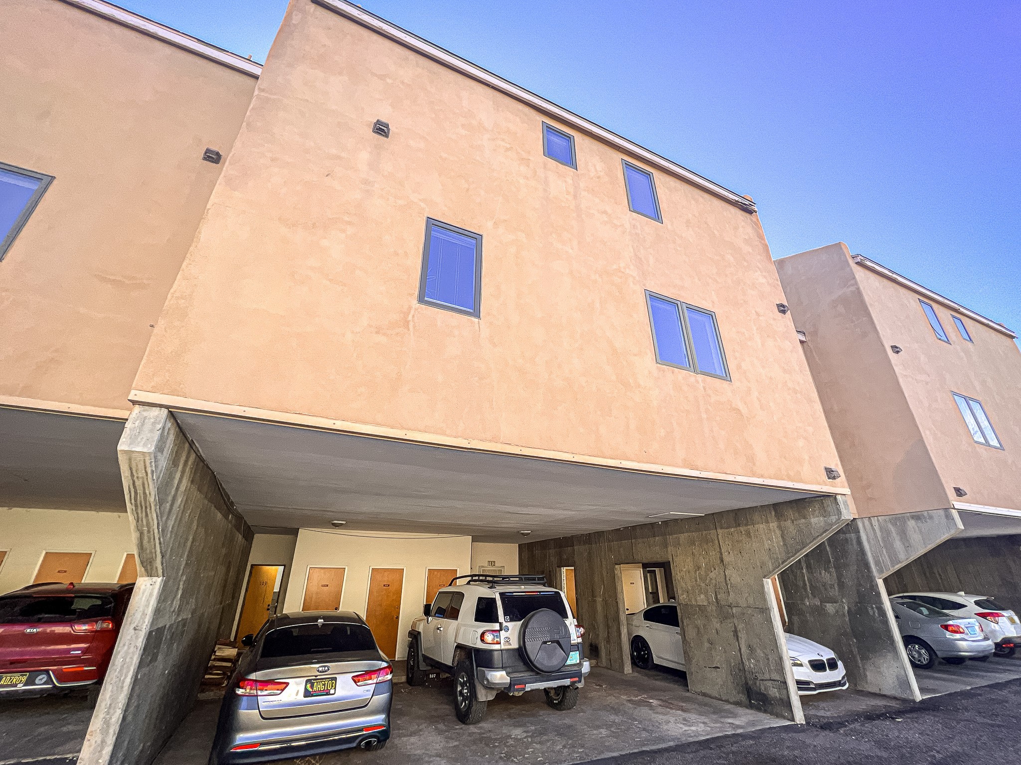 OPEN HOUSE ON SATURDAY- APRIL 1 AND SUNDAY- APRIL 2 FROM 1PM TO 4PM. SEE YOU THERE!This La Remuda condo is a hidden treasure, right in the heart of town!This unique property is located in a quiet, secluded area just 5 minutes from the plaza and 5 minutes from the interstate. You have a front patio area, large enough for entertaining. It is shaded in the summer by mature trees and there is plenty of parking for guests. Large, passive solar atrium windows bring in lots of bright sun light from the lower level of the condo to the upper level. You have a covered parking area and spacious storage at the back entrance of the condo. This is rare for Santa Fe. You enter the condo from the back door to a split level entrance where you may proceed upstairs to the bedrooms or downstairs to the living area. The tile on the stairs is newly installed as is the wood flooring upstairs. This home has been freshly painted throughout the lower living area and all vigas re-stained. The lower flooring is brick throughout the living, dining, powder room and kitchen area. High ceilings, beams and a kiva enhance the lower level for a very charming and inviting area. As it is below ground level, the lower level stays naturally cool in the summer. The upper level has an energy efficient mini split air conditioner in the master bedroom, which keeps the room as cool as you desire. come see for yourself and be sure to watch the video online as well. Home has a new roof as of NOV 2022..