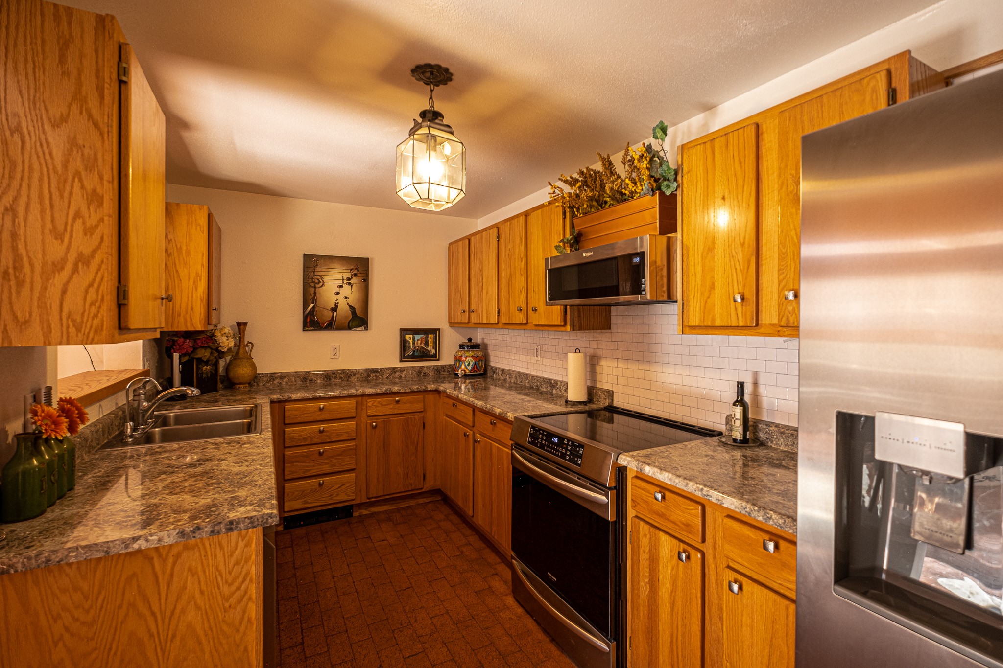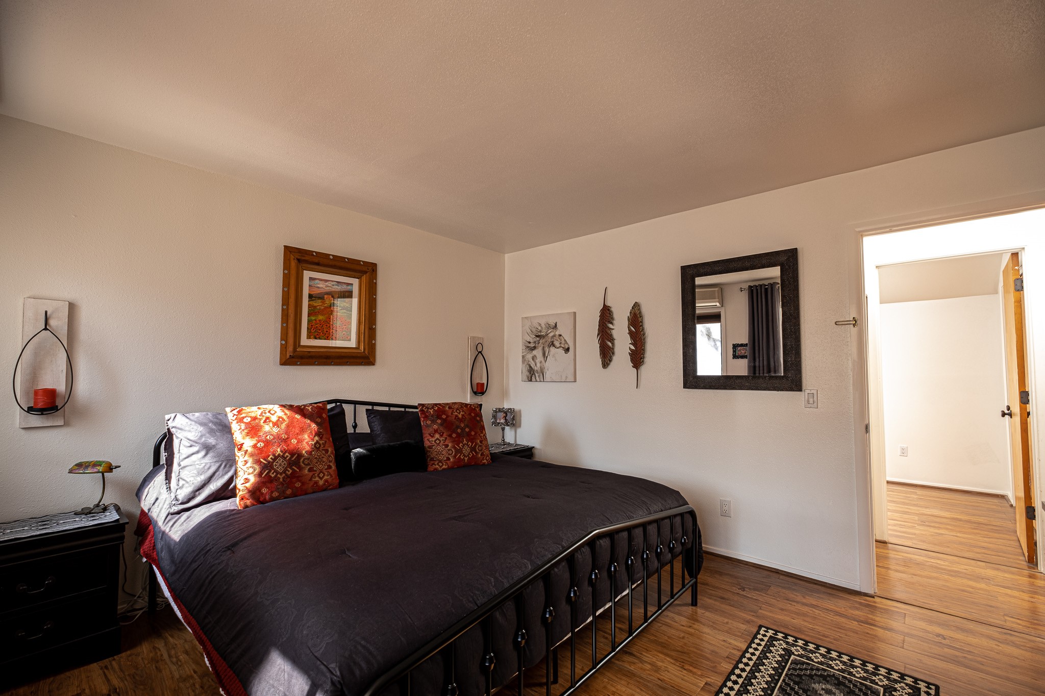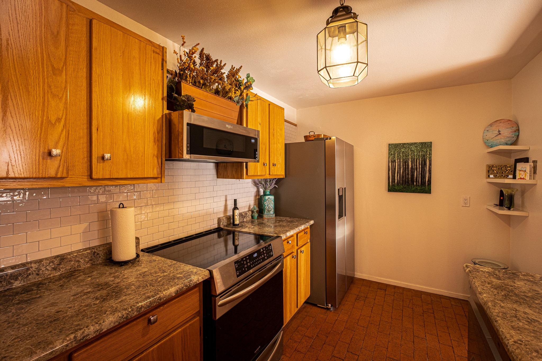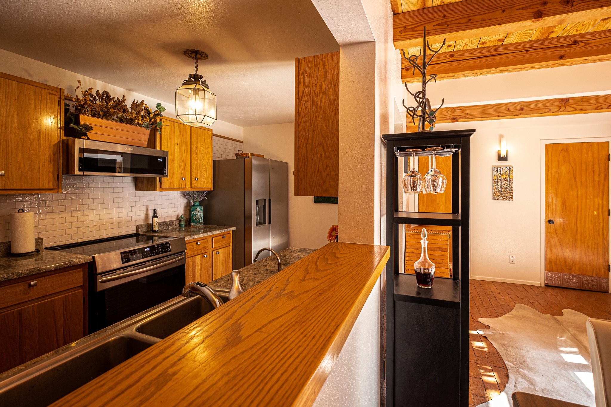 OPEN HOUSE ON SATURDAY- APRIL 1 AND SUNDAY- APRIL 2 FROM 1PM TO 4PM. SEE YOU THERE!This La Remuda condo is a hidden treasure, right in the heart of town!This unique property is located in a quiet, secluded area just 5 minutes from the plaza and 5 minutes from the interstate. You have a front patio area, large enough for entertaining. It is shaded in the summer by mature trees and there is plenty of parking for guests. Large, passive solar atrium windows bring in lots of bright sun light from the lower level of the condo to the upper level. You have a covered parking area and spacious storage at the back entrance of the condo. This is rare for Santa Fe. You enter the condo from the back door to a split level entrance where you may proceed upstairs to the bedrooms or downstairs to the living area. The tile on the stairs is newly installed as is the wood flooring upstairs. This home has been freshly painted throughout the lower living area and all vigas re-stained. The lower flooring is brick throughout the living, dining, powder room and kitchen area. High ceilings, beams and a kiva enhance the lower level for a very charming and inviting area. As it is below ground level, the lower level stays naturally cool in the summer. The upper level has an energy efficient mini split air conditioner in the master bedroom, which keeps the room as cool as you desire. come see for yourself and be sure to watch the video online as well. Home has a new roof as of NOV 2022..