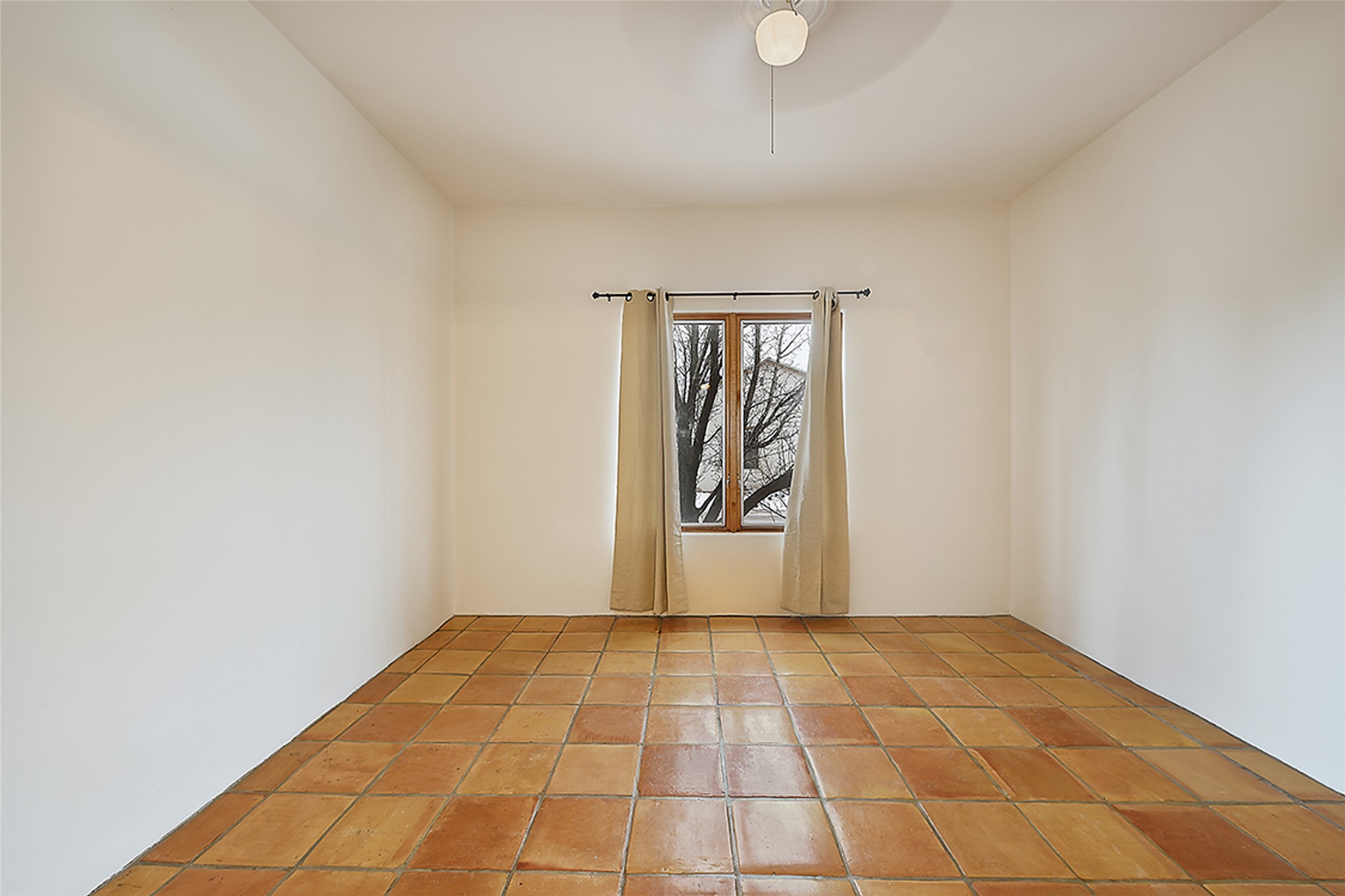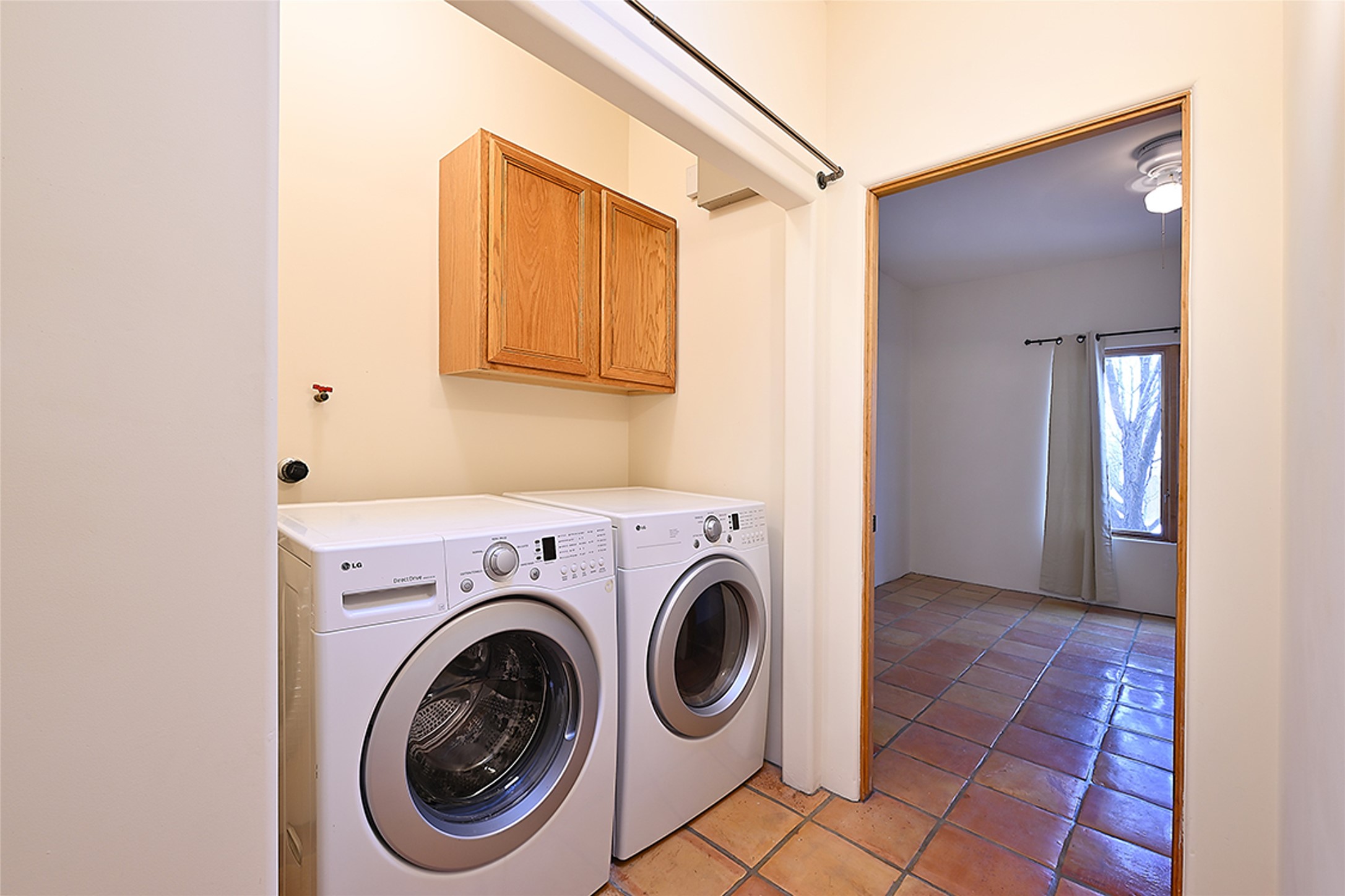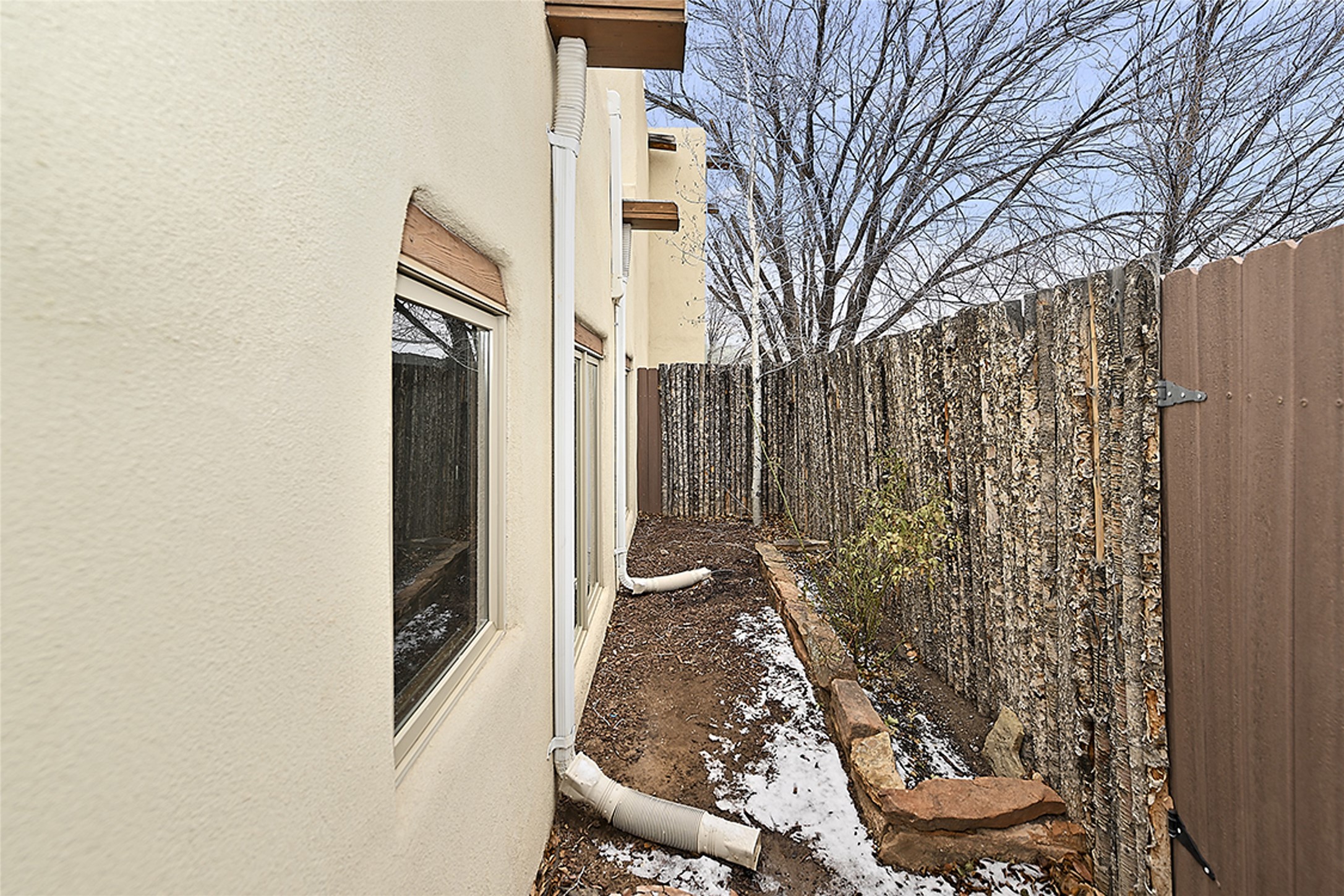 Located in a quiet neighborhood off Henry Lynch Road, this 2 bedroom 2 bath condo is defined by iconic Santa Fe features such as Saltillo tile floors, high ceilings with vigas, and a kiva fireplace. Galley kitchen is appointed with crisp white cabinets and newer stainless-steel appliances. No interior stairs and freshly painted throughout. Owner's bedroom has ensuite bathroom and walk-in closet. Second bedroom offers flex space as an office or studio. Both bathrooms incorporate beautiful Mexican tile. Washer and dryer. One-car carport. Close to shopping and restaurants with easy access to the Santa Fe Plaza and other cultural attractions. Backs to Nye Early Childhood Center.