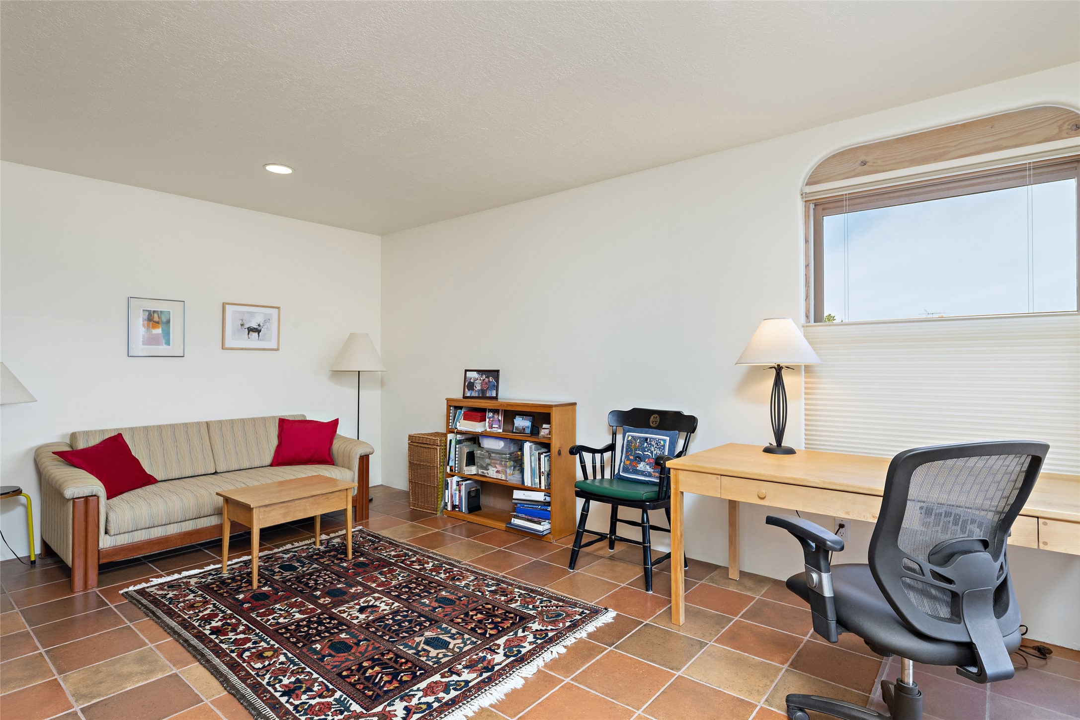 Spectacular Sangre de Cristo and city views, conveniently located in Santa Fe Estates, thoughtfully sited on an elevated 1.178 acres with an additional 1.555-acre lot for privacy...858 Camino Francisca beckons its new owner. This well-designed, 2649 sq.ft. floor plan maximizes the outdoor vistas from most every room. Imagine seeing Mt. Baldy, Santa Fe Ski Basin, the St. Francis Basilica Cathedral, and The Capitol Building in one sweeping north to south view from your living room, dining area, family room, kitchen and primary bedroom. Surrounded by mature pinon and juniper-laden open space, there are also views to the Ortiz mountains to the south. This light-filled, 3 bedroom, 2 bath Pueblo-style residence has been meticulously maintained and offers high ceilings, two kiva fireplaces, vigas, beams and nichos. The open kitchen was recently remodeled. An enclosed Sunroom gives way to a lovely patio and landscaped outdoor spaces which attract hundreds of birds including Western bluebirds and numerous hummingbird species. Minutes to Route 599, this property provides easy access to the Plaza, the Santa Fe Airport and Highway 84/285 to Los Alamos.
