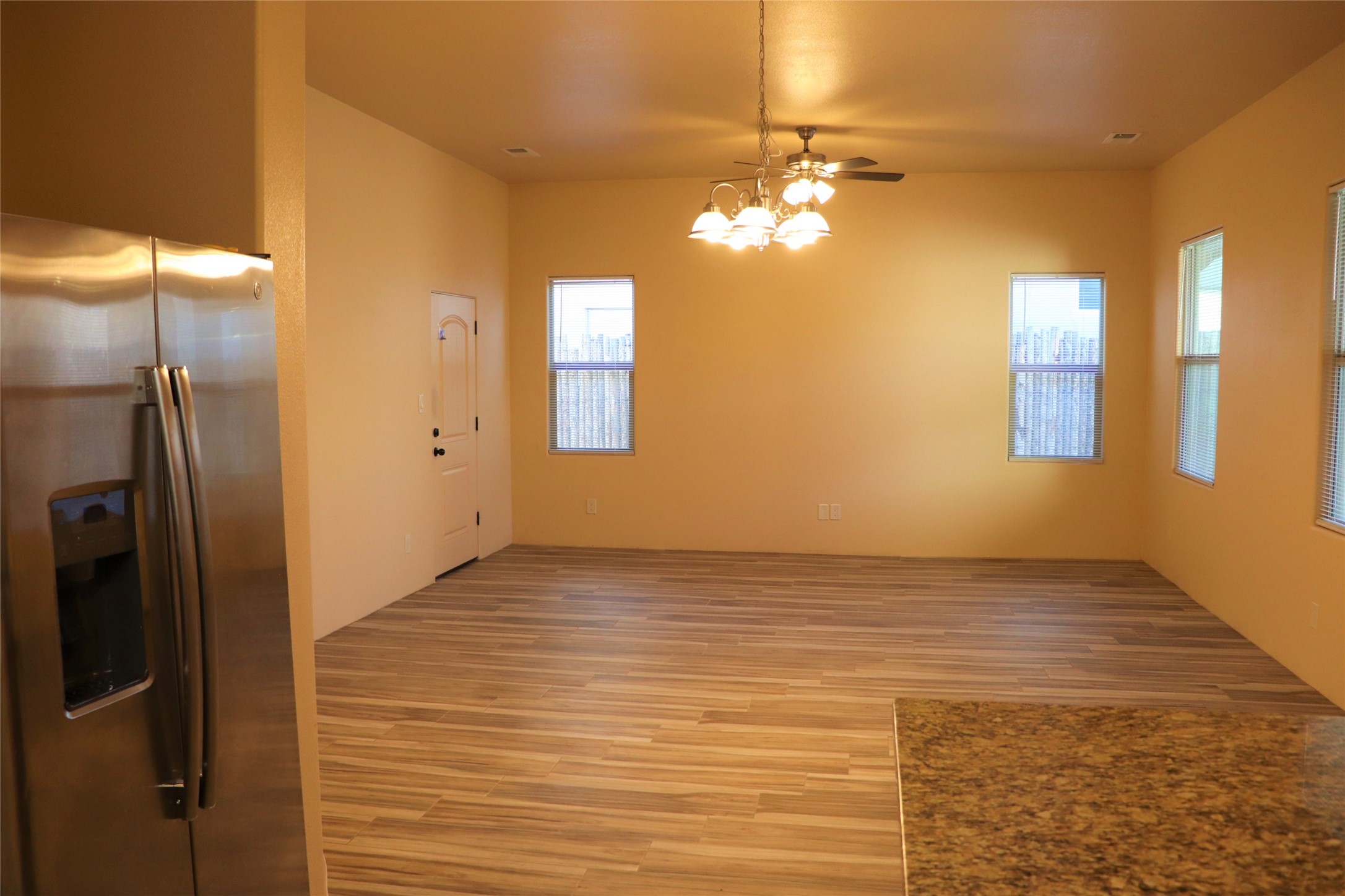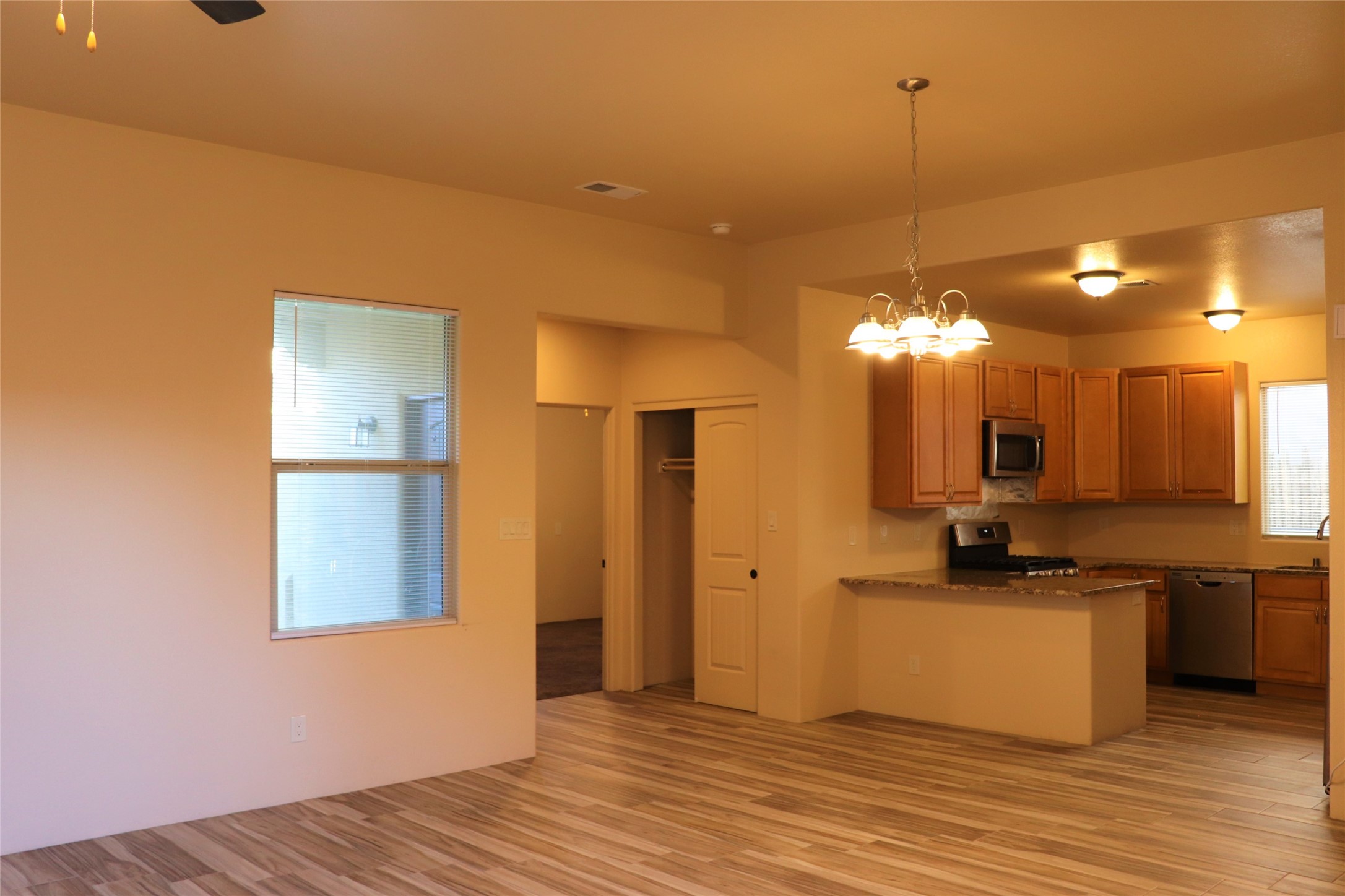 Like New and Available Now! Built in 2019, this single level, modern, one owner, fully fenced, landscaped, freestanding Santa Fe Home has 3 Bedrooms, 2 Full Baths, and an attached, fully finished 2 car Garage with direct access. Refrigerated air conditioning, energy efficient features and easy access the Santa Fe Airport and the Santa Fe Relief Route (NM 599) from I-25 to US-84/285. No inside stairs, no carpet except in the bedrooms, nice finishes, Stainless Steel appliances, granite countertops, high ceilings in the living room and ready for quick possession! There's a paved alley in the back of the property that's used to access the Garage and the extra parking. Easy to show with a 24 hour notice. Schedule your showing today!