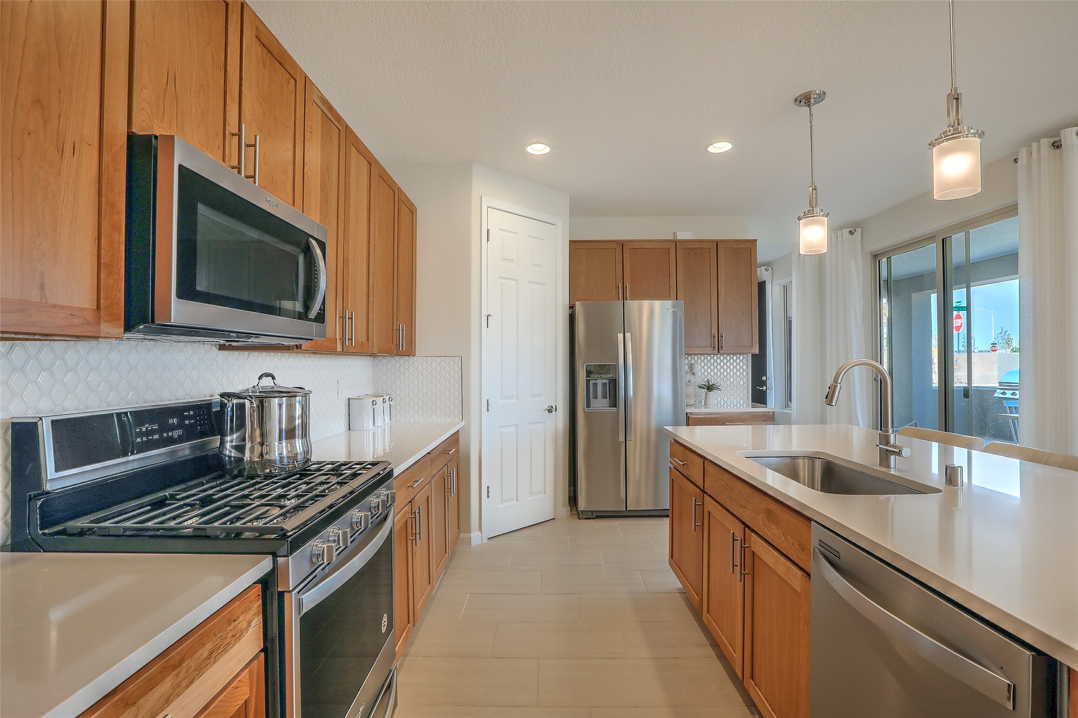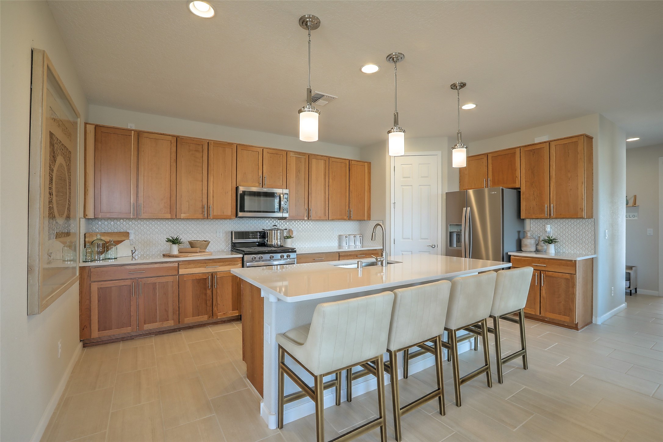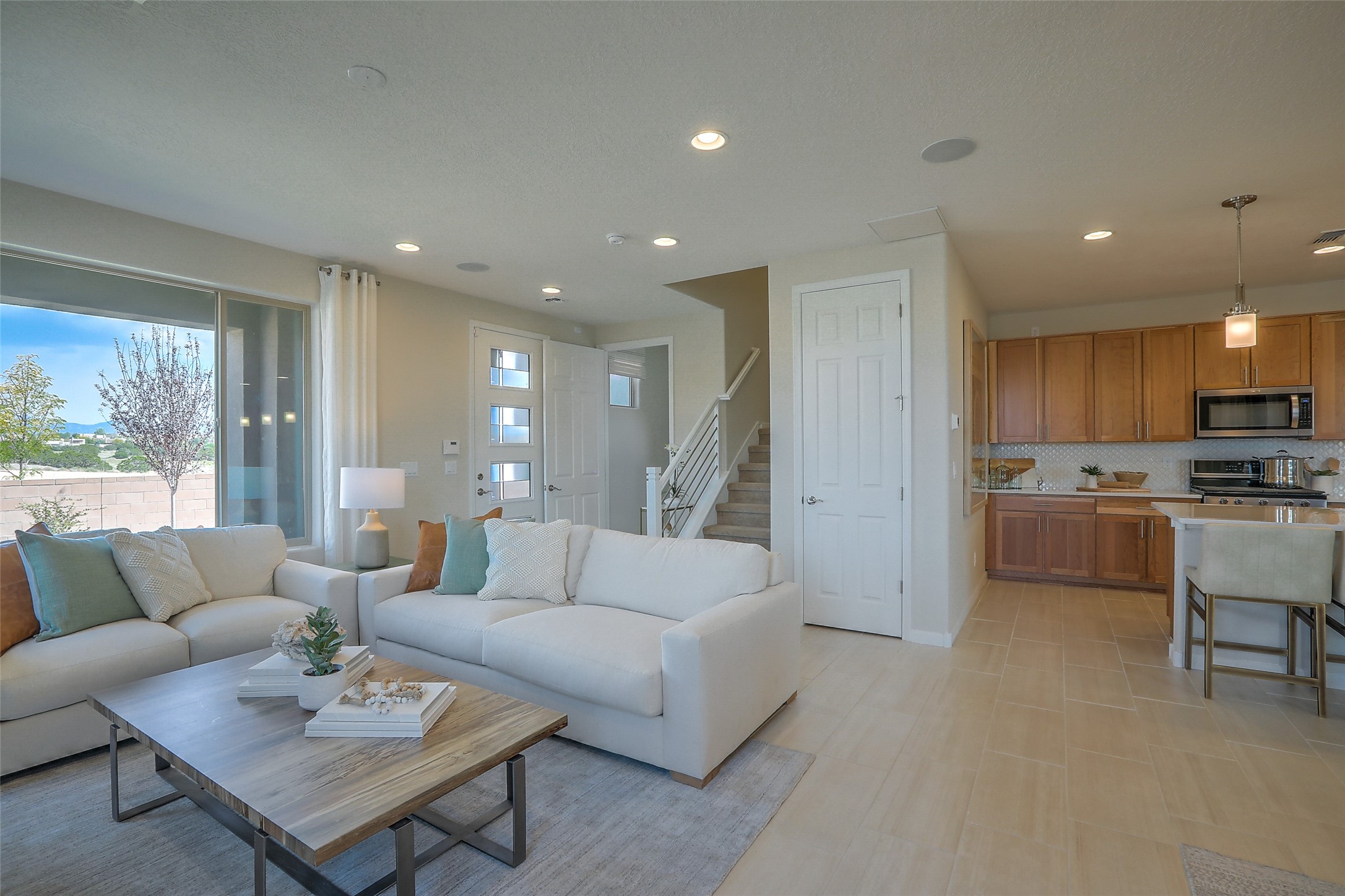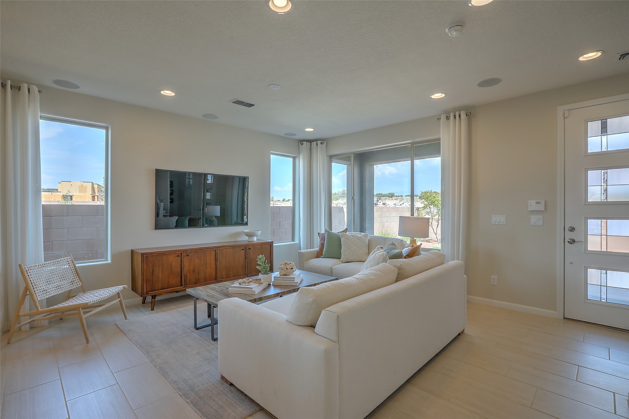 This brand-new energy efficient Pulte home is Ready Now! This spacious home features an open concept floorplan that will be great for friends and family to gather. Enjoy cooking with built-in stainless-steel appliances, gas cooktop, Quartz kitchen countertops, and beautifully upgraded flooring. Relax in the spacious owner's suite featuring a large shower and walk-in closet with lots of storage. The large, covered patio lends itself well to entertaining or just enjoying the beautiful Santa Fe weather. The Villas de Las Soleras Community offers walking trails, grassy areas, a community garden, and is conveniently located next to I-25 and only 20 minutes from downtown Santa Fe.