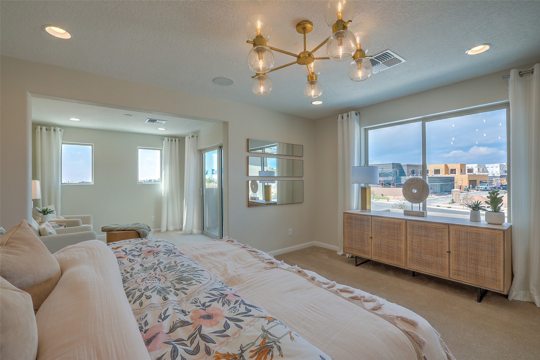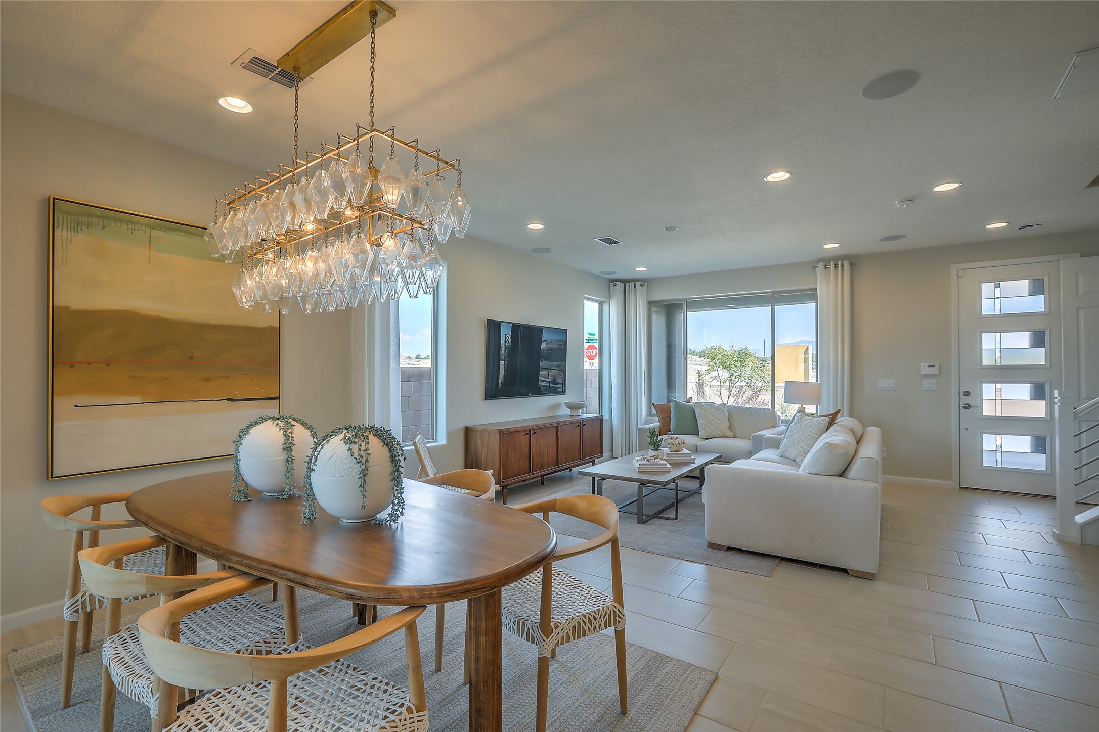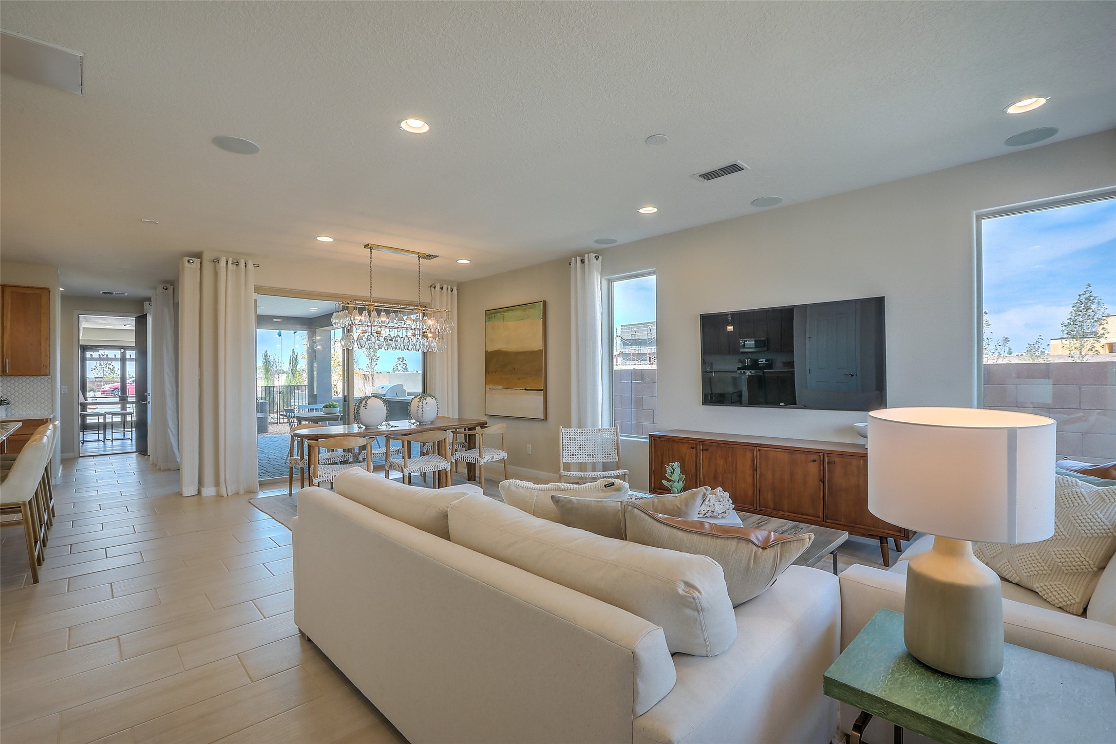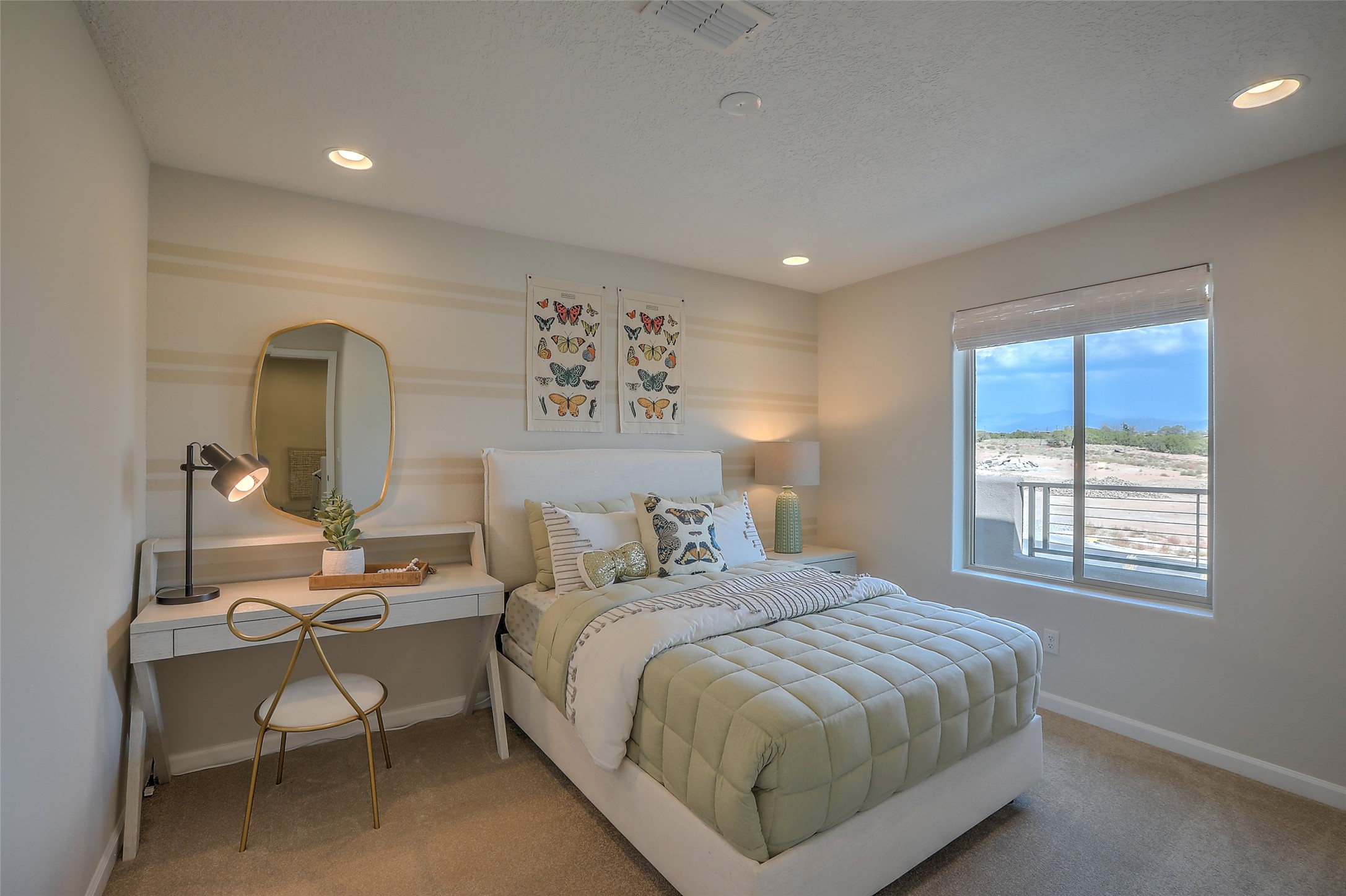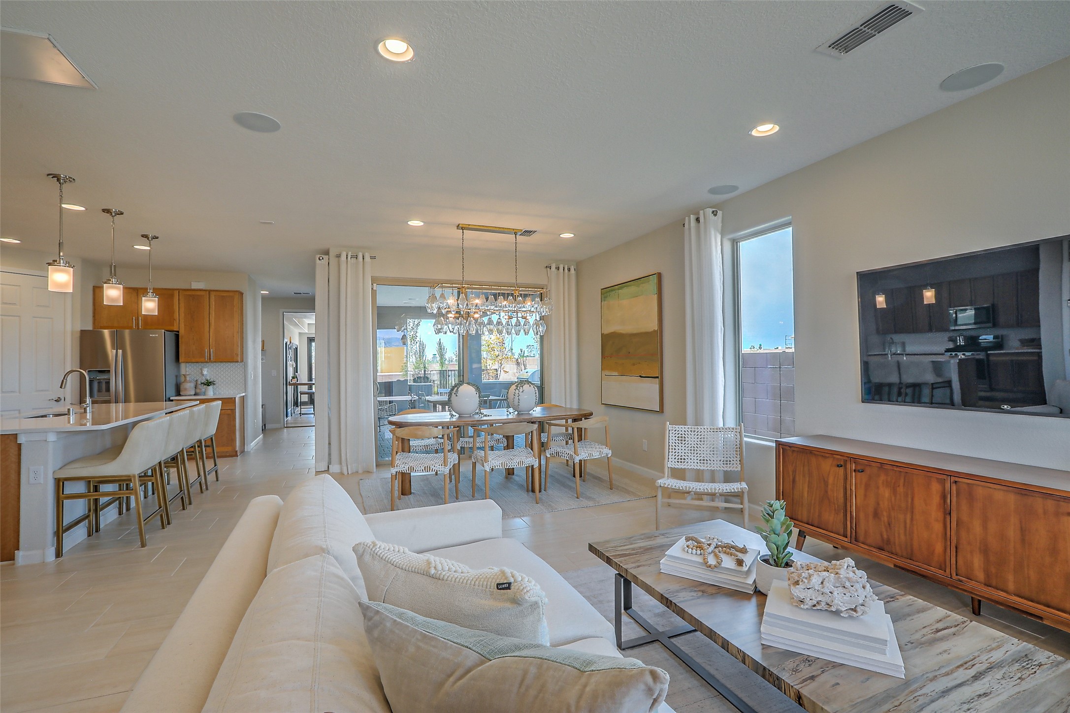 This brand-new energy efficient Pulte home is Ready Now! This spacious home features an open concept floorplan that will be great for friends and family to gather. Enjoy cooking with built-in stainless-steel appliances, gas cooktop, Quartz kitchen countertops, and beautifully upgraded flooring. Relax in the spacious owner's suite featuring a large shower and walk-in closet with lots of storage. The large, covered patio lends itself well to entertaining or just enjoying the beautiful Santa Fe weather. The Villas de Las Soleras Community offers walking trails, grassy areas, a community garden, and is conveniently located next to I-25 and only 20 minutes from downtown Santa Fe.