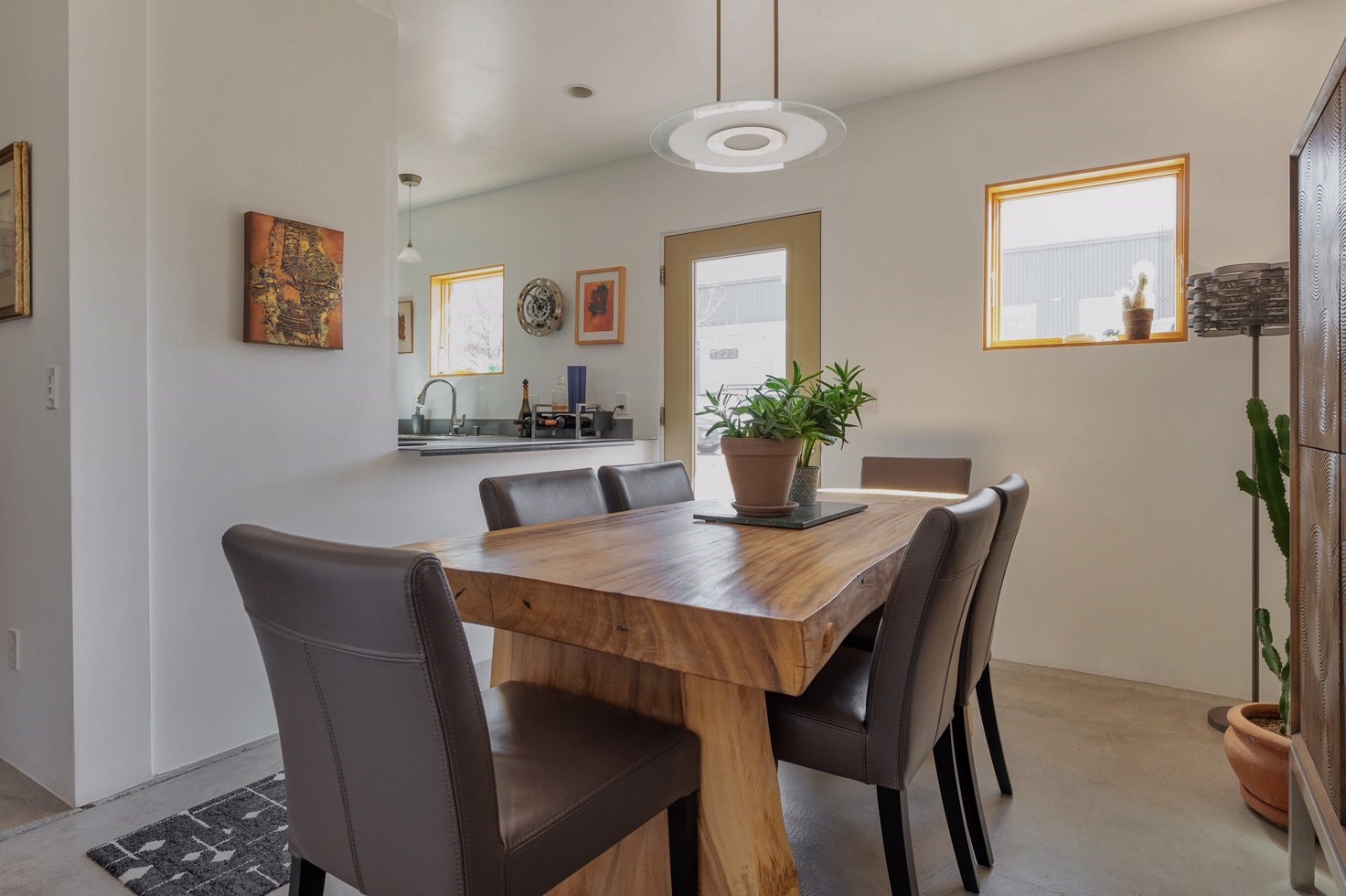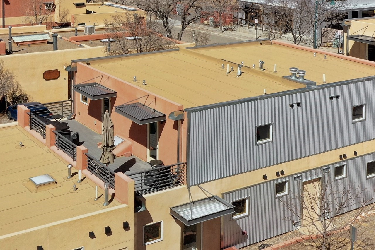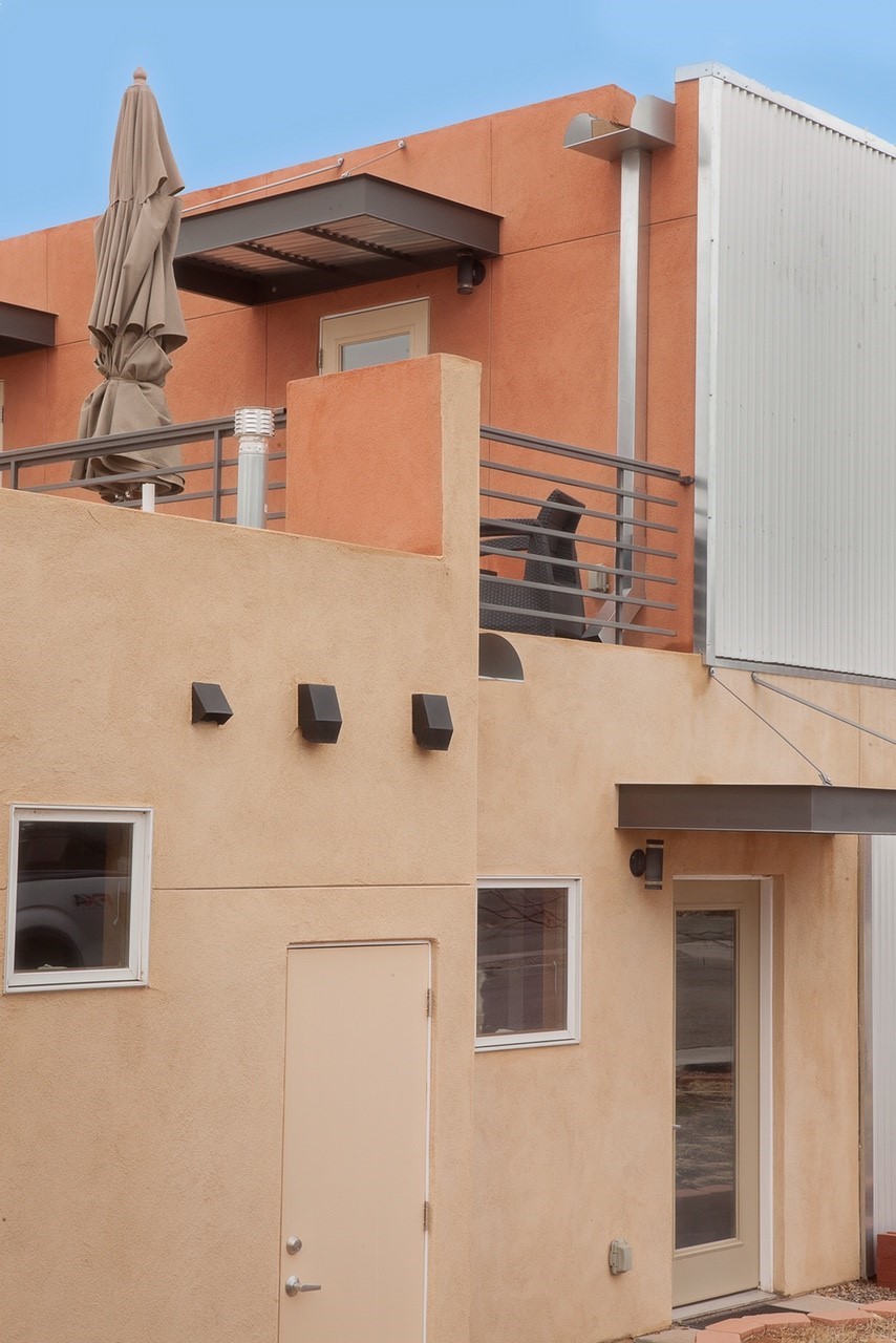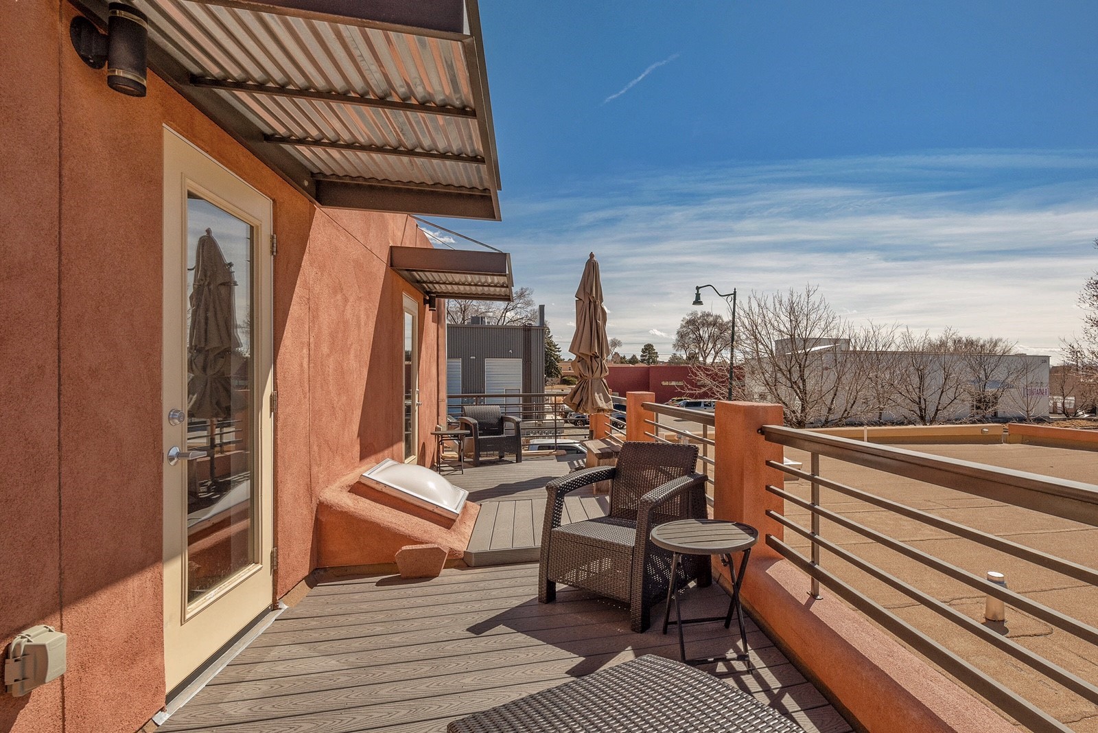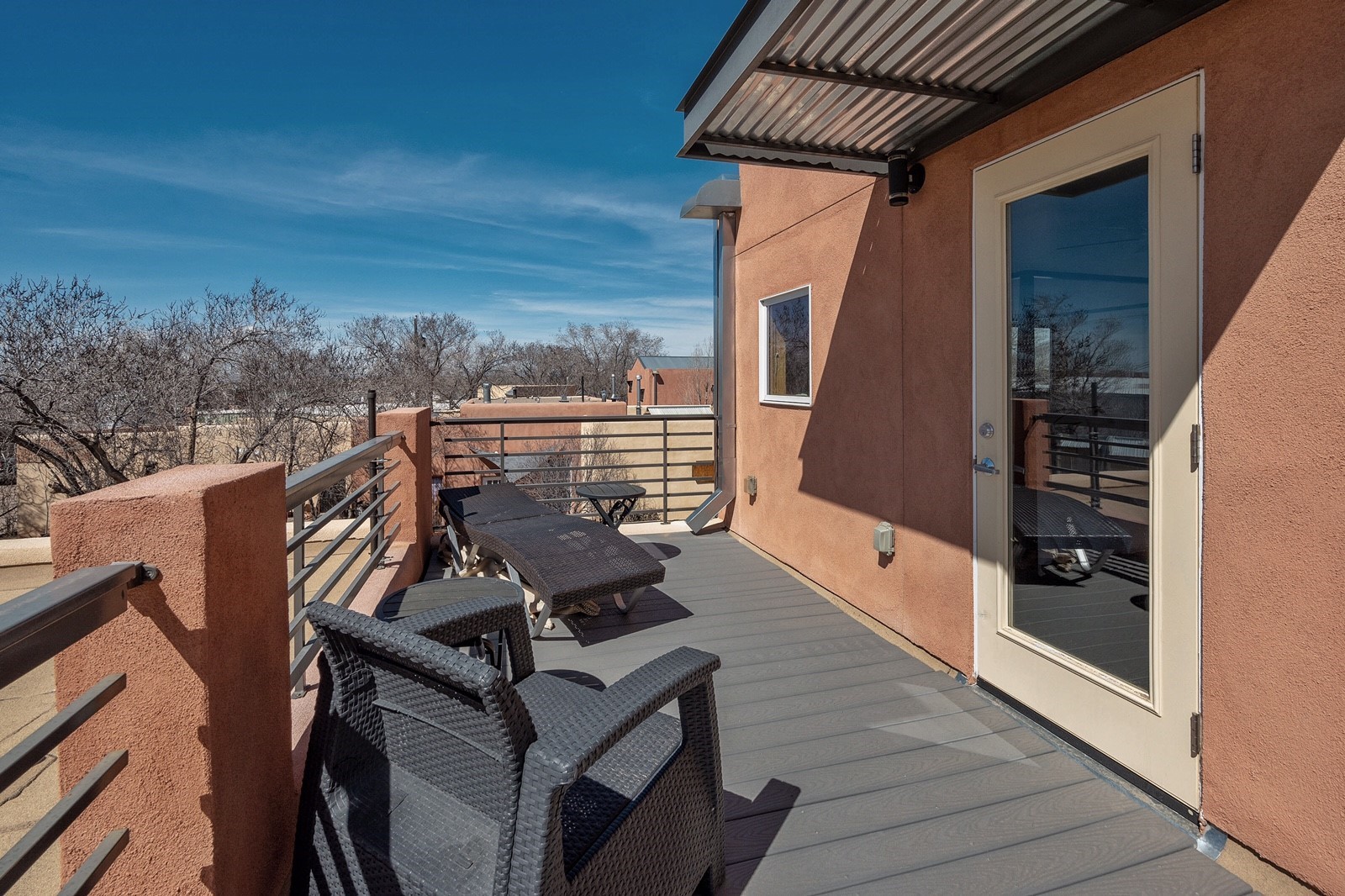 Are you searching for a modern feel in the City Different? The Twisted Cow Condominium community in the Baca Street section of the Railyard District is the perfect place , with it's contemporary city vibe and the light industrial buildings that house art galleries and offices. This live-work condo is light and bright with a deck on the 2nd floor to enjoy sunsets or your morning coffee. This unit is 1408 square feet featuring 2 bedrooms with 2 full bathrooms upstairs and a bath downstairs. The finishes are modern and sleek, creating adding to the contemporary feel. This is an artistic/creative compound with live-work spaces along with individual studios. There is a creative requirement for any resident with a buyer statement of use form in documents that must be filled out. This is a land lease property with dues paid quarterly. Local restaurants, Counter Culture and Cafecito are close. Whole Foods, Trader Joe's and Natural Grocer are walking distance (under a mile). The Trailhead jogging and bike path takes off near Cafecito leading you to all the activities at the main Railyard District near Paseo de Peralta and Guadalupe.