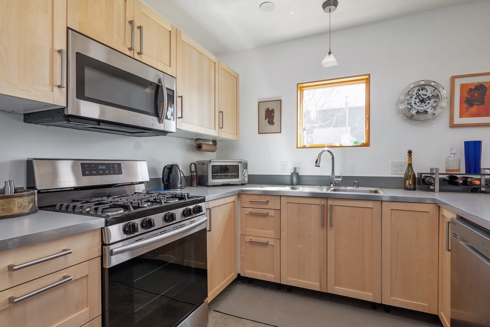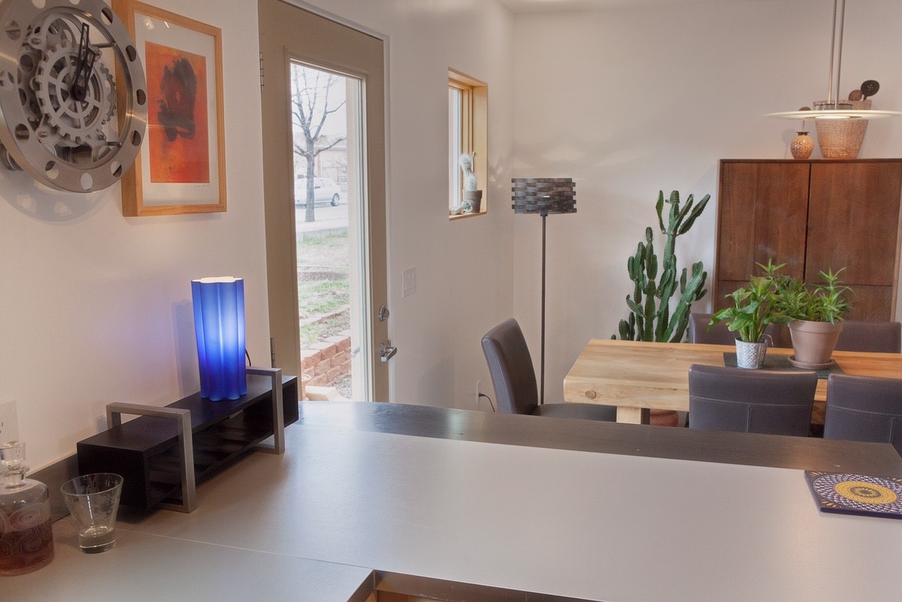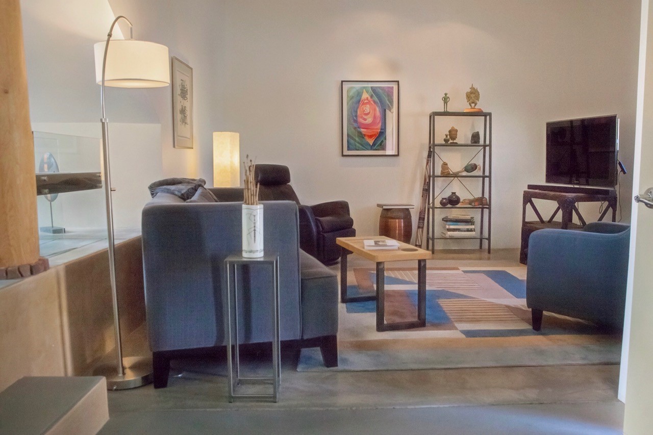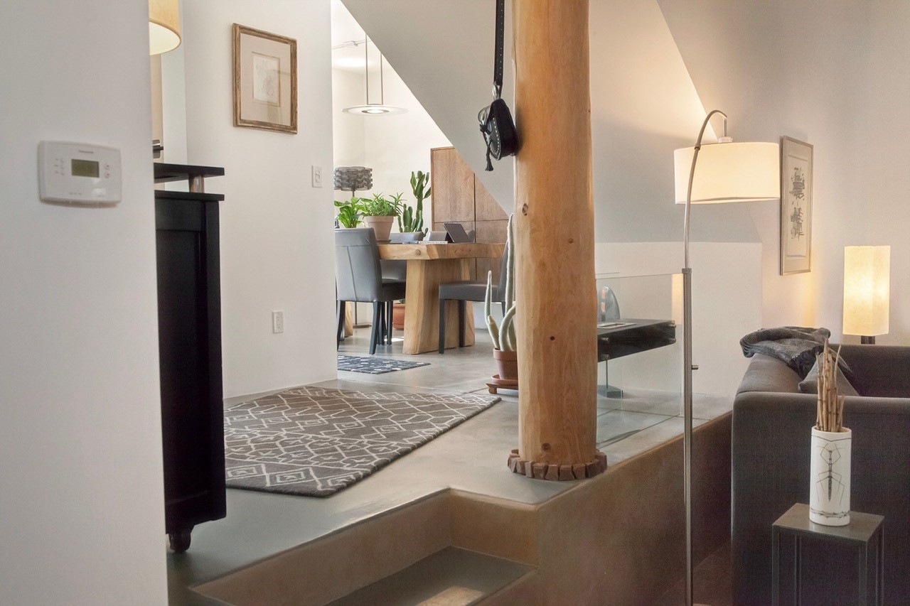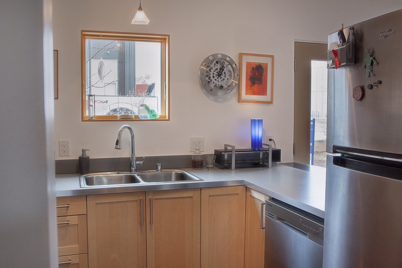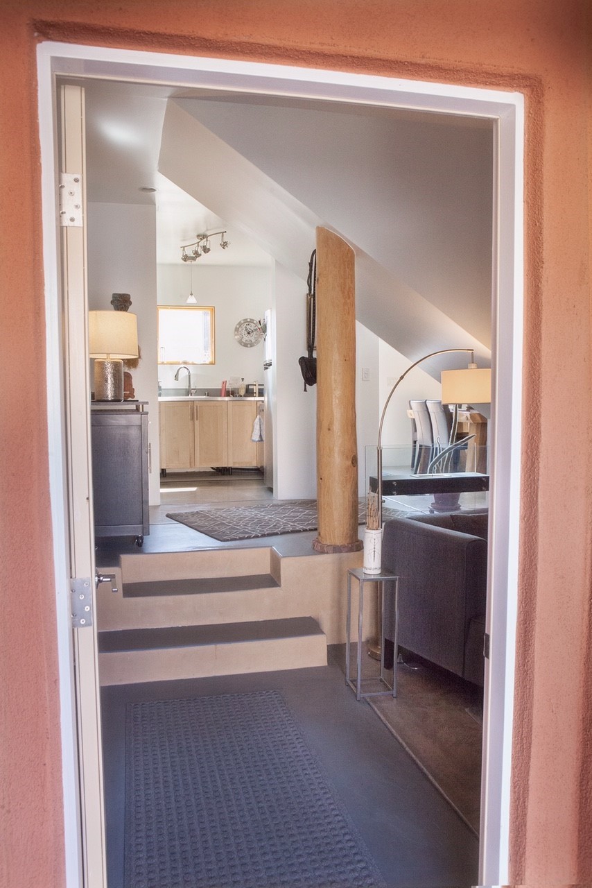 Are you searching for a modern feel in the City Different? The Twisted Cow Condominium community in the Baca Street section of the Railyard District is the perfect place , with it's contemporary city vibe and the light industrial buildings that house art galleries and offices. This live-work condo is light and bright with a deck on the 2nd floor to enjoy sunsets or your morning coffee. This unit is 1408 square feet featuring 2 bedrooms with 2 full bathrooms upstairs and a bath downstairs. The finishes are modern and sleek, creating adding to the contemporary feel. This is an artistic/creative compound with live-work spaces along with individual studios. There is a creative requirement for any resident with a buyer statement of use form in documents that must be filled out. This is a land lease property with dues paid quarterly. Local restaurants, Counter Culture and Cafecito are close. Whole Foods, Trader Joe's and Natural Grocer are walking distance (under a mile). The Trailhead jogging and bike path takes off near Cafecito leading you to all the activities at the main Railyard District near Paseo de Peralta and Guadalupe.