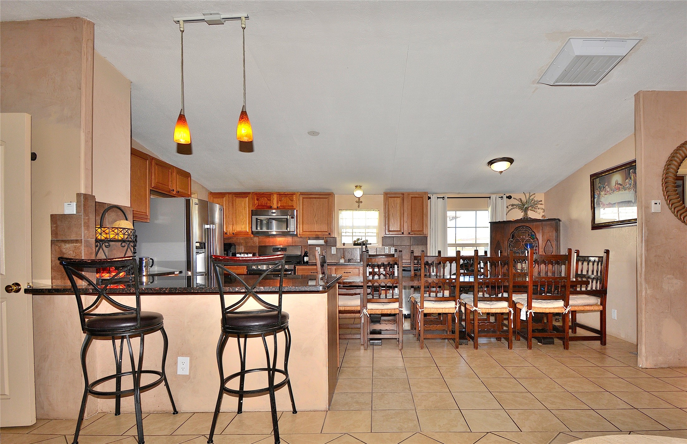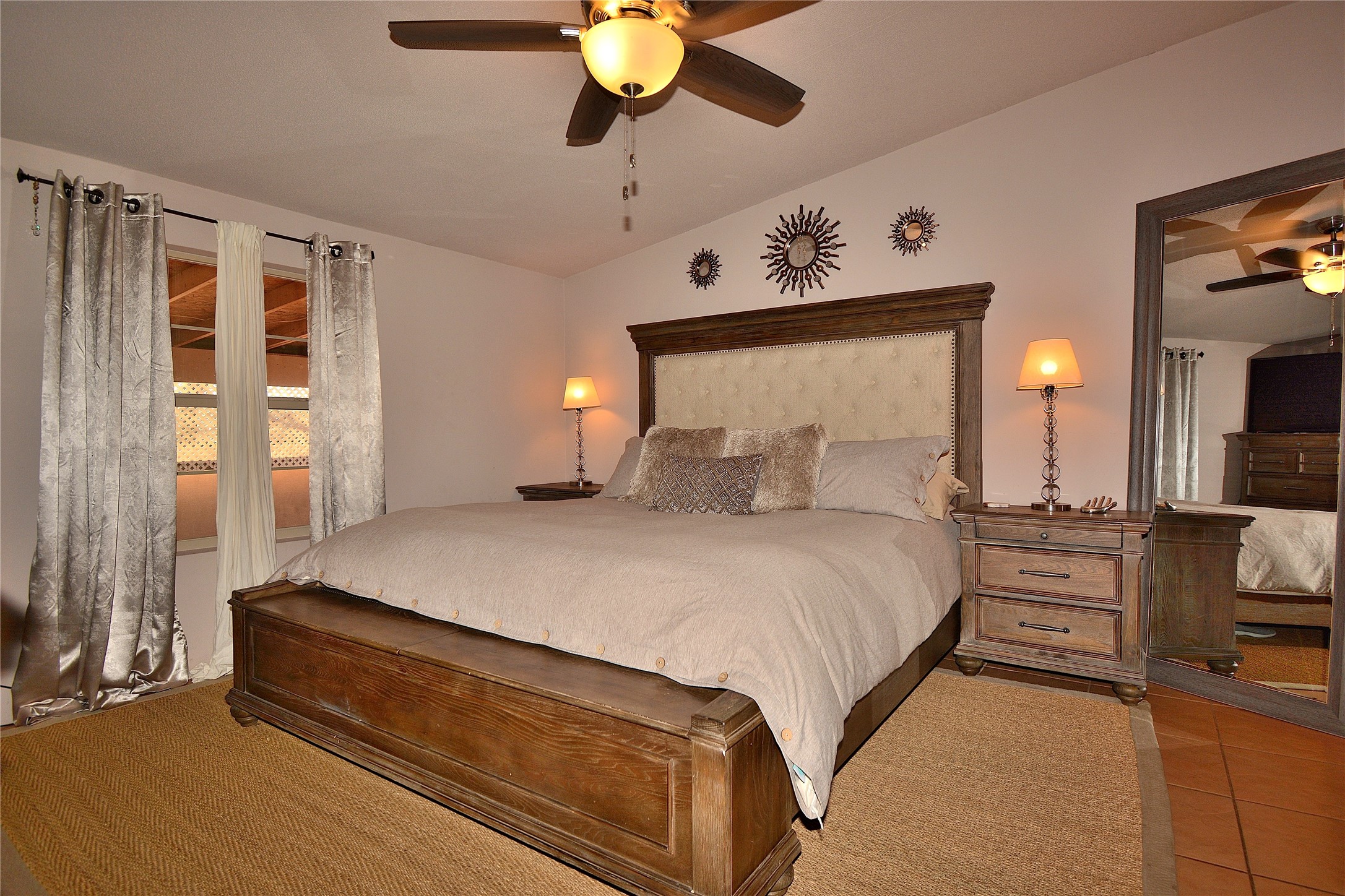 This beautiful, manufactured home was built in 1994 but has been completely remodeled, both inside and out! 3 bedrooms, 1 3/4 baths, about 1352 square feet, and jacuzzi tub, in the main home plus about 513 square feet in the studio/casita that is super sweet! Plus, a large, covered portal that is perfect for get togethers of any kind, that includes a fireplace. You can open it up during those hot summer days or enclose it for colder weather. It would make a great workshop too. The covered portal/carport area includes flagstone and the parking area allows for about 5 vehicles! This property is super clean and is ready for its new owners! Come take a look!