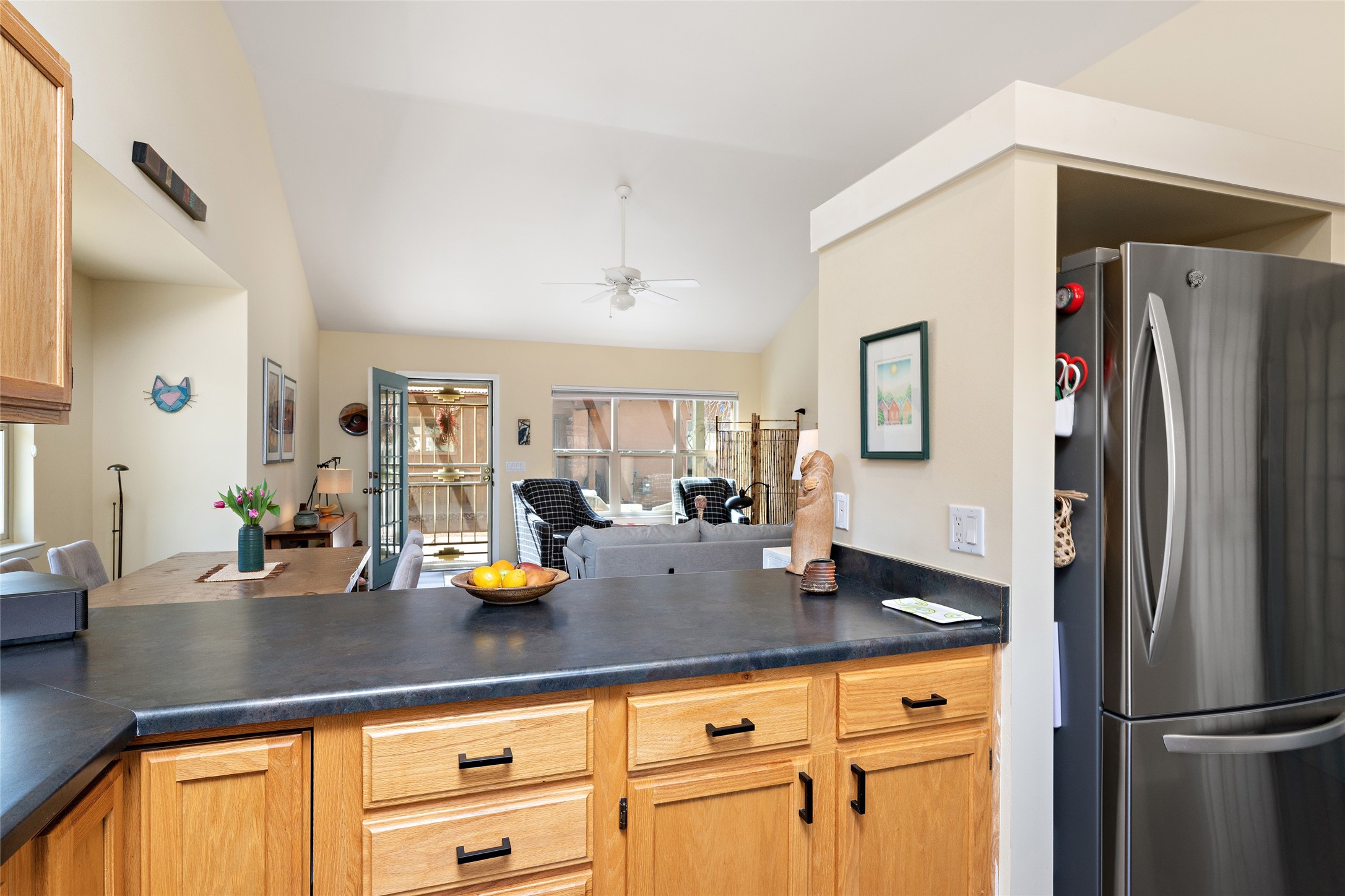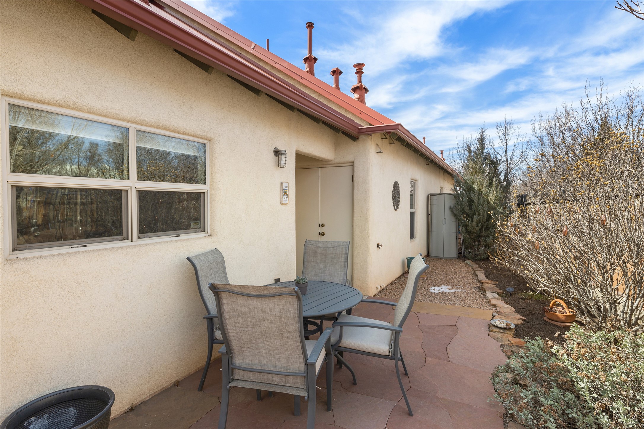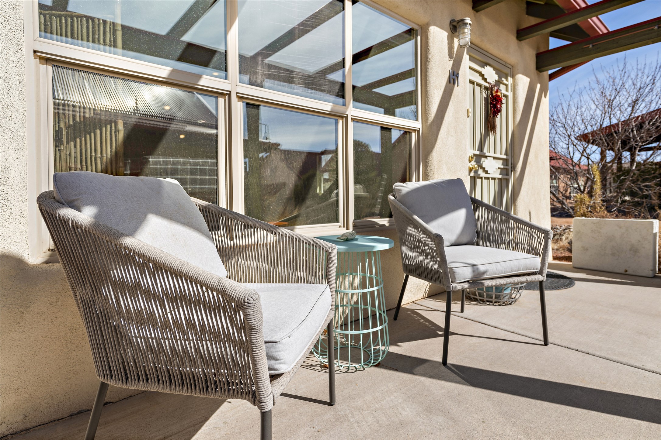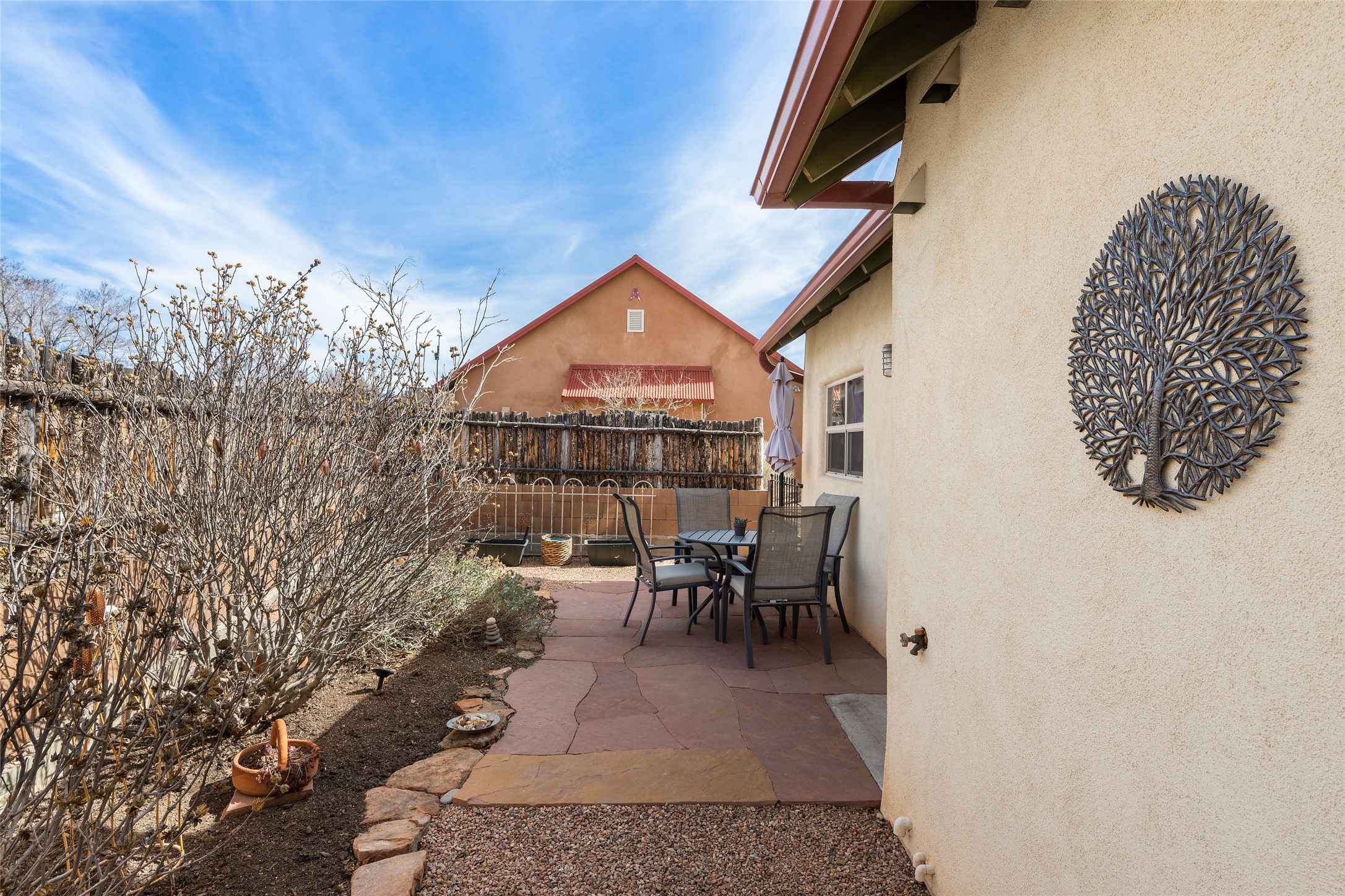 A terrific opportunity to live in a 55+ well-organized, thoughtfully designed community! Sand River is quiet and peaceful and residents are committed to living in collaboration. The complex consists of 28 units along with a community house offering a commercial kitchen, library, gathering spaces with fireplace, guest suite and laundry. These beautiful homes are situated among organic gardens to include an orchard and raised vegetable beds maintained and enjoyed by the residents. This is a 1082 sq. ft.* two bedroom/one bath unit meticulously maintained by its owner. The interior offers a soft, neutral palette, accentuating the natural light. The front portal is ideal for enjoying morning coffee, while the back patio has been upgraded with flagstone and coyote fencing for low maintenance and privacy. Numerous Seller upgrades to include: South-facing windows and door have UV ray blocking film; gas stove, hood and refrigerator updated; new hardware on cupboards; new sink and faucet in kitchen; pullout shelves in pantry; fitted sunshade on front portal; addition of raintree. The COA covers costs for roofing, exterior stucco and common area maintenance. Conveniently located within minutes of grocery, restaurant, retail, bank and health care facilities. Parking located close to the unit.