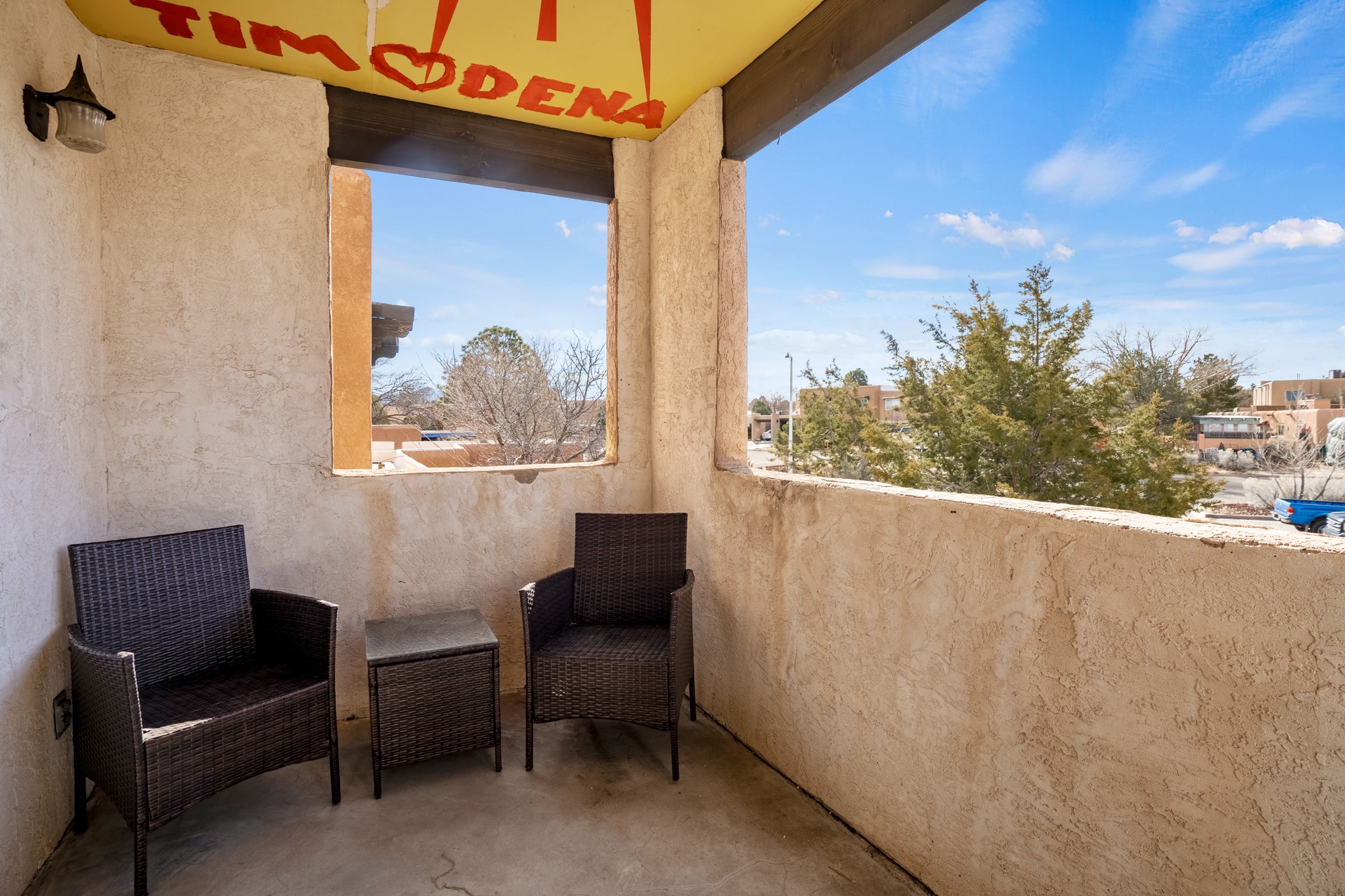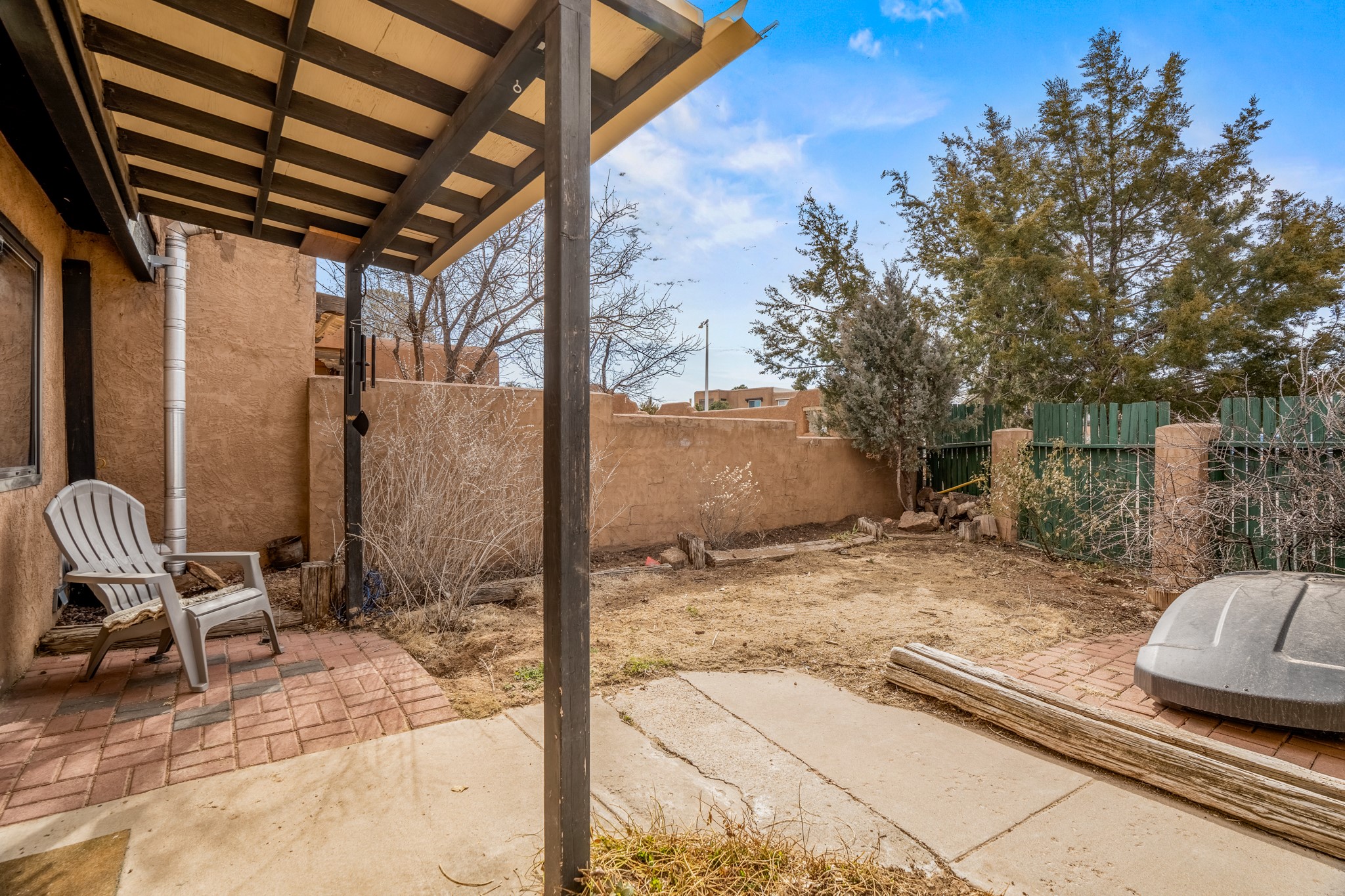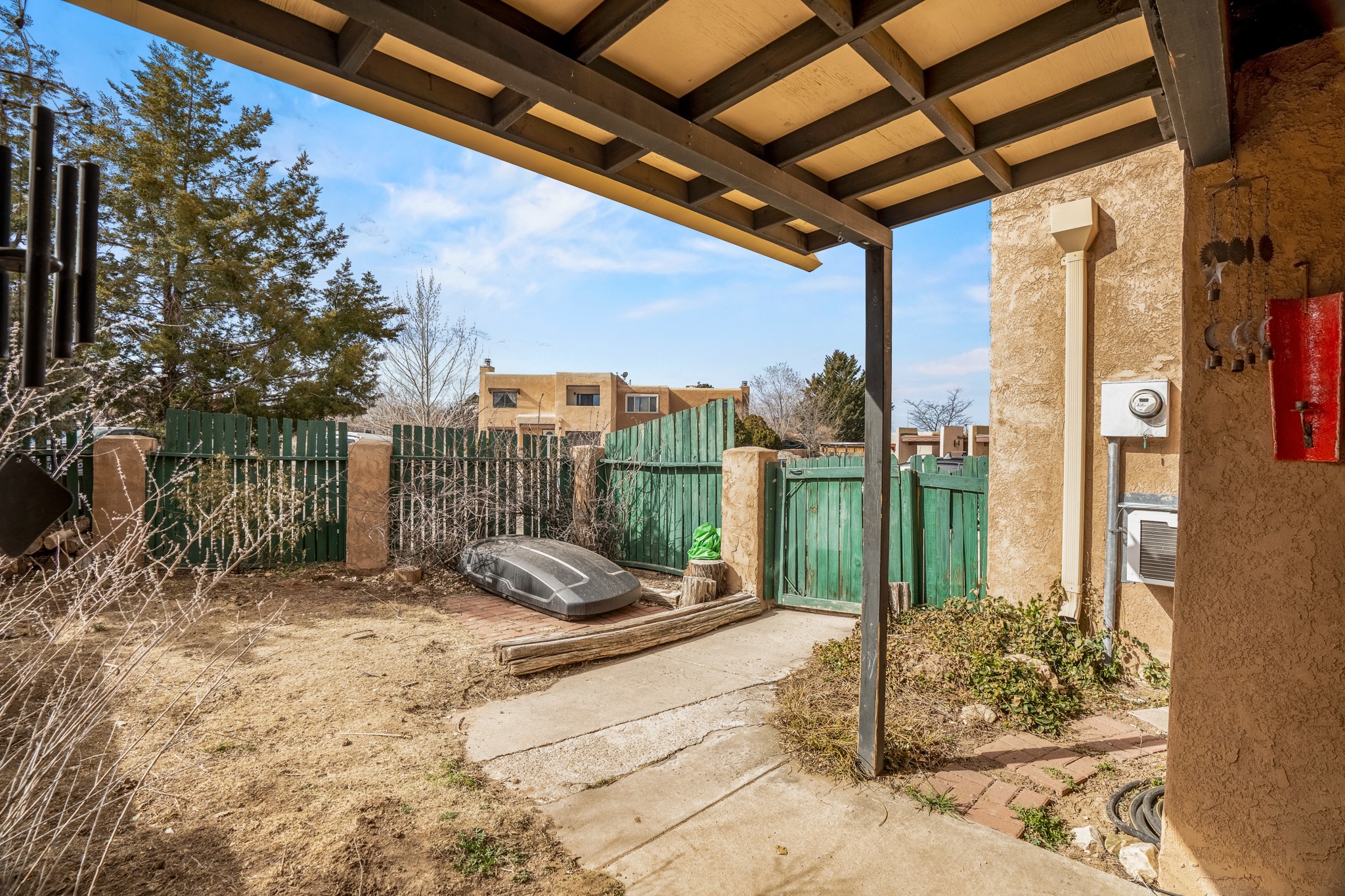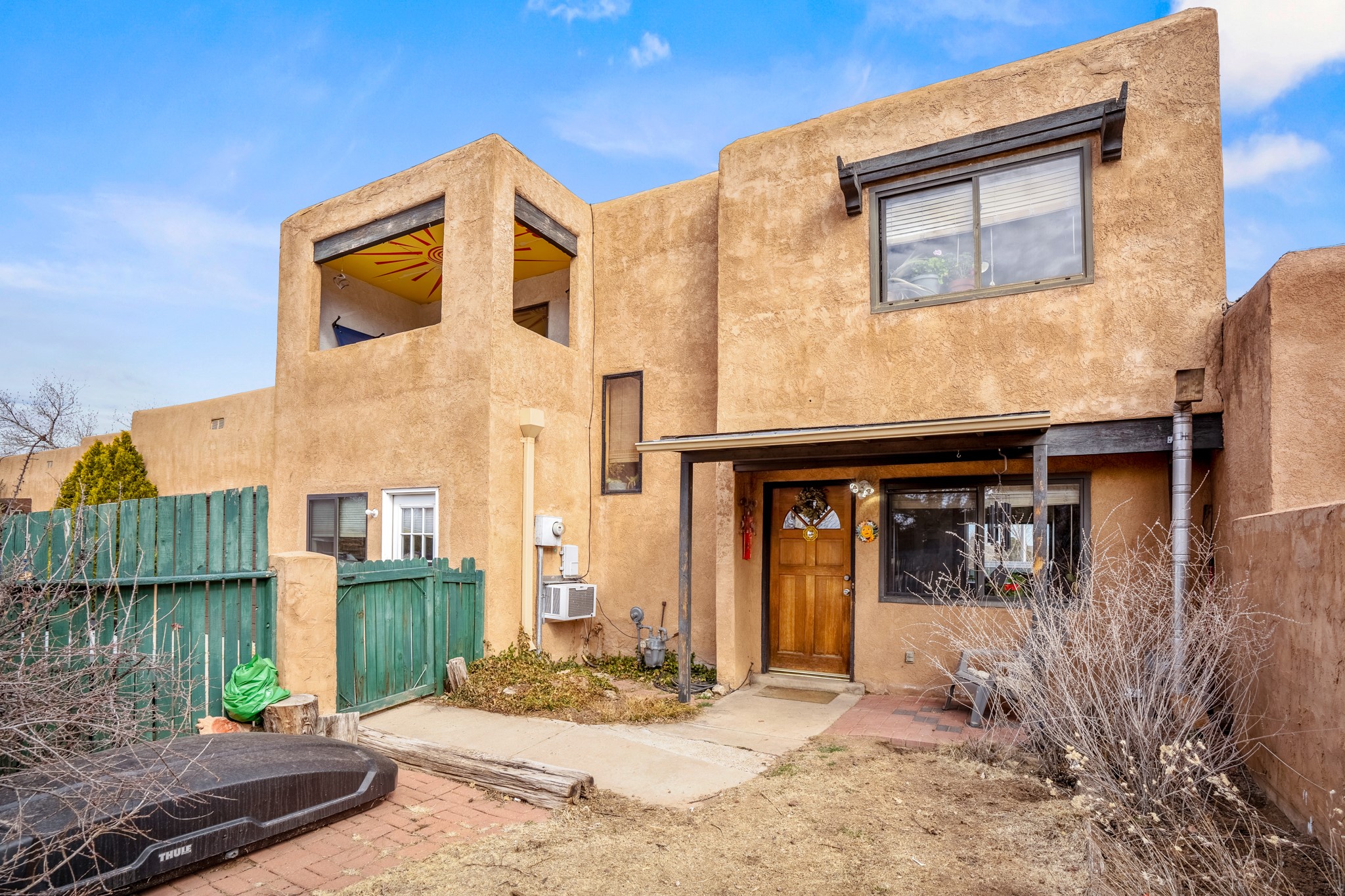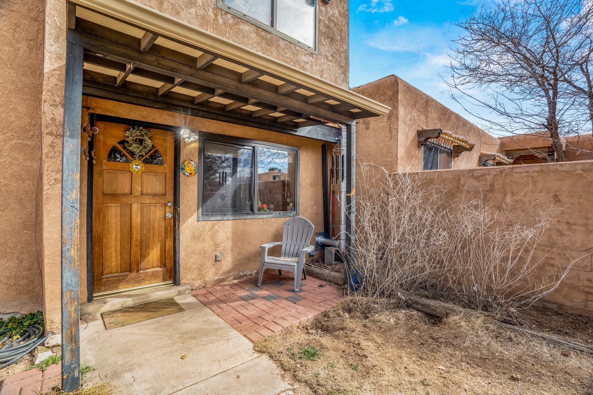 Welcome to this beautiful townhome in the heart of Santa Fe! This charming 3-bedroom plus converted garage home has everything you need for comfortable and convenient living. As you step inside, you will immediately notice the open layout of the living area, perfect for entertaining guests or spending quality time with loved ones. The garage has been thoughtfully converted into a studio with a walk-in shower, baseboard heating, air conditioning, fully insulated, and has kitchen hookups installed. The upstairs master has a private balcony, making it a light and flowy retreat. The kitchen is equipped with modern appliances, making cooking and meal preparation a breeze. The roof, water heater, and appliances have all been recently updated, so you can rest easy knowing that you're getting a home that's move-in ready. The backyard is a true oasis, complete with a beautiful pear tree, garden area with drip irrigation, and new shed. The front yard has drought resistant vegetation. You'll love spending time outside, whether you're relaxing on the patio or tending to your garden. The landscape in the spring and summer is simply stunning, making this the perfect place to call home. Located in the heart of Santa Fe, it's just minutes away from just about everything. Don't miss your chance to own this amazing property - schedule a showing today and see for yourself why this is the perfect place to call home!