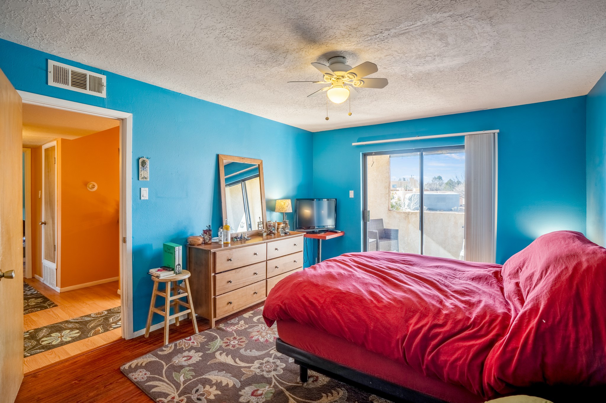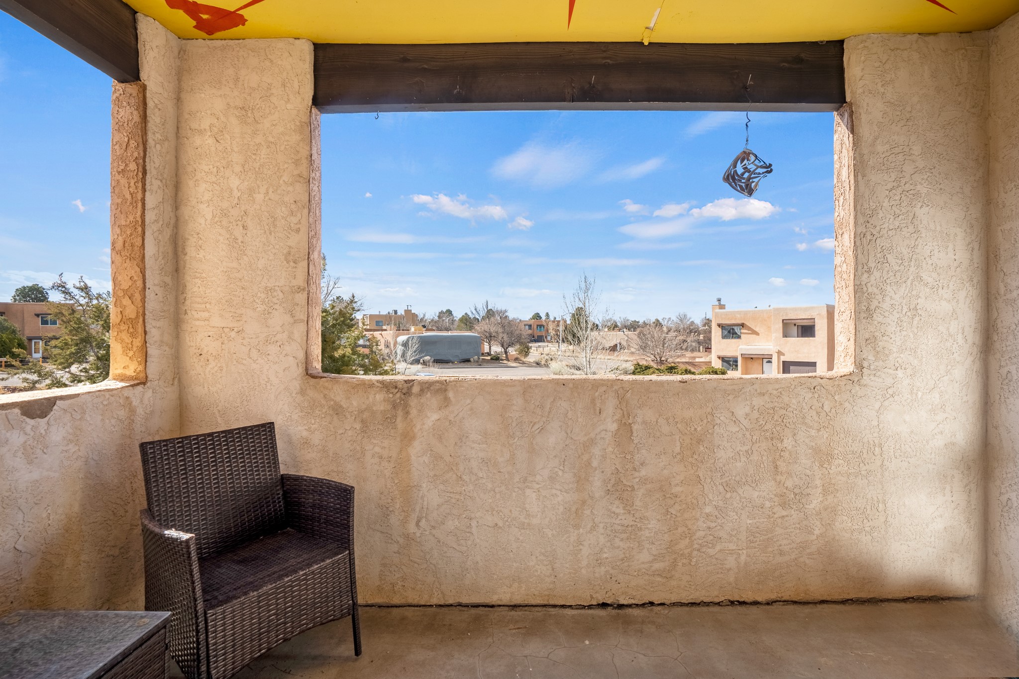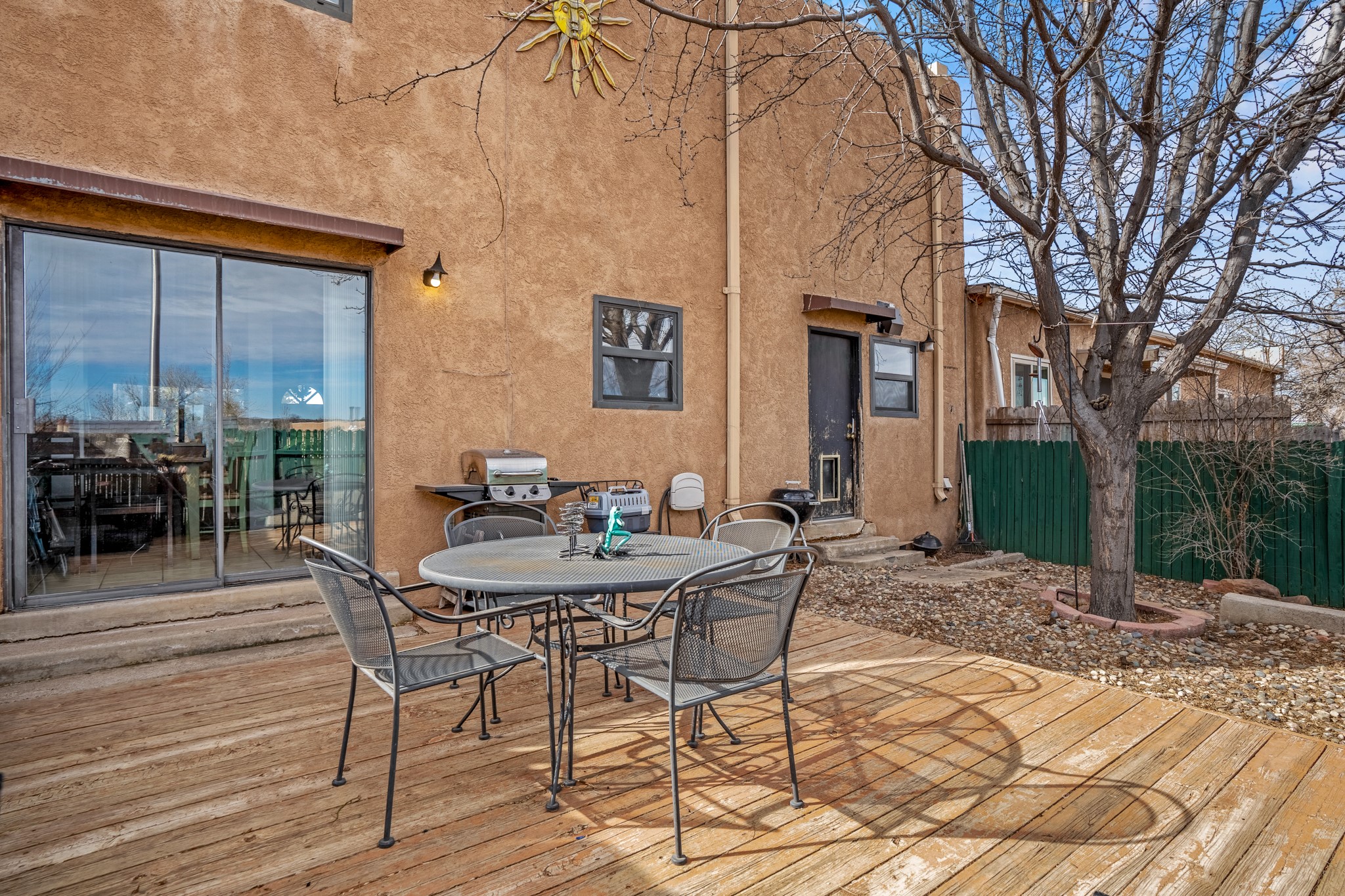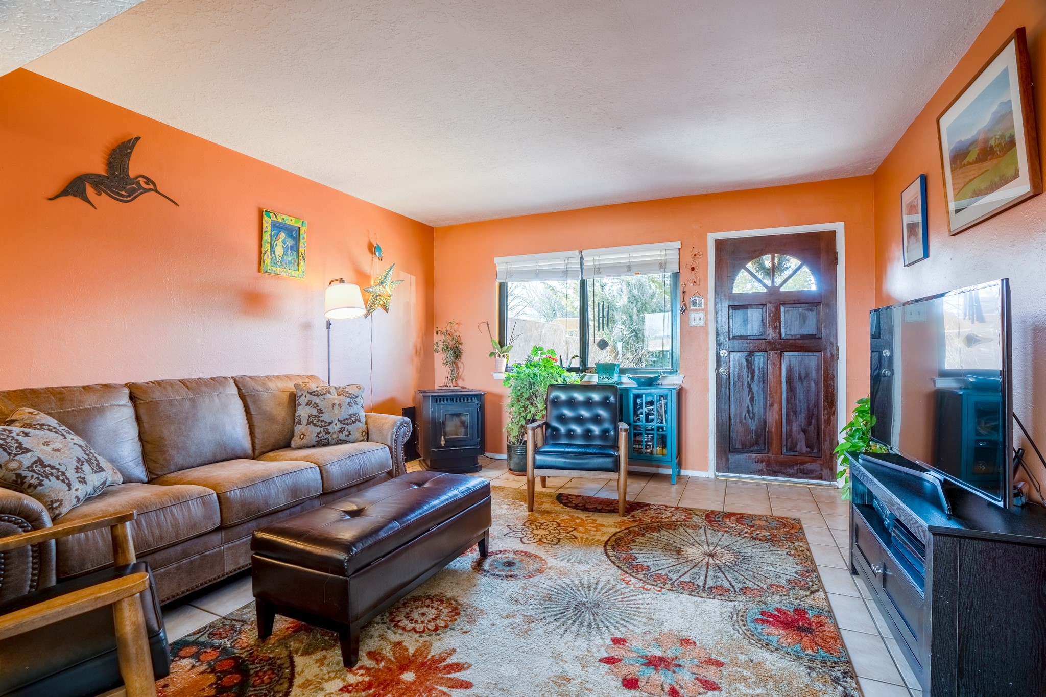 Welcome to this beautiful townhome in the heart of Santa Fe! This charming 3-bedroom plus converted garage home has everything you need for comfortable and convenient living. As you step inside, you will immediately notice the open layout of the living area, perfect for entertaining guests or spending quality time with loved ones. The garage has been thoughtfully converted into a studio with a walk-in shower, baseboard heating, air conditioning, fully insulated, and has kitchen hookups installed. The upstairs master has a private balcony, making it a light and flowy retreat. The kitchen is equipped with modern appliances, making cooking and meal preparation a breeze. The roof, water heater, and appliances have all been recently updated, so you can rest easy knowing that you're getting a home that's move-in ready. The backyard is a true oasis, complete with a beautiful pear tree, garden area with drip irrigation, and new shed. The front yard has drought resistant vegetation. You'll love spending time outside, whether you're relaxing on the patio or tending to your garden. The landscape in the spring and summer is simply stunning, making this the perfect place to call home. Located in the heart of Santa Fe, it's just minutes away from just about everything. Don't miss your chance to own this amazing property - schedule a showing today and see for yourself why this is the perfect place to call home!