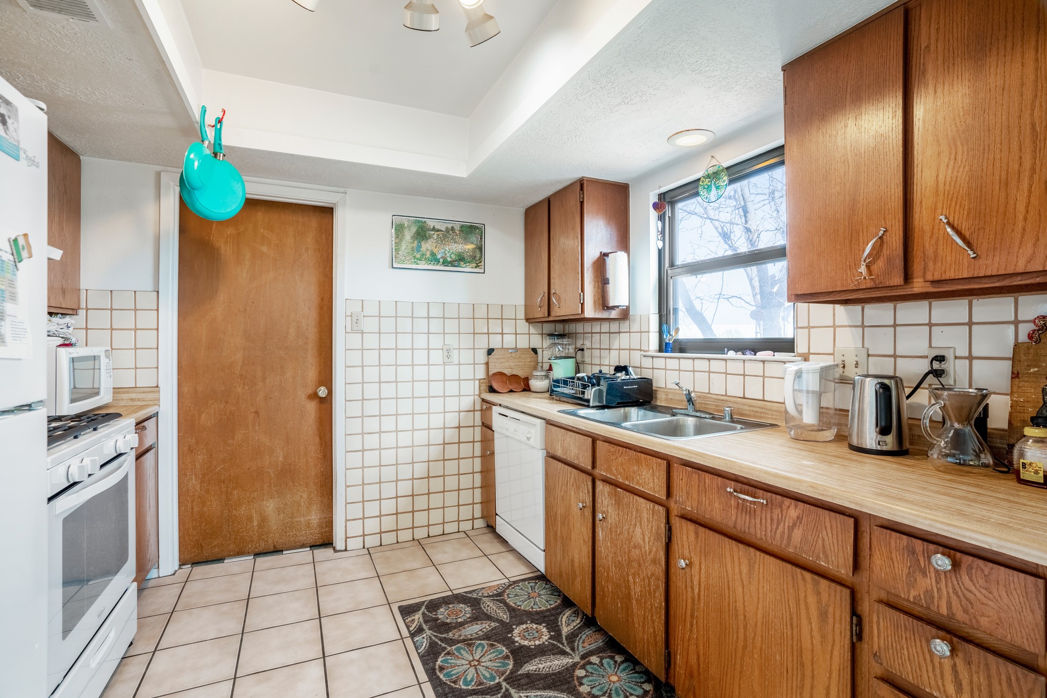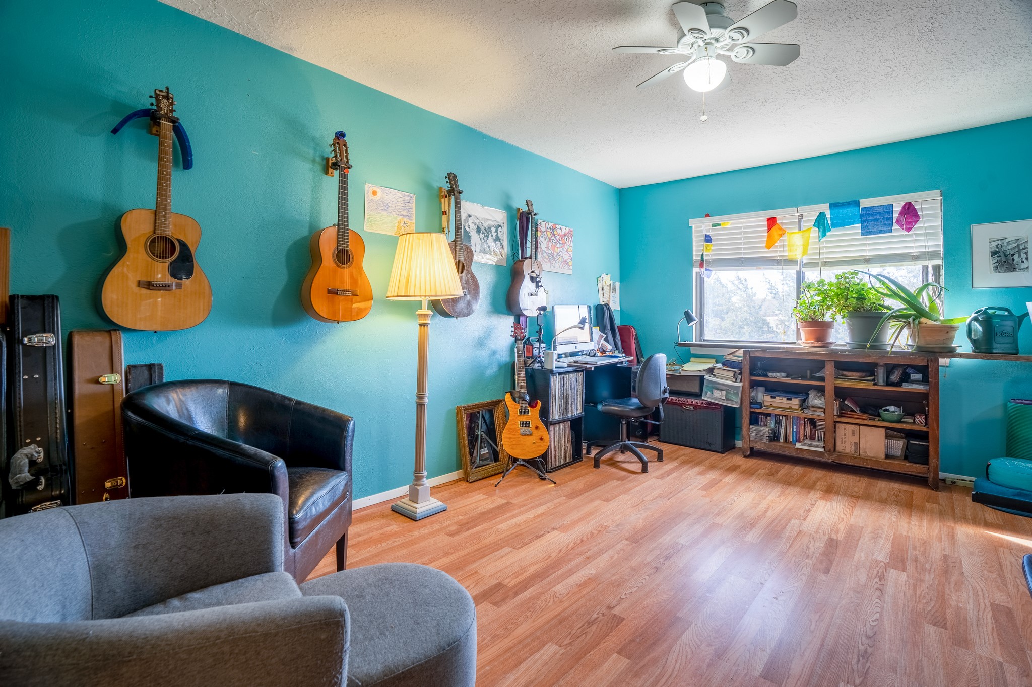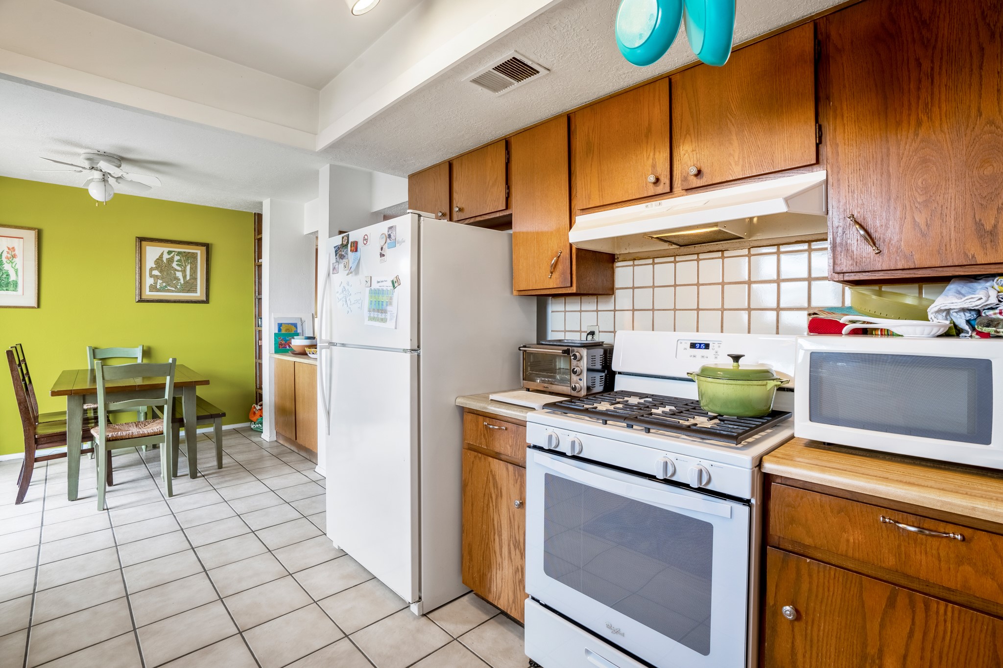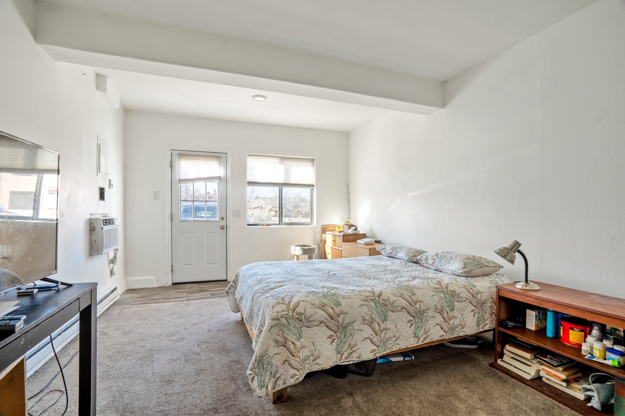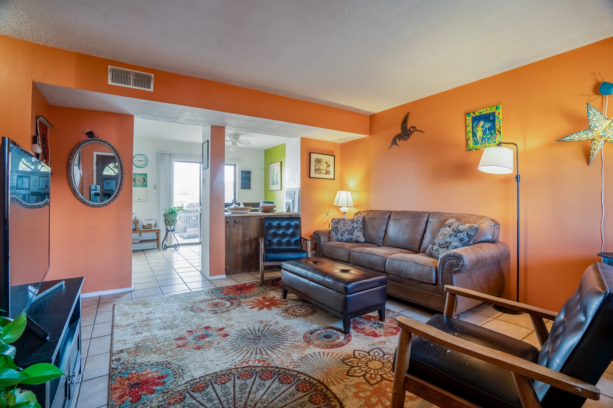 Welcome to this beautiful townhome in the heart of Santa Fe! This charming 3-bedroom plus converted garage home has everything you need for comfortable and convenient living. As you step inside, you will immediately notice the open layout of the living area, perfect for entertaining guests or spending quality time with loved ones. The garage has been thoughtfully converted into a studio with a walk-in shower, baseboard heating, air conditioning, fully insulated, and has kitchen hookups installed. The upstairs master has a private balcony, making it a light and flowy retreat. The kitchen is equipped with modern appliances, making cooking and meal preparation a breeze. The roof, water heater, and appliances have all been recently updated, so you can rest easy knowing that you're getting a home that's move-in ready. The backyard is a true oasis, complete with a beautiful pear tree, garden area with drip irrigation, and new shed. The front yard has drought resistant vegetation. You'll love spending time outside, whether you're relaxing on the patio or tending to your garden. The landscape in the spring and summer is simply stunning, making this the perfect place to call home. Located in the heart of Santa Fe, it's just minutes away from just about everything. Don't miss your chance to own this amazing property - schedule a showing today and see for yourself why this is the perfect place to call home!