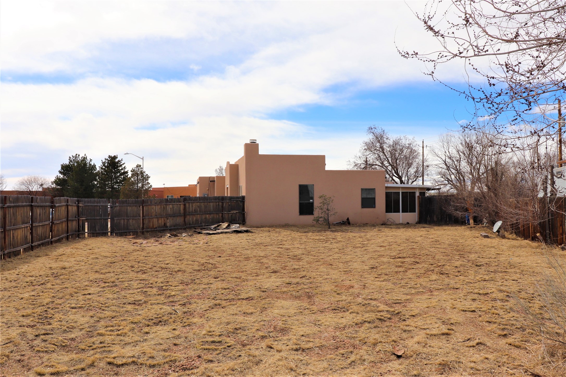 Santa Fe - Extraordinary Opportunity in Las Acequias! Situated on a 0.26 Acre fully fenced & gated Corner Lot, this 3 bedroom, 2 full bath home is unlike most of the other properties in the subdivision, with plenty of space to add-on or build an accessory dwelling (casita) - subject to construction permits, and all applicable restrictions - or just to enjoy the extra space to safely keep all your toys and trucks off the street inside this fenced property. There is also an enclosed 223 Sq. ft. sunroom, an additionally gated back yard out of sight from the street perfect for the owners and/or small kids and pets to play in privacy, and a full size fully finished and insulated 2 car garage with a brand new powered door. Heating is in-floor radiant plus a wood burning Kiva fireplace. The high ceilings and wood beams complete this charming Santa Fe package with all City utilities and no HOA. Complete roof replacement and synthetic stucco was done in 2015. Easy to show... Schedule your private showing today!