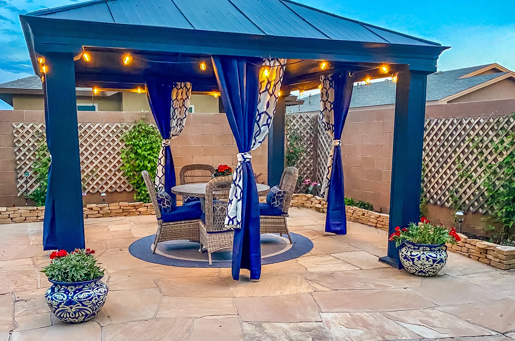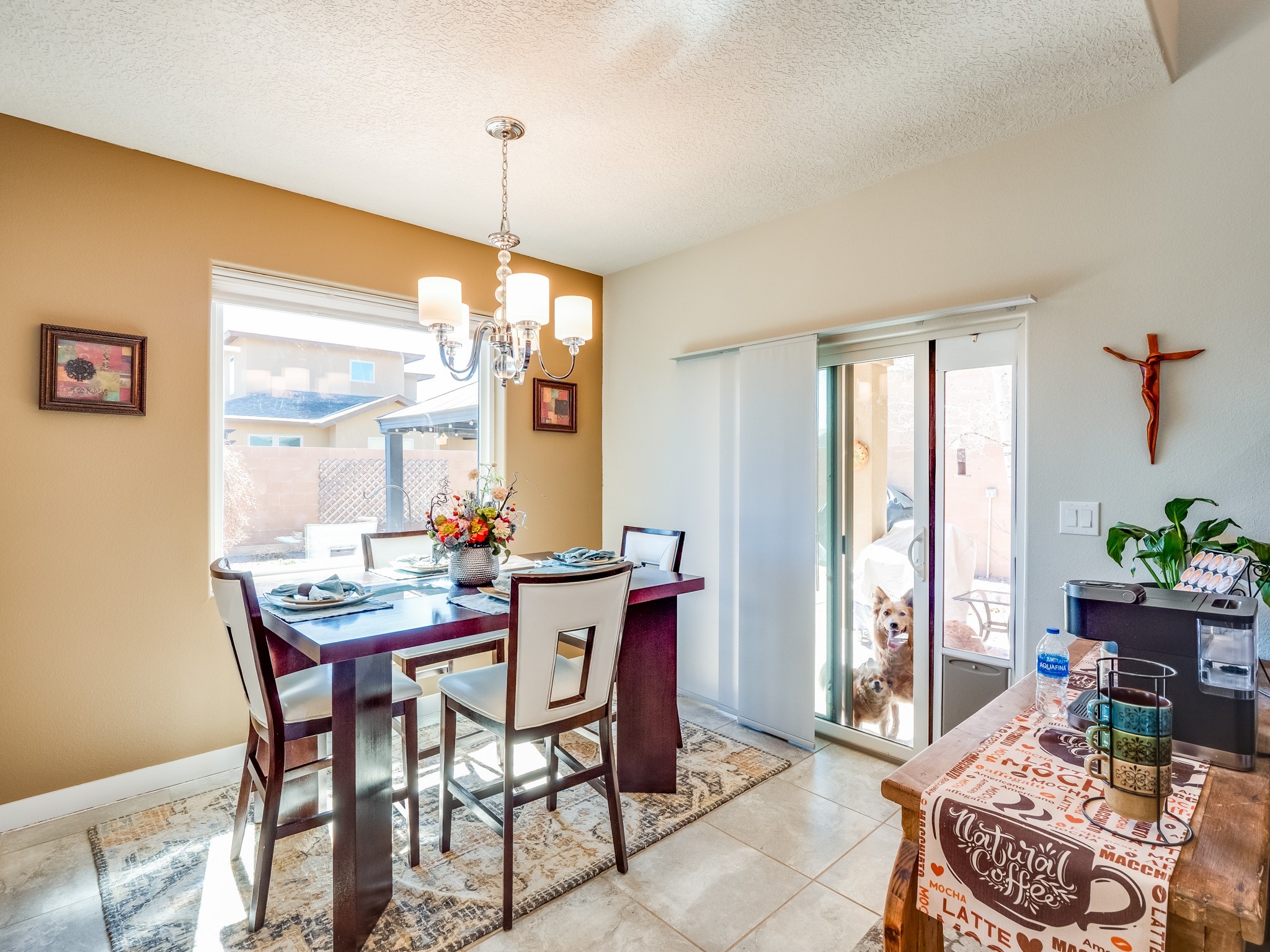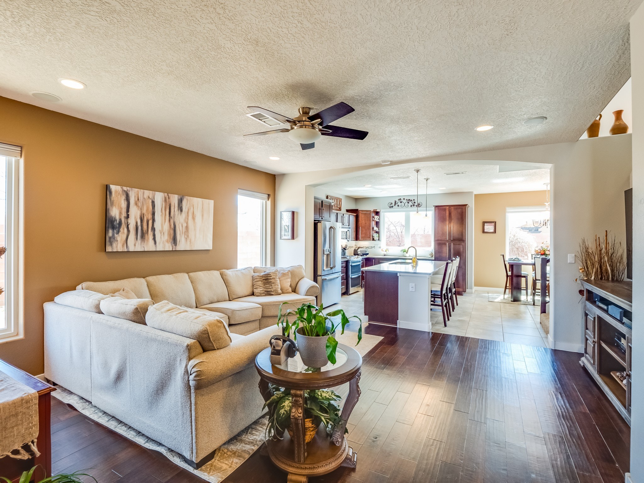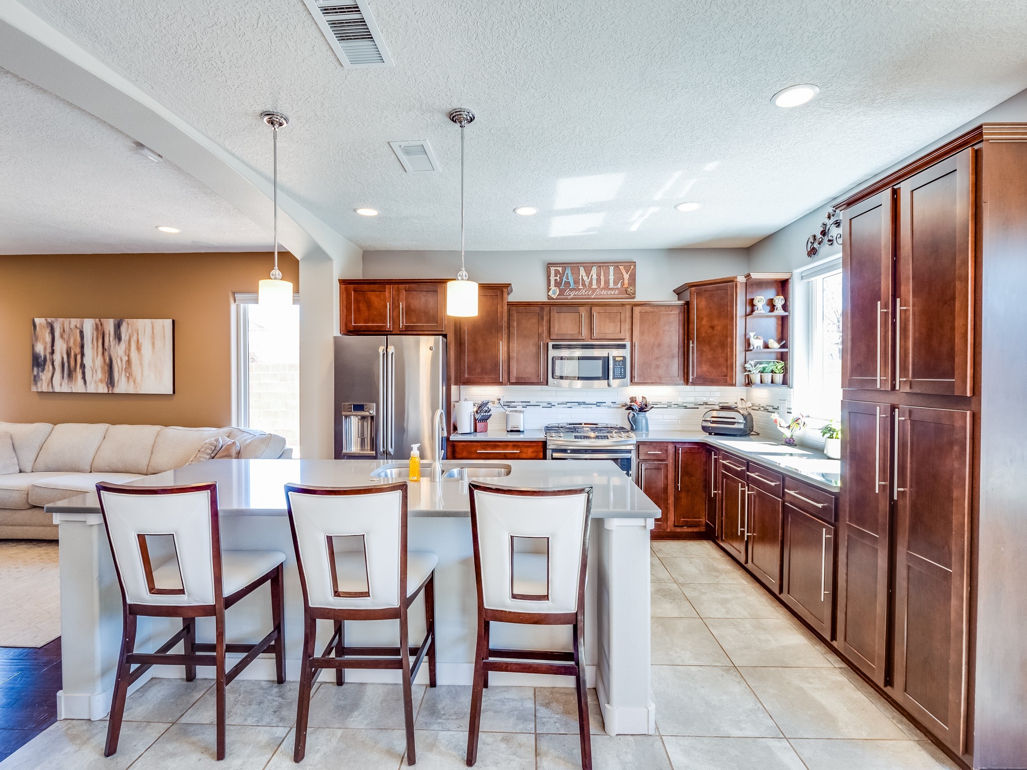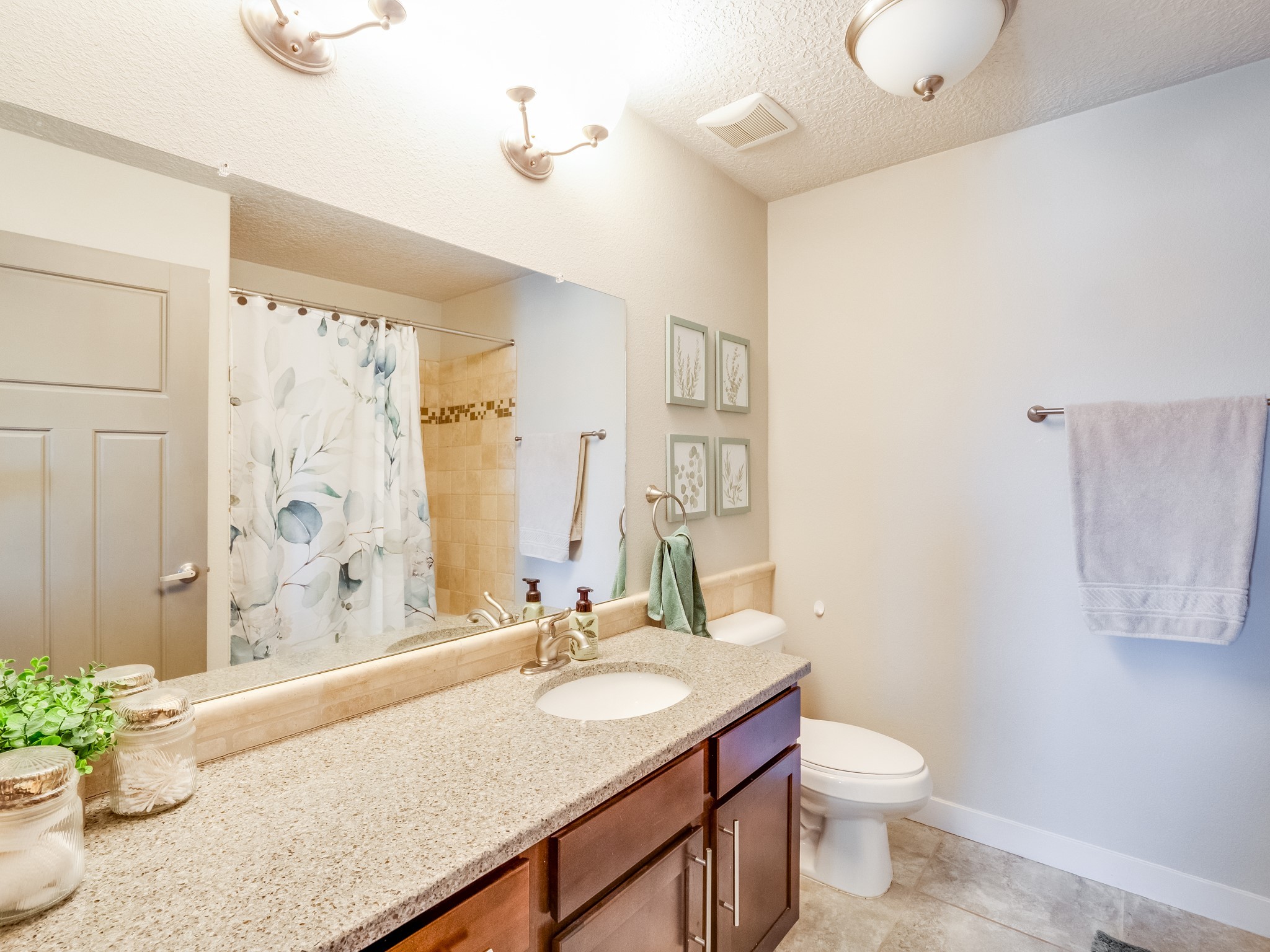 This Stunning two-story modern home located on a corner lot is outfitted with all the bells and whistles! The main Living area is a large, open Great Room that's optimal for entertainment with the Kitchen being the heart of the home. With a center Island and bar seating, dark wood cabinets with chrome hardware, Quartz counters, mosaic tile backsplash, stainless steel appliances and tile flooring that's continued into the Dining Area that has sliding door access to the backyard. Wood Floors in the Living Room and continued into the rest of the first floor. The spacious Primary En-Suite has access to the backyards covered patio, two large walk-in closets and a wonderful bathroom with a double sink vanity and granite tops, Tile flooring and walk-in tiled shower. Also on the first floor is a guest bedroom with barn doors, a powder room, and a Laundry room with access to the two car garage. Carpeted second floor with a cozy loft space, two nice sized guest bedrooms, and a full guest bathroom. Your outdoor space is like your very own oasis to indulge all of your senses. Low maintenance but still visually pleasing with beautiful flower beds and trellises covered in flowering vines, a calming rock water feature, grass lawn, mature trees, and a large flagstone patio with gazebo is the perfect spot to relax under on those summer days. This home has A/C with a Nest thermostat, room intercom and built-in speaker system. This fantastic home wont last for long, book a tour today!