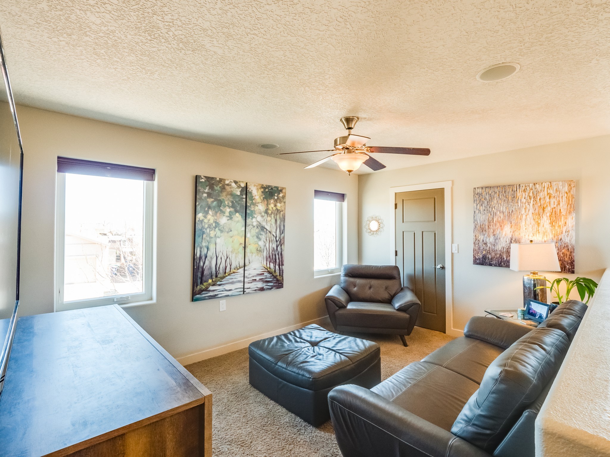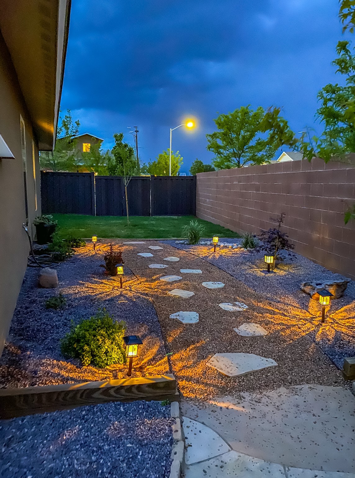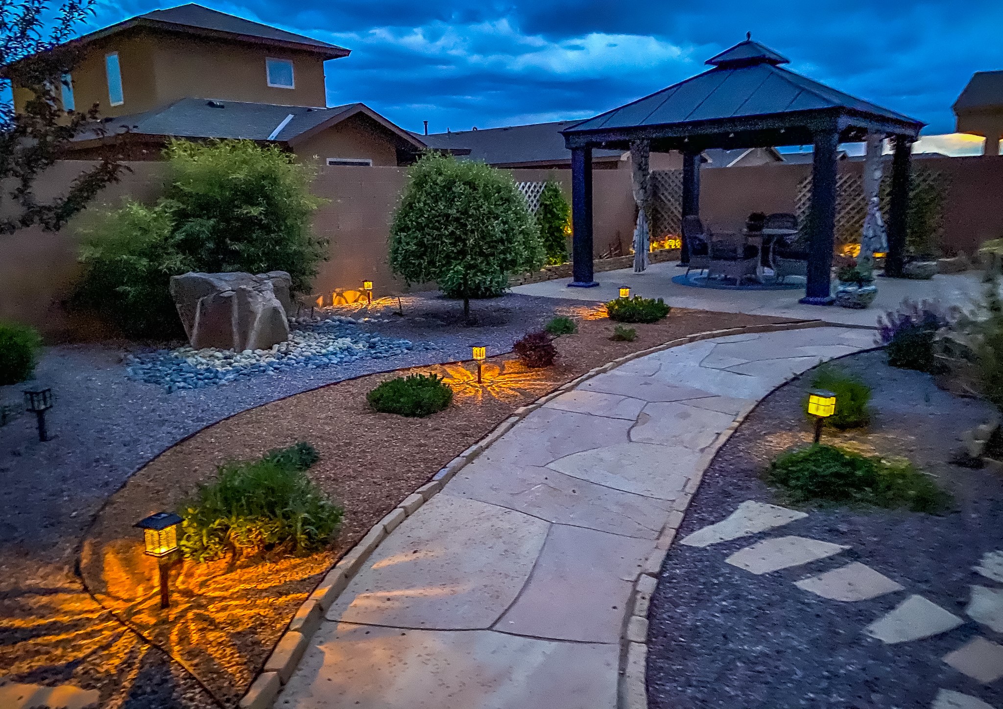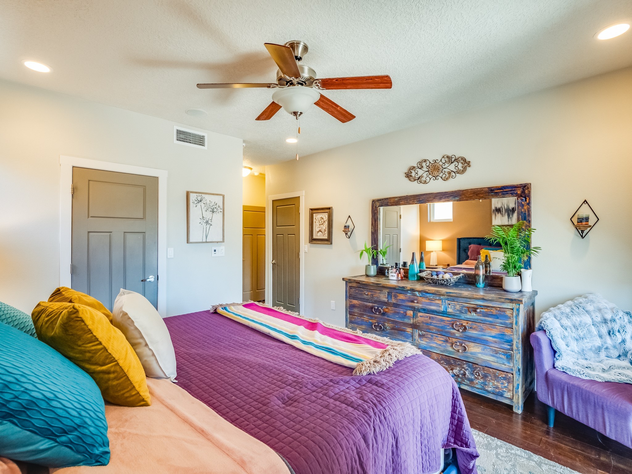 This Stunning two-story modern home located on a corner lot is outfitted with all the bells and whistles! The main Living area is a large, open Great Room that's optimal for entertainment with the Kitchen being the heart of the home. With a center Island and bar seating, dark wood cabinets with chrome hardware, Quartz counters, mosaic tile backsplash, stainless steel appliances and tile flooring that's continued into the Dining Area that has sliding door access to the backyard. Wood Floors in the Living Room and continued into the rest of the first floor. The spacious Primary En-Suite has access to the backyards covered patio, two large walk-in closets and a wonderful bathroom with a double sink vanity and granite tops, Tile flooring and walk-in tiled shower. Also on the first floor is a guest bedroom with barn doors, a powder room, and a Laundry room with access to the two car garage. Carpeted second floor with a cozy loft space, two nice sized guest bedrooms, and a full guest bathroom. Your outdoor space is like your very own oasis to indulge all of your senses. Low maintenance but still visually pleasing with beautiful flower beds and trellises covered in flowering vines, a calming rock water feature, grass lawn, mature trees, and a large flagstone patio with gazebo is the perfect spot to relax under on those summer days. This home has A/C with a Nest thermostat, room intercom and built-in speaker system. This fantastic home wont last for long, book a tour today!