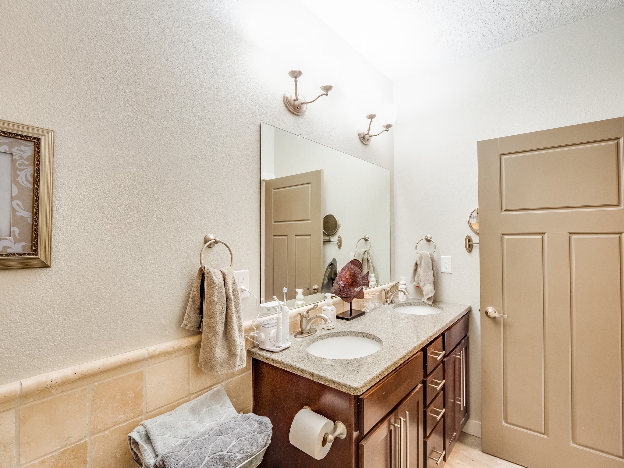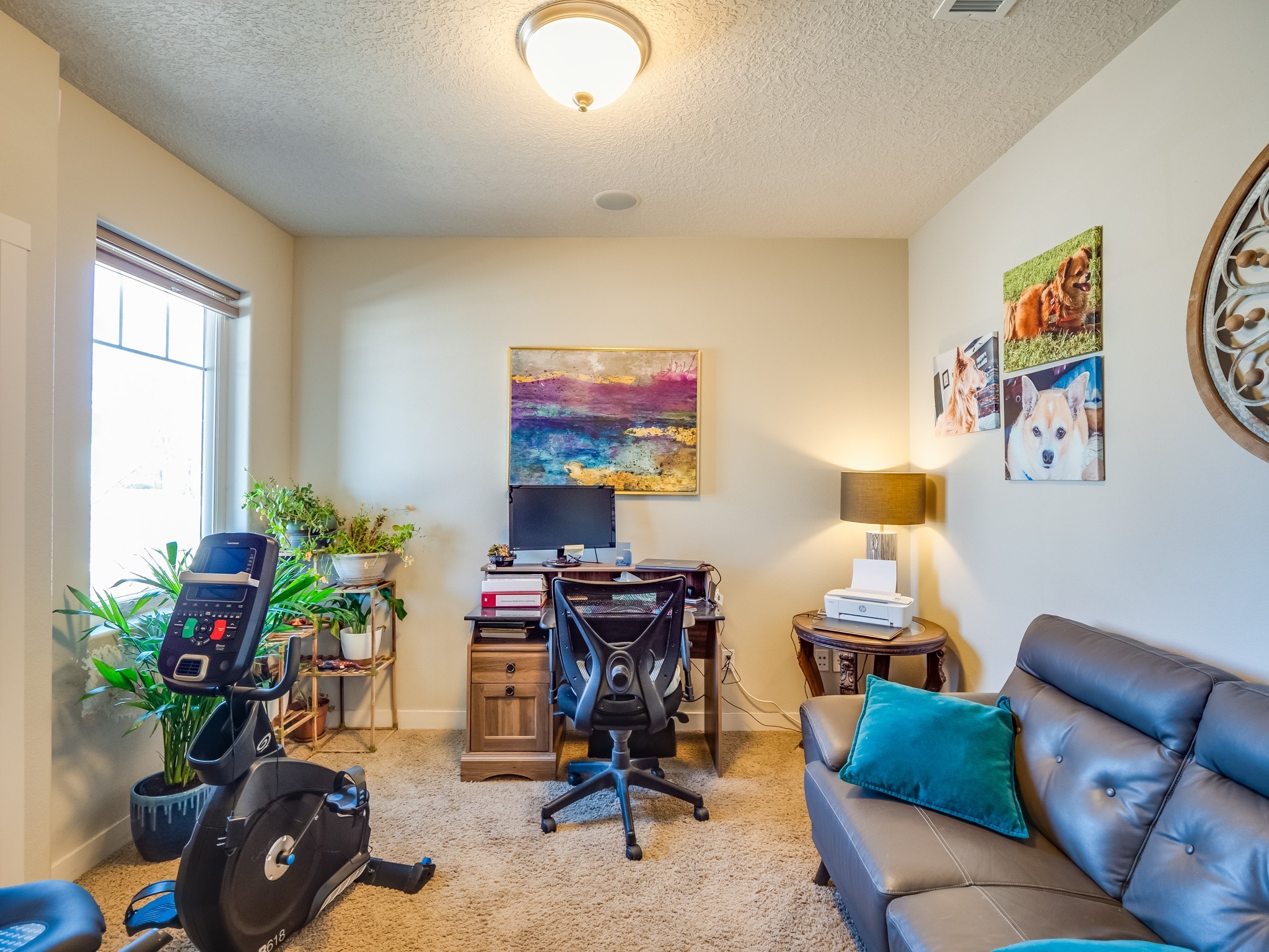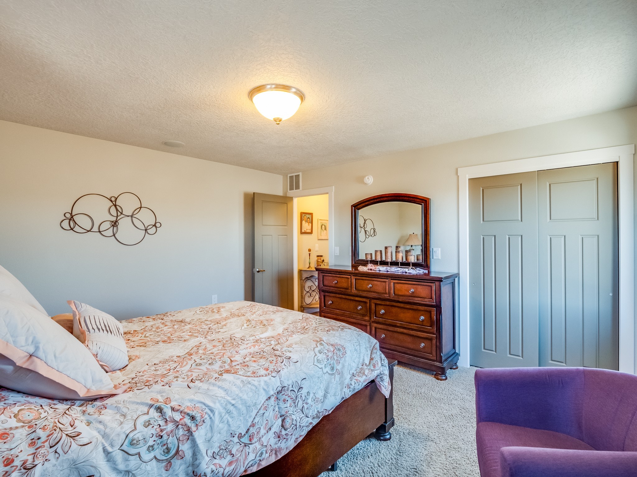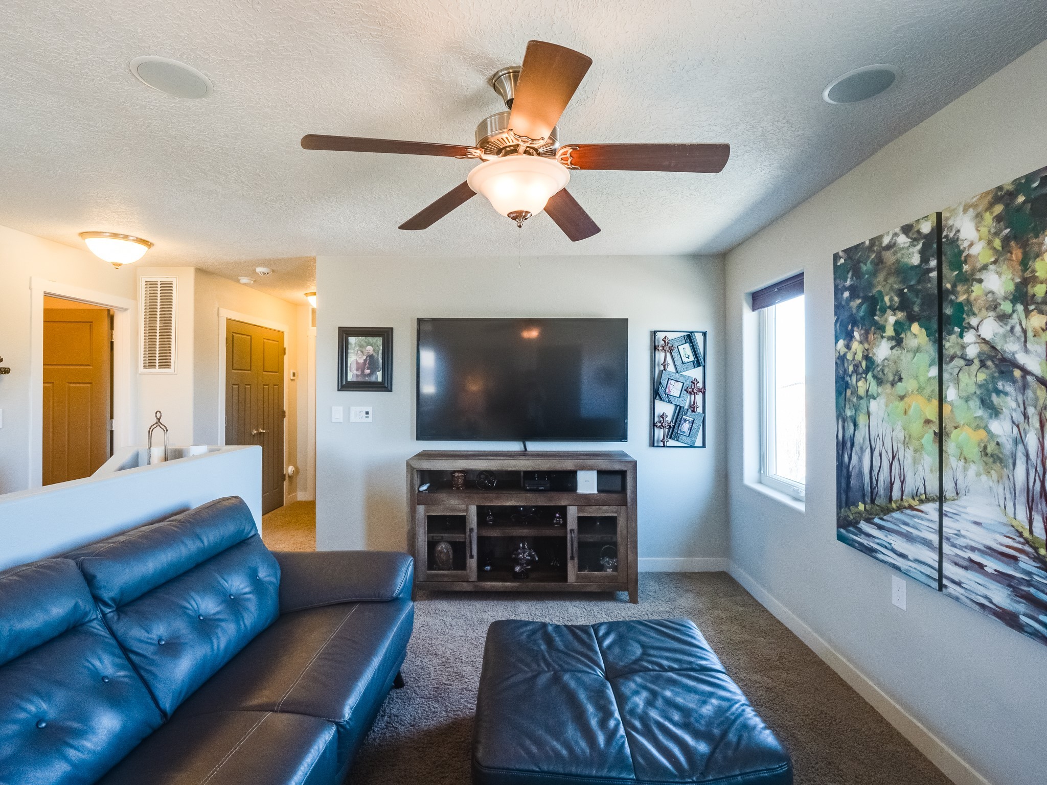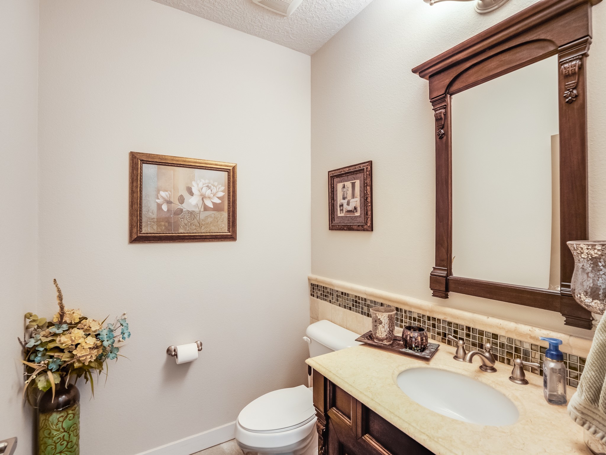 This Stunning two-story modern home located on a corner lot is outfitted with all the bells and whistles! The main Living area is a large, open Great Room that's optimal for entertainment with the Kitchen being the heart of the home. With a center Island and bar seating, dark wood cabinets with chrome hardware, Quartz counters, mosaic tile backsplash, stainless steel appliances and tile flooring that's continued into the Dining Area that has sliding door access to the backyard. Wood Floors in the Living Room and continued into the rest of the first floor. The spacious Primary En-Suite has access to the backyards covered patio, two large walk-in closets and a wonderful bathroom with a double sink vanity and granite tops, Tile flooring and walk-in tiled shower. Also on the first floor is a guest bedroom with barn doors, a powder room, and a Laundry room with access to the two car garage. Carpeted second floor with a cozy loft space, two nice sized guest bedrooms, and a full guest bathroom. Your outdoor space is like your very own oasis to indulge all of your senses. Low maintenance but still visually pleasing with beautiful flower beds and trellises covered in flowering vines, a calming rock water feature, grass lawn, mature trees, and a large flagstone patio with gazebo is the perfect spot to relax under on those summer days. This home has A/C with a Nest thermostat, room intercom and built-in speaker system. This fantastic home wont last for long, book a tour today!