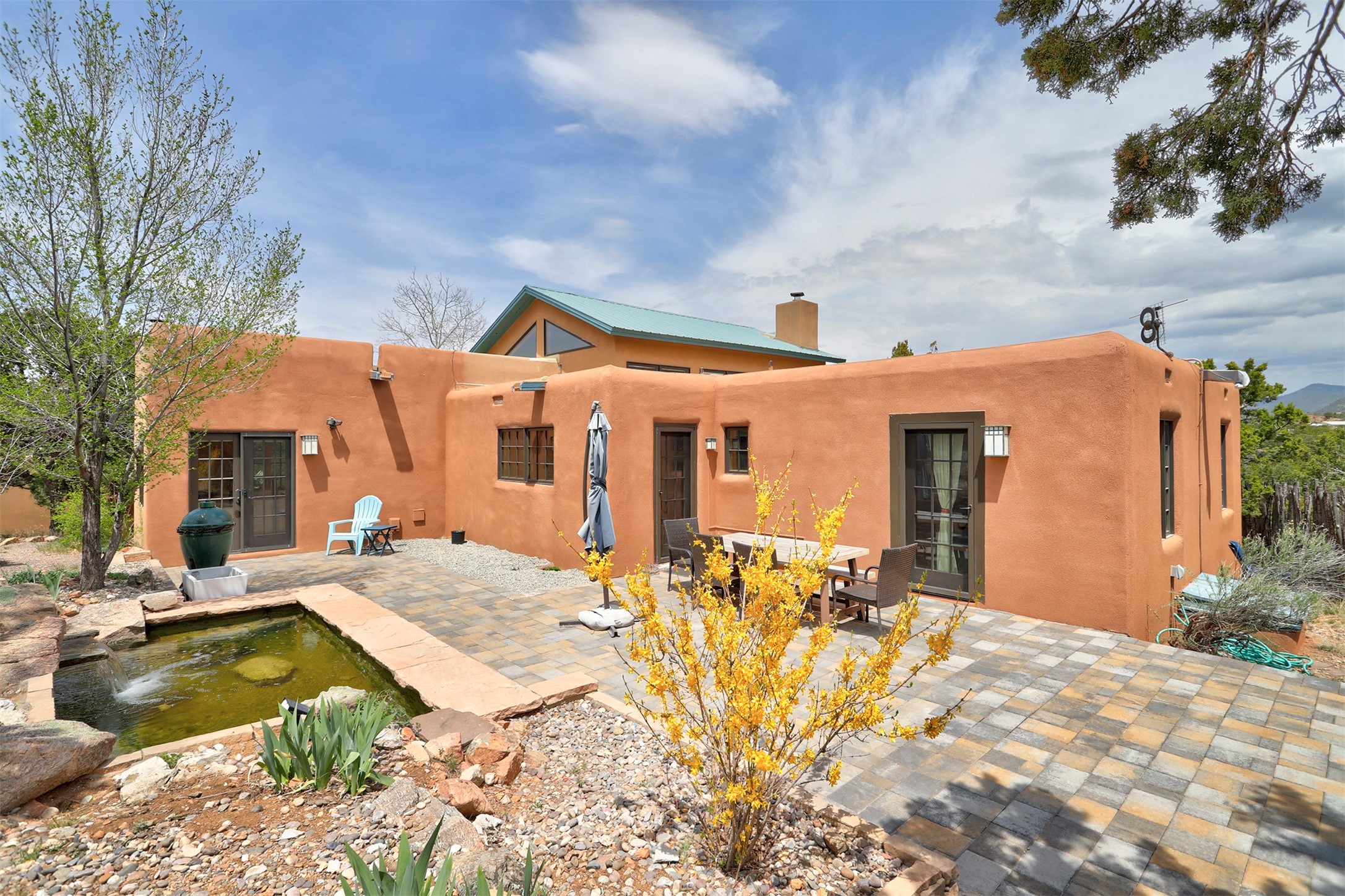This beautiful Sunlit Hills home is an exquisite blend of traditional Northern NewMexican and modern architectures, impeccably renovated with modern living in mind. Aprivate gate opens up to a secluded sanctuary on a hill with beautiful views out of everywindow. An expansive open floor plan with distinctive modern elements creates anabundance of natural light and ample space for living and entertaining. The recently updated kitchen is equipped with professional appliances, including Sub-Zero, Wolf, and Bosch. A librarywith built-in shelves is just off the dining room with a private balcony to enjoy thebeautiful spring breeze and astounding sunsets.Off one side of the living room, with its 20-foot soaring ceilings and industrial steel I-beams, is the private primary suite complete with balcony and in-suite bathroomfeaturing a tub, walk-in shower, and walk-in closet. The remaining bedrooms are off theopposite side of the home. Two of the bedrooms share a full bath in the hallway, andthe remaining bedroom has its own bathroom with walk-in shower and private access tothe new patio and pond with cascading waterfall.The home has a detached two car garage with an attached 300-square foot bonus roomcurrently being used as a fitness and game room. Home audio system is included. The home has 7 individual heating zones, and all lights are on dimmers. The home also features a partial basement for ample storage. This property is a short 15-minute car ride to downtown Santa Fe. Any recorded documents about this property are provided as a courtesy only. Buyers should rely on the documents provided by Title. Neither Listing Broker nor Seller warranty the square footage of the home or acreage of the property. If the size of the home or acreage of the property is of material concern to the buyer, then the buyer should have it measured and/or surveyed.