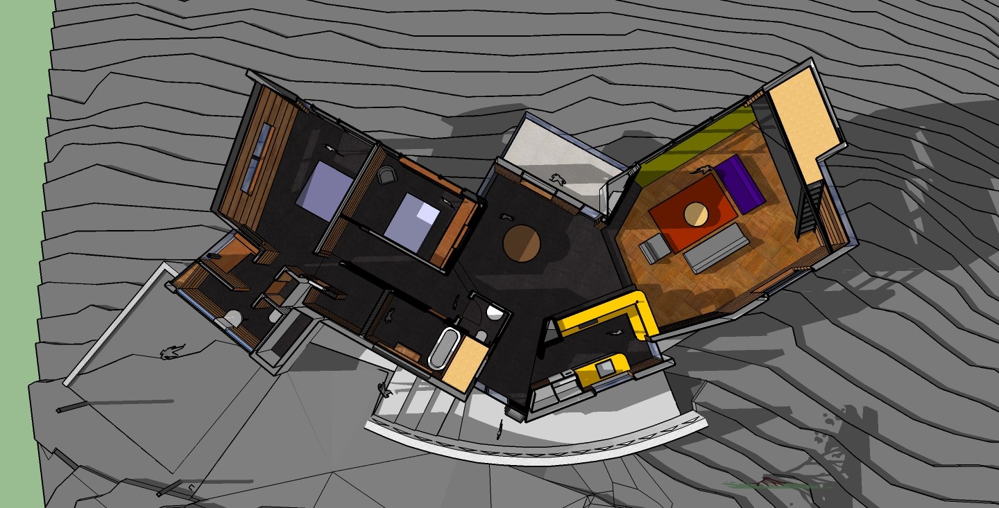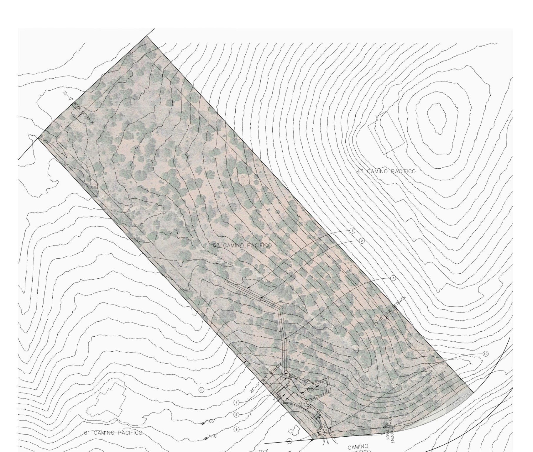 Elevated Sunlit Hills view-lot, 5.5. acres, with foundation and development work completed, and plans for a 1648 square foot contemporary two-bedroom, two-bathroom home included. Finish this home or use the work done here for a significant head-start on your own vision. This quiet hillside acreage is just minutes from town, and on a paved road, a rarity in Sunlit Hills, and opens to expansive views and sunsets over the Jemez. Much of the engineering, prep-work and necessary infrastructure to make the best use of this property has already been completed: The driveway and the site have been engineered and graded from Camino Pacifico. Excavation has been completed and utilities are in place. A water connection to the Sunlit Hills Water system was created, the electricity is trenched, with a transformer and meter installed, and the foundation and stem walls constructed, along with a buried water catchment system. Advanced septic system has been installed. Seller investment in utilities and site-prep exceeds $120,000. Additional space for a shop, casita, or studio may be possible on lower sections of the lot that are gently sloped.