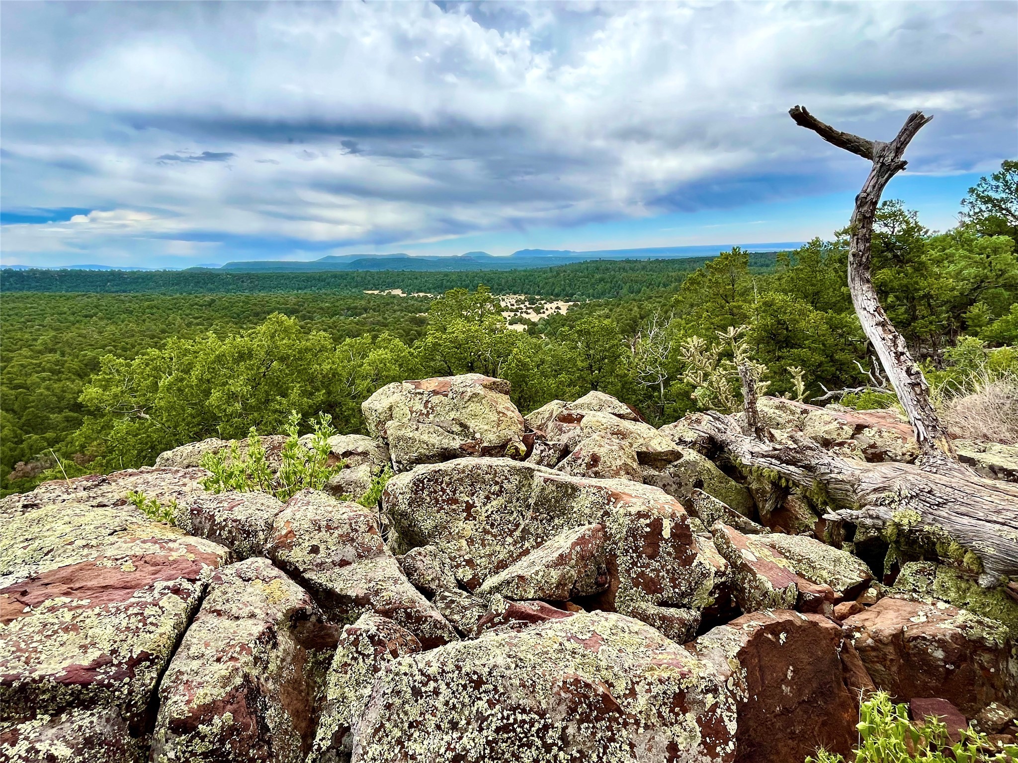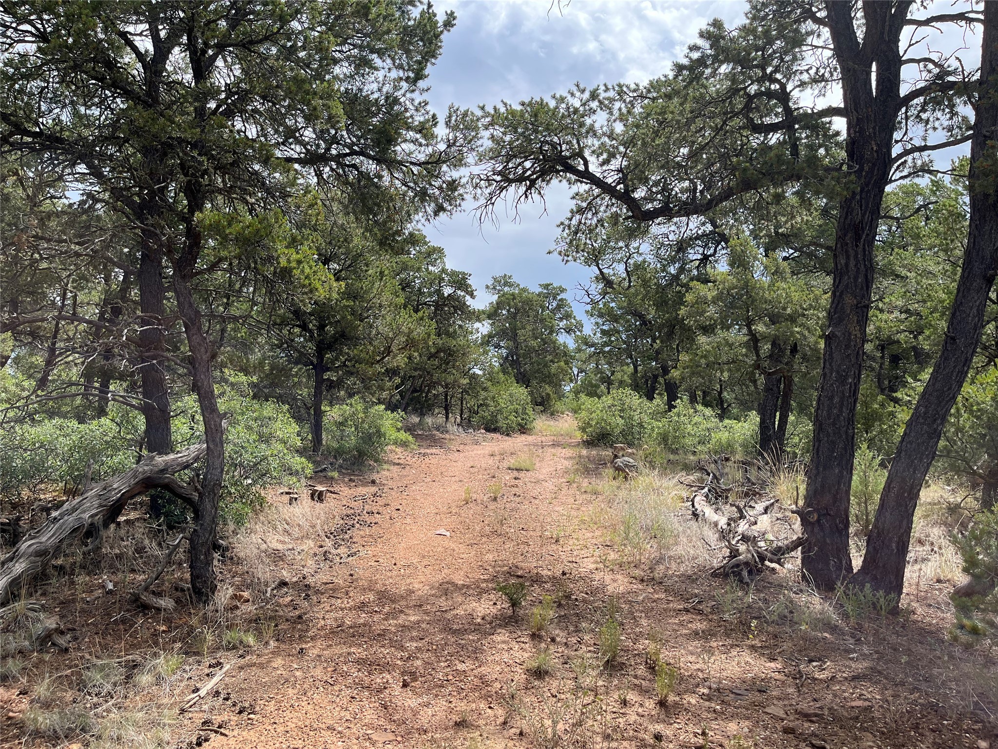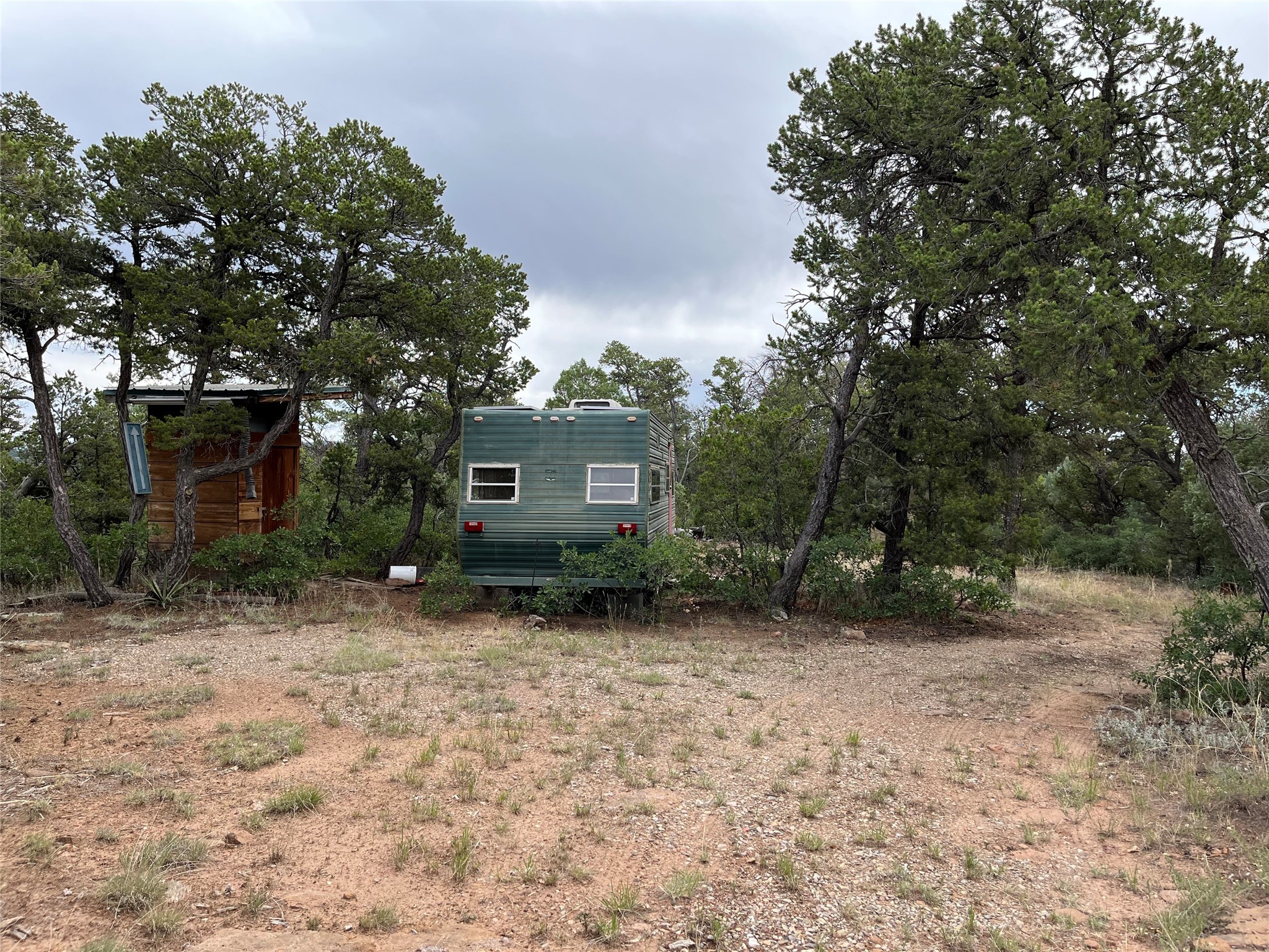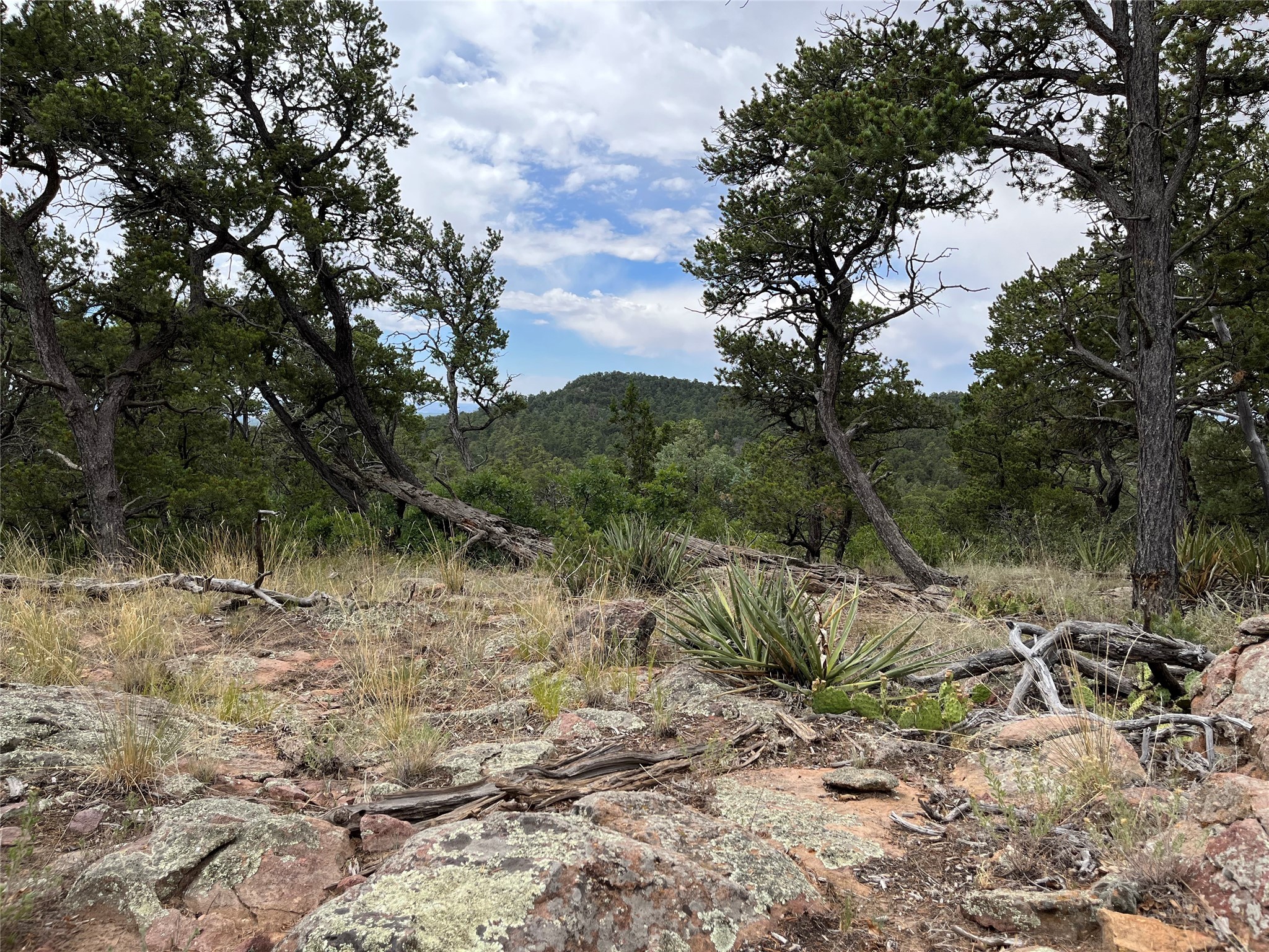 La Tierra Del Alba (Land of the Sunrise). Come and become one with nature where wildlife, nature, and stunning night skies collide creating a private refuge on this stunning 40 acre mountain top property with mature tree cover and wonderful rock-outcroppings. This property has some stunning panoramic views of the mountains and vistas in a park-like setting. Approximately 18 miles to Santa Fe or a 25 minute drive! Borders National Forest! Seller will convey property with a $3,000 water well siting study showing two possible sites for wells in addition to a modest trailer and composting toilet to begin your next adventure.