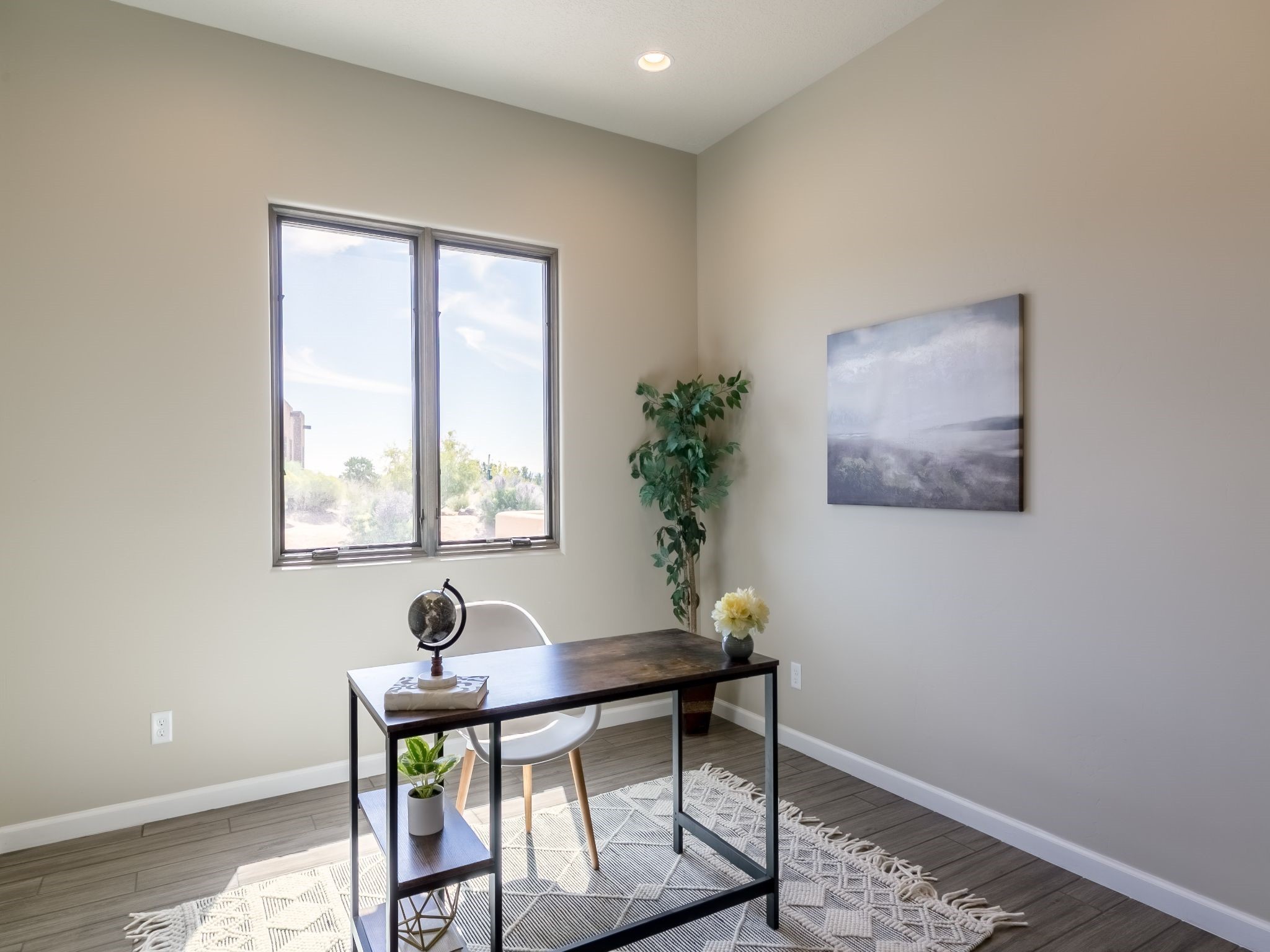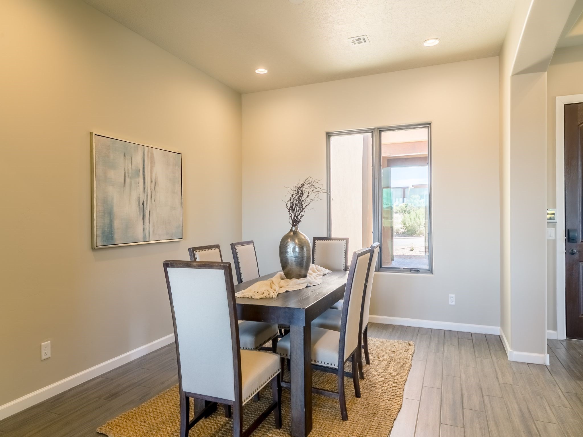 Completed August 2023; Ready for Move-In. the Patagonia pueblo floorplan is 3,265 sq. ft. in the main residence with a 218 sq. ft. guest suite with top-of-the line finishes. The main residence offers an open floor plan ideal for entertaining with light-filled, dining & kitchen areas; three bedrooms; media room; office & a 3-car garage. Retracting sliding glass doors frame the view & connect the living room with the covered portal area with gas fireplace & further to the generous walled-in. A spacious Wolf kitchen is anchored by a large center island with caf seating & is adjacent to the dining area which opens to the covered portal. The luxurious owner's suite features a walk-in shower with retreat area. Near the walking path, the Las Campanas Hacienda is minutes away. HOA fees cover maintenance, gated entries, paved roads, common areas, 24-hr roaming security & 24-hour EMT's. Membership to the Club at Las Campanas is optional.