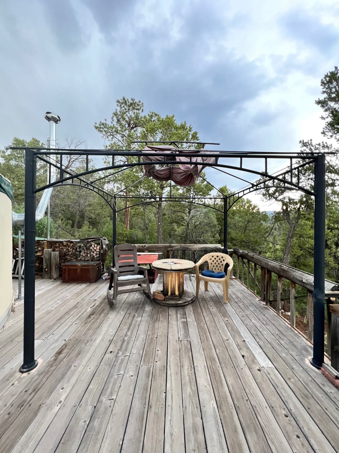 Looking for a place to just get away and enjoy the peace? I have what you're looking for and it's only about 40 minutes from Santa Fe! 9.5 beautiful acres in Pecos, NM with a 27+/- ft yurt, beautiful shed/garage and a 2015, like new, Winnebago Minnie Winnie, 20 ft camping trailer for your guests! Yes, very unique but a great opportunity to add onto this property or enjoy, after completing the updates that are needed. The yurt is very spacious with a wood stove and includes a compost toilet in the bathroom, a kitchenette and even an area for a bed, living room and dining room. The public electricity is a bit of a ways away from this property but included are solar panels with batteries and an inverter. Property also includes a 500 gallon holding tank for freshwater and a 300 gallon tank for gray water. The owner built the yurt onto a deck to enjoy the mountain view but also to have plenty of storage space! Under the deck has lots of space to store your items + additional storage space is available in the shed/garage. Property is surrounded by mature trees, beautiful birds and sometimes wildlife too. Schedule your showing today! Being sold in as-is condition. High clearance vehicle recommended.