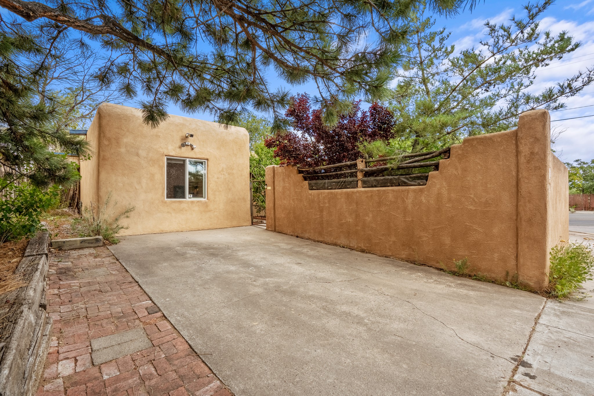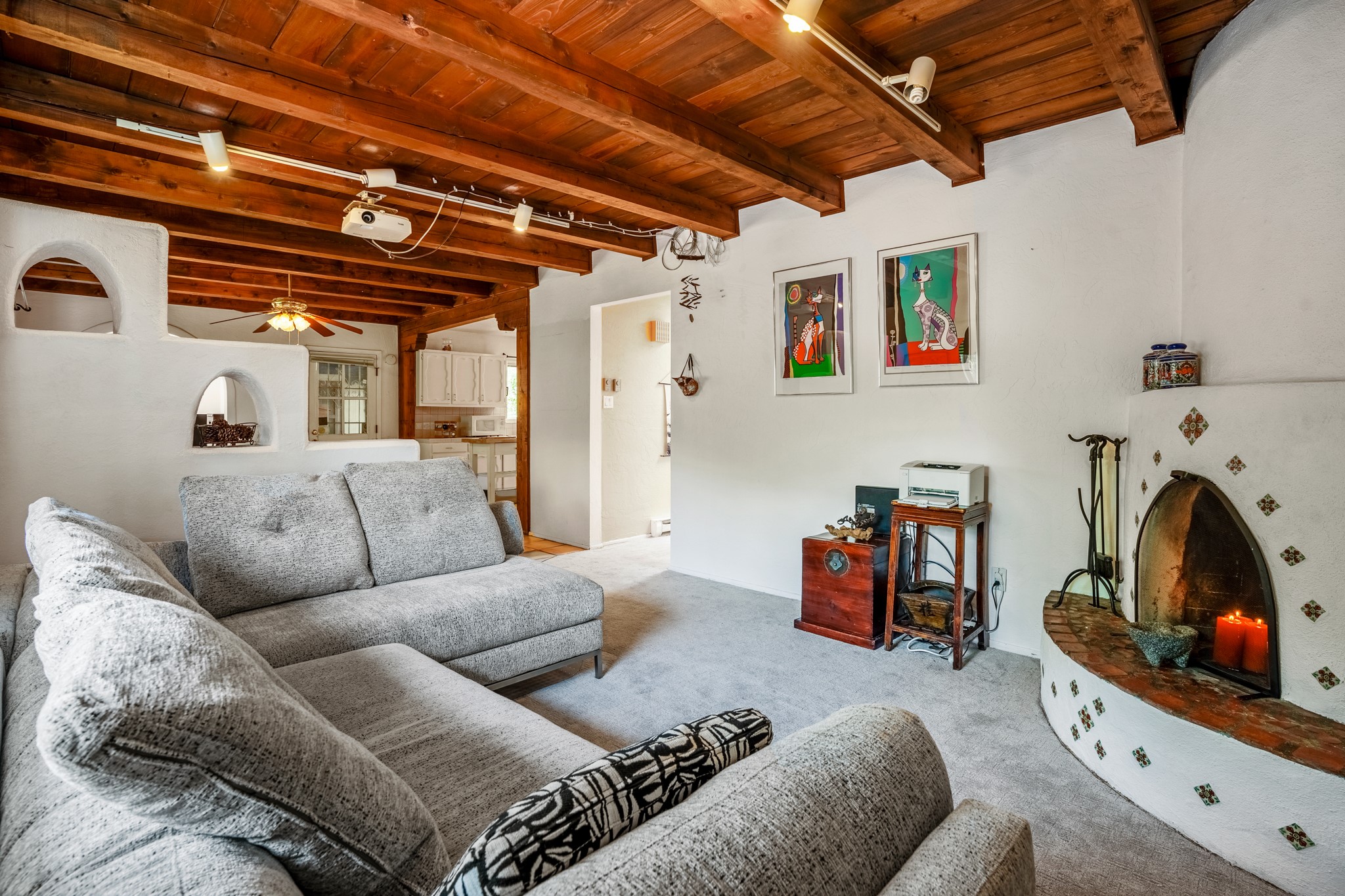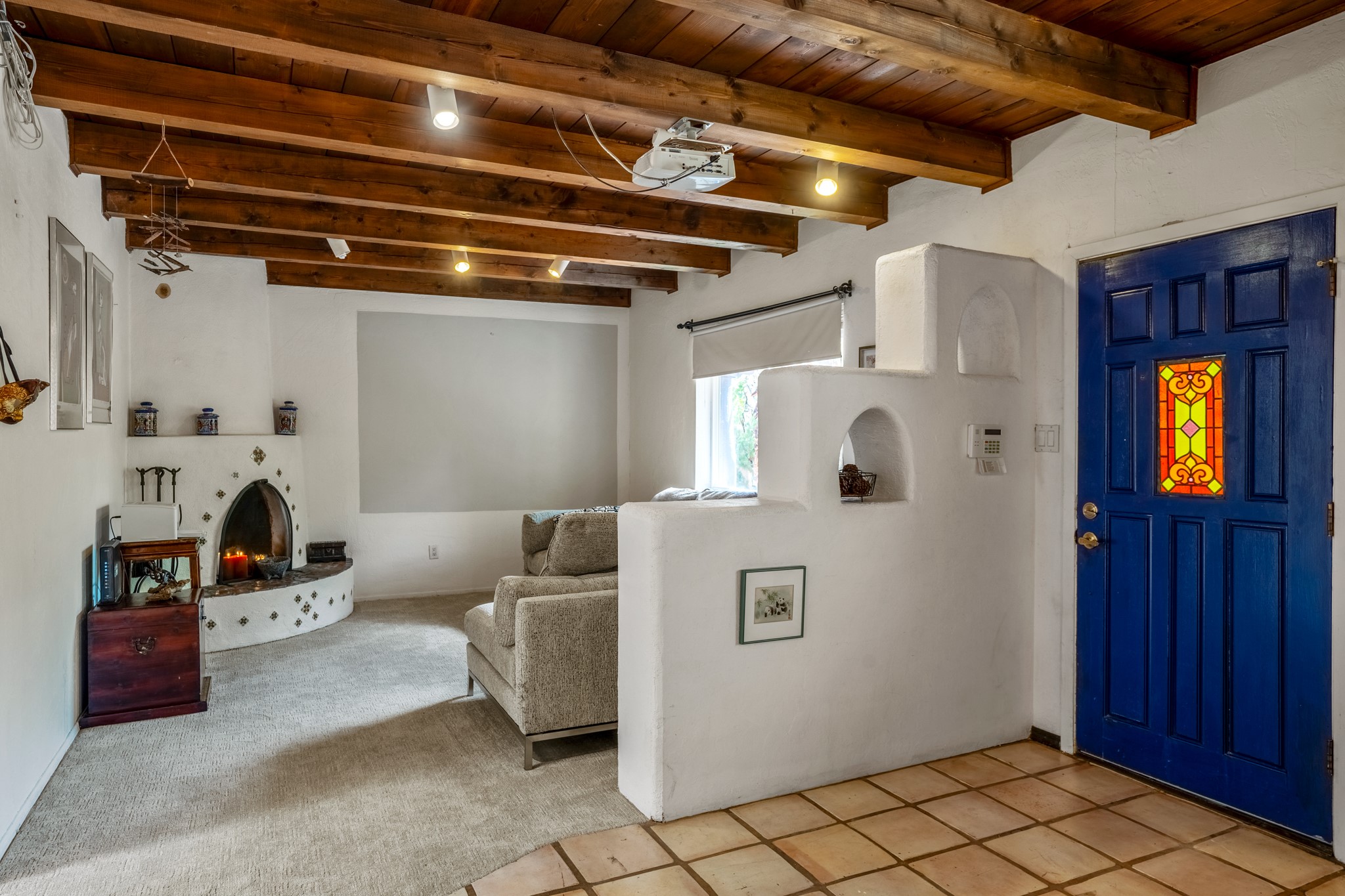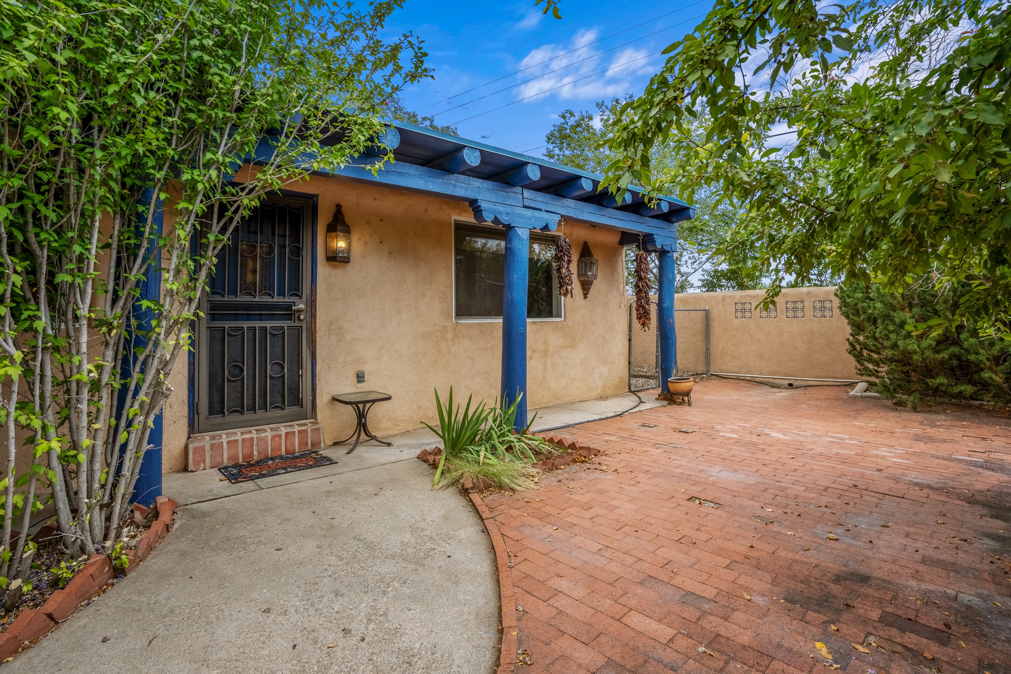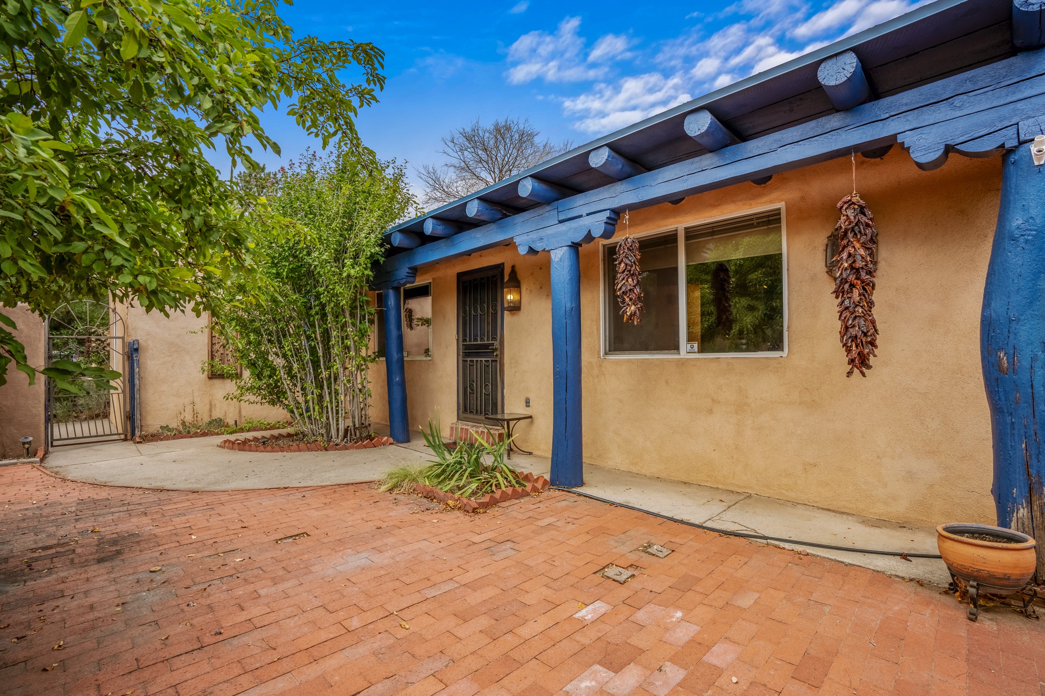 Discover the enchantment of Santa Fe living in this charming two bedroom, one bath home! Adorned with the quintessential Southwestern charm that features a welcoming front courtyard graced by blooming trees and contoured brick paving. Located 2.5 miles from the Plaza and the riverwalk parkway, this home offers the perfect blend of convenience and character with exposed wood and hand painted accents. Newer roof (2021) with transferrable warranty. Newer evaporative cooler in the hallway. Newer hot water heater. Sewer line recently redone. This home is ready for its next chapter, all it needs is you!