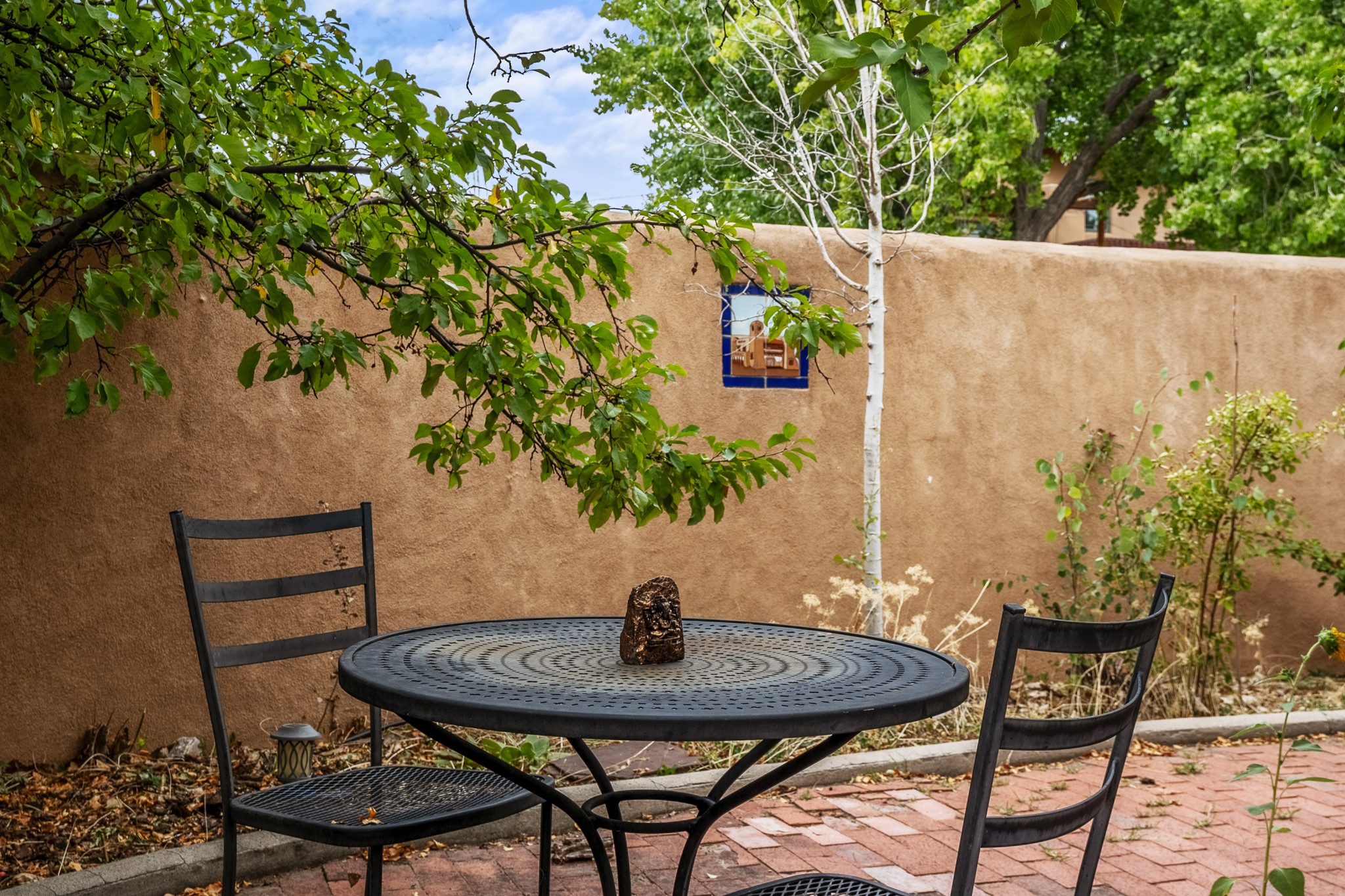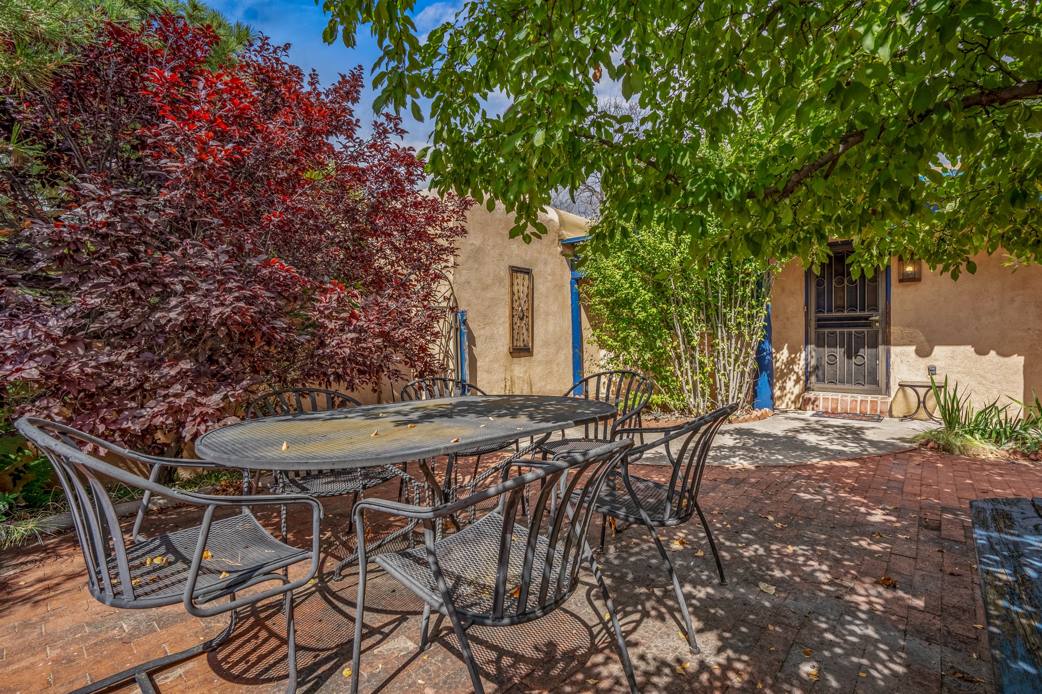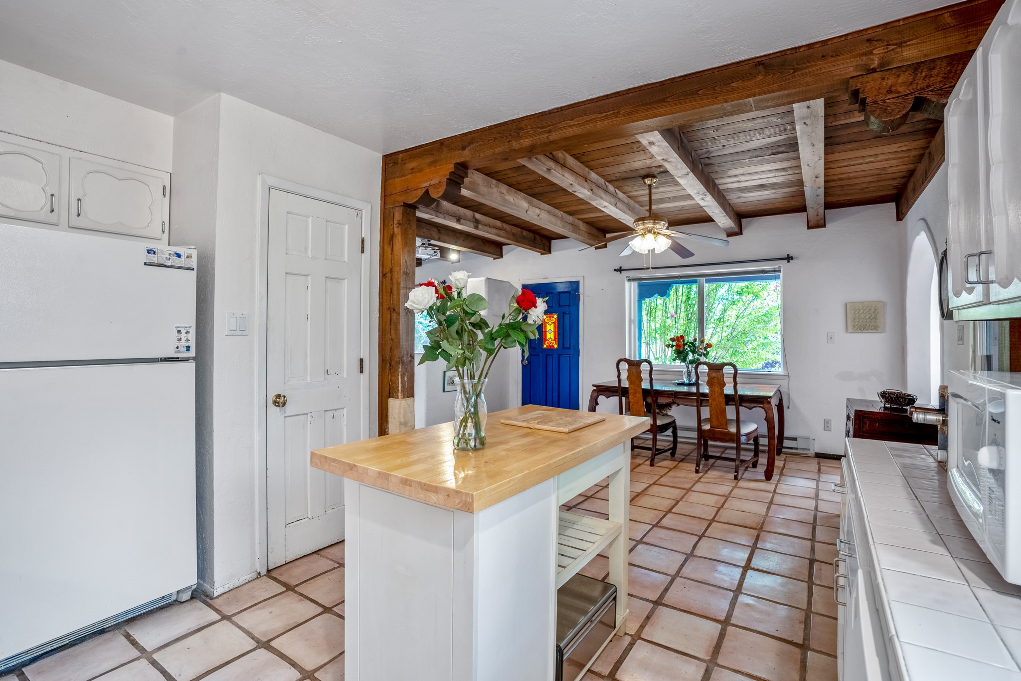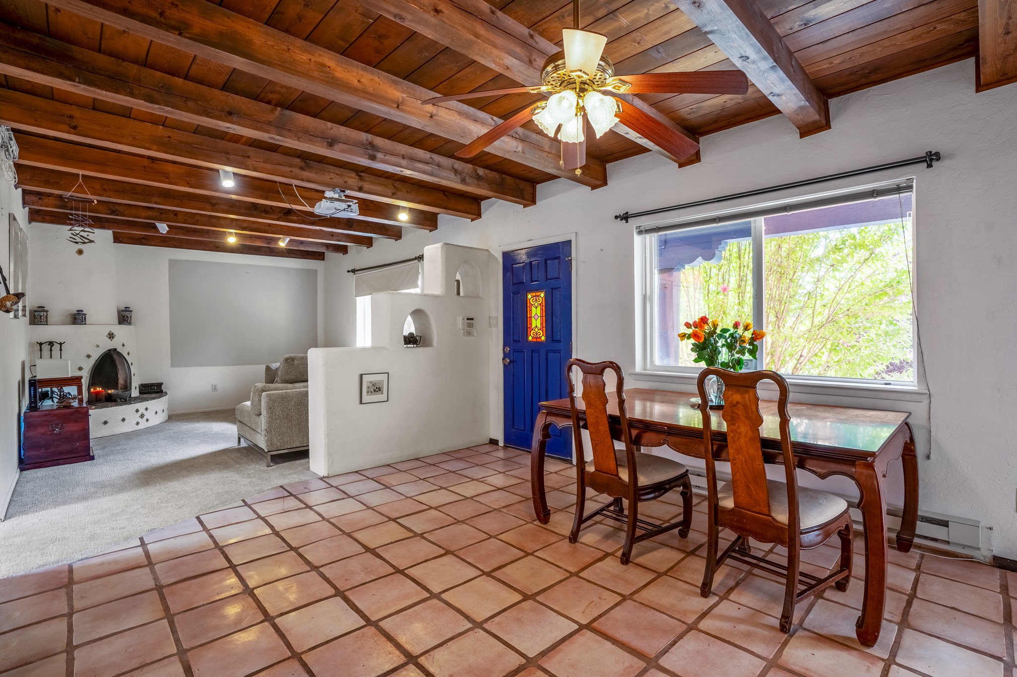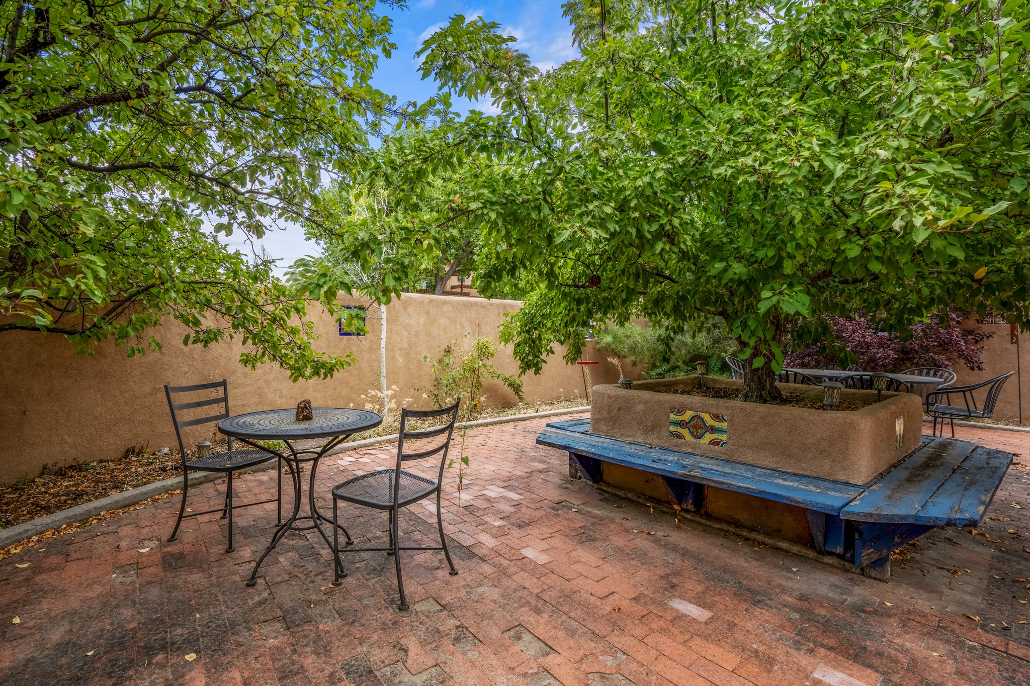 Discover the enchantment of Santa Fe living in this charming two bedroom, one bath home! Adorned with the quintessential Southwestern charm that features a welcoming front courtyard graced by blooming trees and contoured brick paving. Located 2.5 miles from the Plaza and the riverwalk parkway, this home offers the perfect blend of convenience and character with exposed wood and hand painted accents. Newer roof (2021) with transferrable warranty. Newer evaporative cooler in the hallway. Newer hot water heater. Sewer line recently redone. This home is ready for its next chapter, all it needs is you!