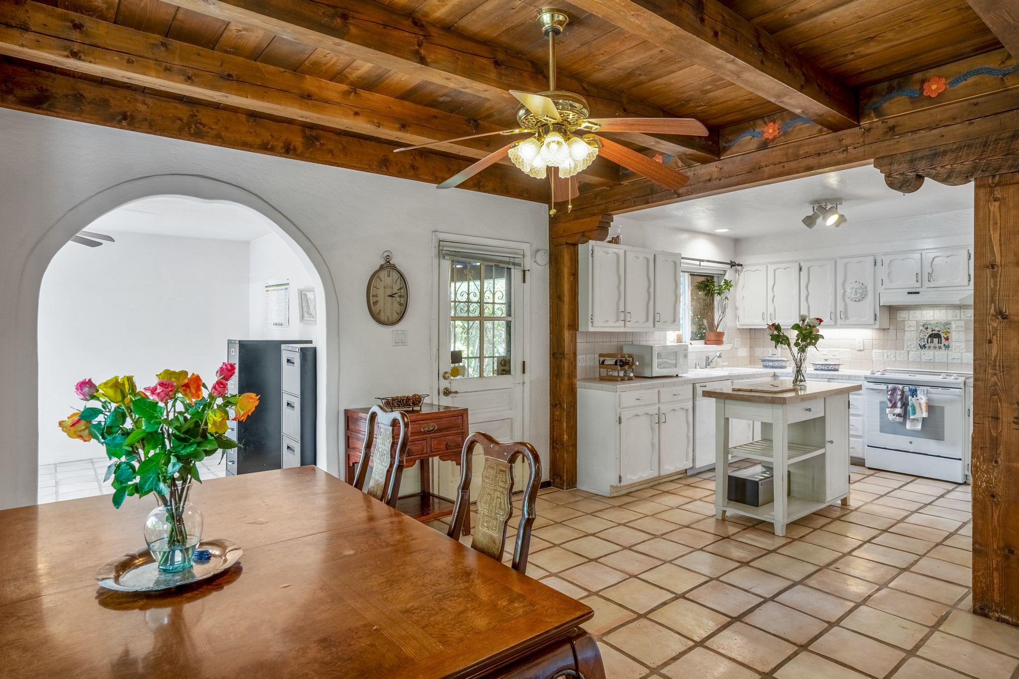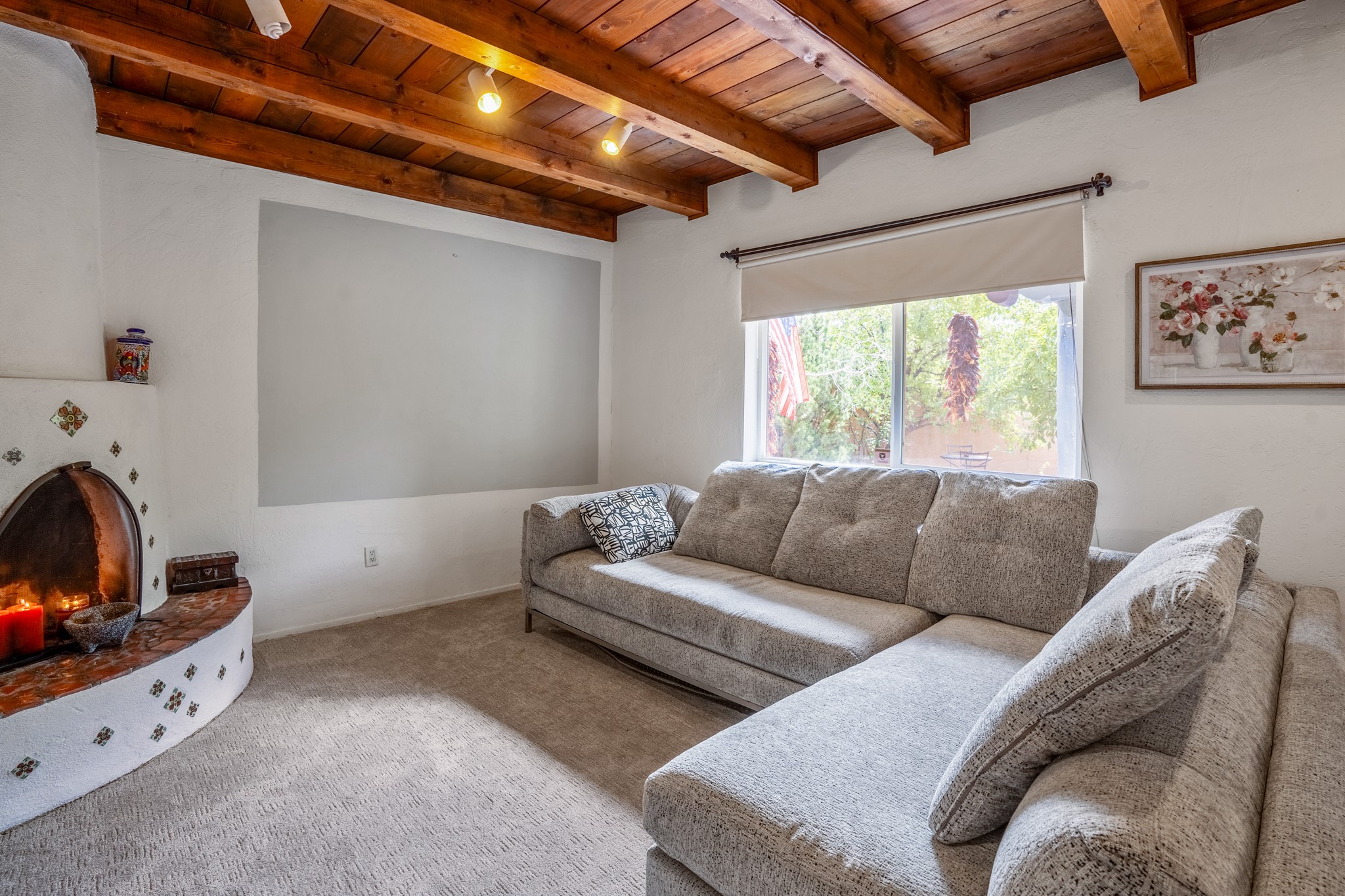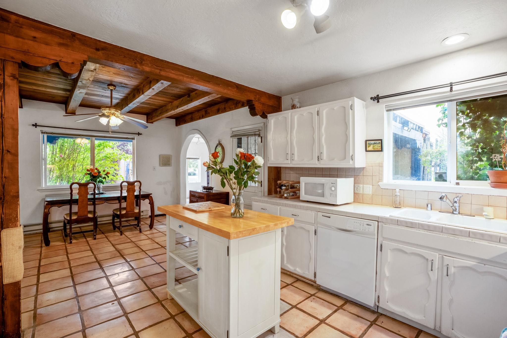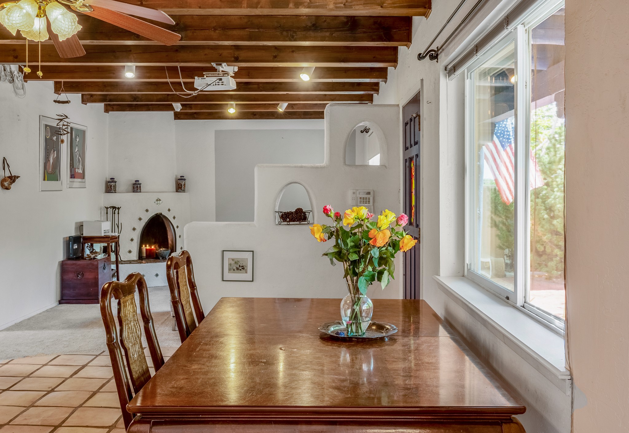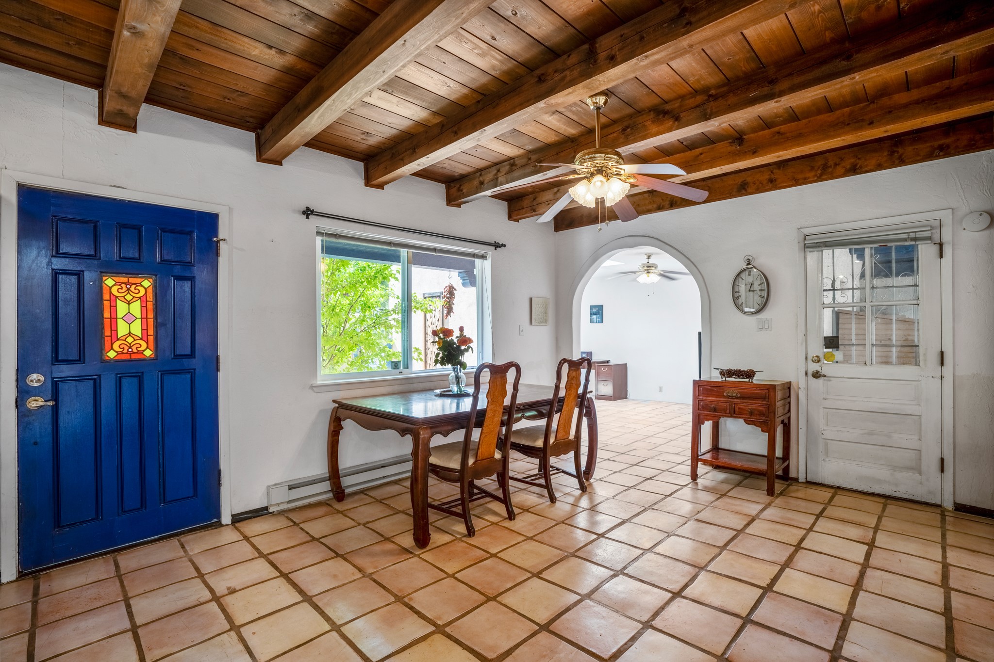 Discover the enchantment of Santa Fe living in this charming two bedroom, one bath home! Adorned with the quintessential Southwestern charm that features a welcoming front courtyard graced by blooming trees and contoured brick paving. Located 2.5 miles from the Plaza and the riverwalk parkway, this home offers the perfect blend of convenience and character with exposed wood and hand painted accents. Newer roof (2021) with transferrable warranty. Newer evaporative cooler in the hallway. Newer hot water heater. Sewer line recently redone. This home is ready for its next chapter, all it needs is you!