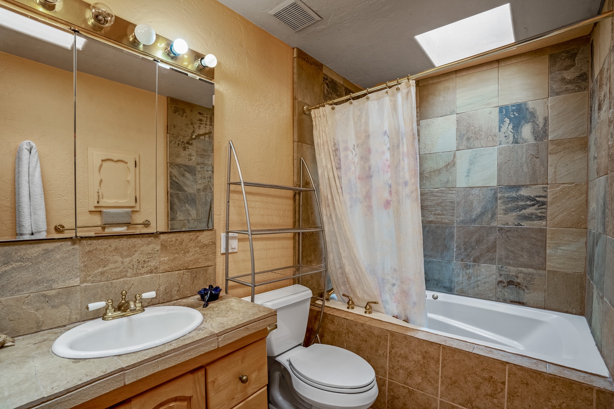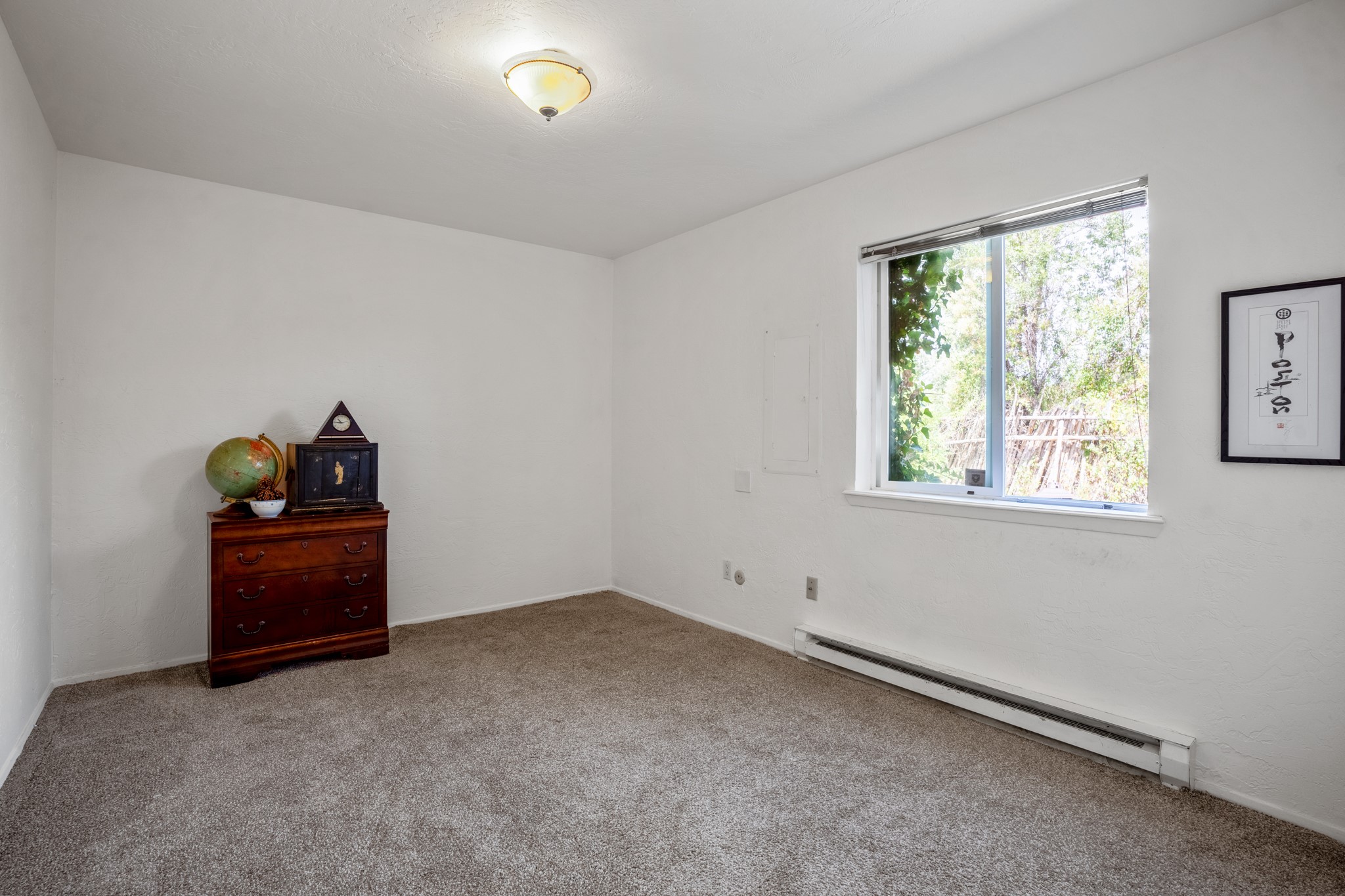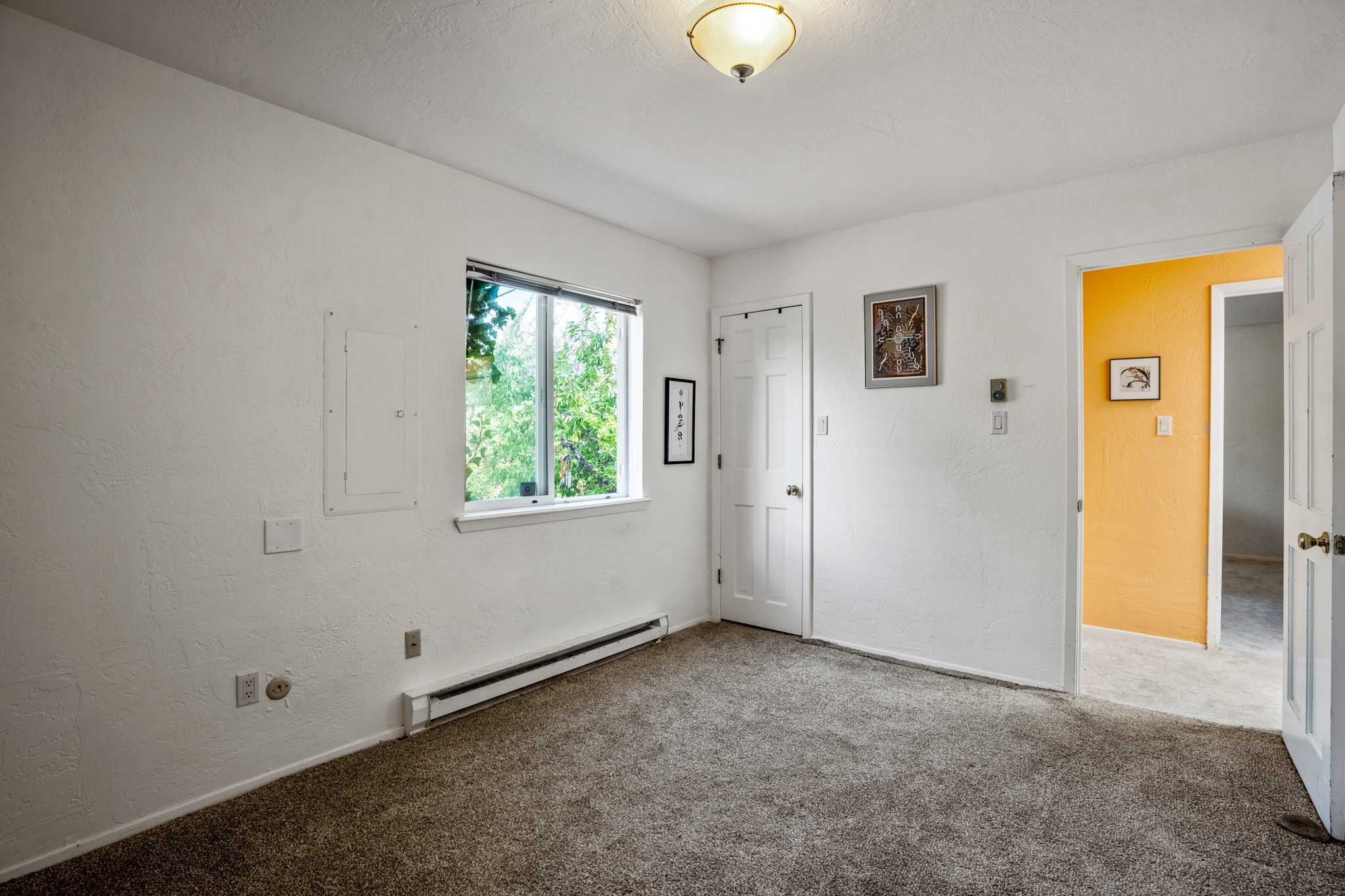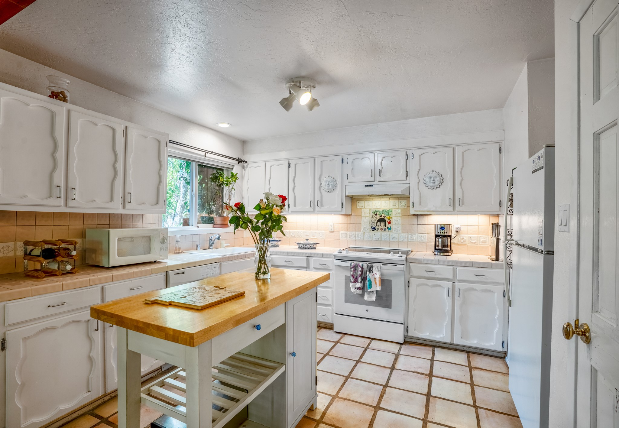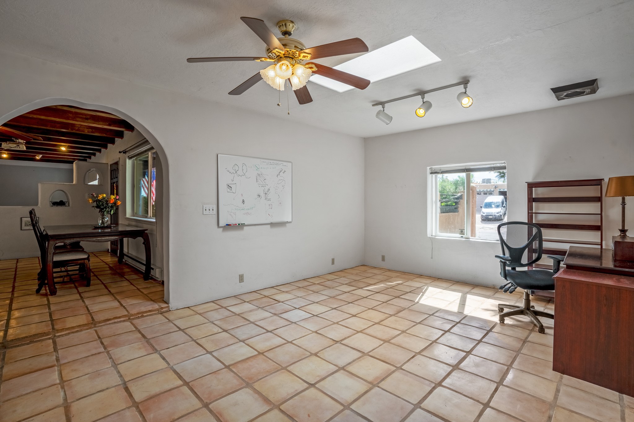 Discover the enchantment of Santa Fe living in this charming two bedroom, one bath home! Adorned with the quintessential Southwestern charm that features a welcoming front courtyard graced by blooming trees and contoured brick paving. Located 2.5 miles from the Plaza and the riverwalk parkway, this home offers the perfect blend of convenience and character with exposed wood and hand painted accents. Newer roof (2021) with transferrable warranty. Newer evaporative cooler in the hallway. Newer hot water heater. Sewer line recently redone. This home is ready for its next chapter, all it needs is you!