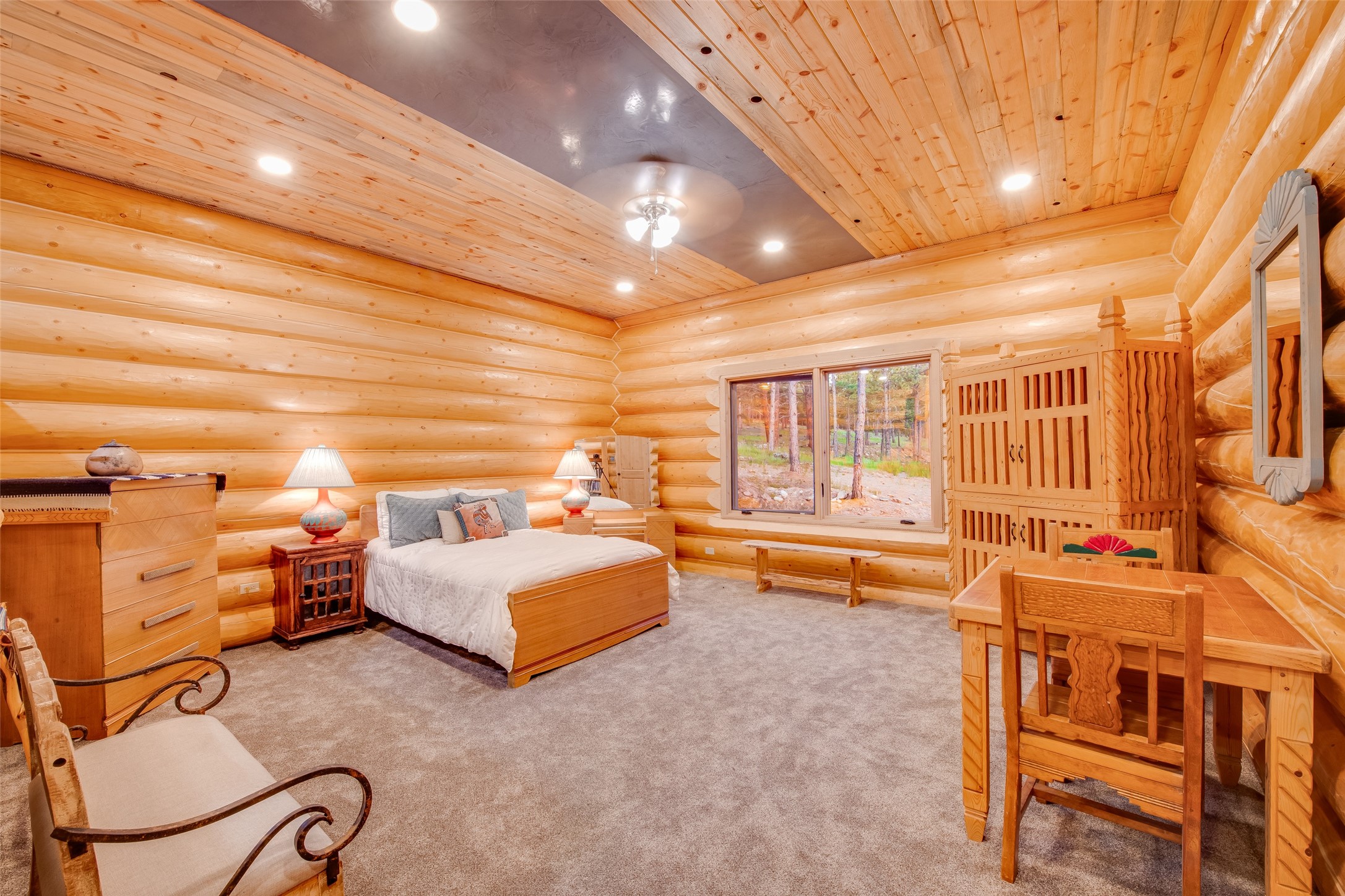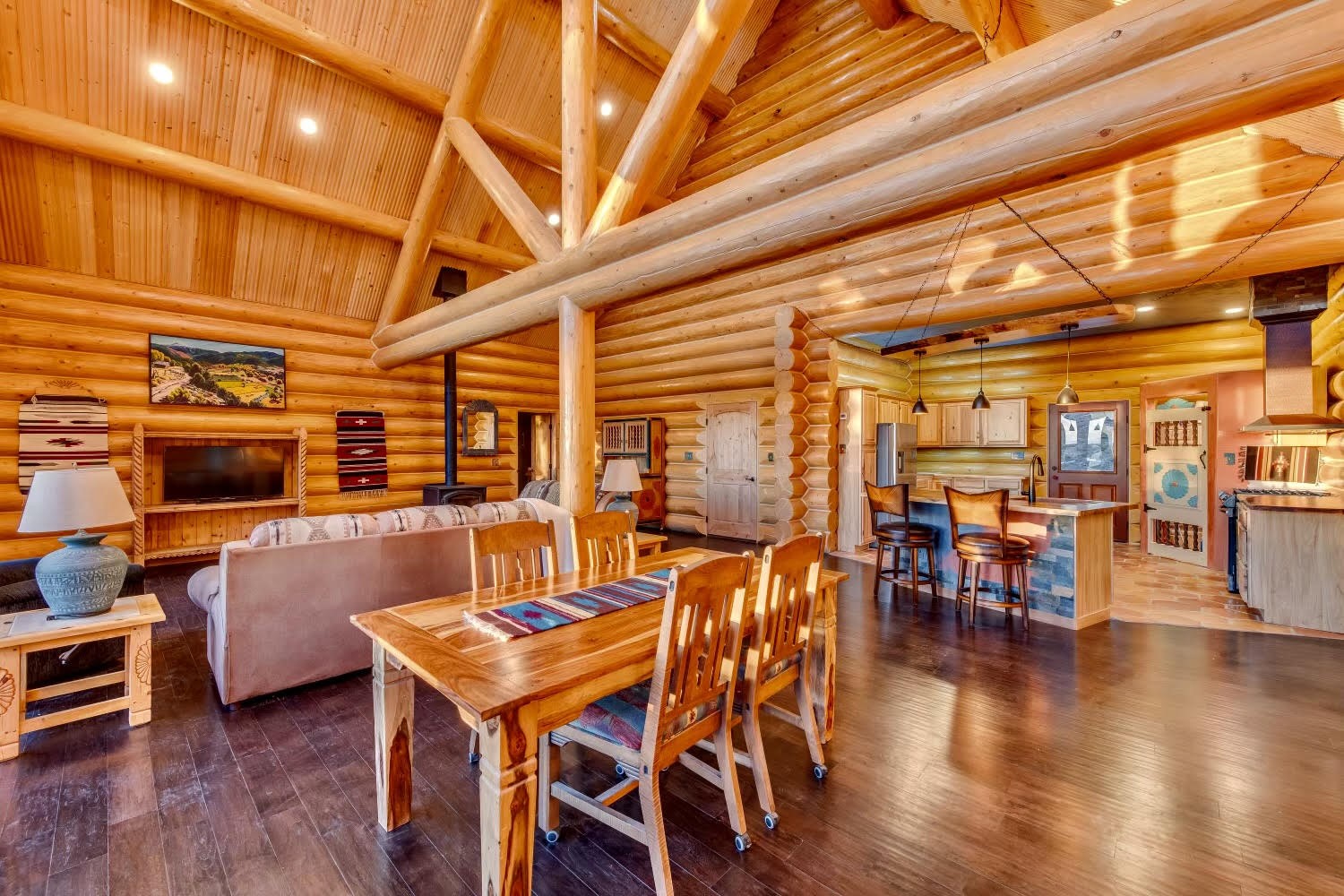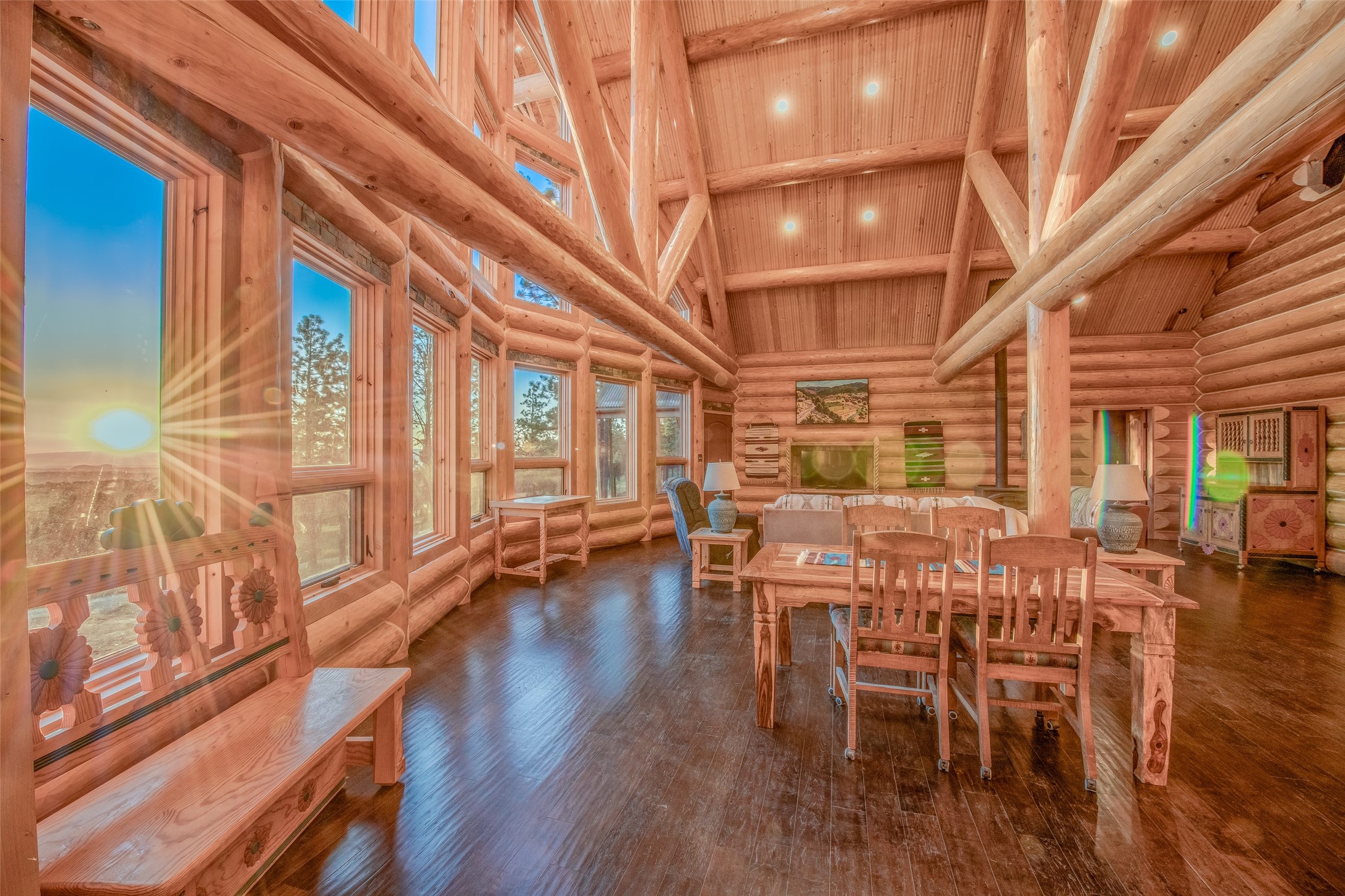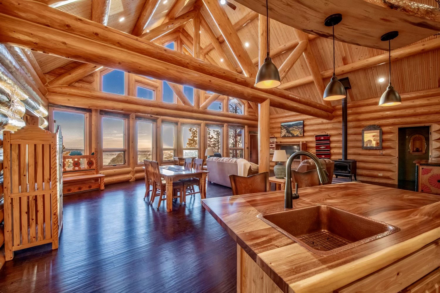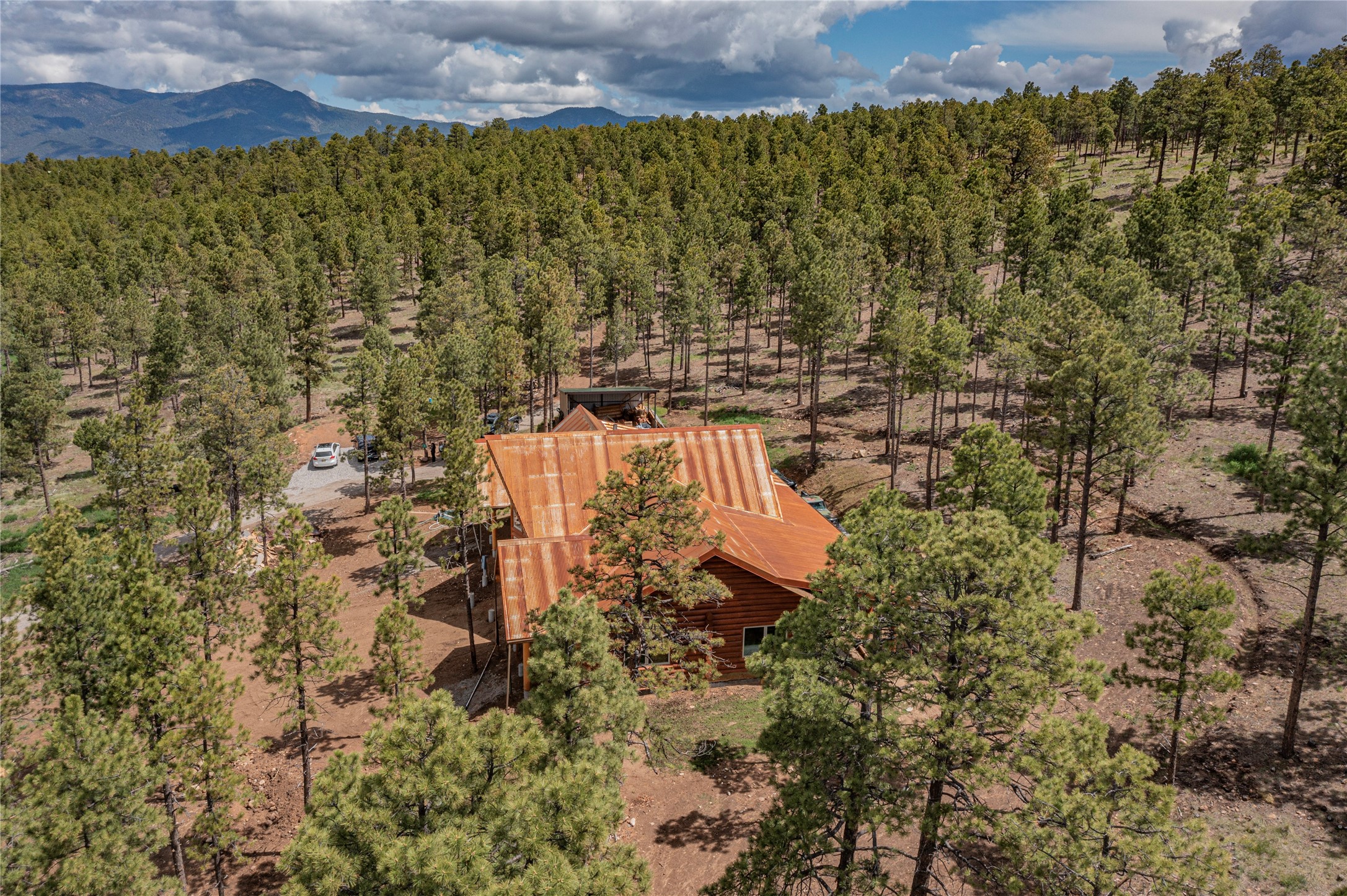 Nestled in a grove of ponderosa pine and embraced by the fresh mountain air of the Sangre de Cristo Mountain range, this property offers more than a view, it offers a way of life. The private road leads you to a unique home, resting perfectly in-tune with its environment. This home is located on the southern end of the Rocky Mountains, just 30 miles south of historic Taos, NM. It neighbors the Carson National Forest & Pecos Wilderness. It stands amongst a restored ponderosa pine forest. Two natural earth-fed springs. Numerous ponds created specifically to provide water to wildlife & for erosion control. This spacious ranch provides twenty +- acres of flood irrigated pasture from two acequias & 14+- acres of dry pasture. Registered with New Mexico Fish & Game for landowner elk tags in Unit 45 and is located within 60 to 70 miles of 5 ski resorts, namely Sipapu, Taos Ski Valley, Angel Fire, Red River and Ski Santa Fe. This log cabin lodge is newly built! It boasts a 27-foot cathedral ceiling,3 bedrooms, 2 bathrooms, hot tub, wood burning stove, and a 4-car garage/workshop with a bonus room upstairs, within its approximate 3500+- square feet, with an additional 1,200+- square feet of flawless decks - perfect for small intimate dinners or larger sophisticated gatherings. The 12-inch logs and floor plans that foundationally support this home were purchased from Montana Custom Log Homes Inc, the acclaimed creators and designers of custom-built, versatile, and handcrafted homes for generations. A view of hundreds of square miles of northern New Mexico valleys & mountains are out the west facing windows. Sunsets are glorious! Underground utilities, highspeed fiberoptic internet, cisterns for water catchment, 25 x 25 carport and so much more. Property excellent for that unique family get a way, secondary or primary home compound, or corporate retreat, the use is endless. A truly special and unique property awaits you! Don't miss out! Schedule your viewing today.
