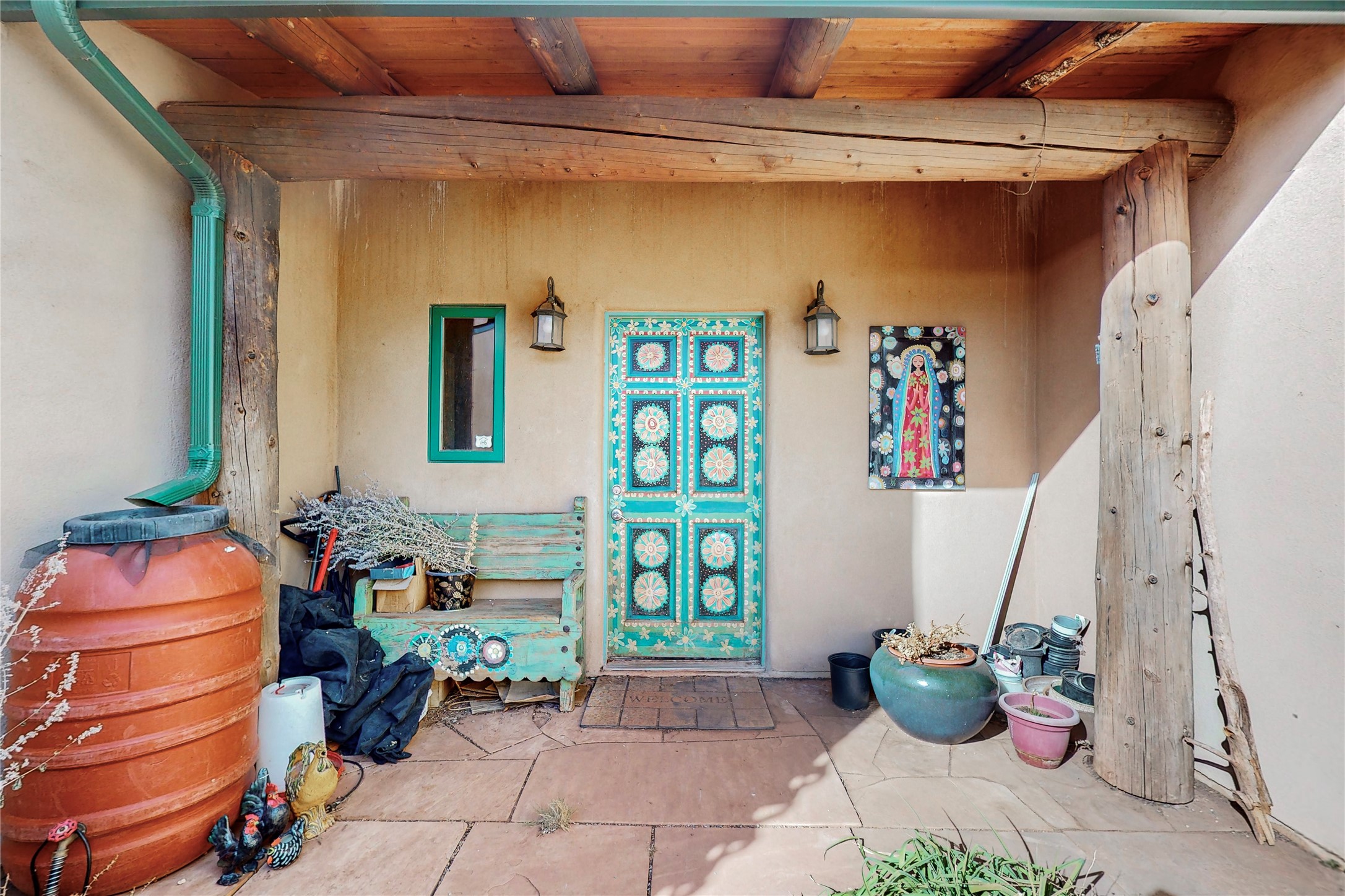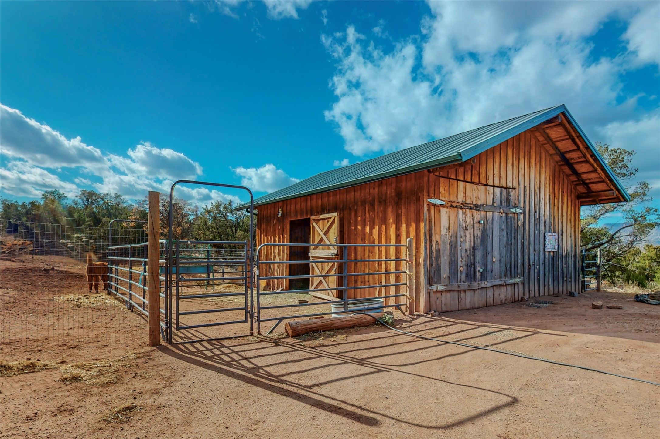 Country living at its best on 39+ acres (2 lots) with rocky outcroppings, a natural spring, open landscape and rich red earth all around. Located just outside the historic village of Ribera down a private dirt road nestles this iconic Northern NM style two story home complete with chicken coop, and a small barn/stable with turn out fencing. Photovoltaic array to help power the house. Inside find an open plan kitchen/living/dining with locally resourced Douglas fir floors, high ceilings, a wood burning stove and access to a portal that runs along the back of the house for shady afternoons enjoying the sweeping views. The second floor consists entirely of a good sized living area (office/studio?) and a separate en-suite bedroom. Mini-split heating and cooling throughout the house. New propanel roof in 2021. Well. Septic. Small fenced side garden. Easy access to Las Vegas, Albuquerque and Santa Fe (40 minutes). Seller would prefer a short lease back after closing.