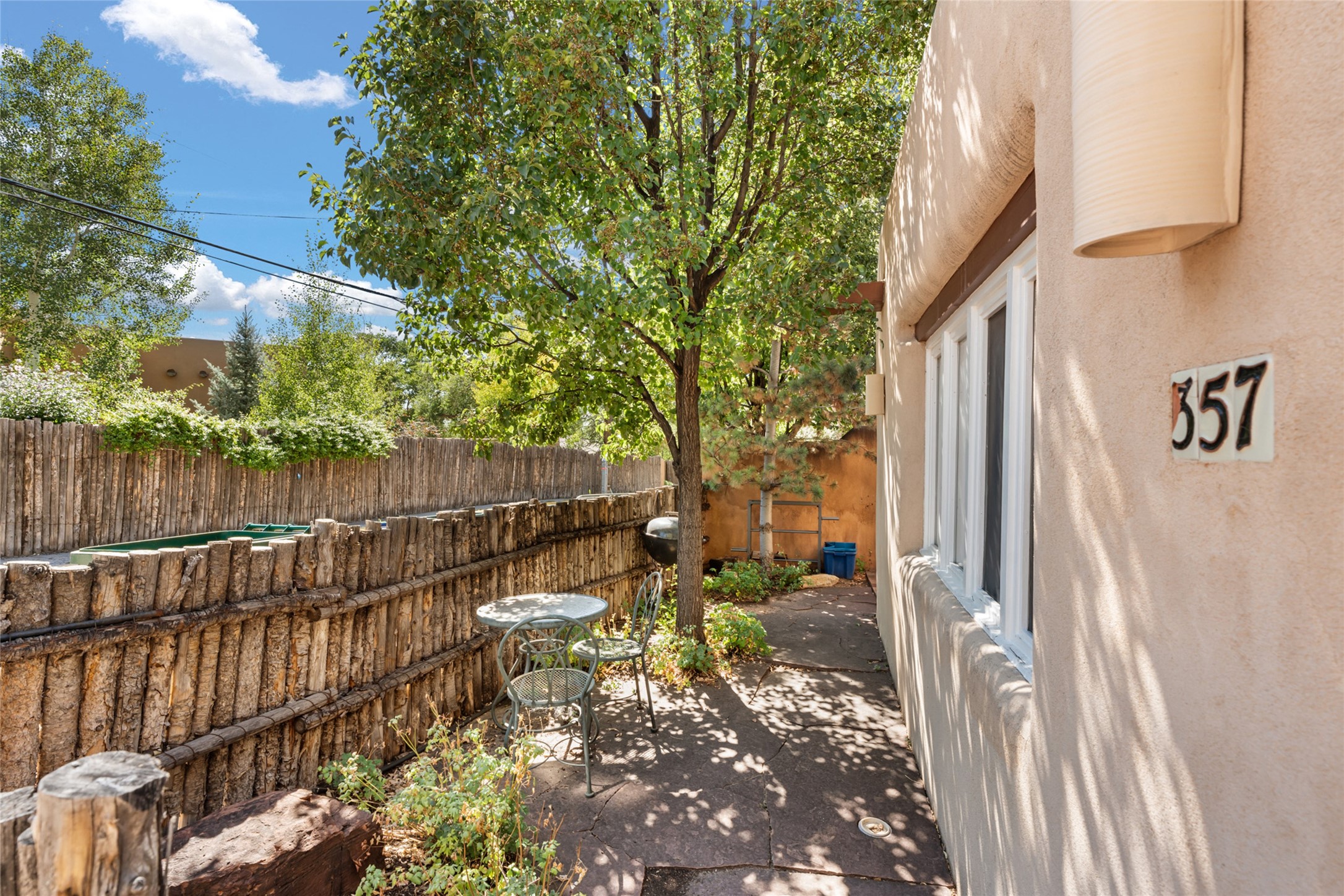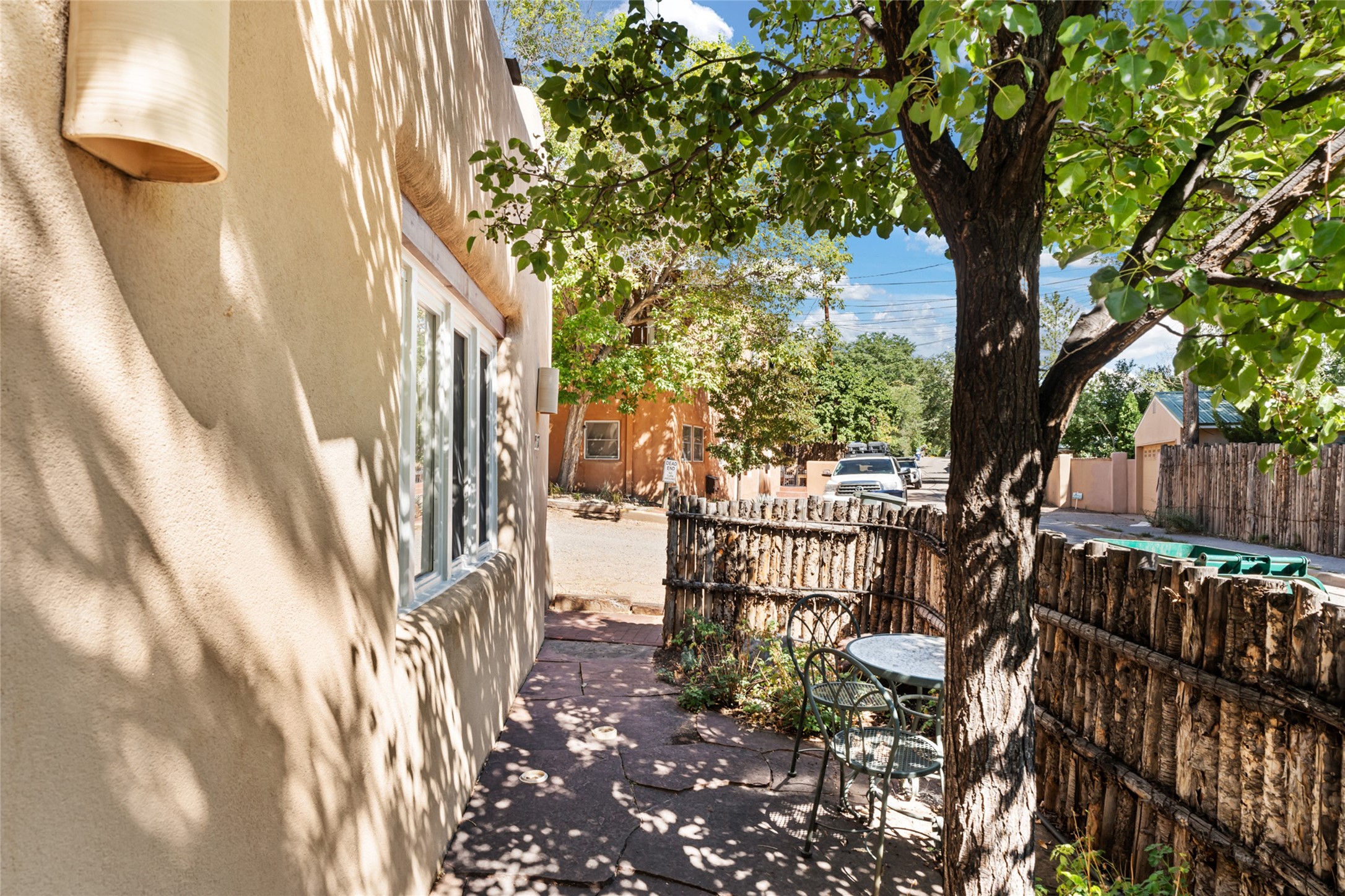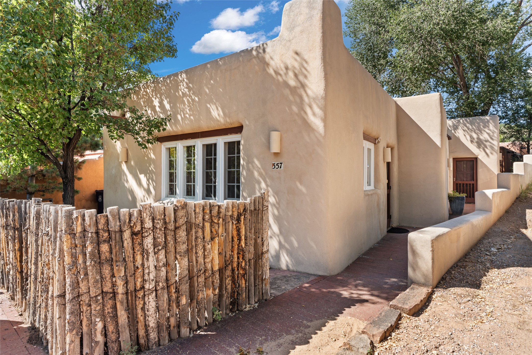 Located just down the street from the Thomas Macaione Park, the Cross of the Martyrs and the numerous shops and galleries on Marcy Street, this timeless and authentic Santa Fe home and attached guesthouse is situated down a quiet lane with an attractive floor plan in place. The entire structure consists of a 1928 sq.ft. (1405 sq.ft main house/523 sq.ft guesthouse) single-story frame and stucco home exuding a classic yet updated Santa Fe style. The 0.07 acre property boasts a private, walled, and gated outdoor environment with a large portal located off the north side of the property. Each space consists of a living/dining area, full kitchen, bedroom and full bathroom. A wood burning kiva fireplace is situated in each of the living areas. A shared laundry room/mechanical room separates the spaces with privacy doors in place. Ceramic tile and wood floors, smooth plaster walls, refrigerated mini-split cooling and several skylights throughout the homes add to not only the functional, but the esthetic feel of the home. Completely updated and perfectly maintained, this is a property not to be missed in an idyllic Santa Fe location.