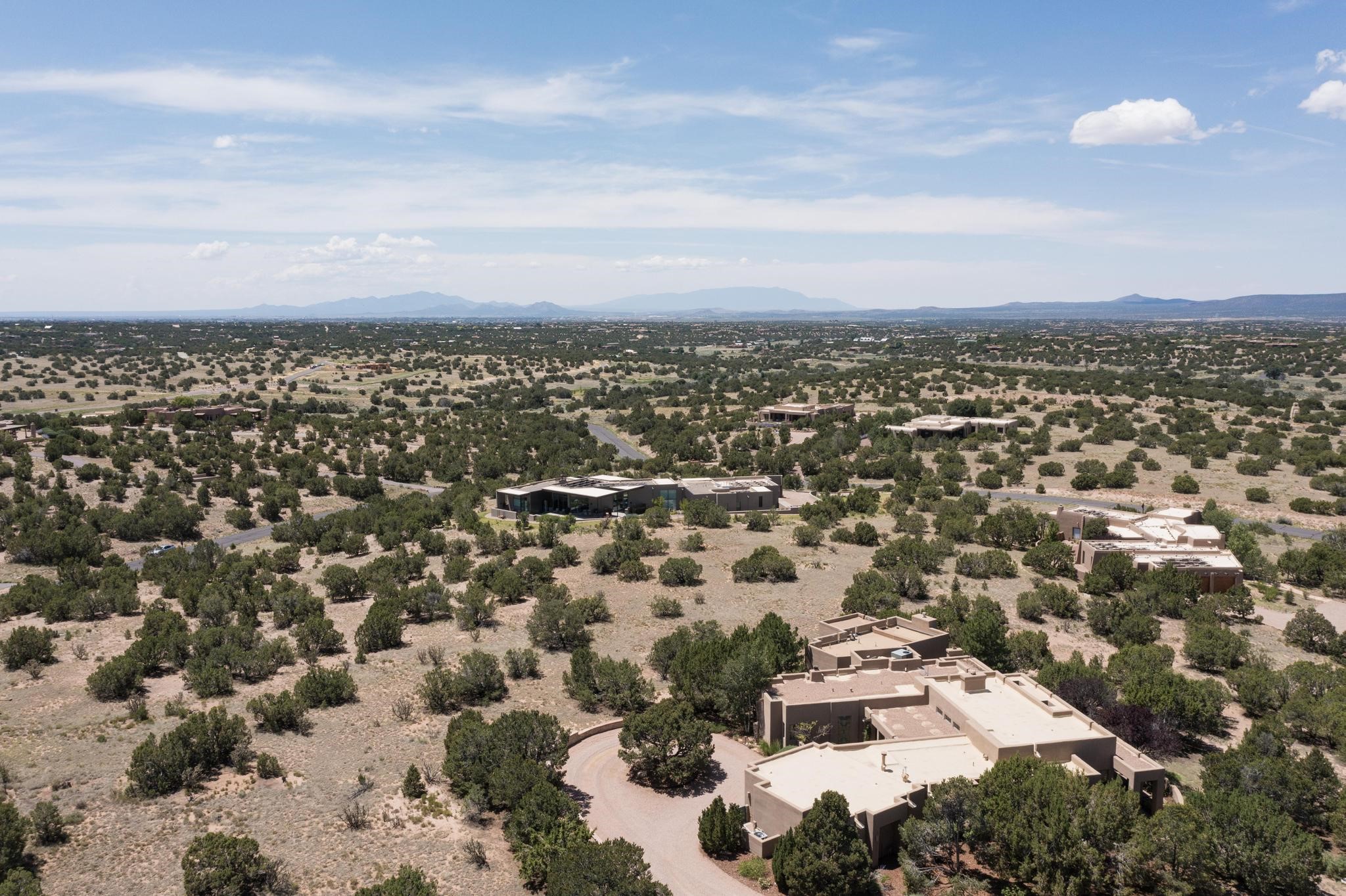 Beautiful view lot located on a private cul-de-sac in Las Campanas Estates I. Sangre de Cristo, Sandia, Jemez Mountains, and sunset views are yours from this elevated lot. A viewing platform provides an opportunity to consider several options for a superb home site. The lot will support a substantial residence or part-time home with ample space for house and guesthouse. There is an optional membership to The Club at Las Campanas. The Club offers indoor and outdoor pools, tennis courts, fitness center, dining, premier equestrian center and two Jack Nicklaus Signature Golf Courses. Gated community with paved roads, 24-hour roaming security, common area maintenance and 24-hour EMT's on site.