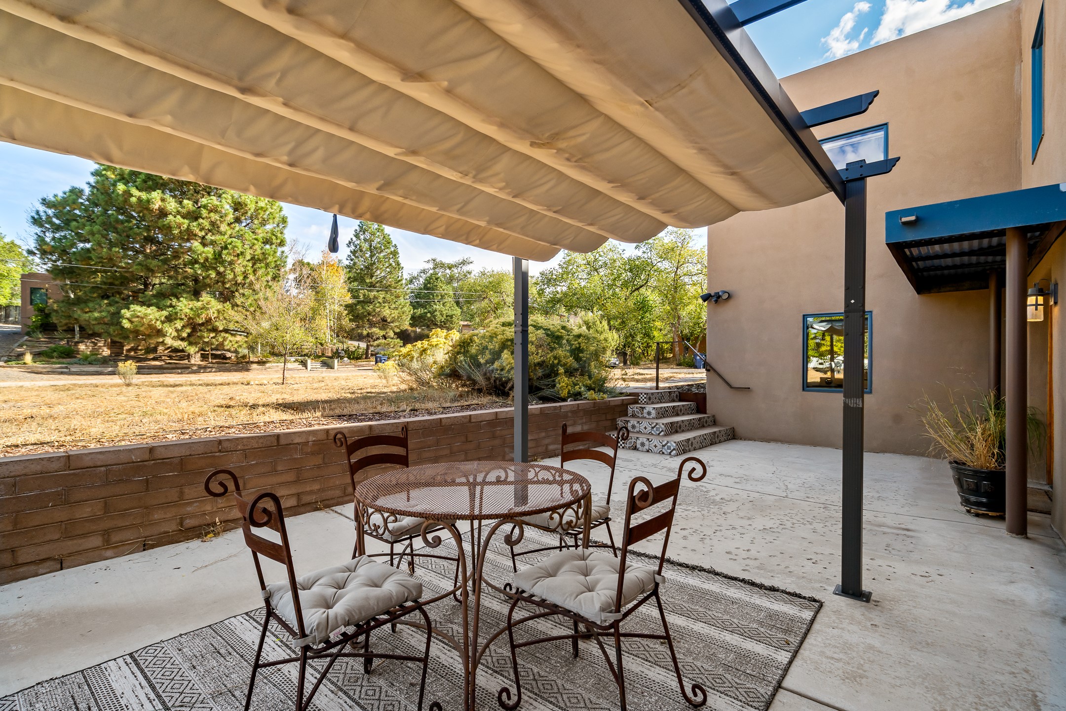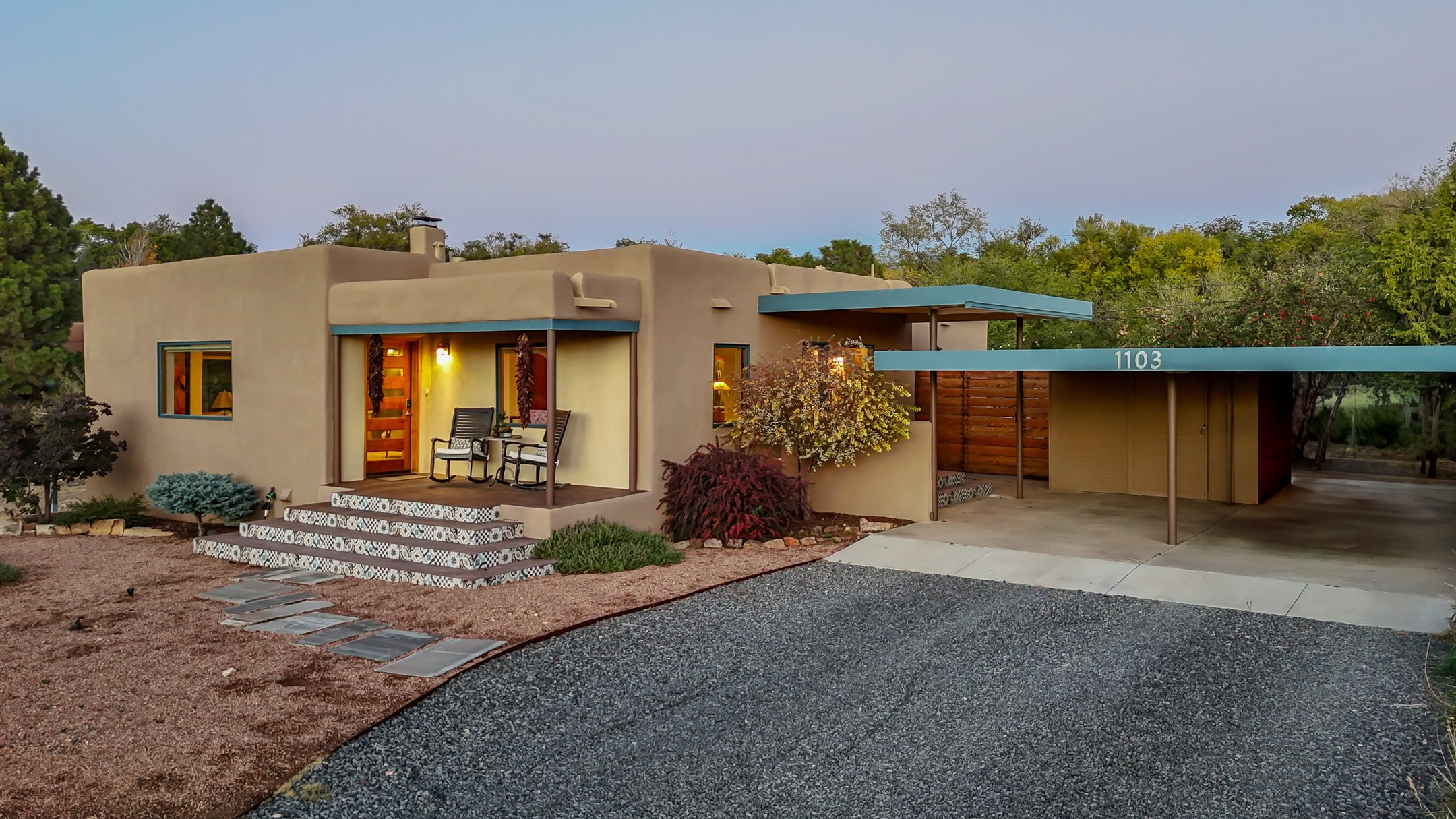 Beautifully remodeled Soft Contemporary House and guest house in the Historic South Capital neighborhood. Sited on a generous half acre lot, this home is only a short 15-minute walk to the historic Santa Fe Plaza, the Railyard district, downtown restaurants, stores, and hiking trails. This unique layout presents multiple living options, incorporating a total of 4 bedrooms and 4 baths. The main house is approximately 2134 sq ft 3 bed/2 bath, plus an attached 1159 sq. ft 1 bed/ 2 bath guest house. Finishes include original oak flooring, plastered walls and arches throughout, quartz countertops, and stainless-steel appliances. A large primary suite has a sitting area, fireplace, and direct access to a wraparound deck. Additionally, there is a large, fenced backyard and two separate private driveway entrances for the House and guest house. There is also ample open outside spaces with park-like potential to create your own personal oasis. The guest house features a stunning remodeled full kitchen, a fireplace, a living/dining area, a flex room, one large ensuite bedroom plus an additional 3/4 bath. The next owner can also choose to re-connect the main and guest house creating a large single-family 4bed/4bath home with its own private guest wing or Mother-law quarters.