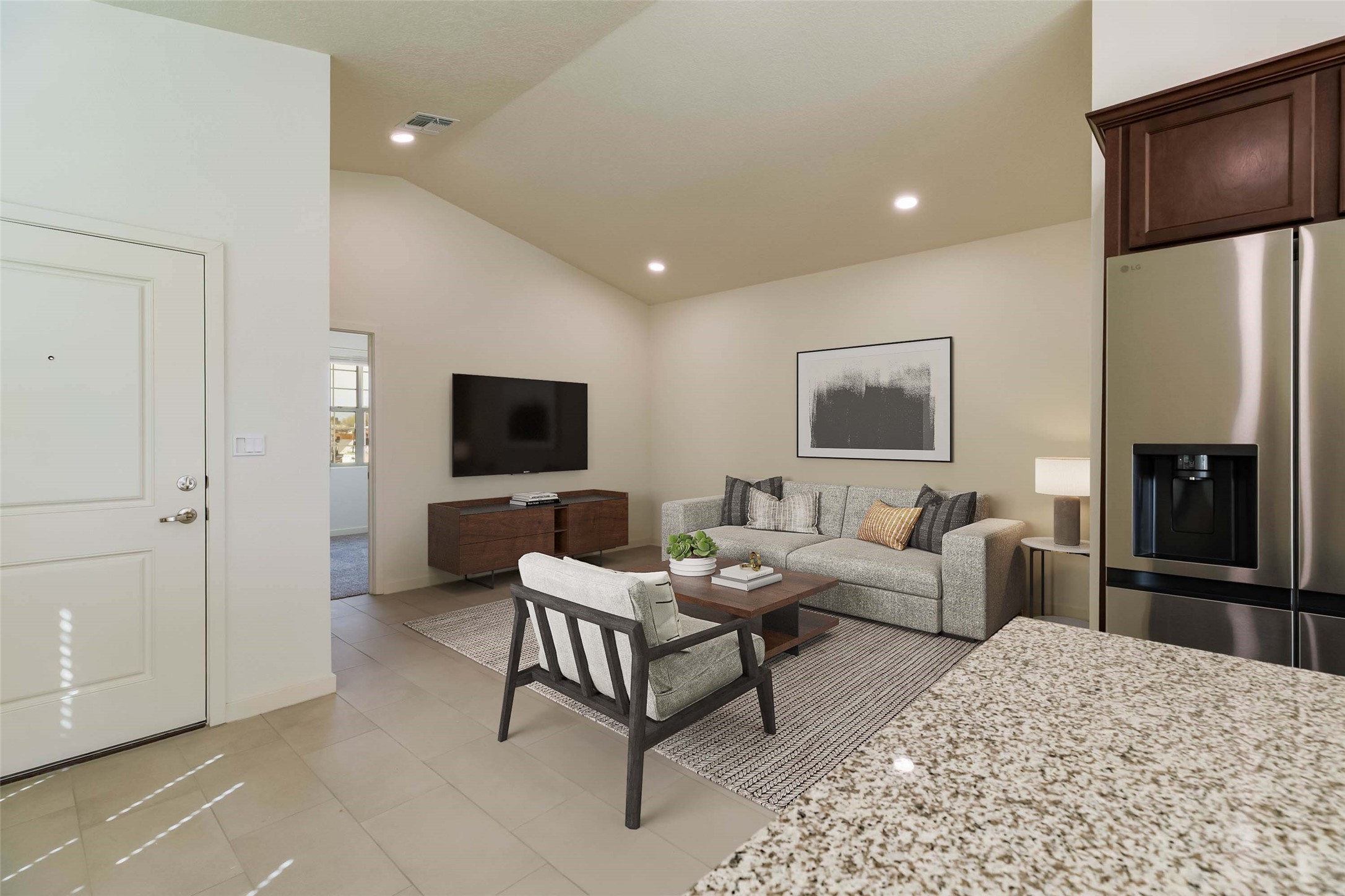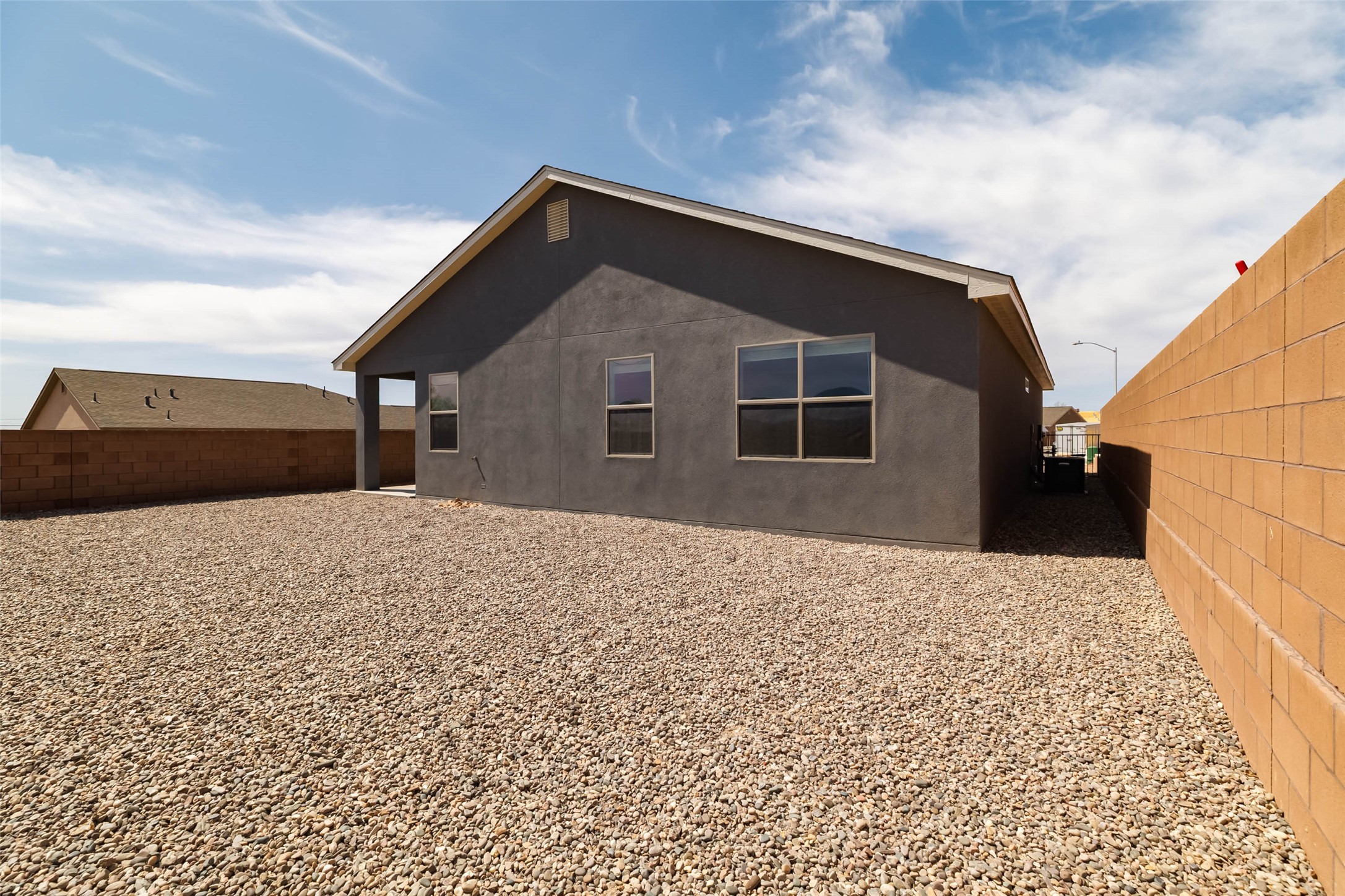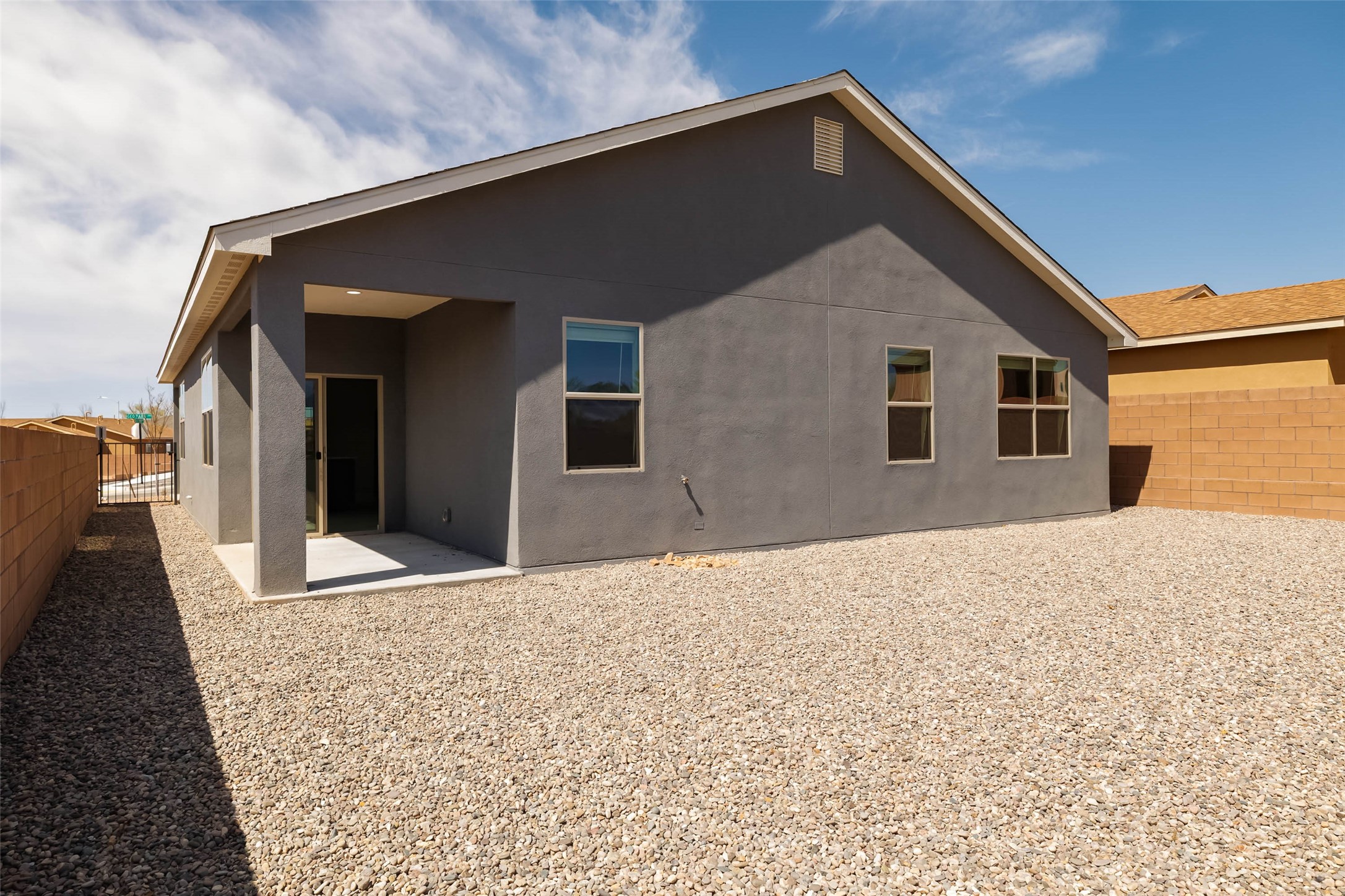 Great new home ready for the holidays in the new community of Geo Park. Really special floorplan features 3 bedrooms 2 baths + 2 car garage. Separate utility room. Vaulted ceiling in Living/dining/kitchen area gives this compact home a lot of volume and airiness. 13" ceiling in vaulted area and 9' ceilings in bedrooms, baths, entry, utility room. Separate pantry and spacious island in kitchen which has slider glass doors accessing back patio. Solid granite counter tops in kitchen with backsplash. Elegant 2 panel doors throughout. Flat panel birch cabinets. Owner's suite has walk-in closet. Ceramic tile in kitchen, entry, laundry room, dining area, living area, and bathrooms. Energy effiicient - NM Build Green Gold Level. Low E-dual pane windows with cam locks. Programmable thermostat, full foam infiltration pkg, 95% energy efficient gas furnace, and more. Recessed LED disc lighting. Garage door opener. Home is warranted through 2-10 Limited 10-yr Warranty AND exclusive Builder 1-year warranty. Come visit our furnished model. See agent remarks for Buyer Incentives!!