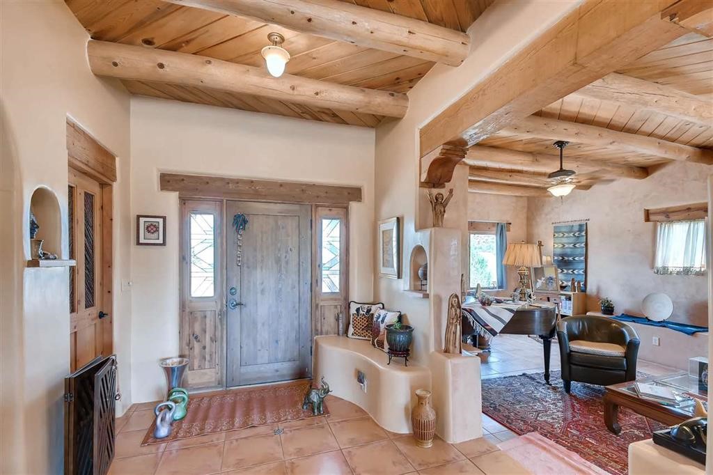 LUSH Pecos River frontage Pueblo style home with irrigated waterfront lands. Your waterfront farmland and farmhouse experience awaits! WATER,WATER,WATER,WATER 4 sources, Acequia rights (19.425 acre feet per year), community water, private well, rain catchment tanks and 400 feet of Pecos Riverfront. Rare offering is an understatement. Environmentally friendly home is constructed from RASTRA offering exceptional thermal and acoustic insulation, keeping it cool in the summer and warm in the winter. The interior boasts Venetian plaster, tile floors, vigas, classic nichos, coved ceilings, cooks kitchen with large island and stainless steel appliances, 3 bedrooms and 2 full baths, living room, dining room, covered portal entry and straight on views to the meadow with the Pecos river at the end. Located in the rural village of El Ancon (adjoining Ribera) 38 minutes from Santa Fe, 25 minutes from Las Vegas. There is no homeowners association, 2 separate legal lots of record, and endless opportunities for gardens, horses and sustainable living at 140 CRd B41F.