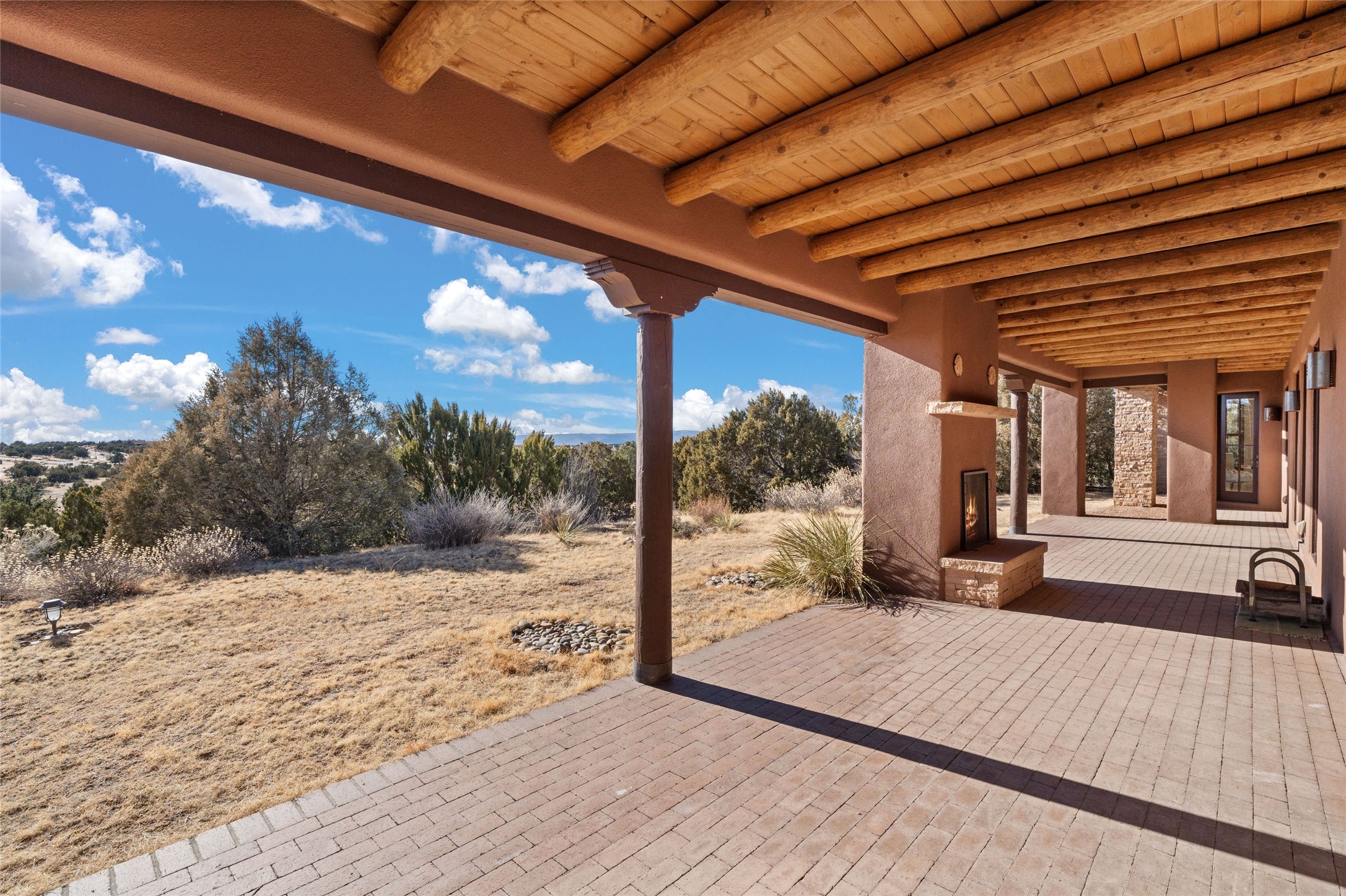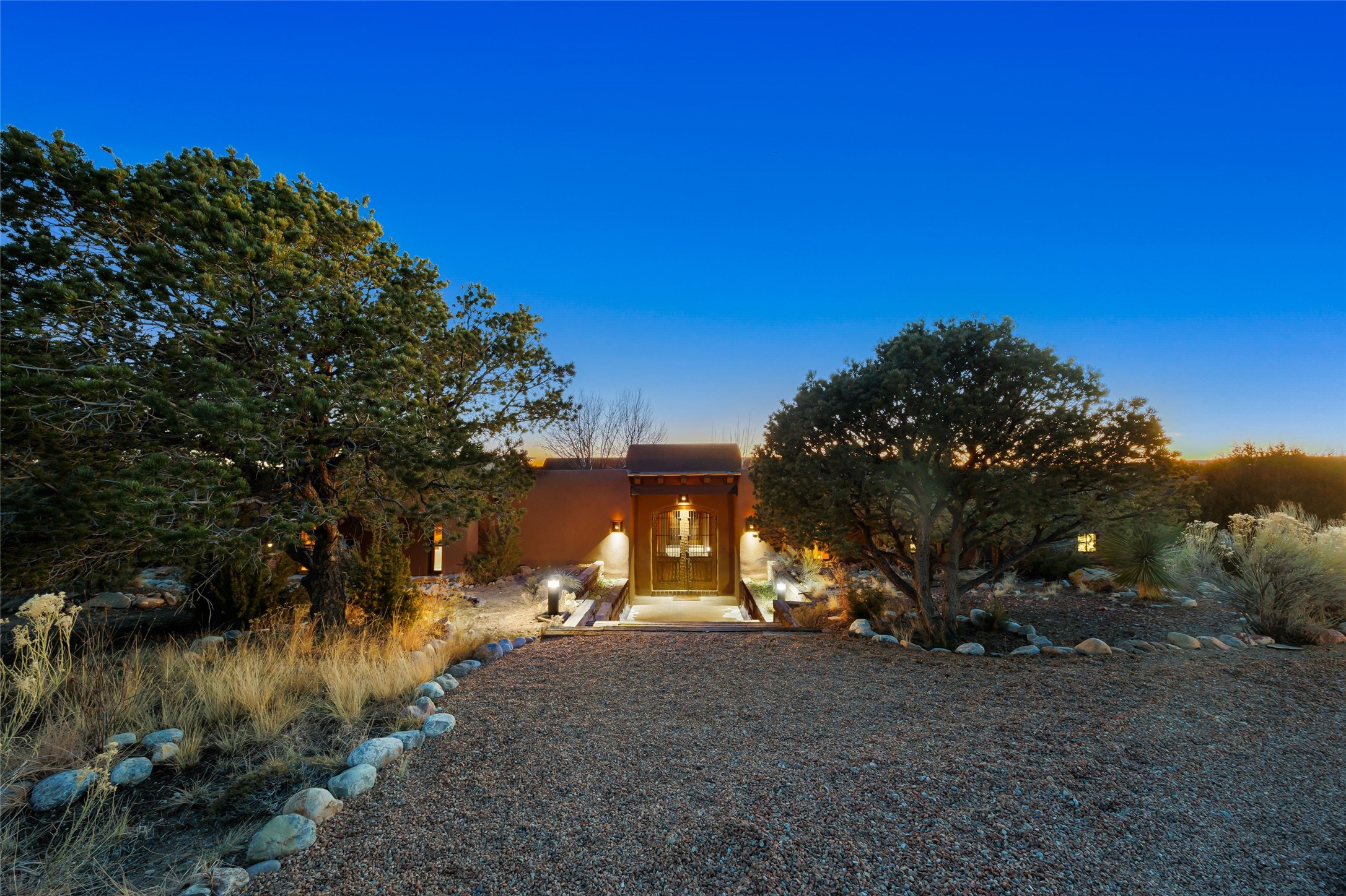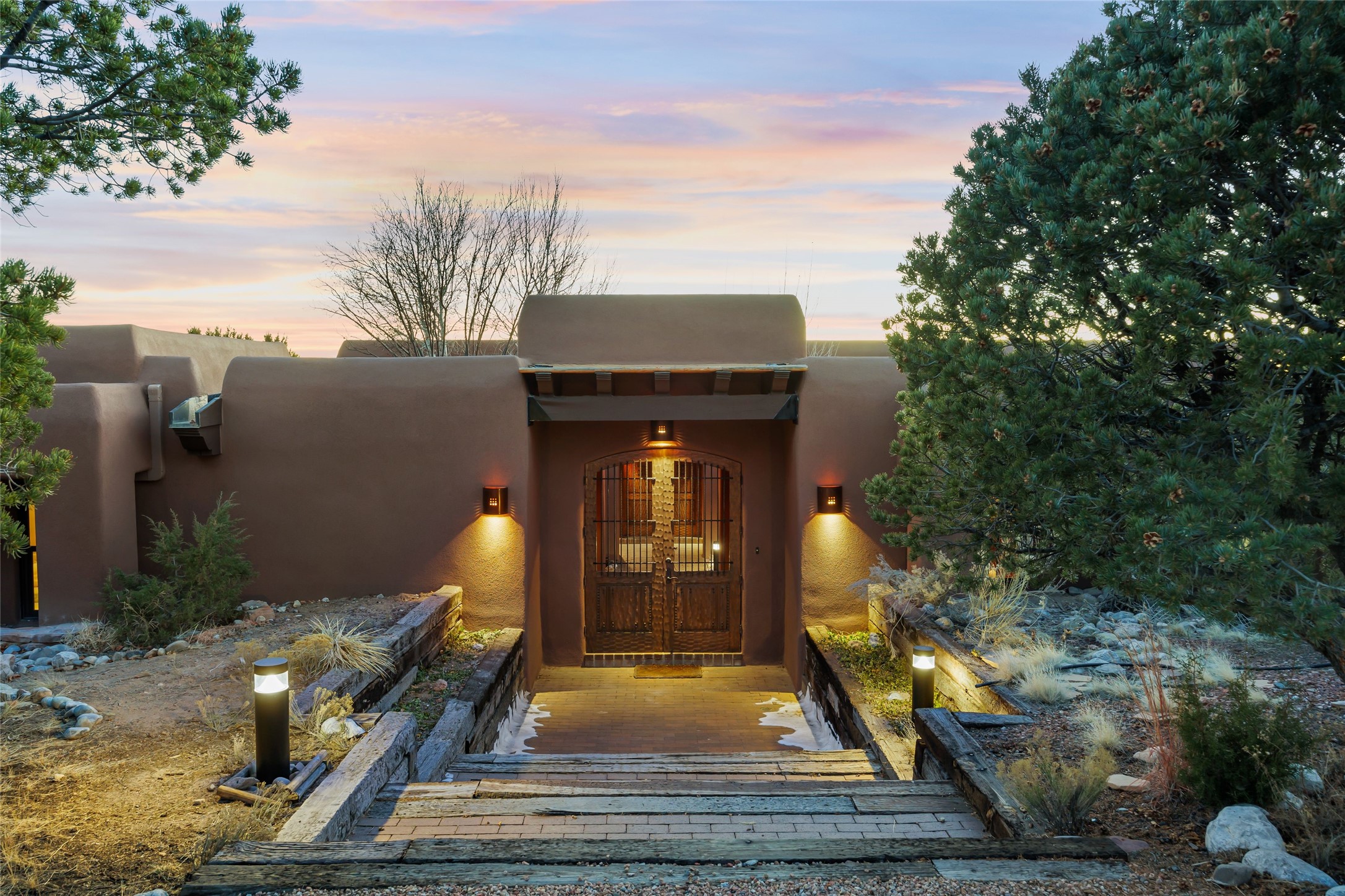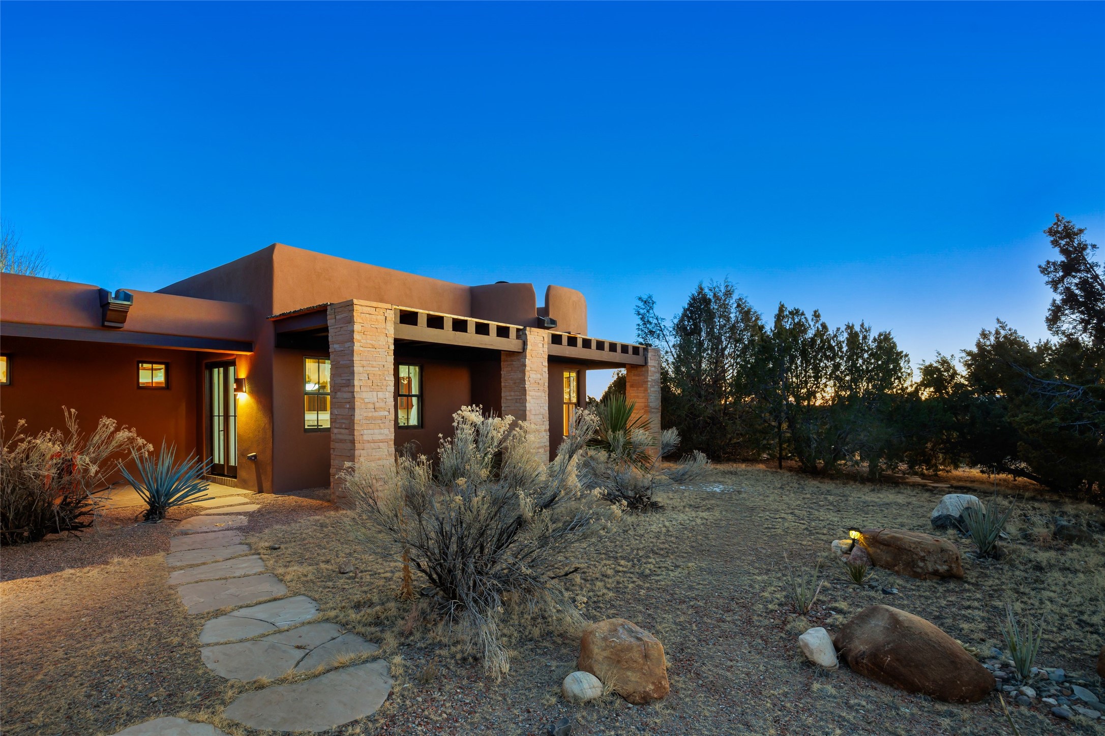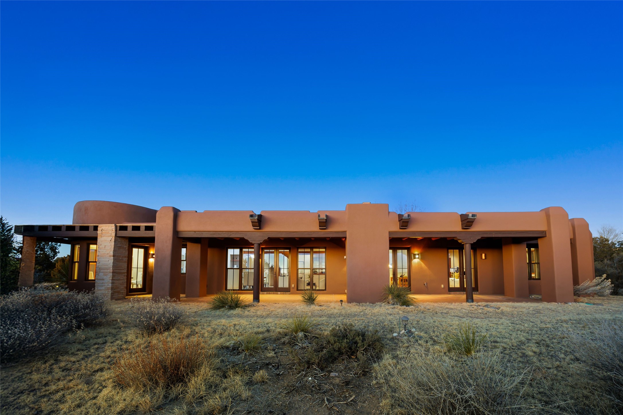 Nestled in the serene El Prado Subdivision, this 3,200 sq ft custom-built home on 6 acres offers a perfect blend of elegance, privacy, and modern convenience. Built in 2006, this meticulously maintained residence features three bedrooms, three full baths, and a spacious library, all on a single level with no interior steps.Step inside to discover the warm embrace of radiant floor heating, beautiful vigas, and diamond plaster walls. The heart of the home boasts a stunning stone-detailed two-sided fireplace, seamlessly connecting the living spaces to expansive outdoor portals, ideal for entertaining or simply enjoying the tranquility of the surroundings.The primary suite is a private oasis, complete with a walk-in shower, jetted bathtub, and a serene outdoor sitting area. A mini-split system provides efficient air conditioning and additional heating for the primary and first guest bedrooms, ensuring year-round comfort. The two guest suites offer privacy and comfort, making this home perfect for family and visitors alike.Outdoors, you'll find a cozy living space with a fireplace, perfect for cool Santa Fe evenings. An underground cistern efficiently collects rainwater from the roof, emphasizing the home's eco-friendly design. Access to this feature is conveniently located through the charming courtyard.Additional amenities include a 2-car garage with extra storage, energy-efficient Pumice-Crete construction, and a beautifully designed landscape that enhances the natural beauty of the property. Just 20 minutes from downtown Santa Fe, 34 Coppermallow offers a luxurious, peaceful retreat with all the conveniences of modern living. Schedule your private tour today and experience the unique charm of this stunning home!