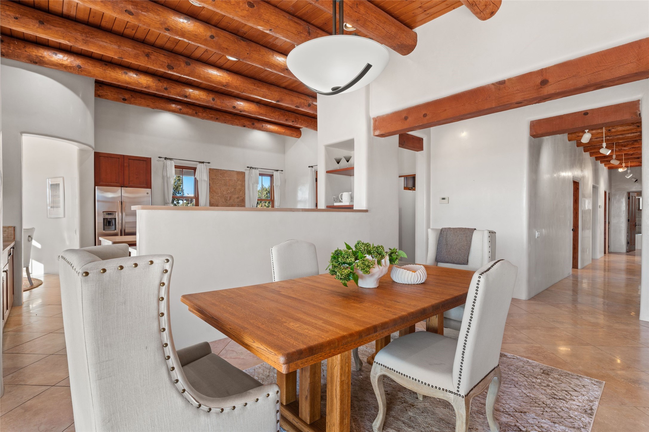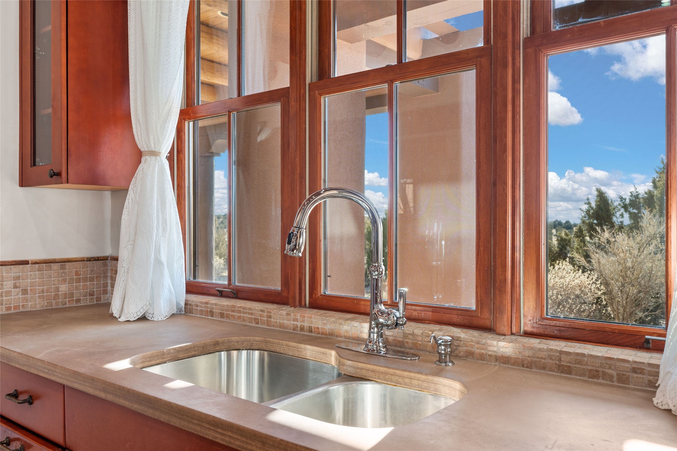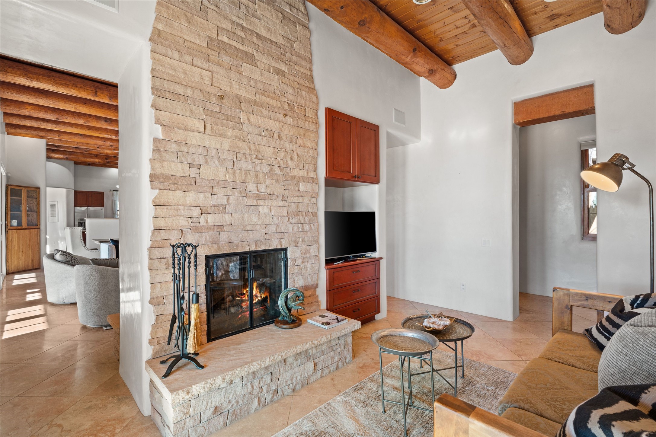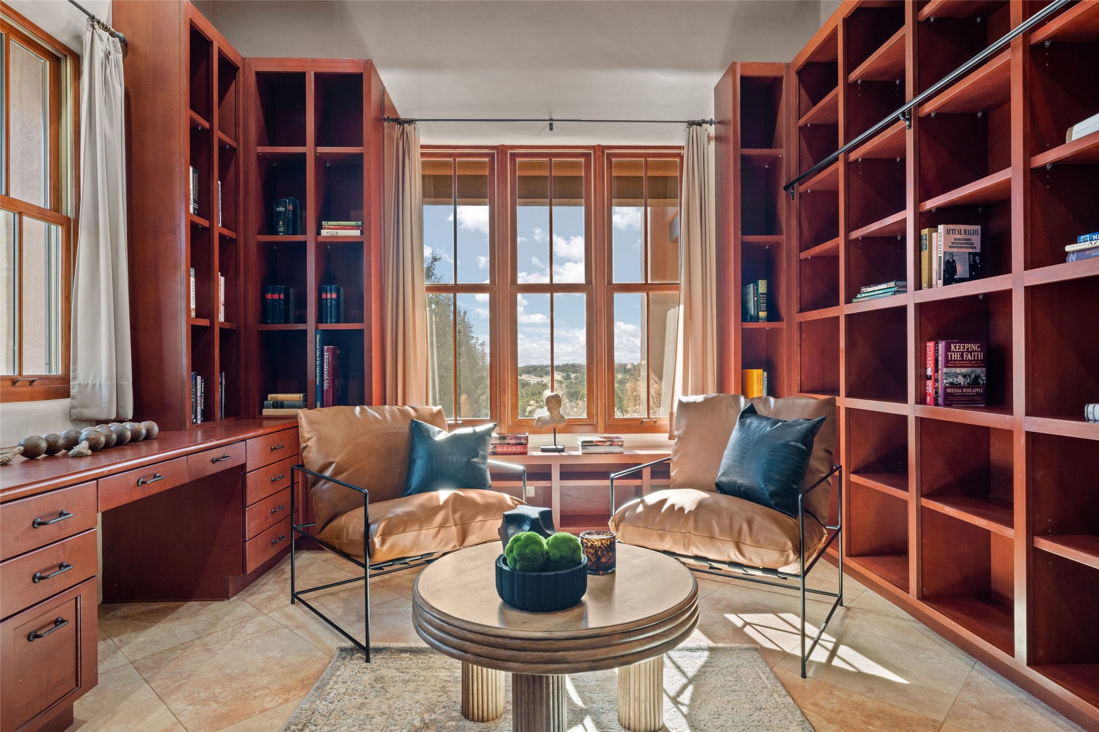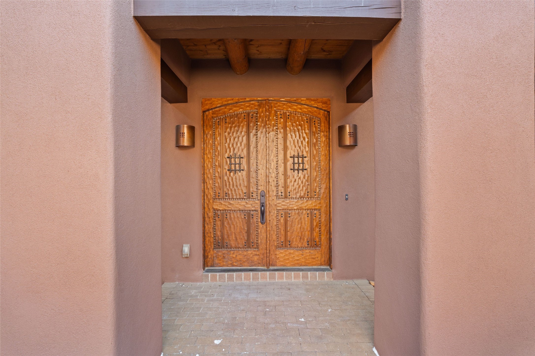 Nestled in the serene El Prado Subdivision, this 3,200 sq ft custom-built home on 6 acres offers a perfect blend of elegance, privacy, and modern convenience. Built in 2006, this meticulously maintained residence features three bedrooms, three full baths, and a spacious library, all on a single level with no interior steps.Step inside to discover the warm embrace of radiant floor heating, beautiful vigas, and diamond plaster walls. The heart of the home boasts a stunning stone-detailed two-sided fireplace, seamlessly connecting the living spaces to expansive outdoor portals, ideal for entertaining or simply enjoying the tranquility of the surroundings.The primary suite is a private oasis, complete with a walk-in shower, jetted bathtub, and a serene outdoor sitting area. A mini-split system provides efficient air conditioning and additional heating for the primary and first guest bedrooms, ensuring year-round comfort. The two guest suites offer privacy and comfort, making this home perfect for family and visitors alike.Outdoors, you'll find a cozy living space with a fireplace, perfect for cool Santa Fe evenings. An underground cistern efficiently collects rainwater from the roof, emphasizing the home's eco-friendly design. Access to this feature is conveniently located through the charming courtyard.Additional amenities include a 2-car garage with extra storage, energy-efficient Pumice-Crete construction, and a beautifully designed landscape that enhances the natural beauty of the property. Just 20 minutes from downtown Santa Fe, 34 Coppermallow offers a luxurious, peaceful retreat with all the conveniences of modern living. Schedule your private tour today and experience the unique charm of this stunning home!
