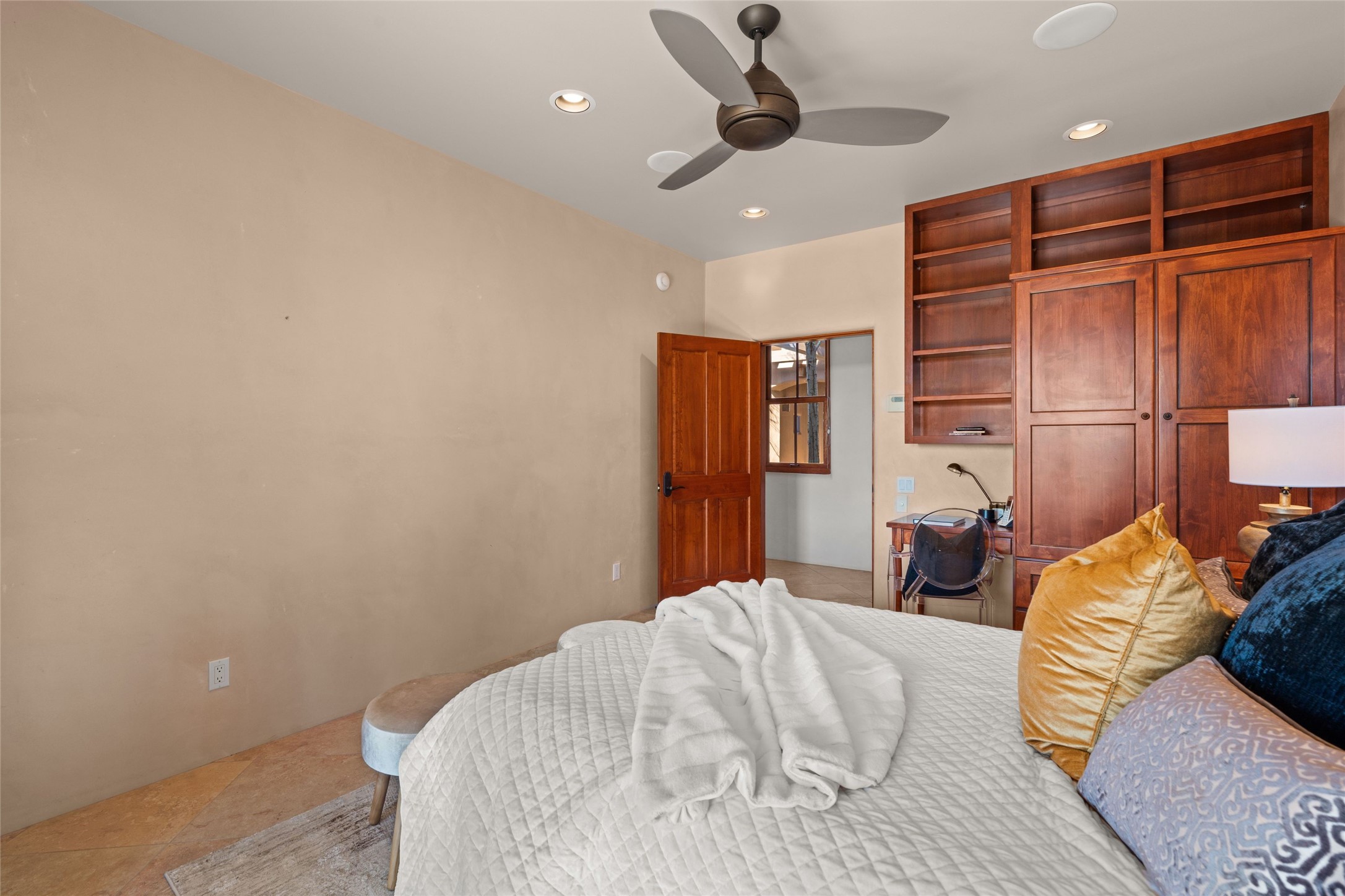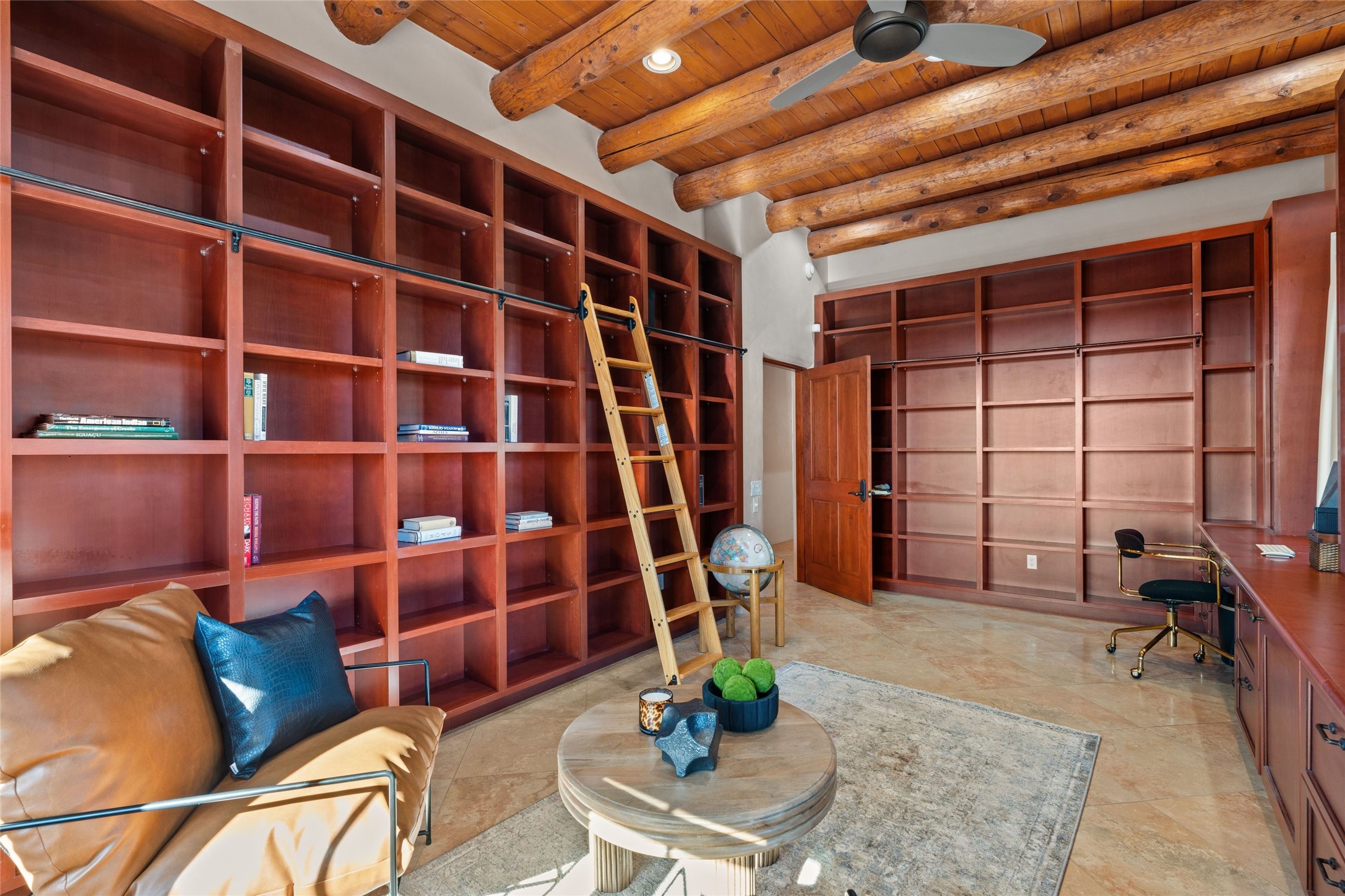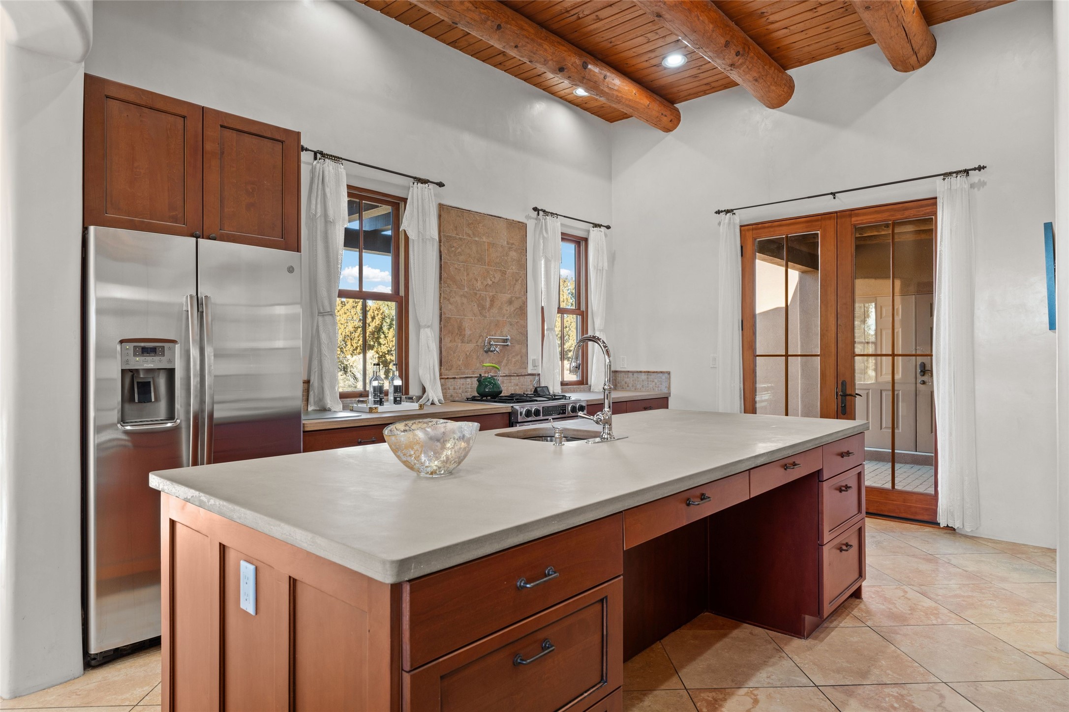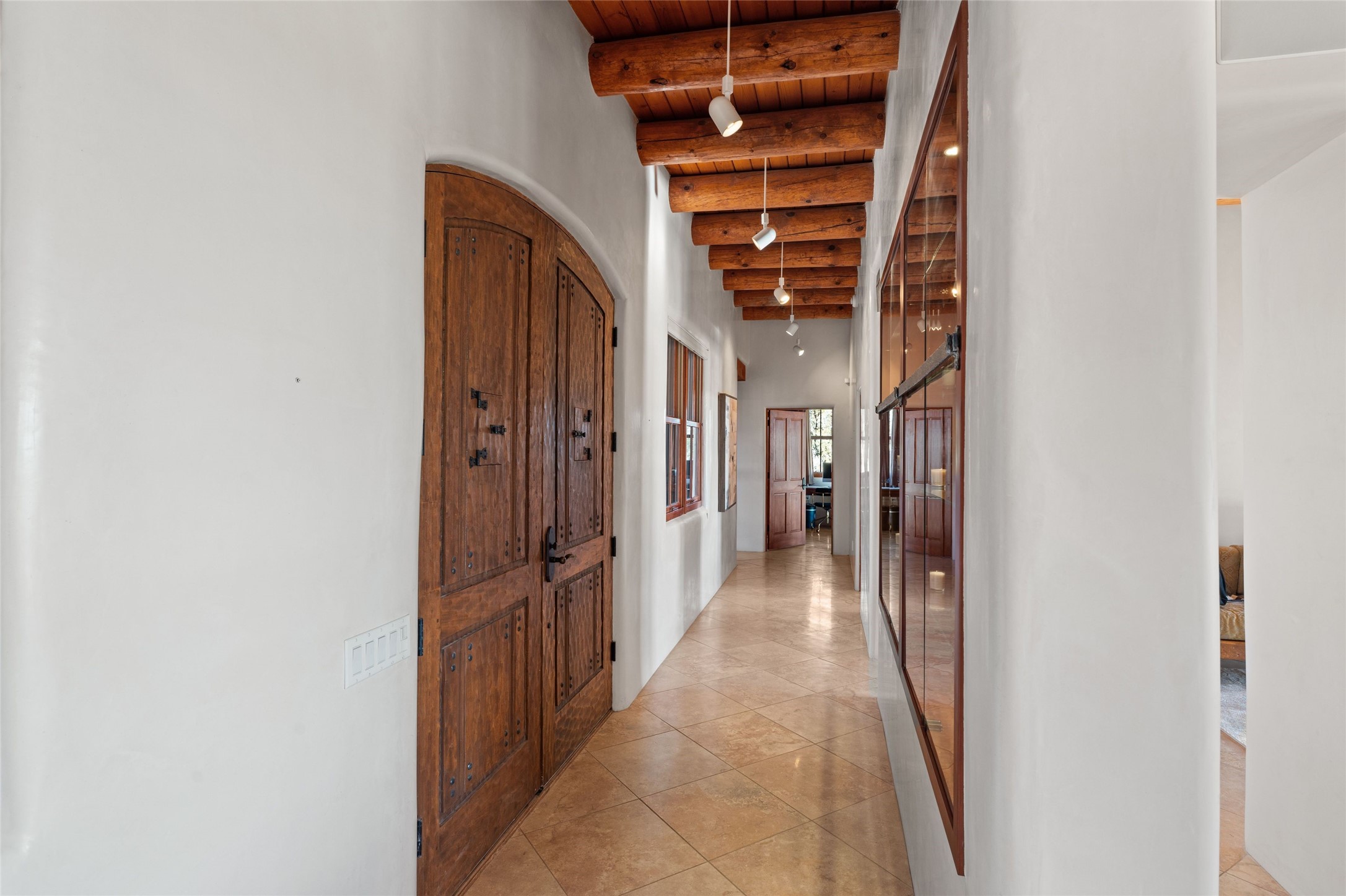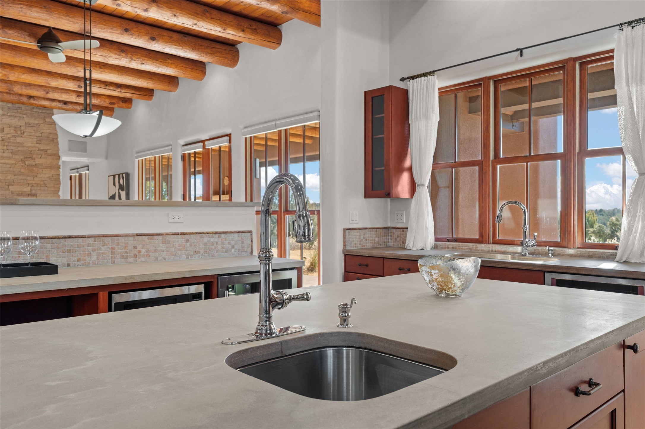 Nestled in the serene El Prado Subdivision, this 3,200 sq ft custom-built home on 6 acres offers a perfect blend of elegance, privacy, and modern convenience. Built in 2006, this meticulously maintained residence features three bedrooms, three full baths, and a spacious library, all on a single level with no interior steps.Step inside to discover the warm embrace of radiant floor heating, beautiful vigas, and diamond plaster walls. The heart of the home boasts a stunning stone-detailed two-sided fireplace, seamlessly connecting the living spaces to expansive outdoor portals, ideal for entertaining or simply enjoying the tranquility of the surroundings.The primary suite is a private oasis, complete with a walk-in shower, jetted bathtub, and a serene outdoor sitting area. A mini-split system provides efficient air conditioning and additional heating for the primary and first guest bedrooms, ensuring year-round comfort. The two guest suites offer privacy and comfort, making this home perfect for family and visitors alike.Outdoors, you'll find a cozy living space with a fireplace, perfect for cool Santa Fe evenings. An underground cistern efficiently collects rainwater from the roof, emphasizing the home's eco-friendly design. Access to this feature is conveniently located through the charming courtyard.Additional amenities include a 2-car garage with extra storage, energy-efficient Pumice-Crete construction, and a beautifully designed landscape that enhances the natural beauty of the property. Just 20 minutes from downtown Santa Fe, 34 Coppermallow offers a luxurious, peaceful retreat with all the conveniences of modern living. Schedule your private tour today and experience the unique charm of this stunning home!
