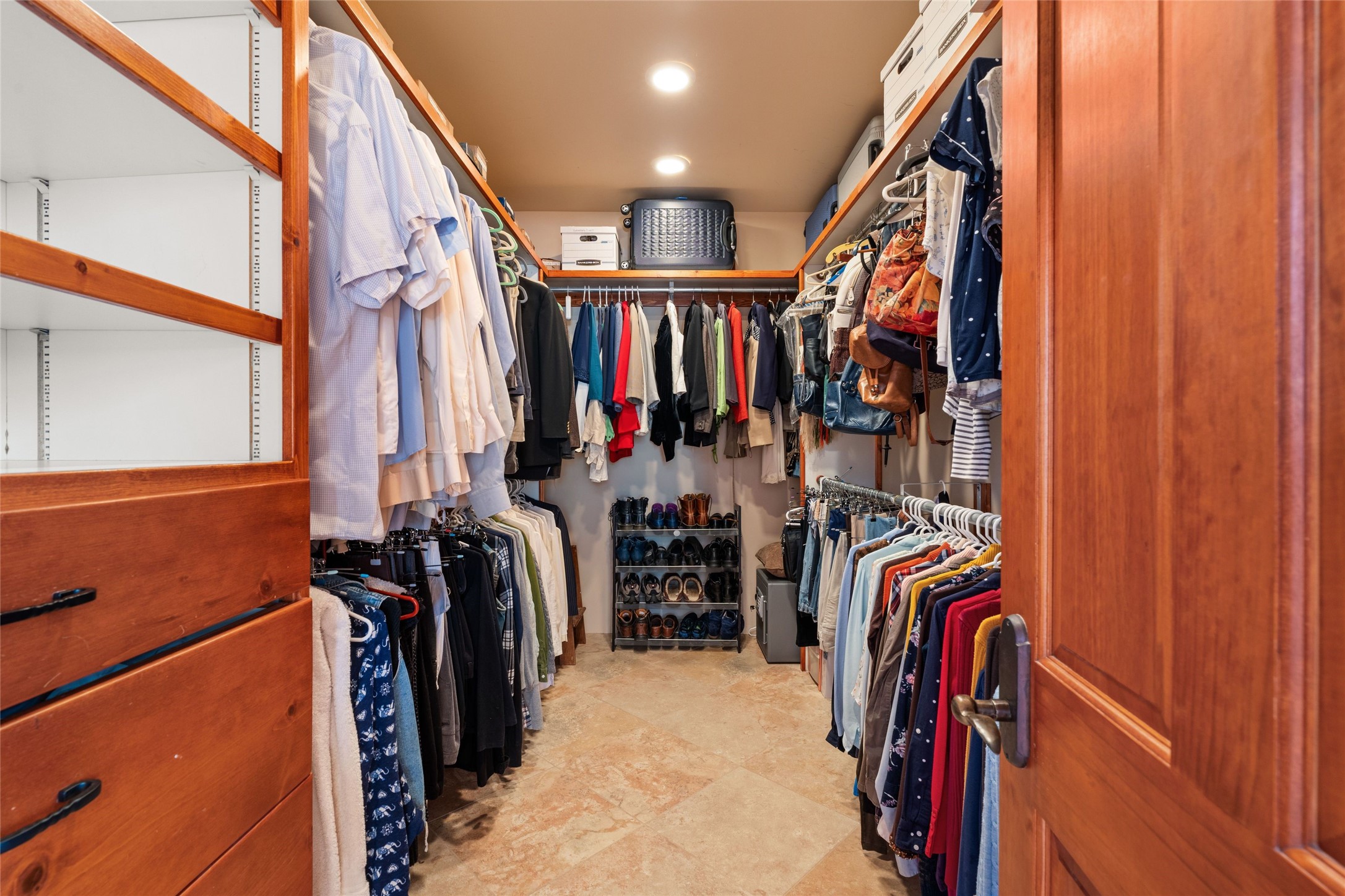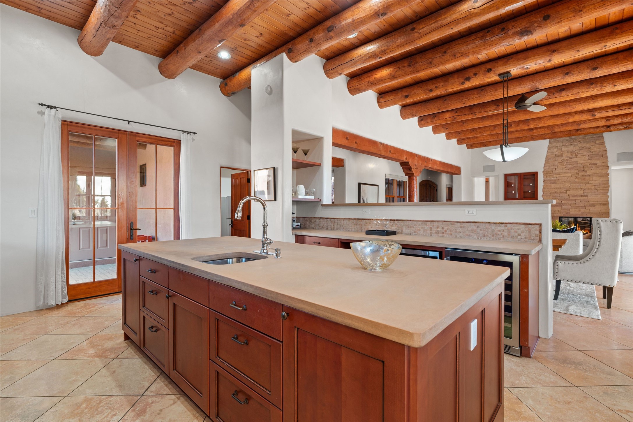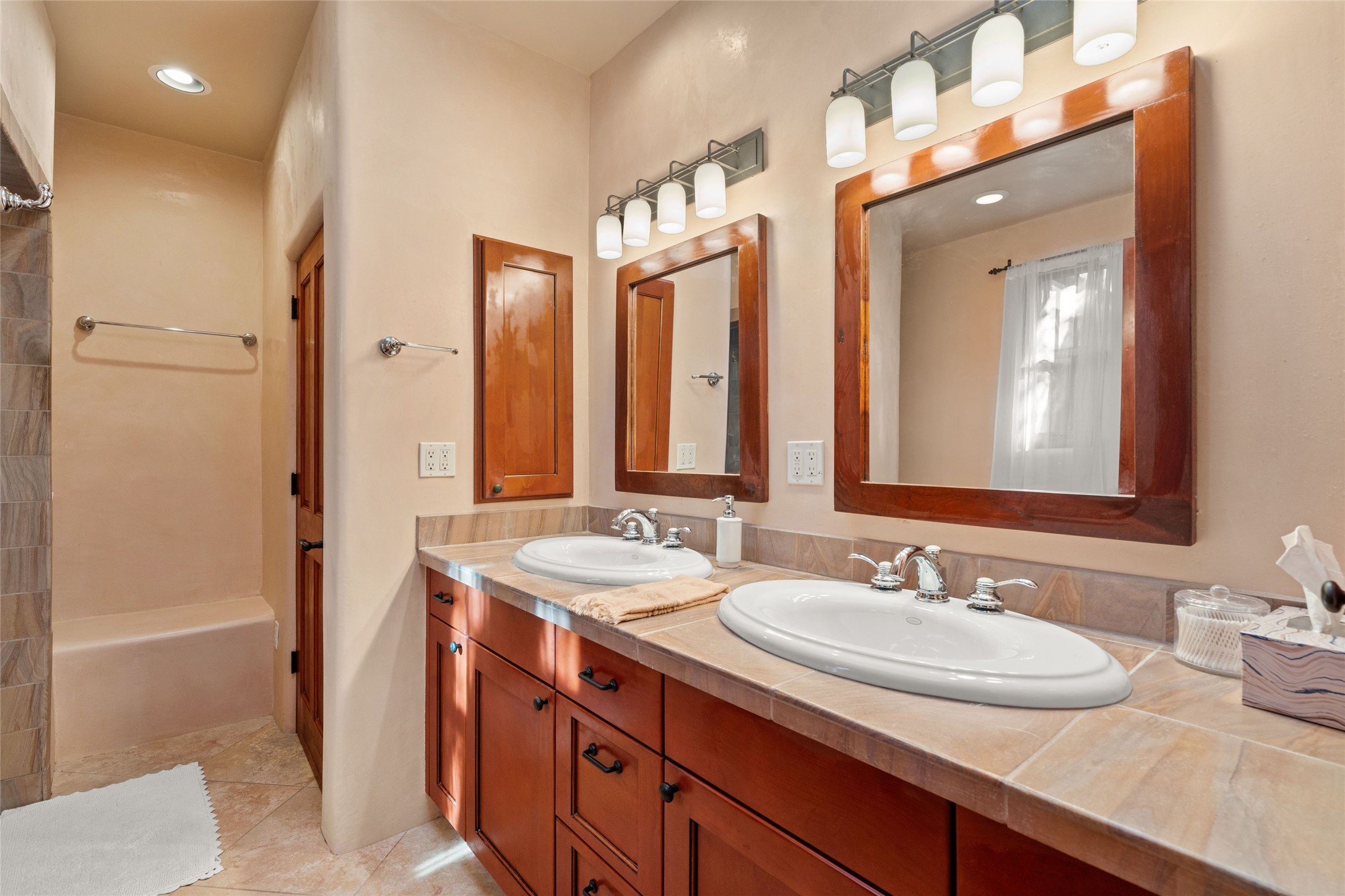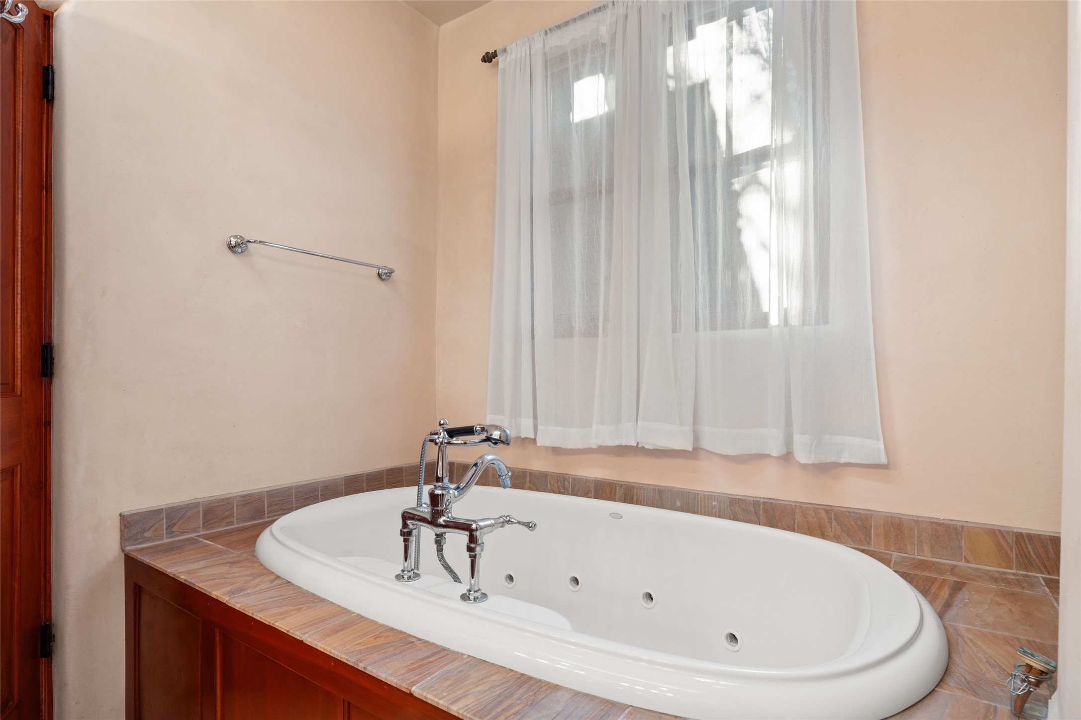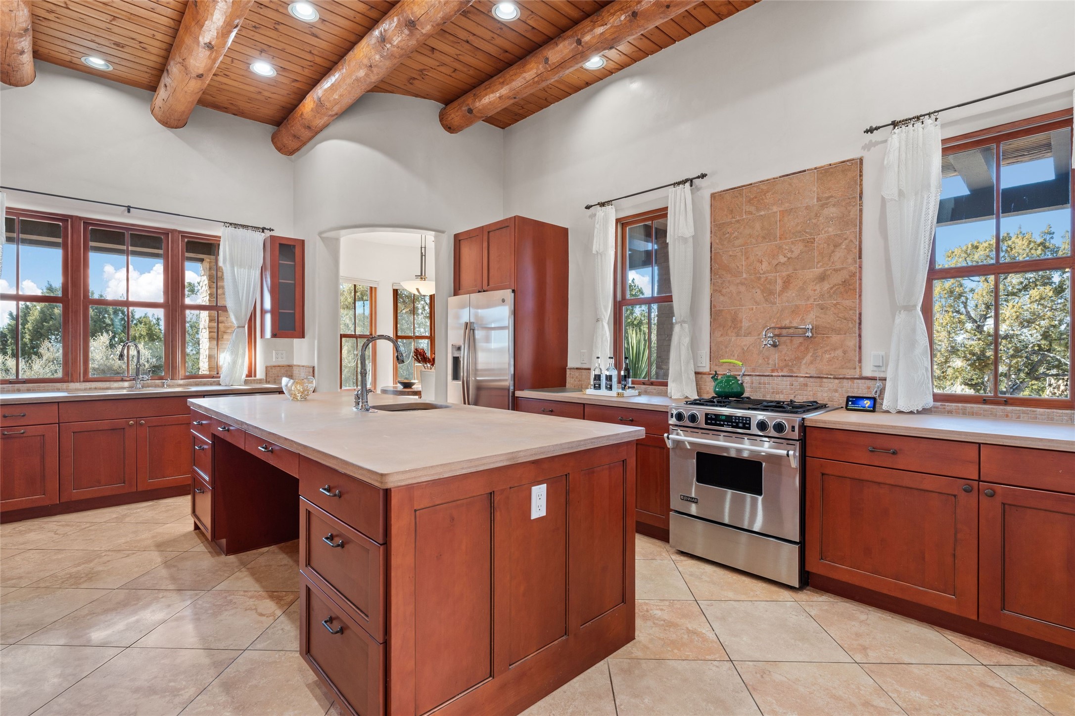 Nestled in the serene El Prado Subdivision, this 3,200 sq ft custom-built home on 6 acres offers a perfect blend of elegance, privacy, and modern convenience. Built in 2006, this meticulously maintained residence features three bedrooms, three full baths, and a spacious library, all on a single level with no interior steps.Step inside to discover the warm embrace of radiant floor heating, beautiful vigas, and diamond plaster walls. The heart of the home boasts a stunning stone-detailed two-sided fireplace, seamlessly connecting the living spaces to expansive outdoor portals, ideal for entertaining or simply enjoying the tranquility of the surroundings.The primary suite is a private oasis, complete with a walk-in shower, jetted bathtub, and a serene outdoor sitting area. A mini-split system provides efficient air conditioning and additional heating for the primary and first guest bedrooms, ensuring year-round comfort. The two guest suites offer privacy and comfort, making this home perfect for family and visitors alike.Outdoors, you'll find a cozy living space with a fireplace, perfect for cool Santa Fe evenings. An underground cistern efficiently collects rainwater from the roof, emphasizing the home's eco-friendly design. Access to this feature is conveniently located through the charming courtyard.Additional amenities include a 2-car garage with extra storage, energy-efficient Pumice-Crete construction, and a beautifully designed landscape that enhances the natural beauty of the property. Just 20 minutes from downtown Santa Fe, 34 Coppermallow offers a luxurious, peaceful retreat with all the conveniences of modern living. Schedule your private tour today and experience the unique charm of this stunning home!