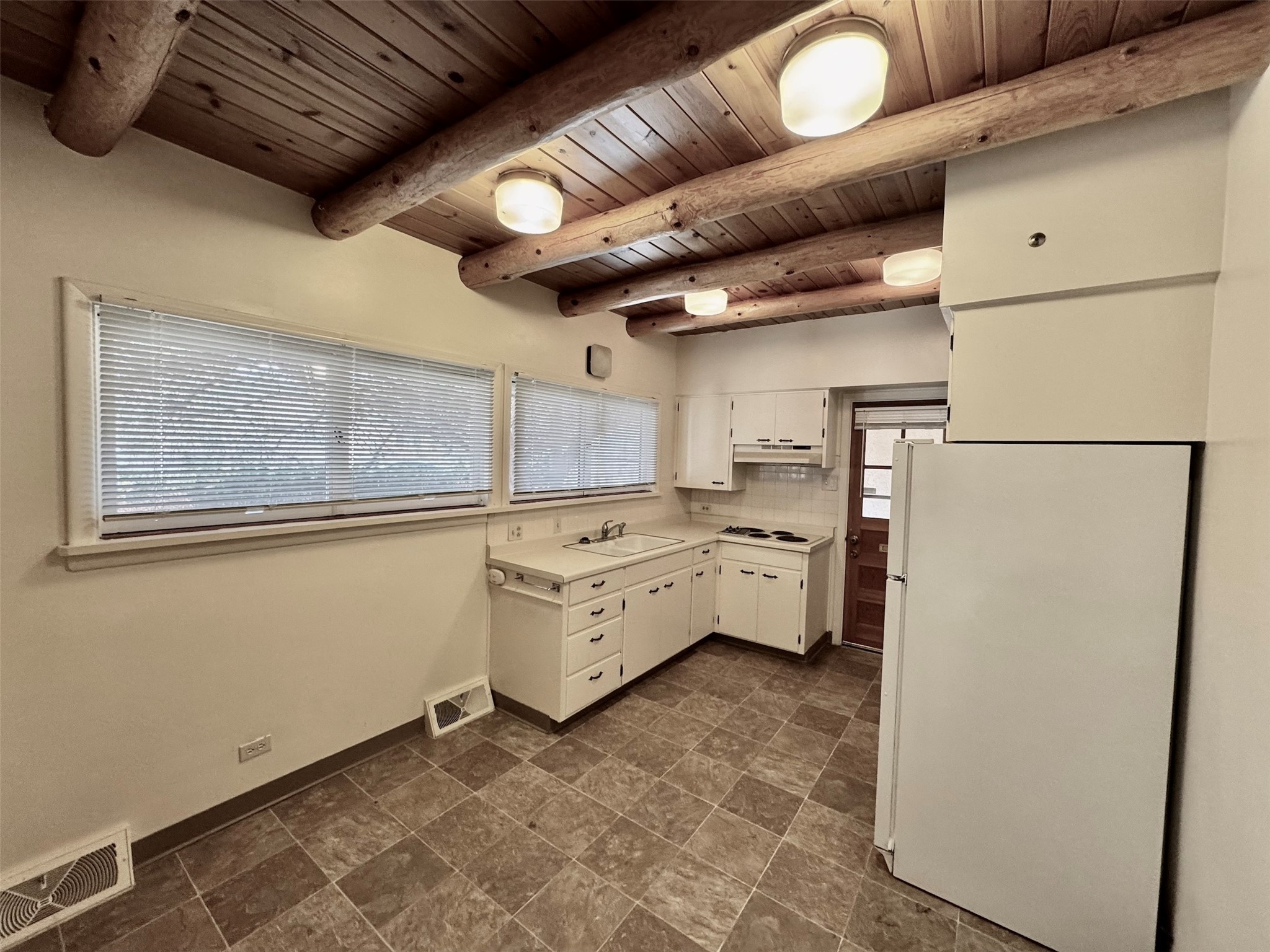 "Last of the Best" Nestled along the border of the Old Taos Highway, this home offers a rare chance to transform it into a stunning in-town retreat. The mid-century modern fireplace serves as the centerpiece of the main living area, radiating warmth and character throughout the space. Expansive sliding doors open to outdoor patios, seamlessly blending indoor and outdoor living while enhancing the home's spacious feel. Plaza Del Monte gated subdivision is a rare lifestyle opportunity for someone with an eye towards the future and the ability to undertake a fixer-upper.