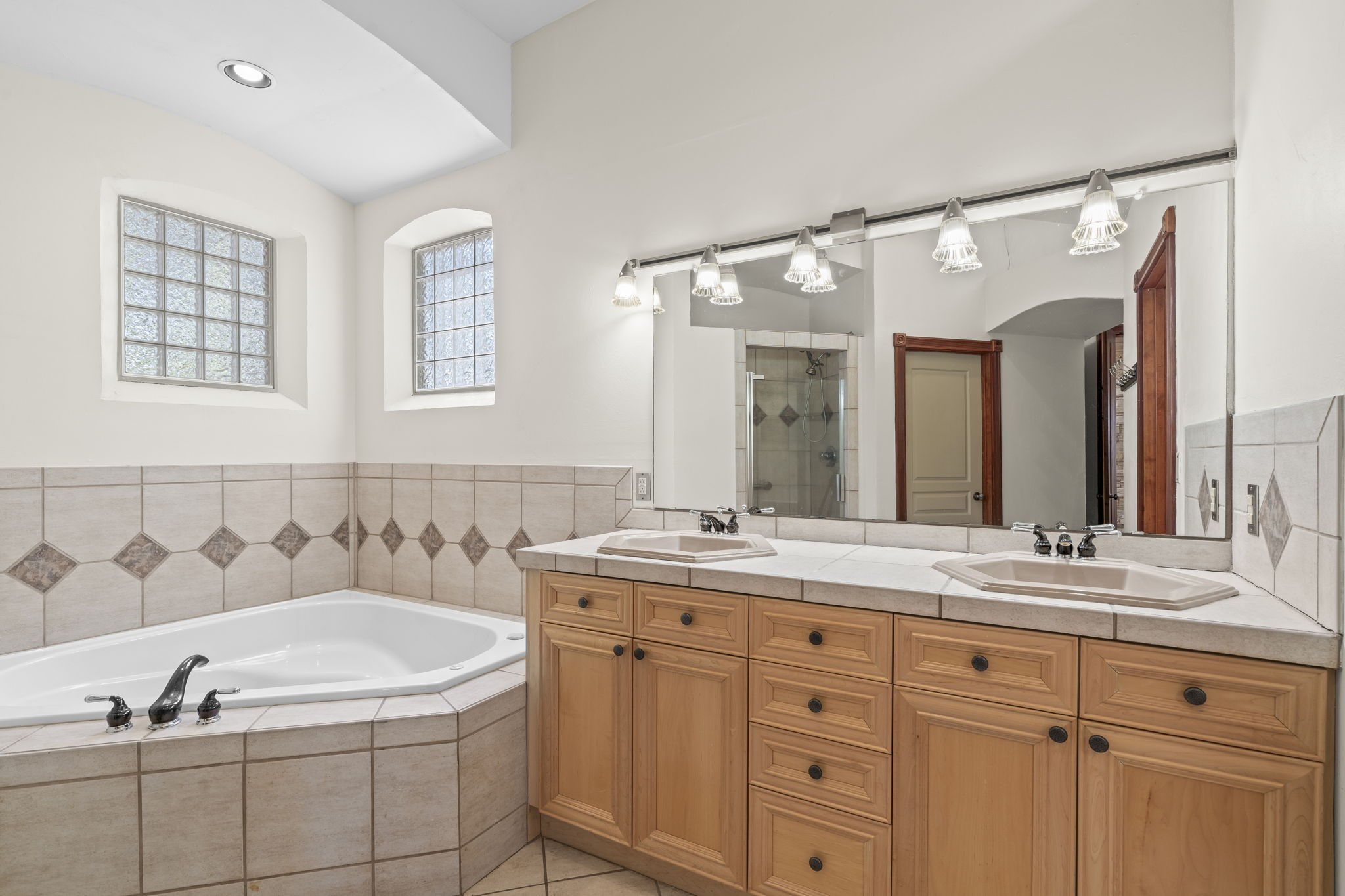 Welcome to this beautifully updated, single-story home, where comfort and style meet. With a freshly painted interior and a one-year-old roof with a ten-year warranty, this home offers peace of mind and modern elegance. The inviting floor plan features 3 spacious bedrooms, including a separate, luxurious primary suite that exudes warmth and charm. The primary bedroom boasts a stunning gas fireplace framed by a decorative rock wall, creating a cozy ambiance. Custom French doors lead to the tranquil retreat, while the expansive bath offers double sinks, a separate shower, a large triangular tub, and an organized, spacious closet.The heart of the home is its thoughtfully designed kitchen, equipped with updated features, instant hot water, ample cabinetry, and a generous pantry. The adjoining breakfast area showcases a beautiful built-in sideboard and China cupboard, with a door that opens to a large flagstone patio, perfect for outdoor entertaining in your private, landscaped, enclosed backyard with its new drip irrigation system for easy maintenance.The Living Room features a charming wooden mantle over a gas fireplace, creating a welcoming atmosphere that flows effortlessly into the dining room. Inset lighting throughout highlights the home's spacious and bright rooms. Practicality is not forgotten, with a well-appointed laundry room featuring a sink and extra shelf space. The attached two-car garage adds even more ease of living. Located on a desirable corner lot, this home offers style and functionality, making it a perfect haven for relaxation and entertainment. With an inviting layout, ample storage, and quality finishes, it's a must-see!