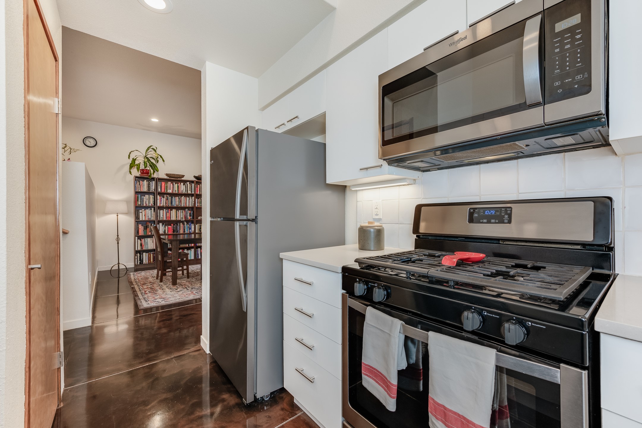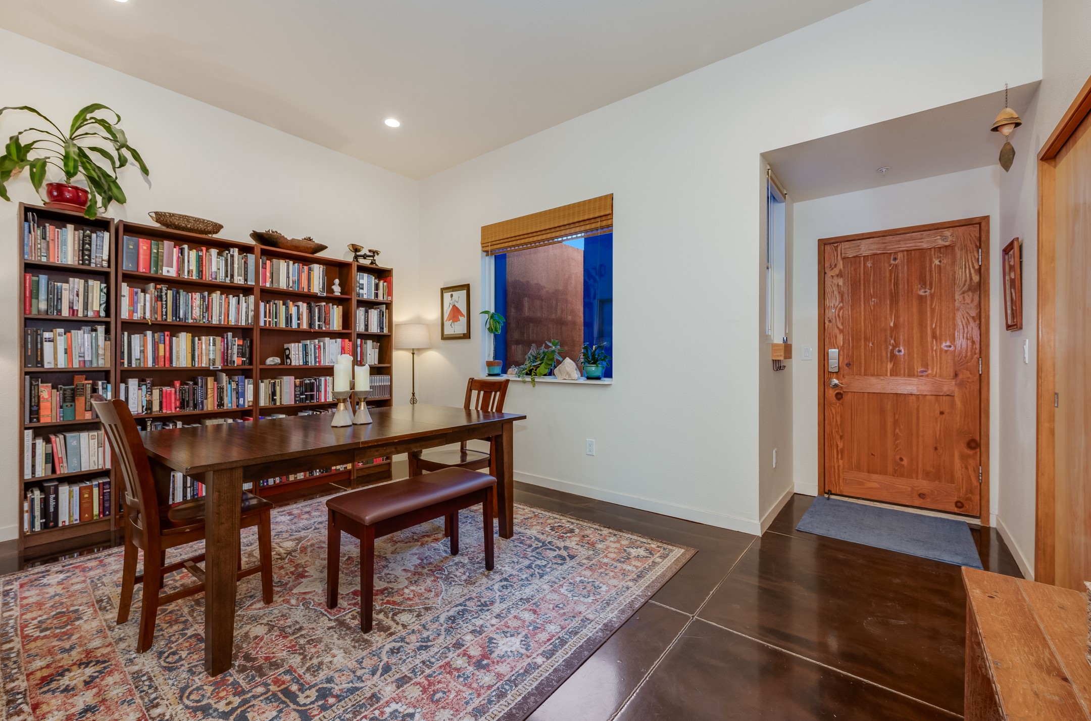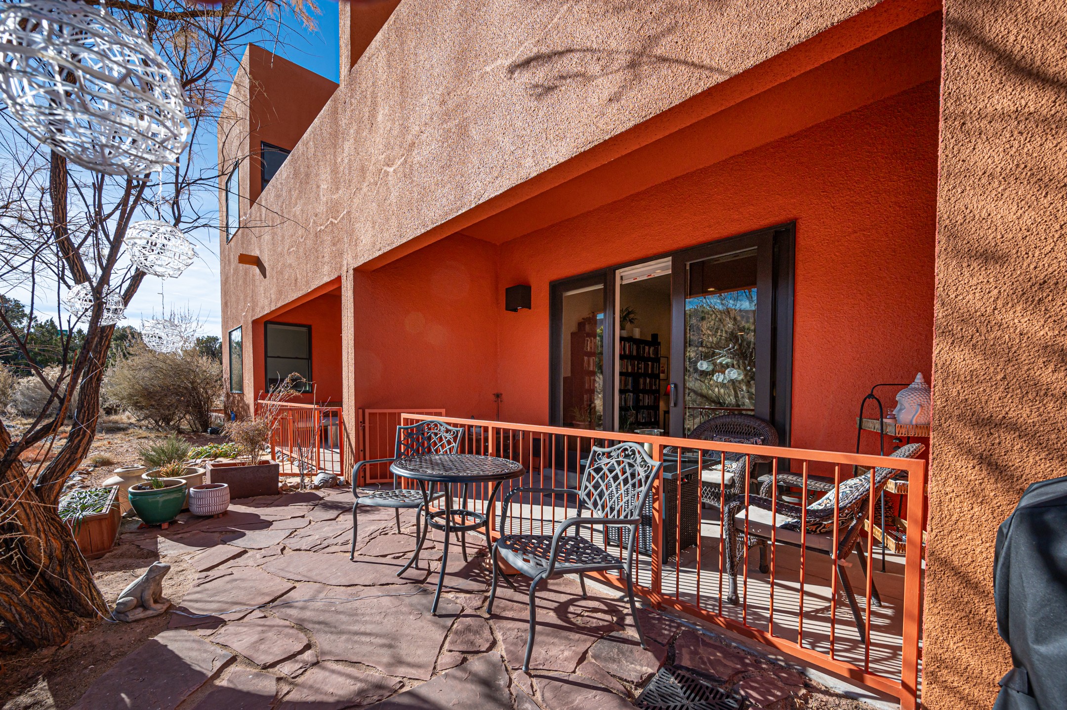 Seller offering a $5000 credit at closing with acceptable offer! Nestled in a world-famous Mexican architecture community, this beautifully designed ground-floor condo offers the perfect blend of Santa Fe charm and modern convenience. Polished concrete floors, high ceilings, and an abundance of natural light create a warm and inviting space, especially in the morning when the sun floods the living room and birds gather in the trees just outside. The move-in ready home features an oversized 1-car garage and a +/- 1,039 square foot open concept floor plan with central air conditioning & heat to keep you comfortable year round, dedicated washer and dryer, and sleek stainless steel appliances to inspire your inner chef. Designed for easy maintenance, this quiet home is located in a safe, welcoming neighborhood known for its strong sense of community. Dog lovers will appreciate the pet-friendly atmosphere, while outdoor enthusiasts can enjoy direct access to scenic hiking trails right out the front door or take a leisurely stroll or bike ride along the path leading downtown. Zocalo features top-tier amenities, including a clubhouse, pool, hot tub, and two workout rooms, while the extra-space garage provides ample storage. With its private back area and flagstone patio, this condo is perfect for relaxing outdoors. Conveniently located near the Santa Fe Plaza, shopping centers, Los Alamos, and Santa Fe Airport, this home offers both tranquility and accessibility. Whether you're looking for a full-time residence or a lock-and-leave getaway, this is Santa Fe living at its finest. *Please ask for FAQs & amenities list. Details provided by Seller and subject to Buyer verification.