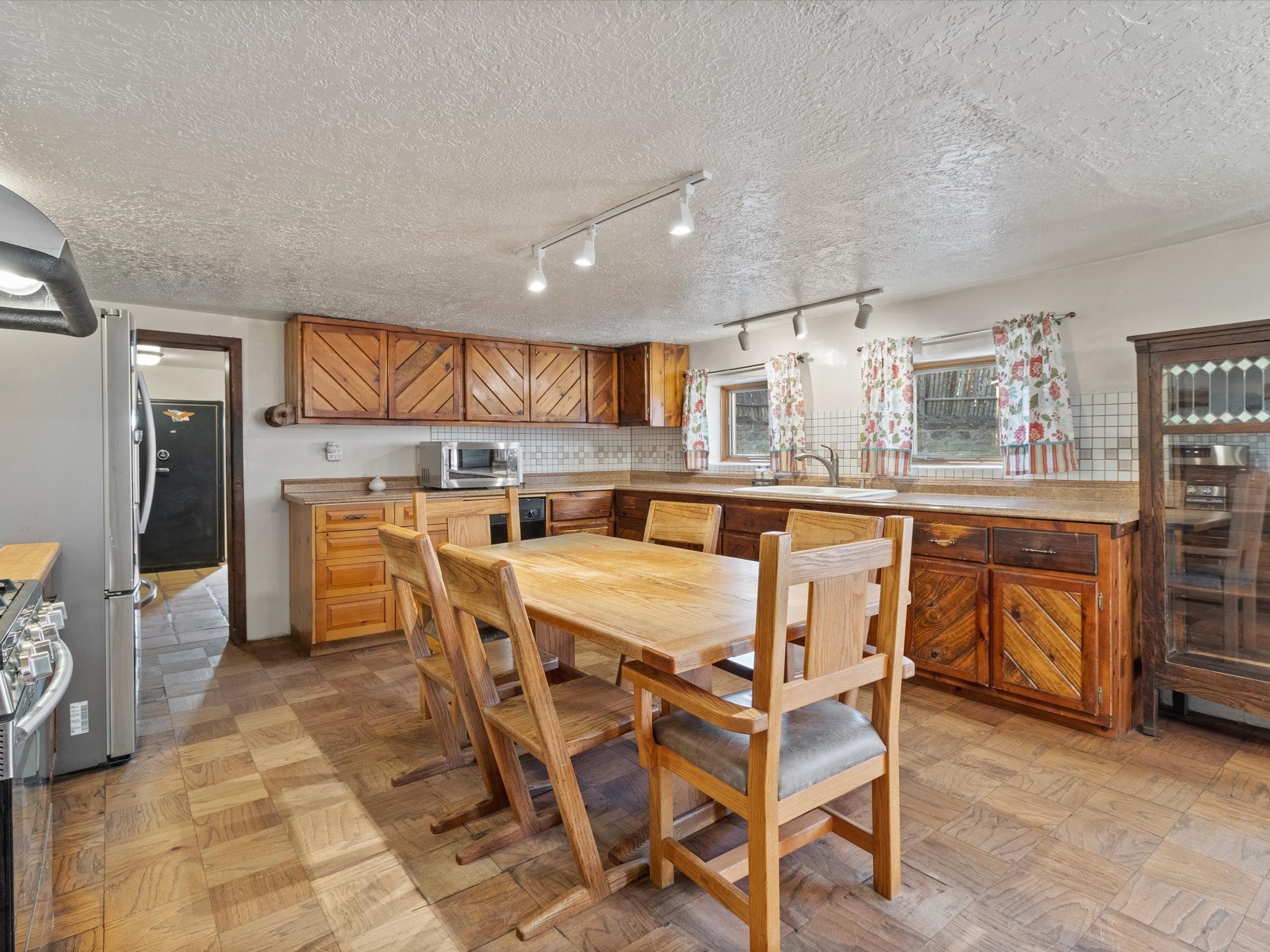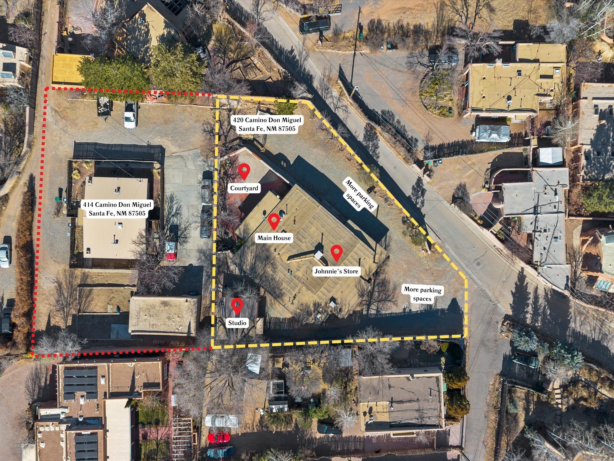 Discover a rare gem in Santa Fe's coveted Historic Eastside just a short walk to the world famous Canyon Road - the Iconic Johnnie's Cash Store, Home and Studio at 420 Camino Don Miguel. This extraordinary original Family owned property offers a unique blend of commercial and residential possibilities, featuring a grandfathered license for a grocery store and charming living spaces that capture the spirit of old Santa Fe. The studio/showroom have an office and bathroom, perfect for creative pursuits or business ventures. Attached is a warm and inviting family home designed for comfort and entertainment. The country-style kitchen and dining area welcome family gatherings, while the expansive living room, adorned with a fireplace, creates a cozy retreat during the cooler months. The home features three spacious bedrooms, an additional office, and three baths, ensuring ample space for family or guests. Step outside to a tranquil walled patio complete with a portal and outdoor fireplace -- a delightful setting for al fresco dining and year-round entertaining. The mature landscape flourishes with an abundance of fruit trees, adding beauty and a touch of nature to this exceptional property. Whether you're envisioning a charming neighborhood business, a private sanctuary, or both, this property offers unparalleled versatility and historic character. Come see this iconic Santa Fe treasure. Please see the attached info sheet for more info.