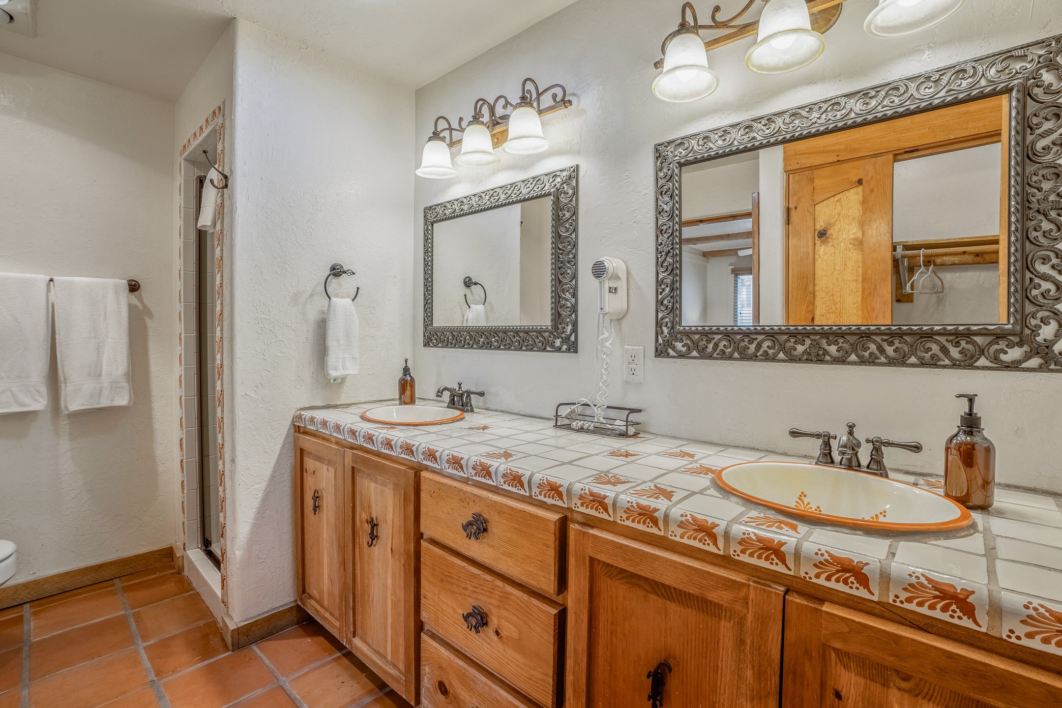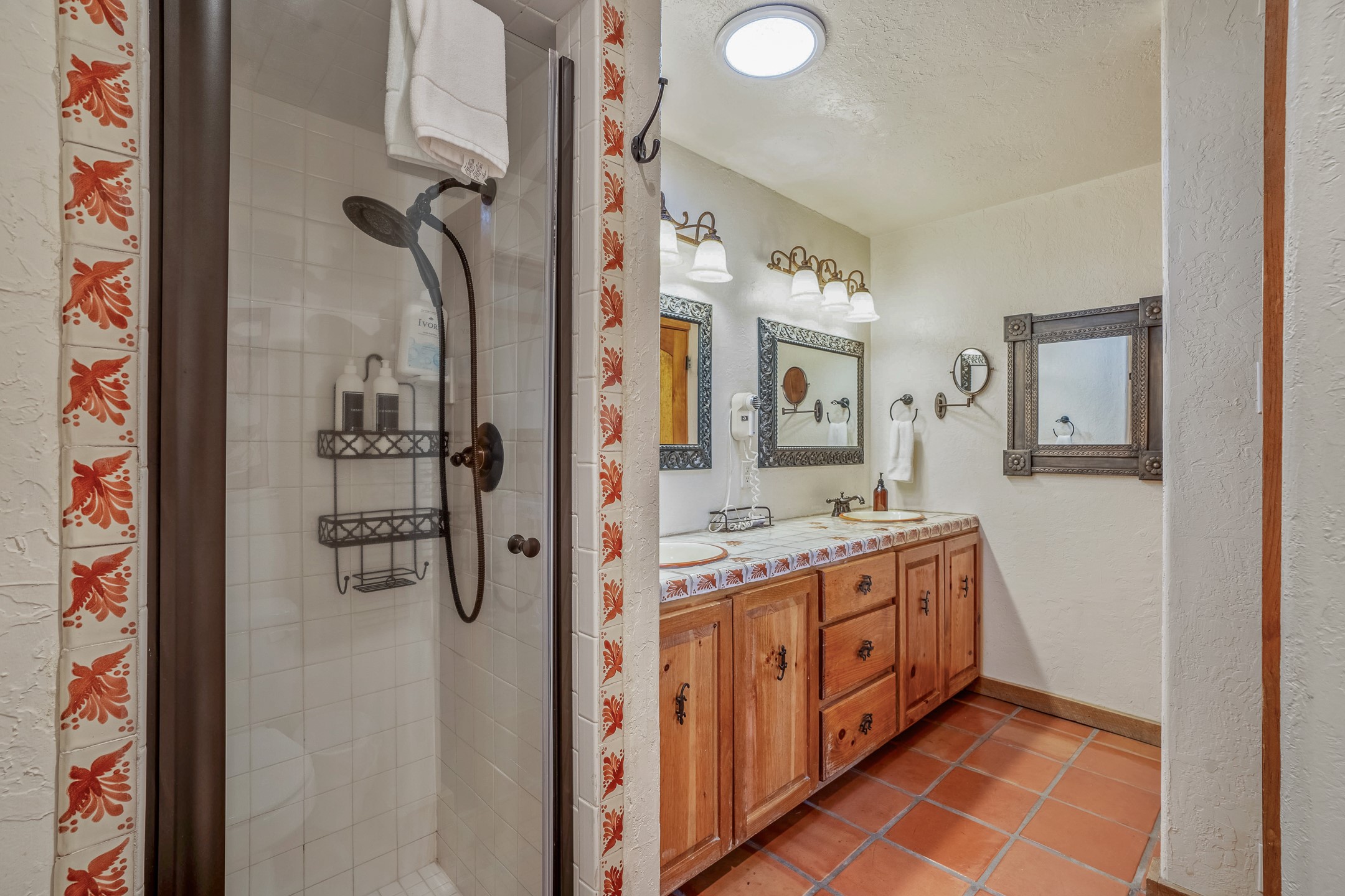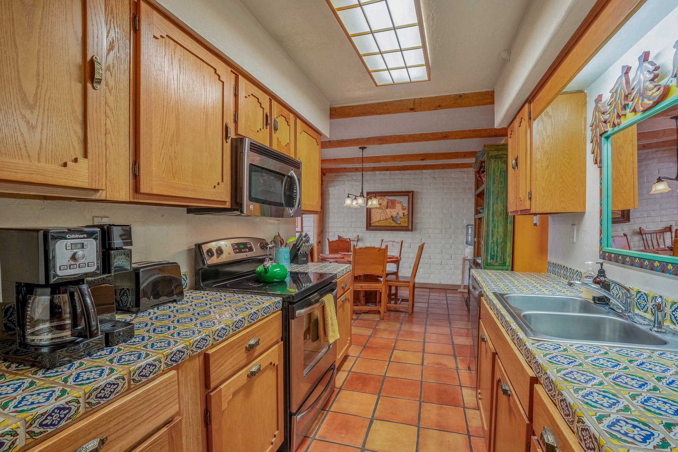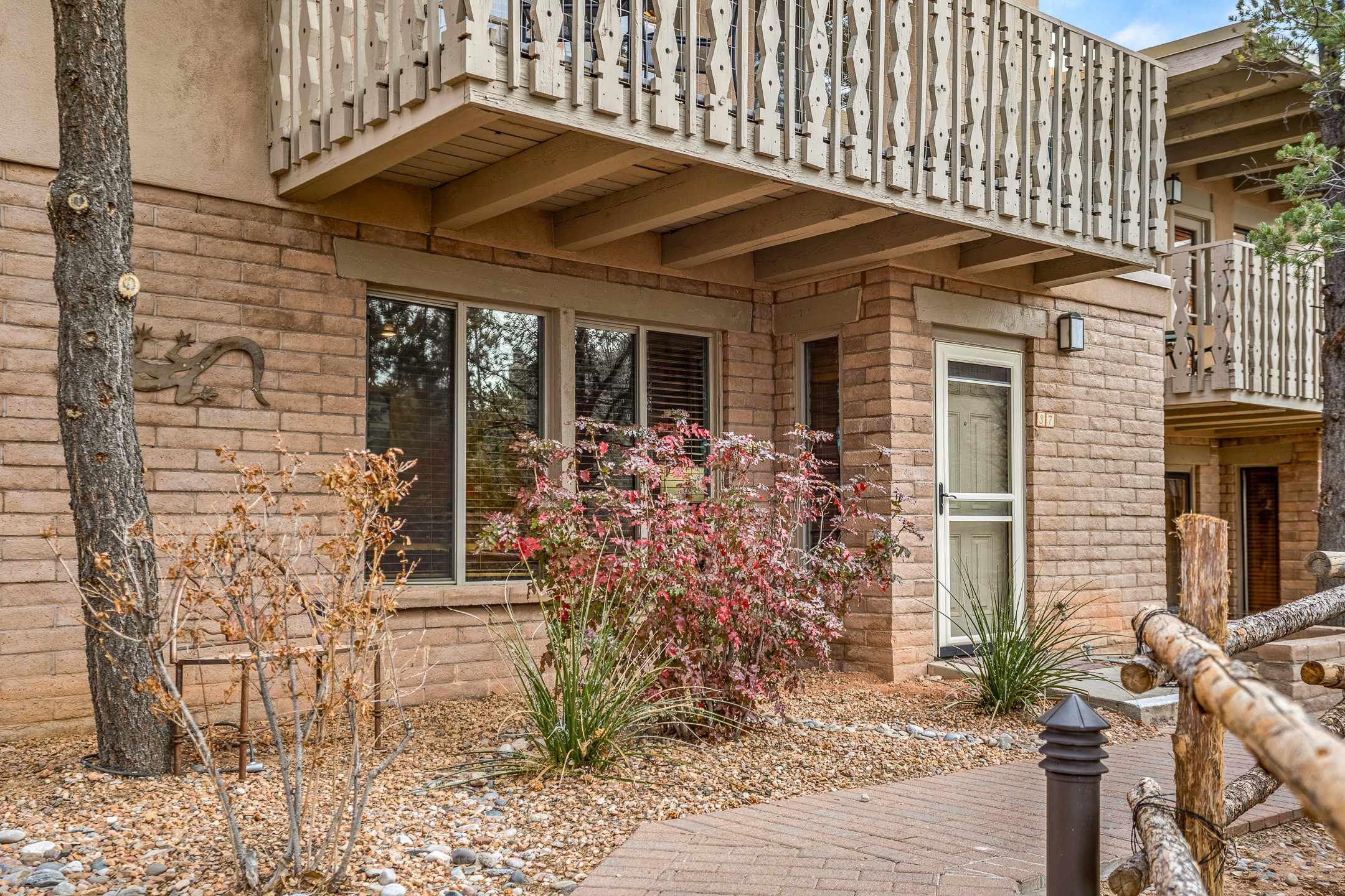 This downtown Santa Fe style 3 bedroom, 3 bathroom, 2-story condo is a rare offering at the Fort Marcy Compound, located just 6 blocks from the famous downtown Santa Fe plaza! Enjoy the indoor swimming pool and hot tub any time of year, and the beautiful, forested setting with deer and other wildlife visitors. This home features central refrigerated air-conditioning and forced-air heat, all new in 2025. The roof is new as of 2024. Walk to the famous Santa Fe Plaza and downtown to a range of events, from Indian Market, Spanish Market, Fiestas, and restaurants, cafes, shops and museums. Immerse yourself in the Santa Fe art scene, then return to your cozy condo to relax in front of the wood-burning kiva fireplace. Fort Marcy Park and Cross of the Martyrs is just across the road, affording great views of Santa Fe and the Sangre de Cristo Mountains. Also close to Santa Fe highlights - skiing, hiking, day trips to Abiquiu, Ghost Ranch and beyond. Just an hour from Albuquerque. ALL FURNISHINGS convey with sale at zero dollars! Including artwork, kitchen supplies and equipment, and accessories, making this a truly 100% turn-key property! The HOA ALLOWS SHORT-TERM RENTALS, and offers a vacation rental program with on-site professional management, including a staff of housekeepers, maintenance personnel, reception desk, concierge services, shuttle service, etc. Ask listing broker for details. This property is ideal for a short-term rental, vacation home, or full-time residence!
